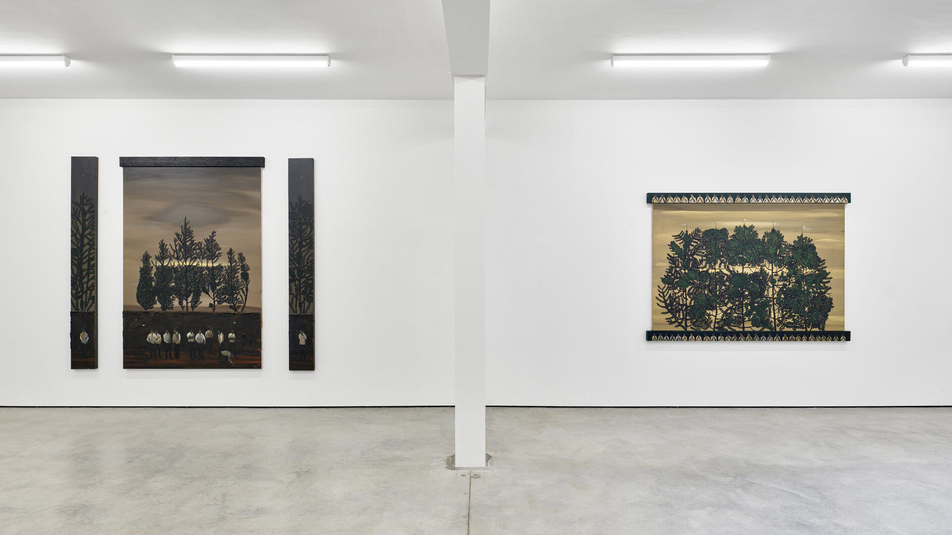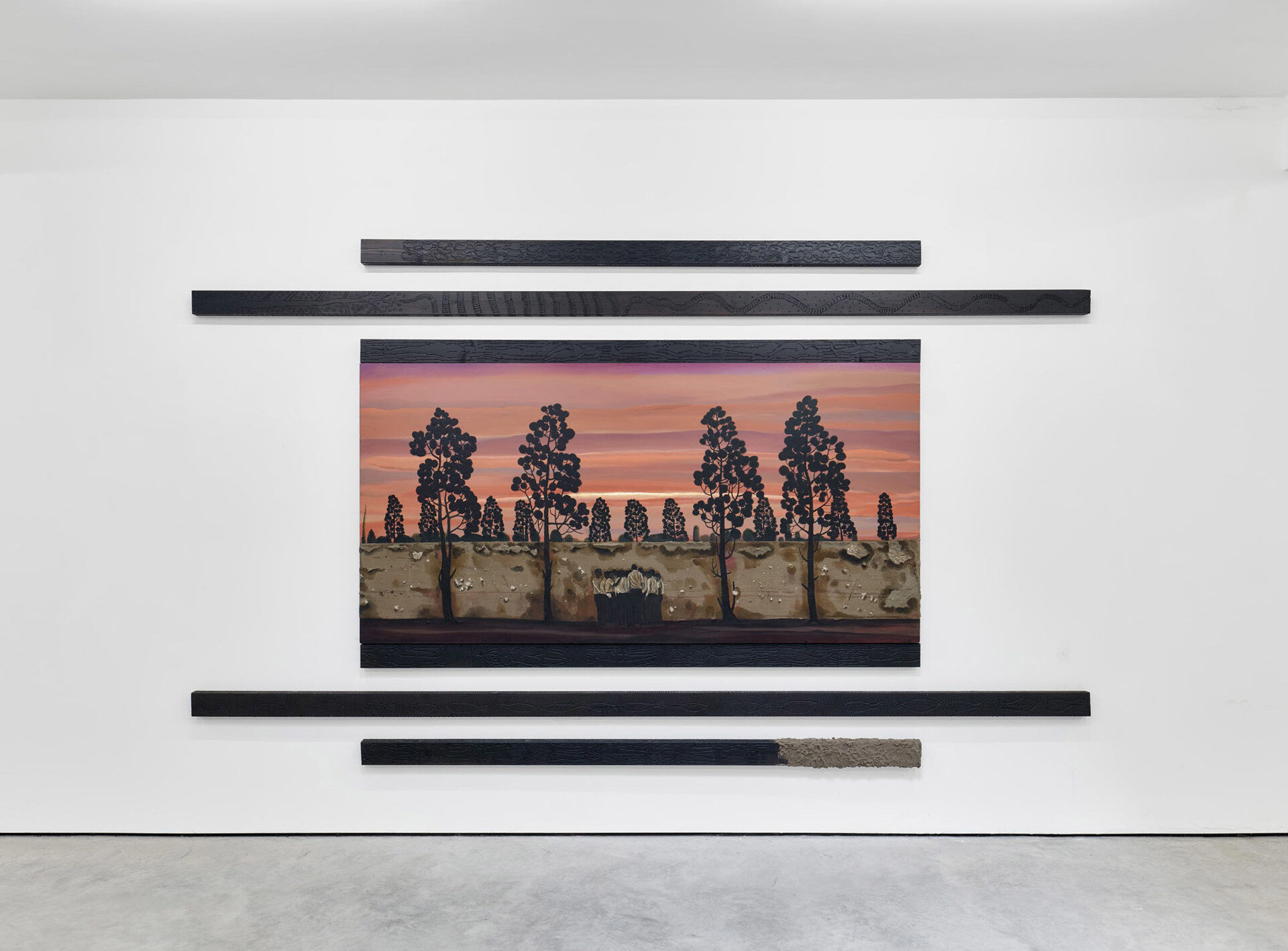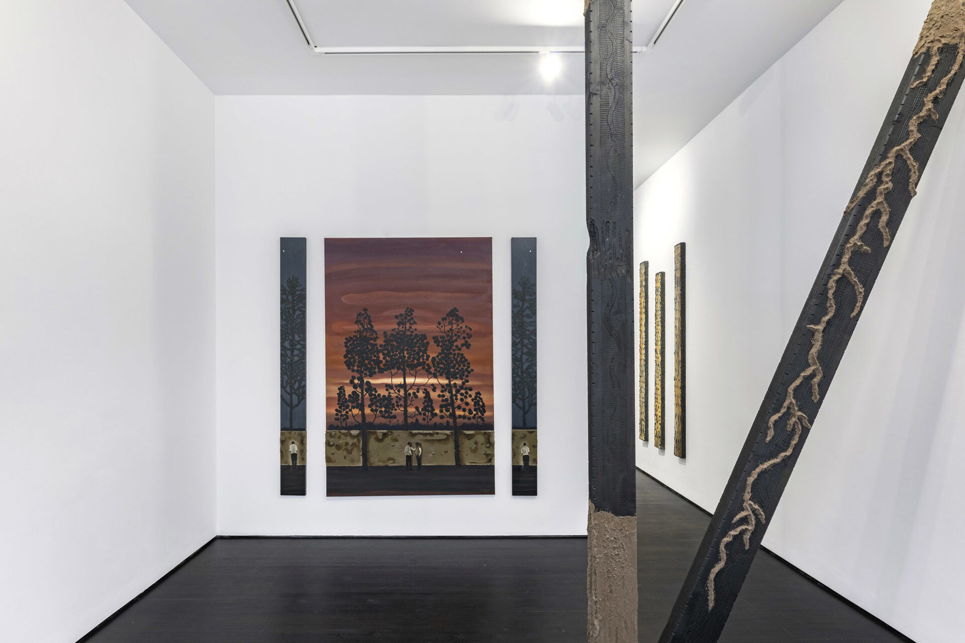 Apocalyptic, livid skies predominate in several of the paintings. Beneath their intense and glowing light, groups of…