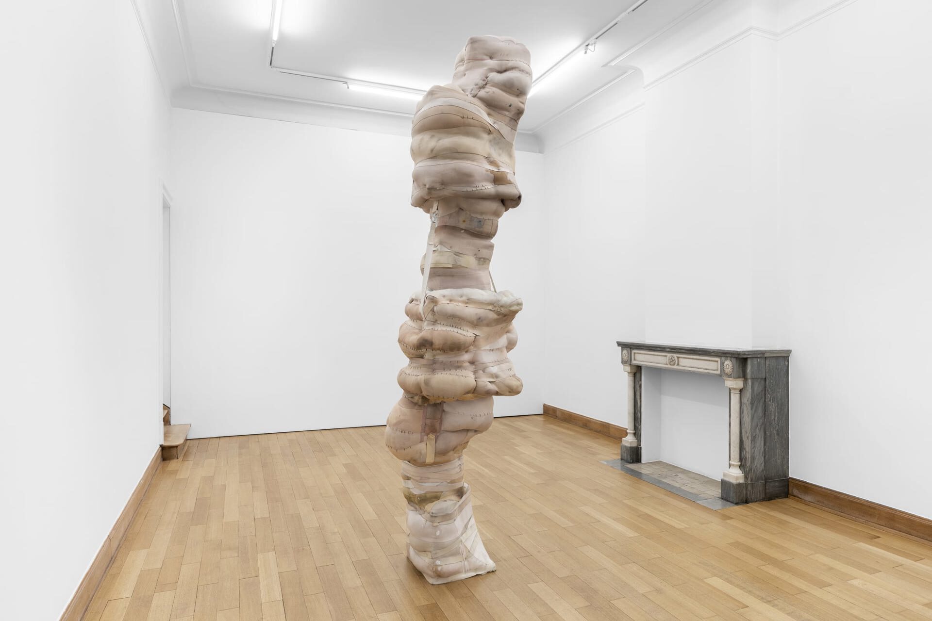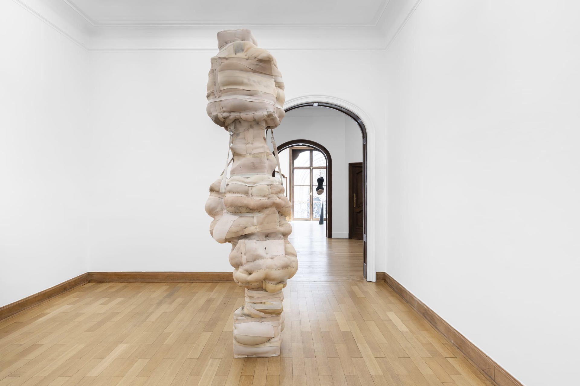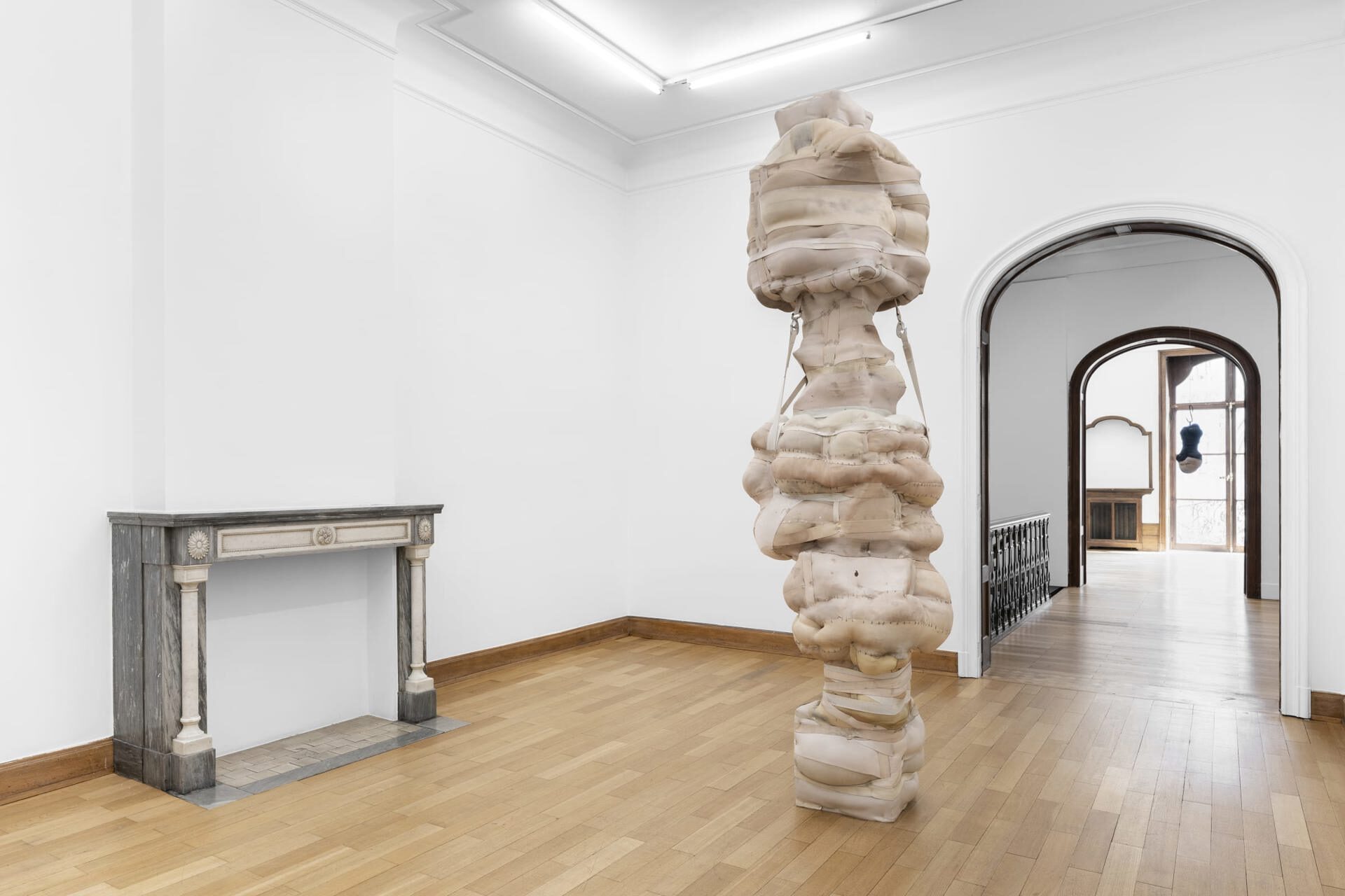 Mendes Wood DM is pleased to present though poppies grow, Patricia Ayres's first solo exhibition in Belgium. Ayres's works explore how systems of societal constraint – such as the church and the carceral state – inscribe themselves on the body. Drawing from a background in fashion design, she uses elastic textiles to create corporeal forms that speak to notions of injury, restraint, and control.