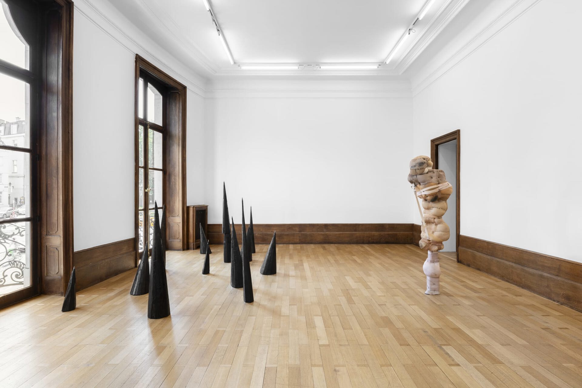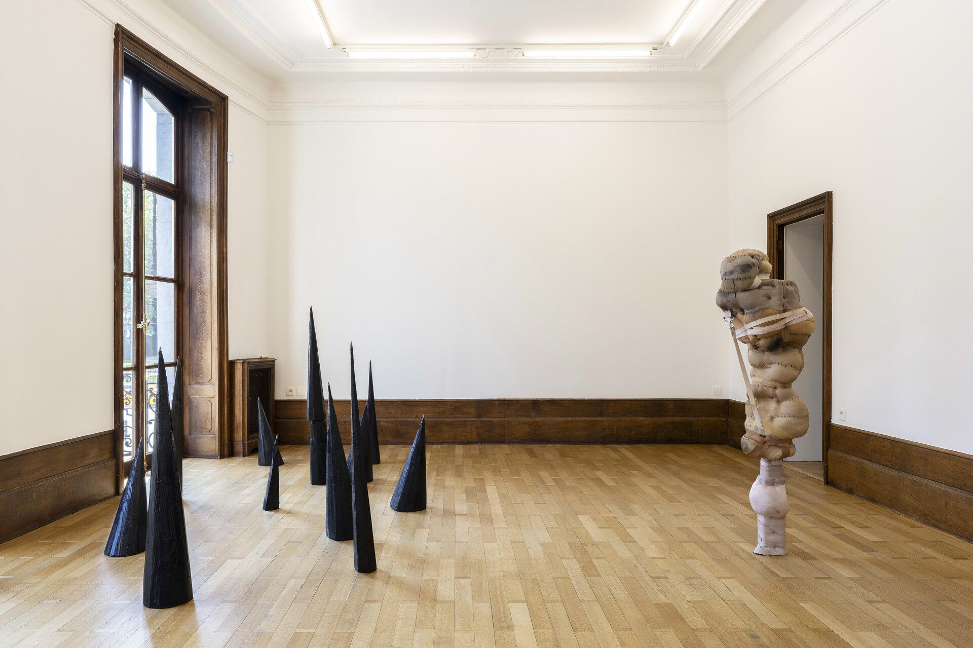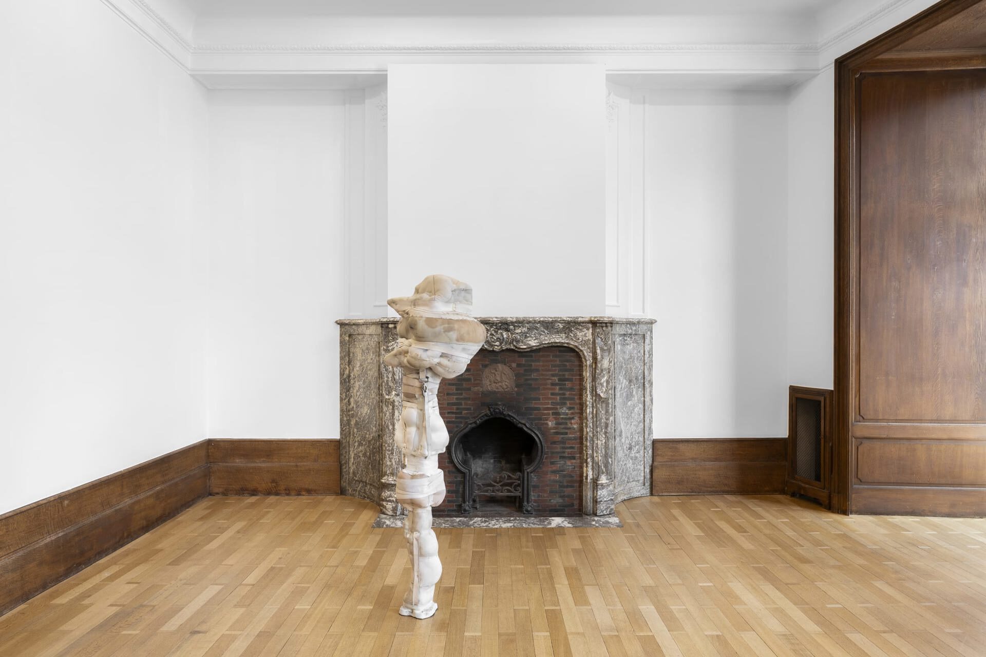 Mendes Wood DM is pleased to present though poppies grow, Patricia Ayres's first solo exhibition in Belgium. Ayres's works explore how systems of societal constraint – such as the church and the carceral state – inscribe themselves on the body. Drawing from a background in fashion design, she uses elastic textiles to create corporeal forms that speak to notions of injury, restraint, and control.