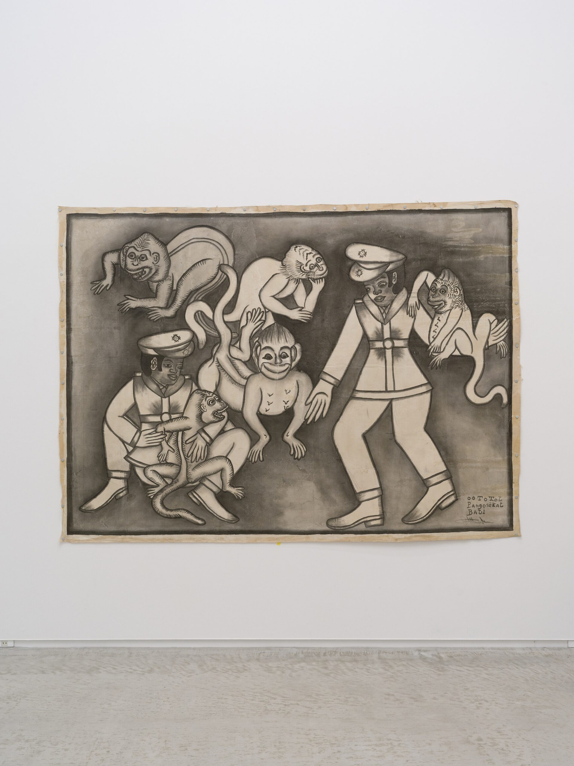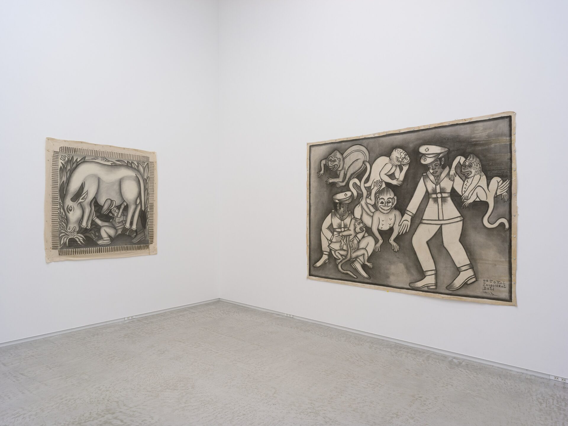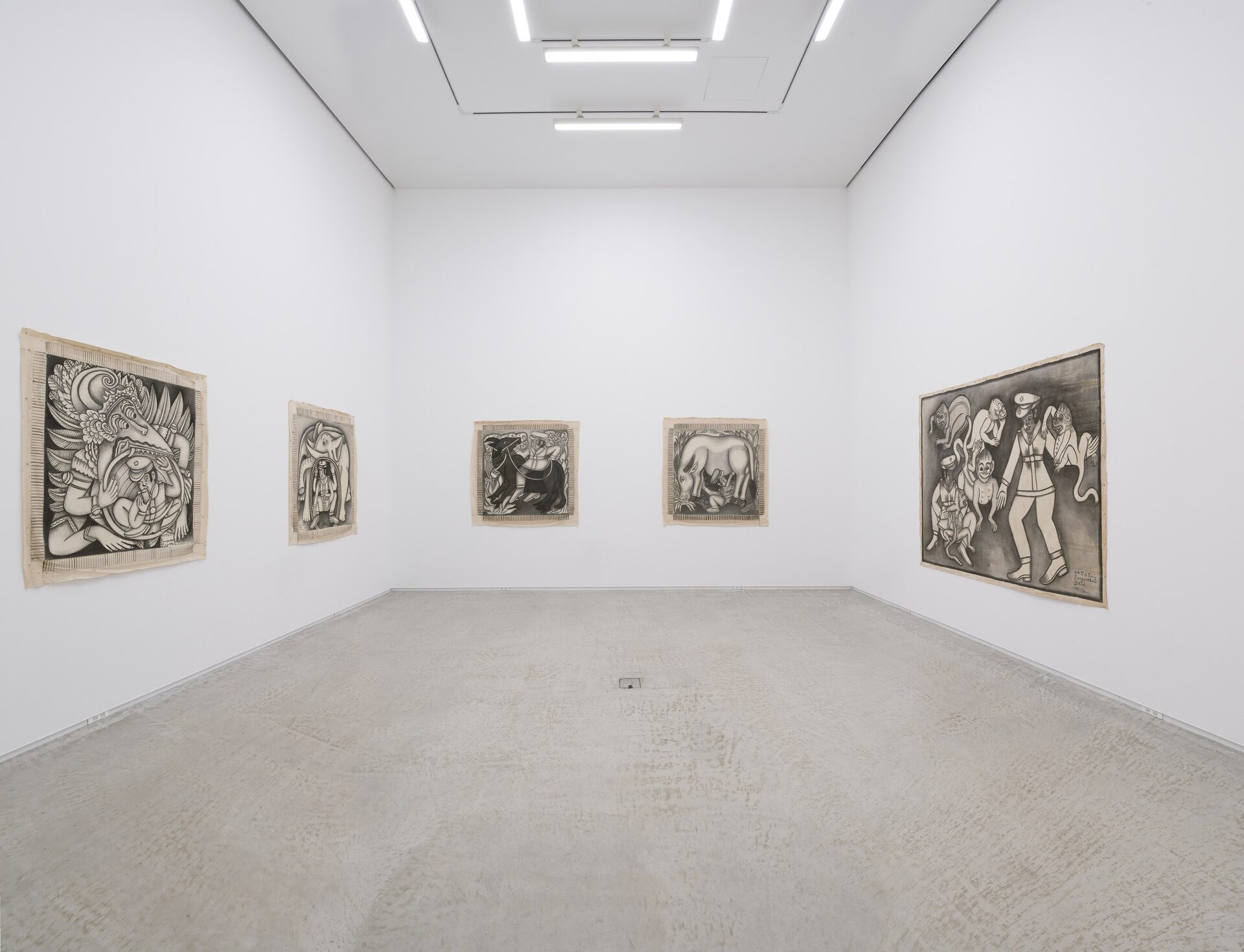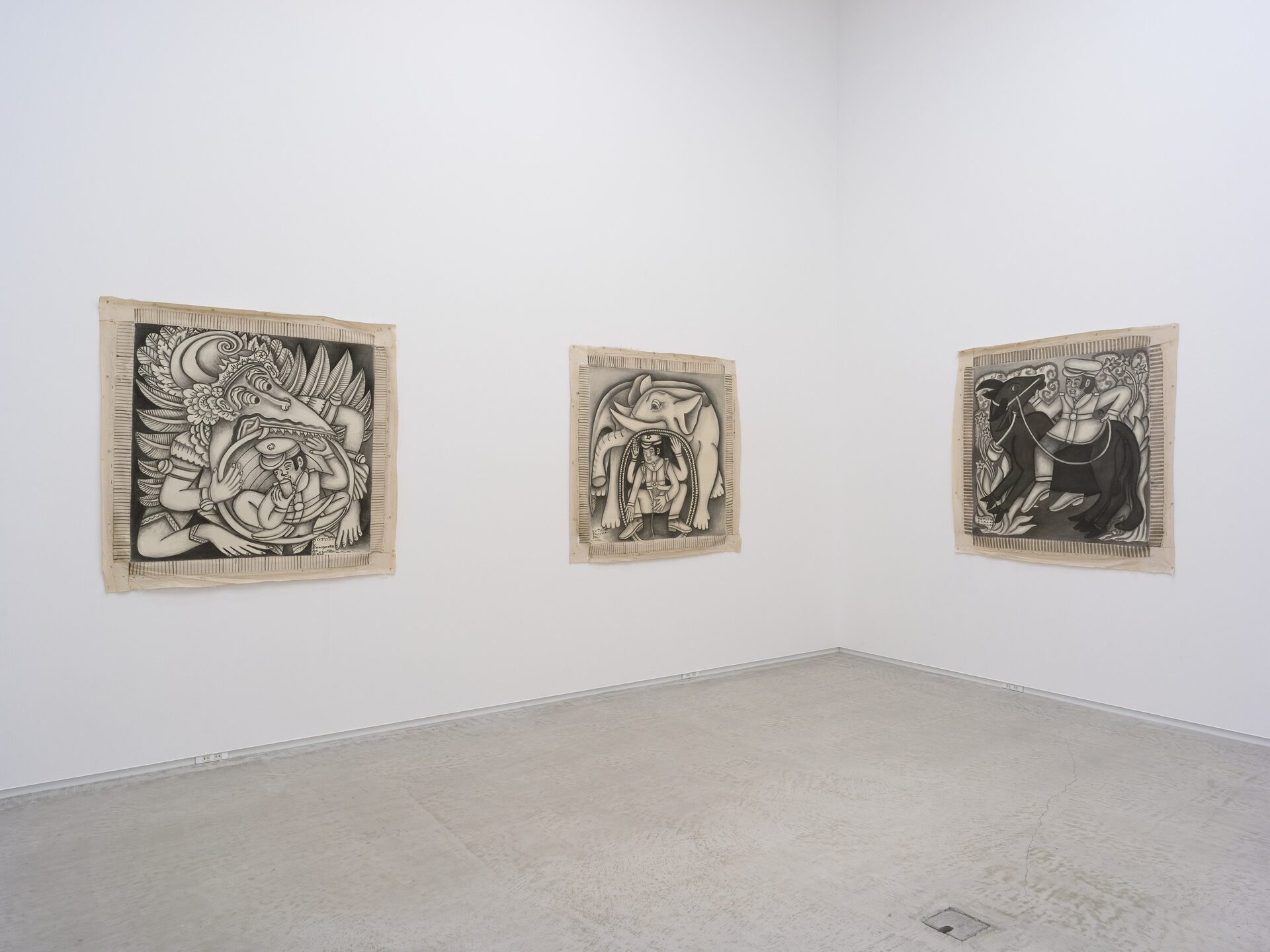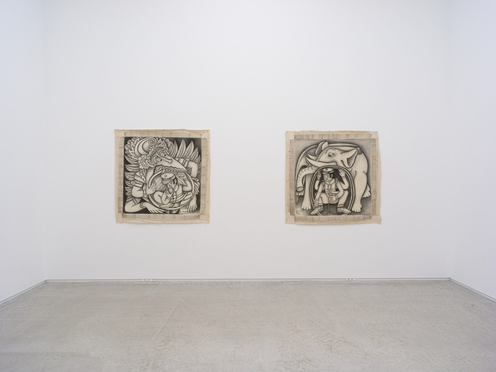 Oototolʼs first solo exhibition in Japan, divided between Misako & Rosen and Fig., offers an occasion to examine the formal and narrative play that constituted the late Balinese artistʼs production. Working with Chinese ink, bamboo pens, and brushes, Oototol (b. ?‒2008) elaborated a pictorial language in which representations of the quotidian and the transgressive are made to occupy a single visual field, raising questions about the conditions under which such conjunctions become legible or permissible.