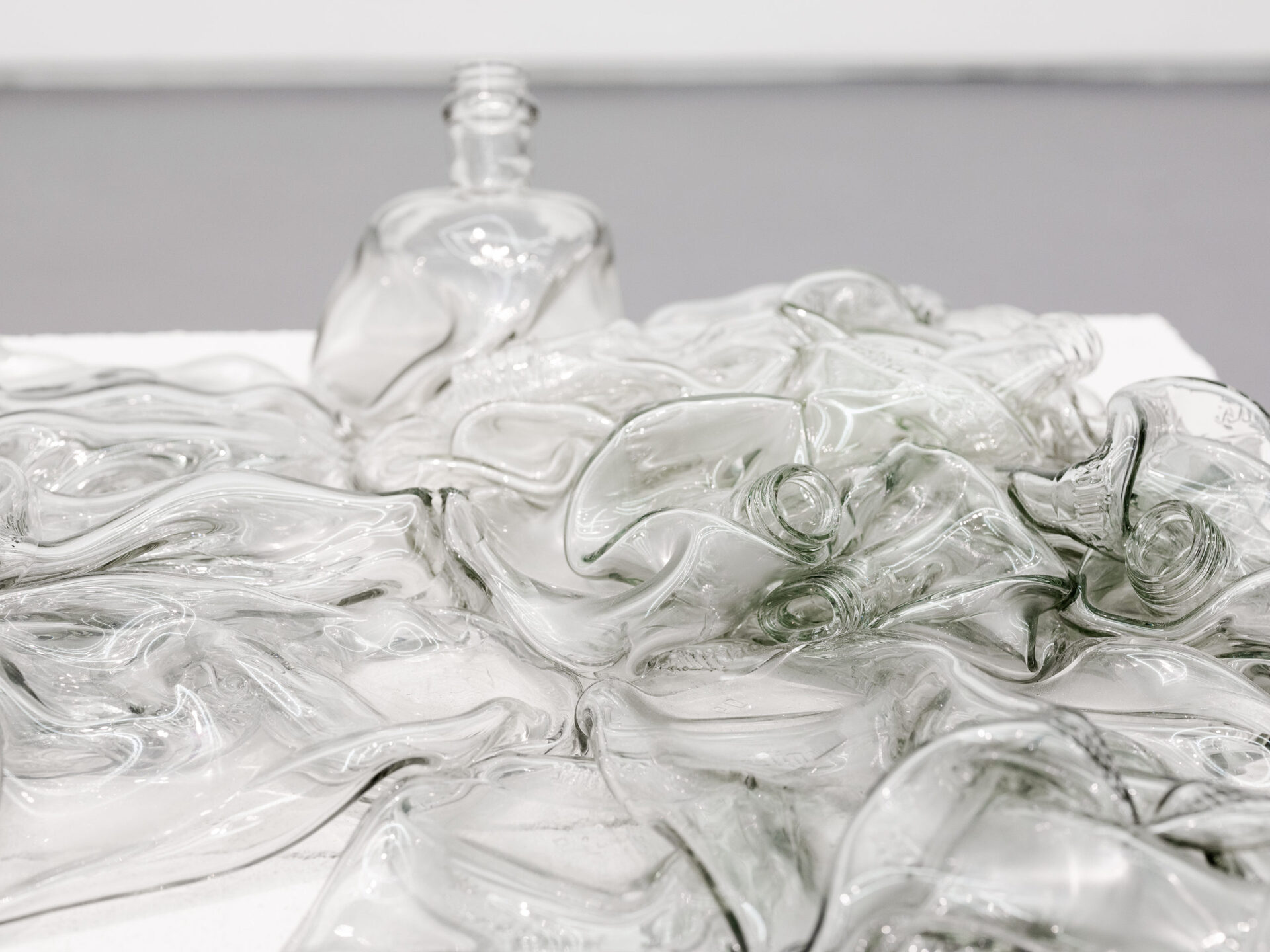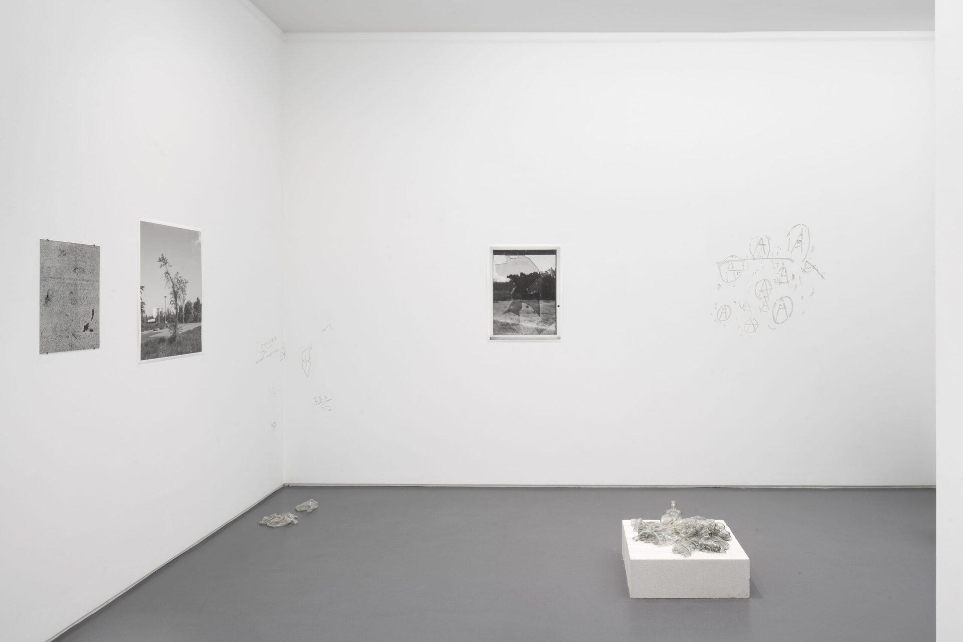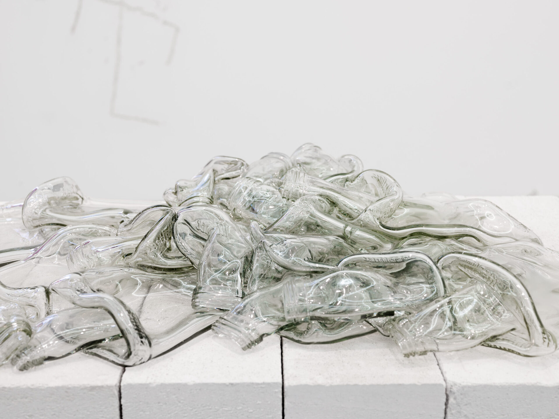 Perhaps it is precisely the footprints that can be seen in the photograph „T.b.a.m.f.s.A.t.j.w.t.d.O.o.t.d.t.b.a.g.S.a.o.y (XXV)“ that tell what has happened and is still happening there, in this landscape that once flourished. It is this landscape, which Eric Meier has declared his object of research, that he examines and dissects in his exhibition „Flaschen & Geister“ („Bottles & Ghosts“). Meanwhile immortalised in concrete, the continuity of history is revealed in the profiles of the soles of shoes. This photograph is suitable as an introduction; it opens up the subplot of the main story. It is a quieter, less easily grasped past. One that has to be approached with a…