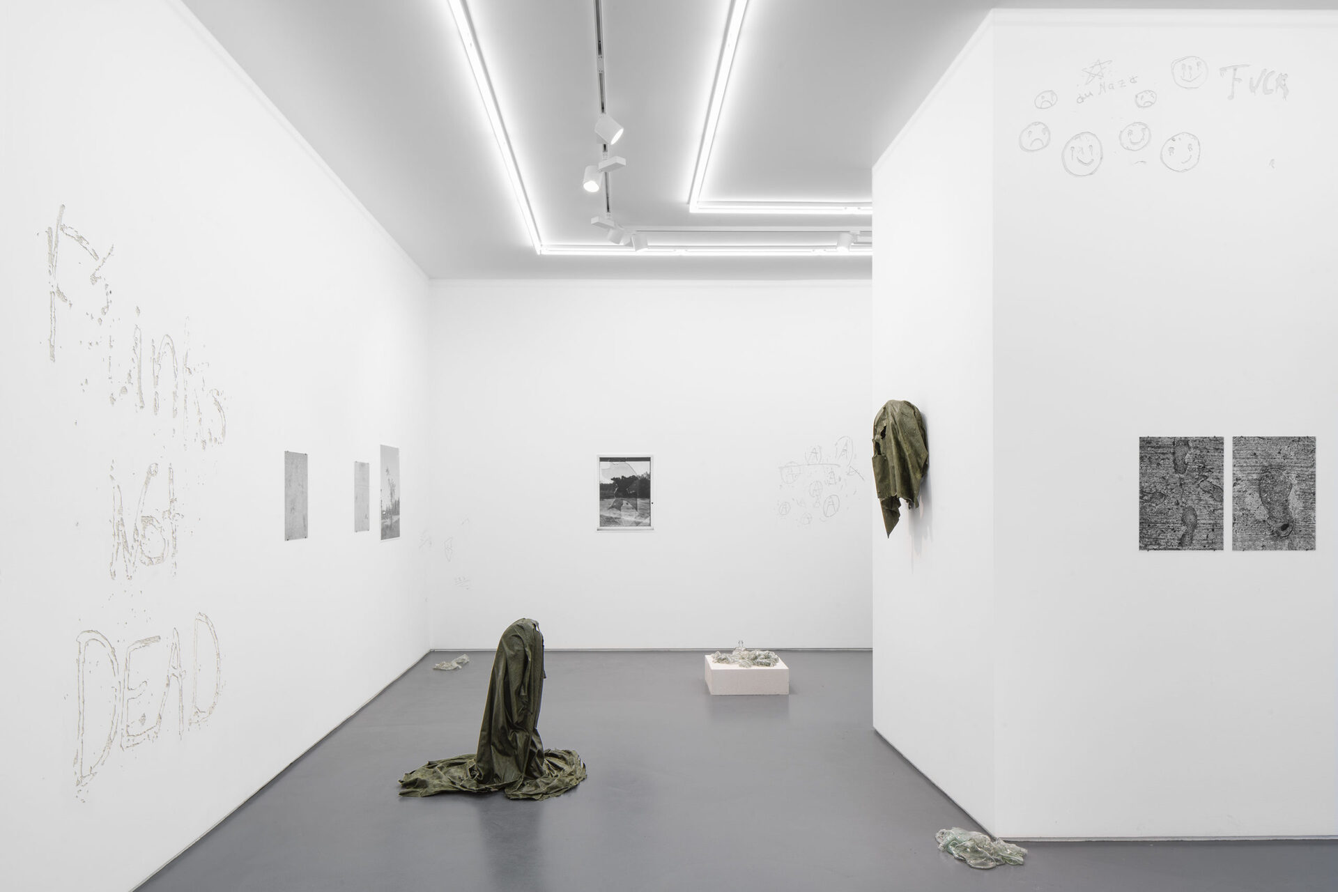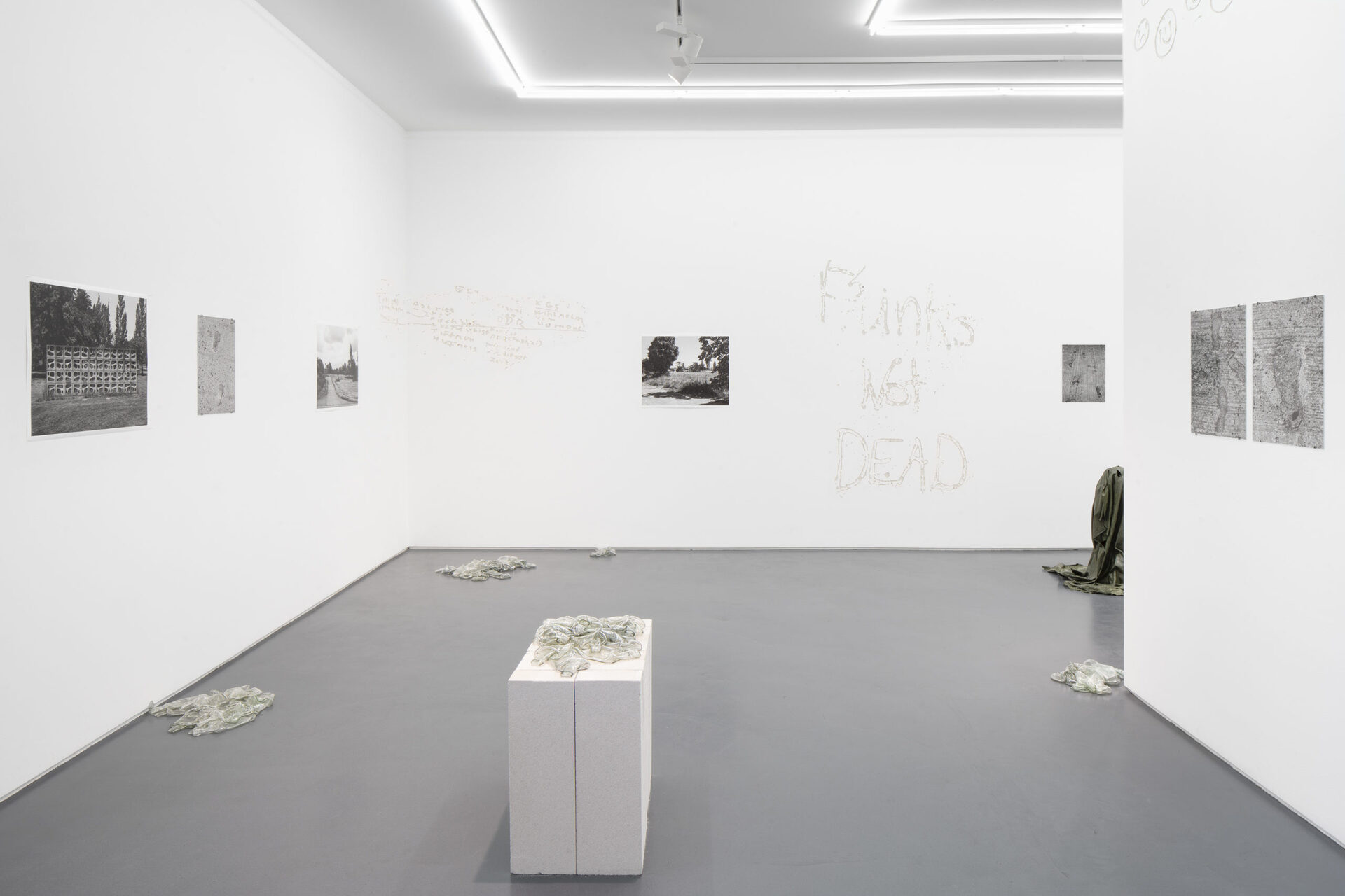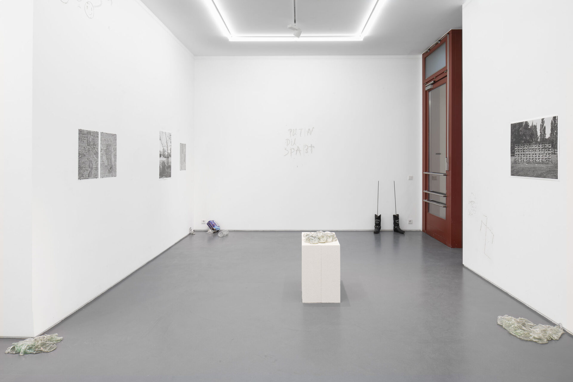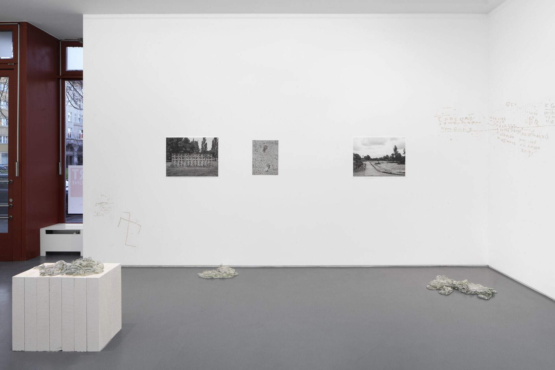 Perhaps it is precisely the footprints that can be seen in the photograph „T.b.a.m.f.s.A.t.j.w.t.d.O.o.t.d.t.b.a.g.S.a.o.y (XXV)“ that tell what has happened and is still happening there, in this landscape that once flourished. It is this landscape, which Eric Meier has declared his object of research, that he examines and dissects in his exhibition „Flaschen & Geister“ („Bottles & Ghosts“). Meanwhile immortalised in concrete, the continuity of history is revealed in the profiles of the soles of shoes. This photograph is suitable as an introduction; it opens up the subplot of the main story. It is a quieter, less easily grasped past. One that has to be approached with a…