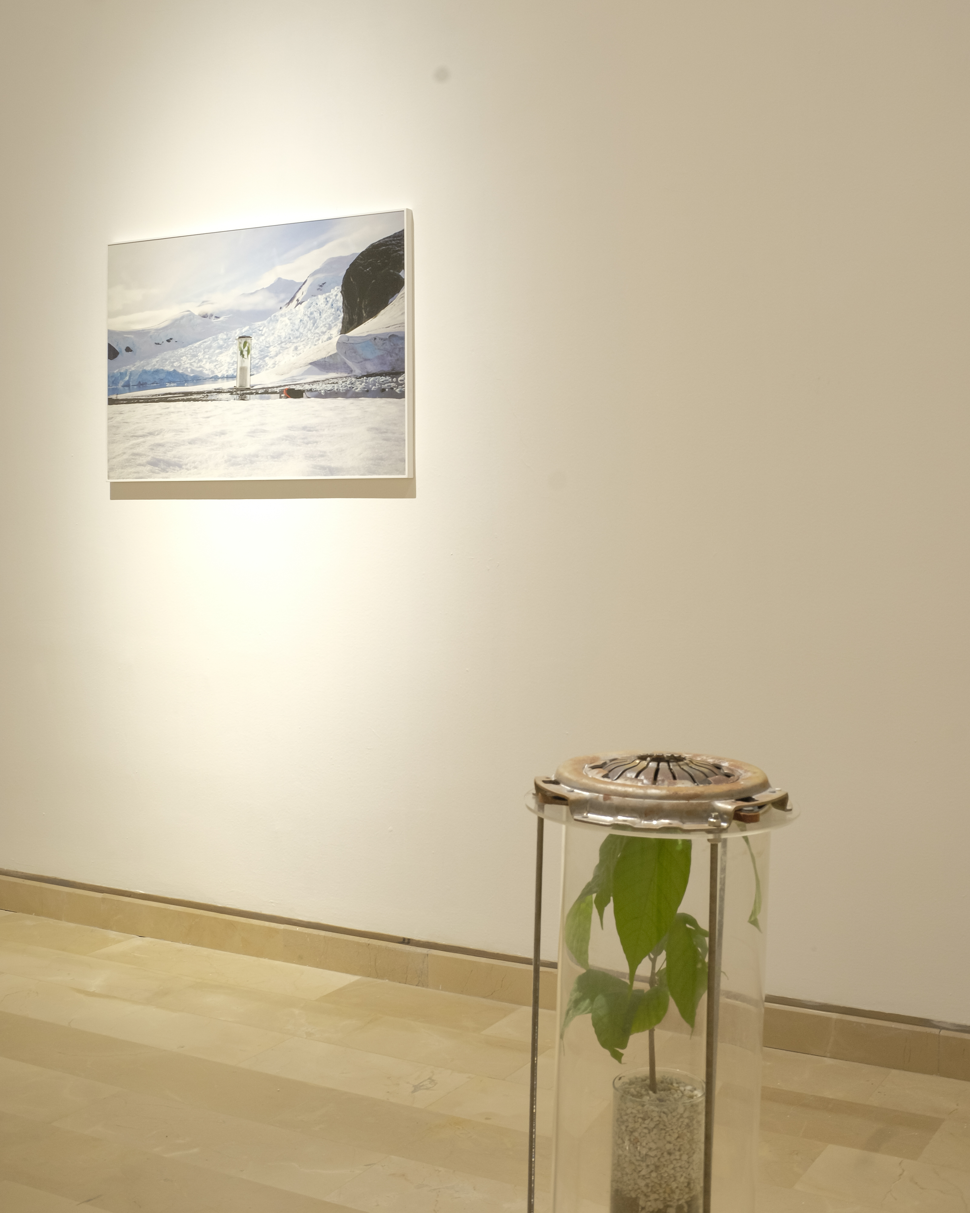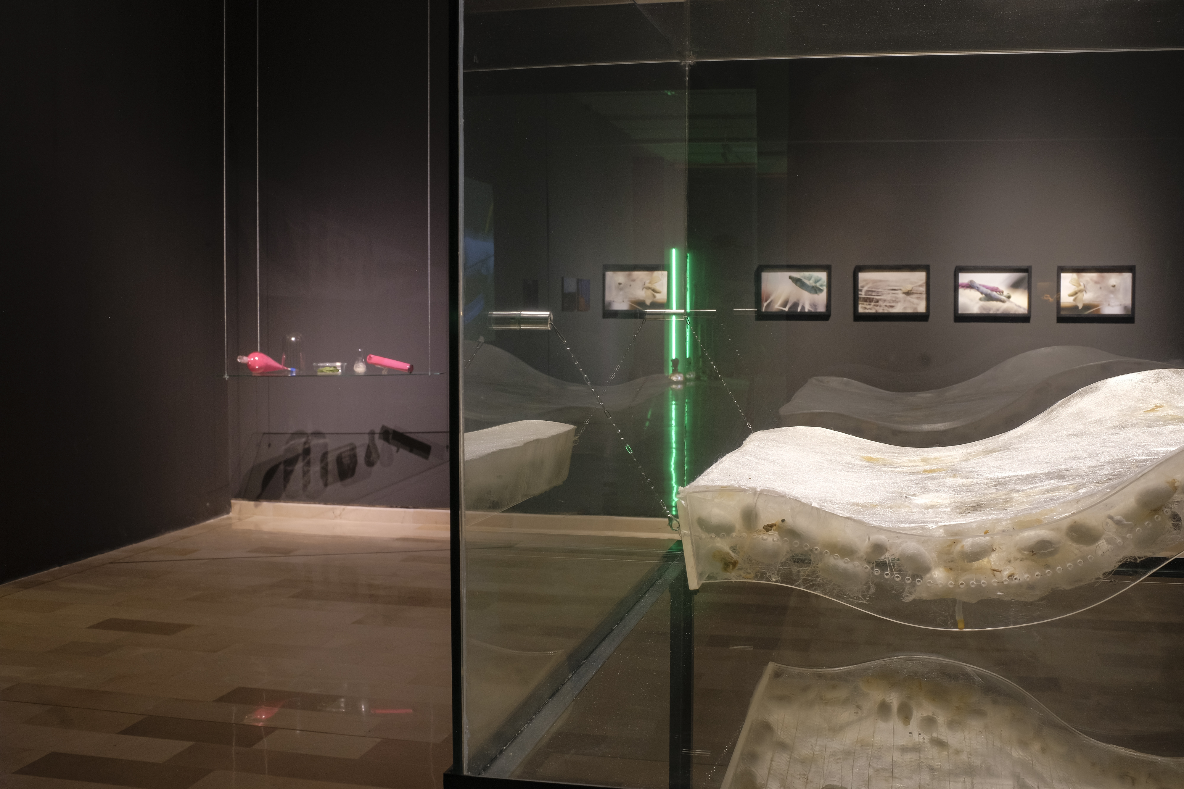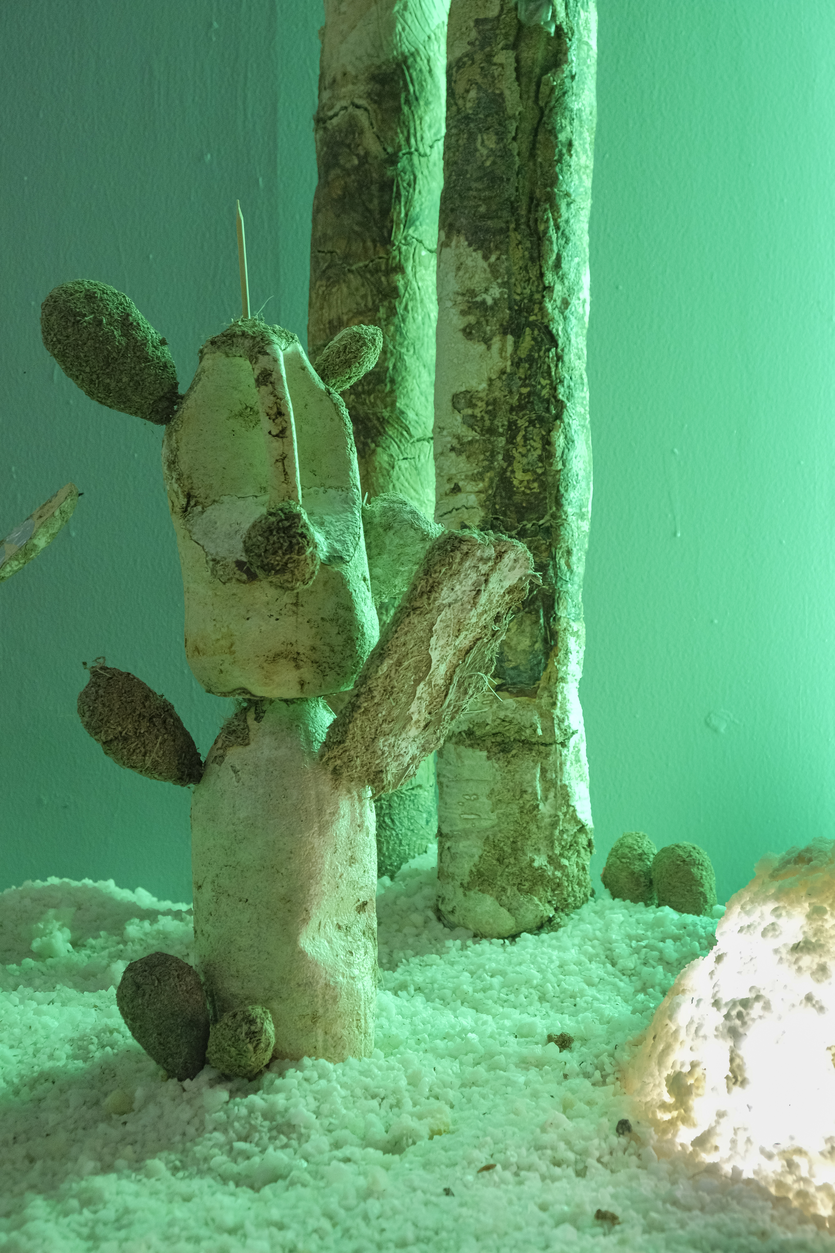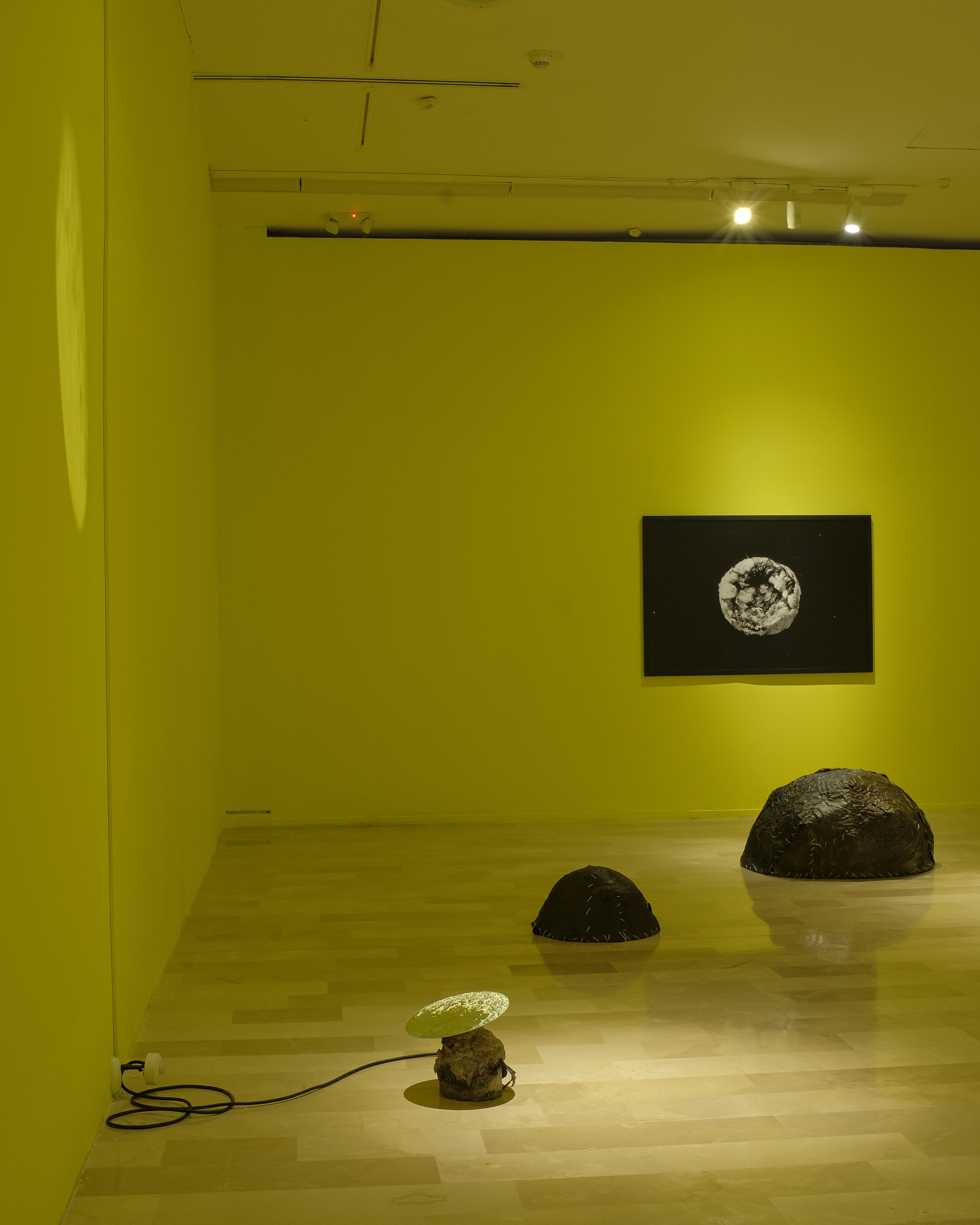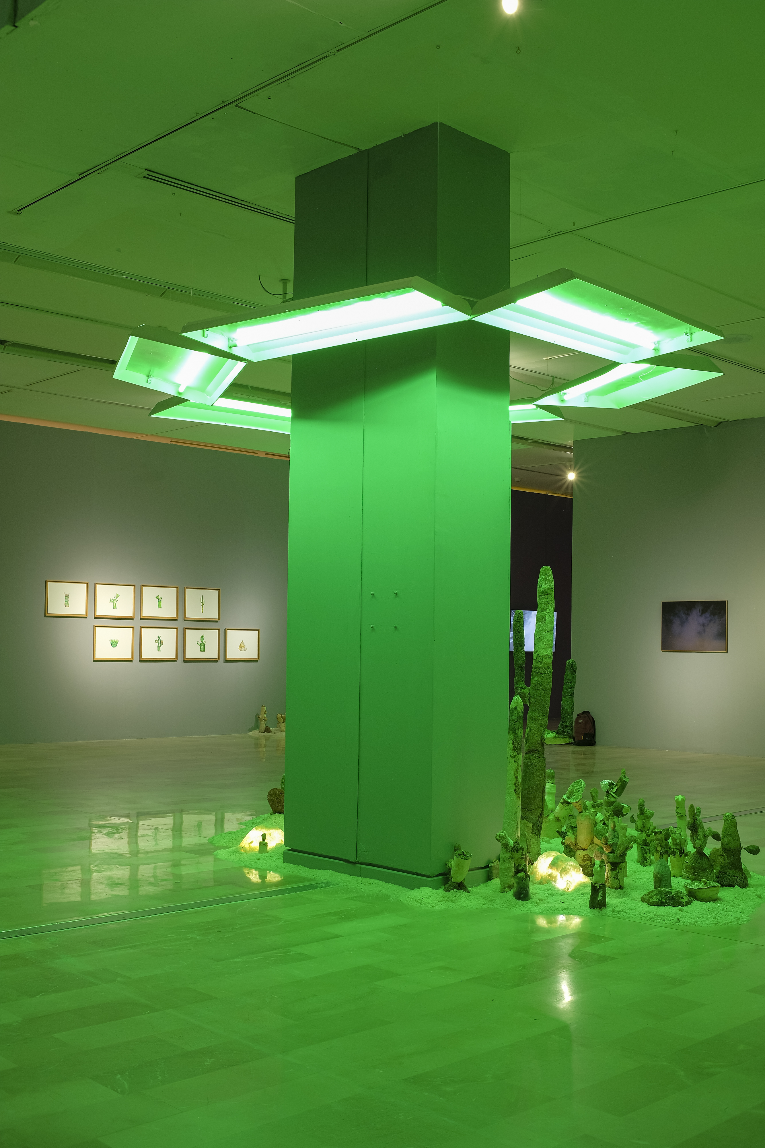 In the speculative world of Paul Rosero Contreras, biology and mythology meet at the precipice of time. His multimedia practice unravels fictional narratives combined with field-recorded data through sculptural and cinematic assemblages that provide us with a hopeful ground for speculating on the future. The title “The World Ablaze” refers to times of environmental collapse. We are witnessing an ongoing mass-extinction along with extreme meteorological phenomena due to the man-made disequilibrium of the planet. A planet with millions of years of dramatic changes —from iceball earth to fireball earth— which resulted in chemical and physical conditions that gave rise to our evolution. From the perspective of a biologist or mystic figure who sees the drawn-out process of geological time, it is not the planet as a living being that will end, but rather the survival of human and non-human beings.