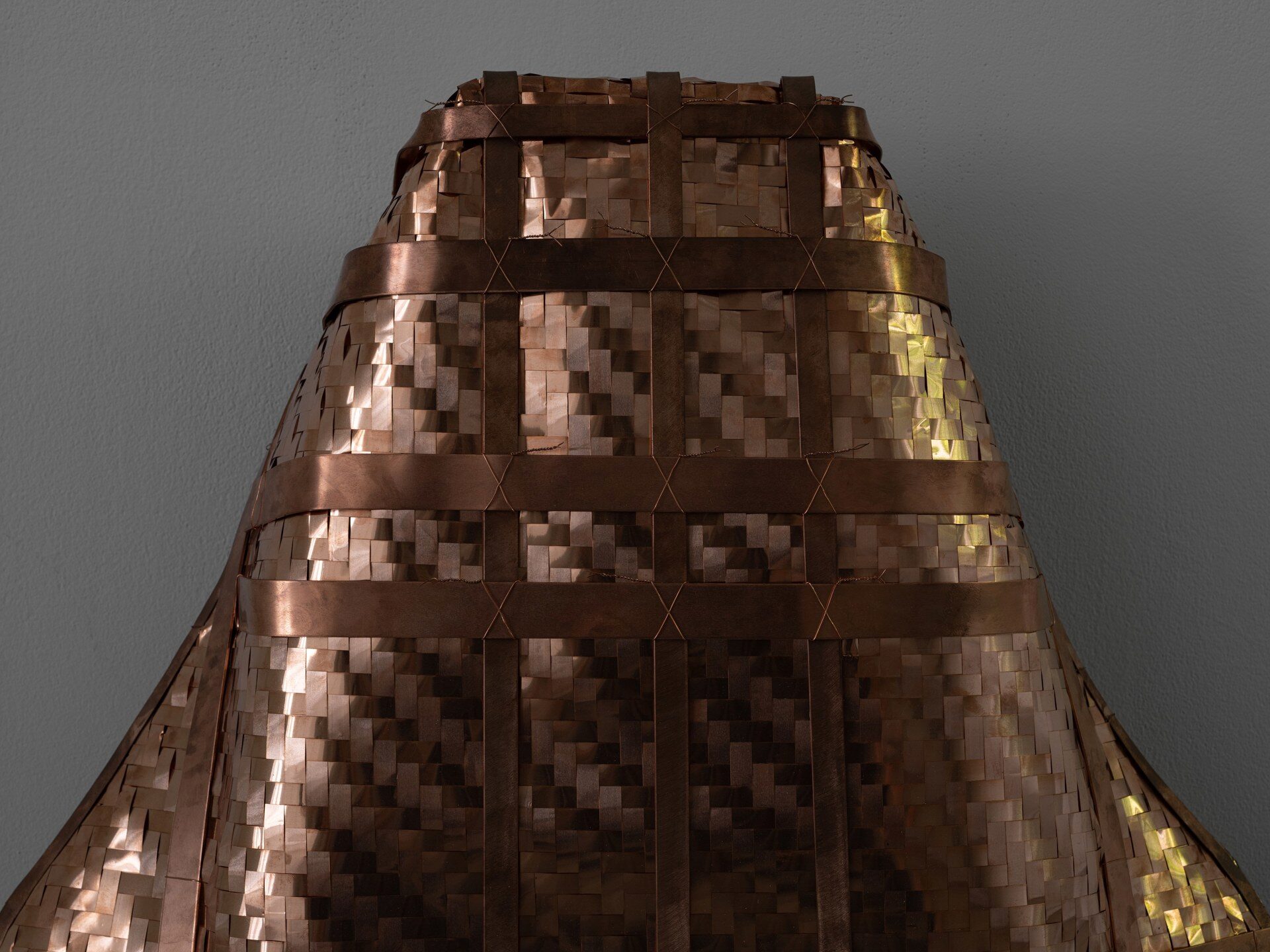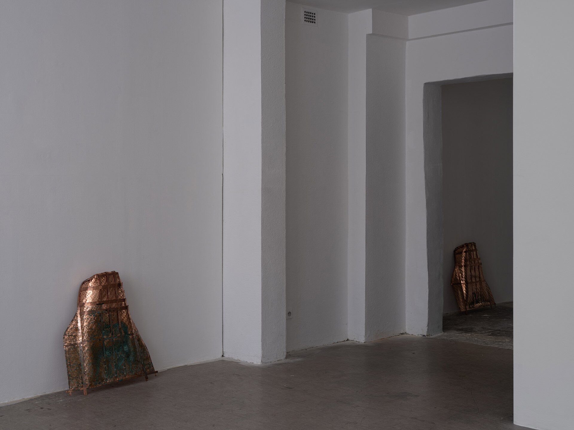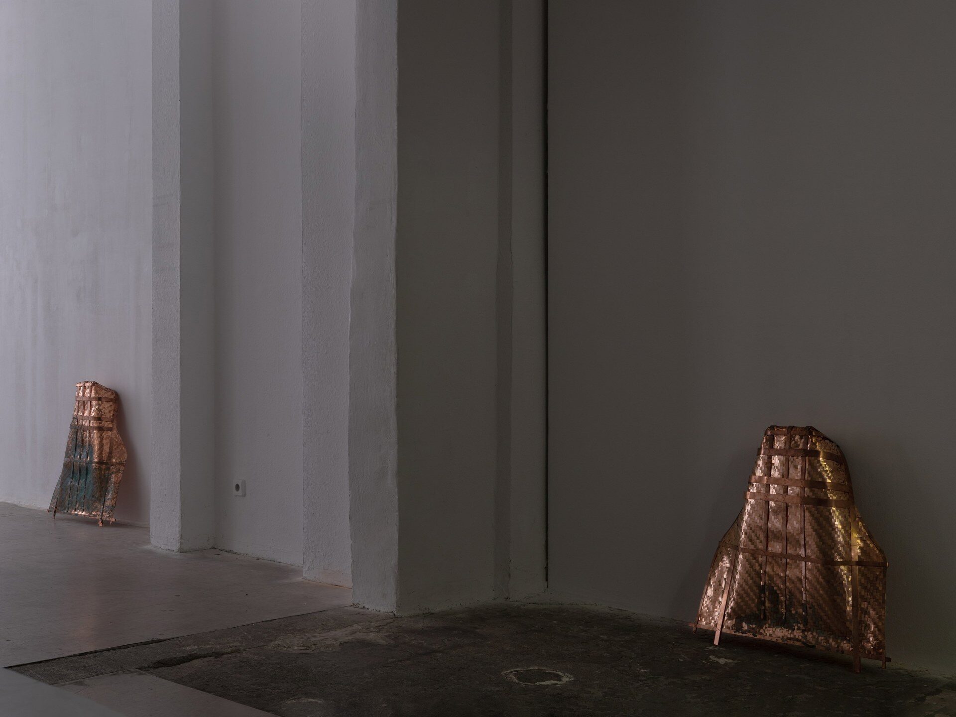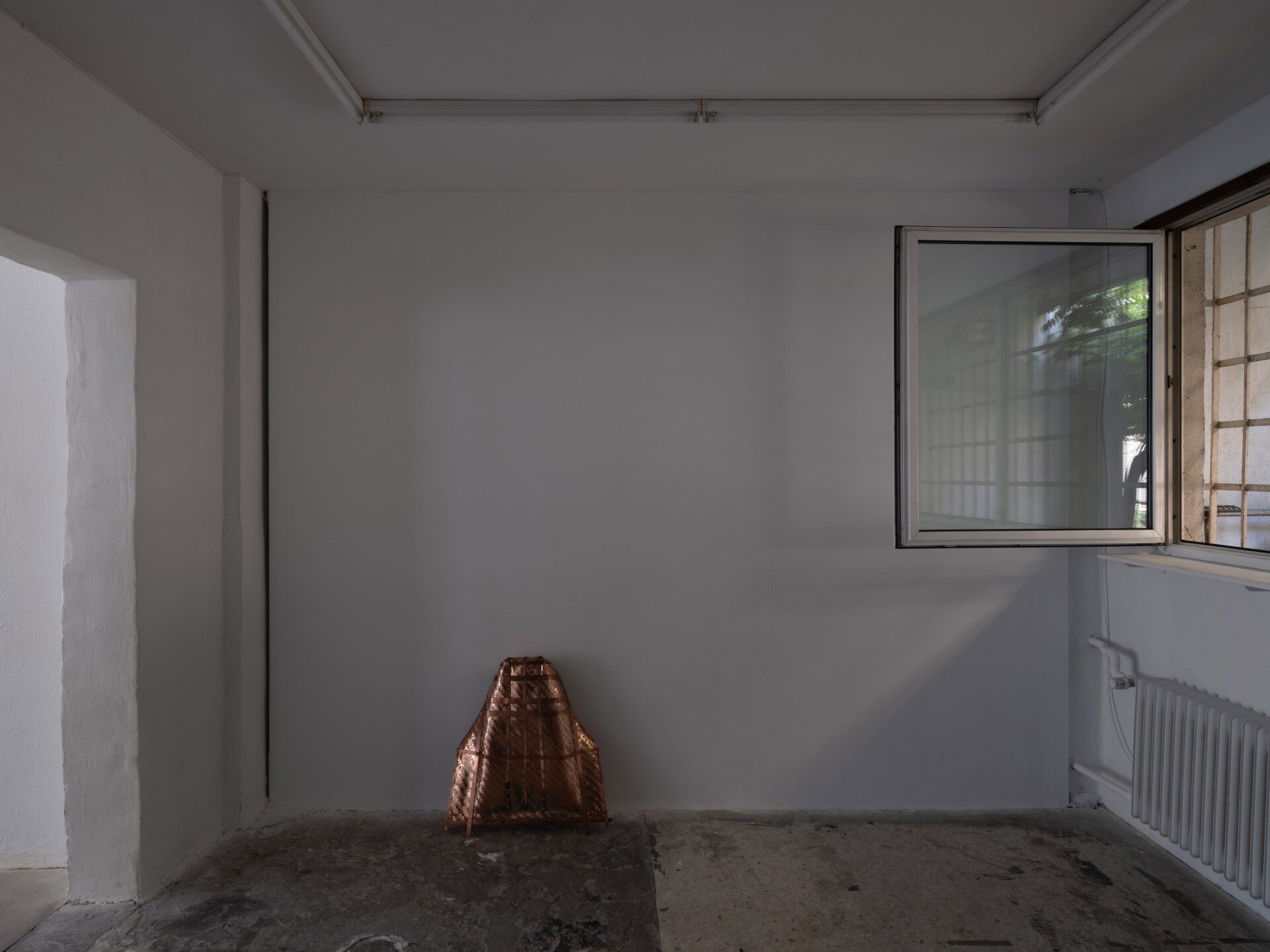 For his first solo exhibition at Neue Alte Brücke, the artist has produced two hand-woven copper reproductions of a traditional Korean winnowing basket, a tool historically used to clean harvested rice. Beyond its agricultural purpose, the basket once served a symbolic role in a ritual of childhood discipline: children who wet the bed were made to wear it on their heads and walk through the village asking neighbors for salt, a gesture meant to purge impurity through public shame.