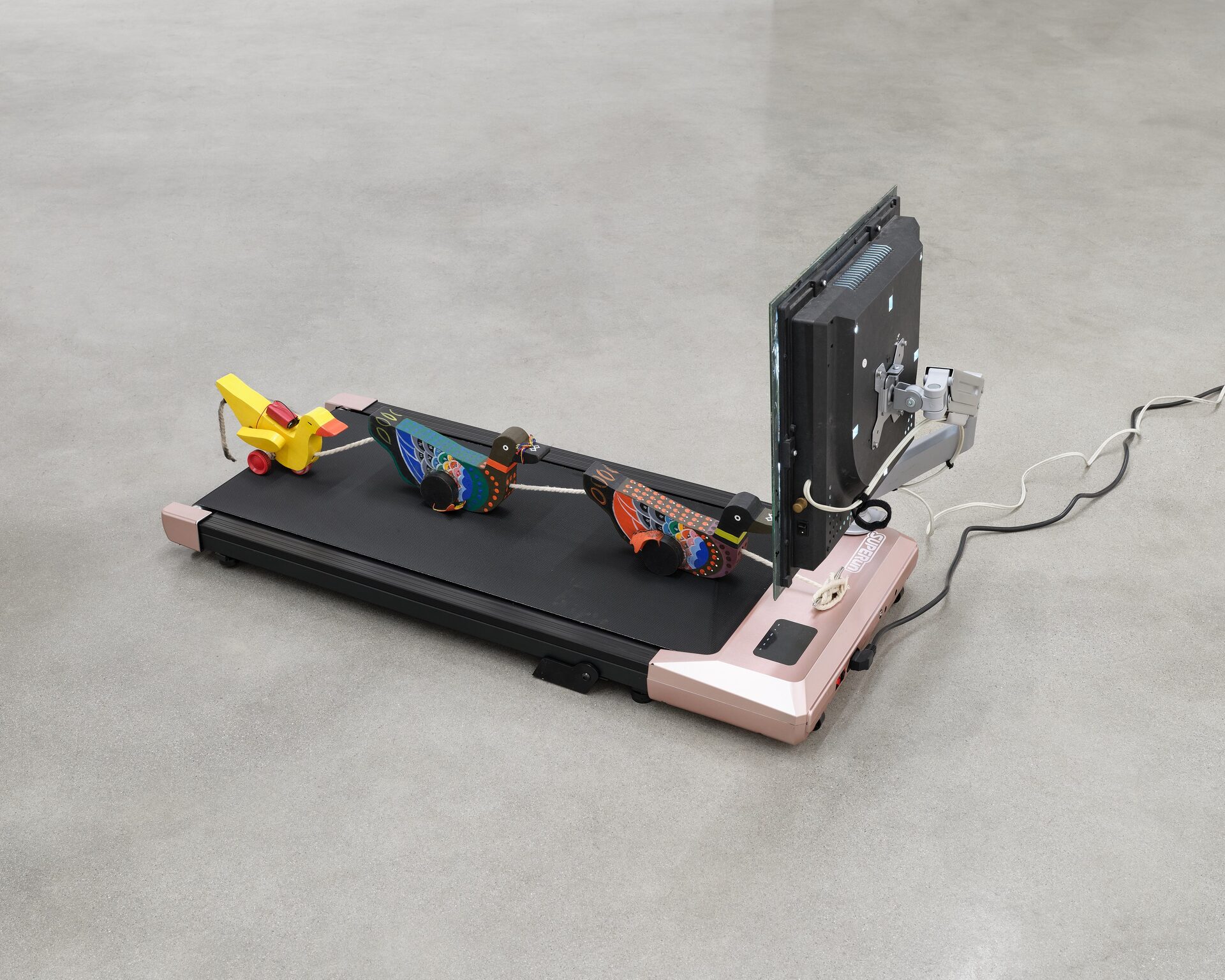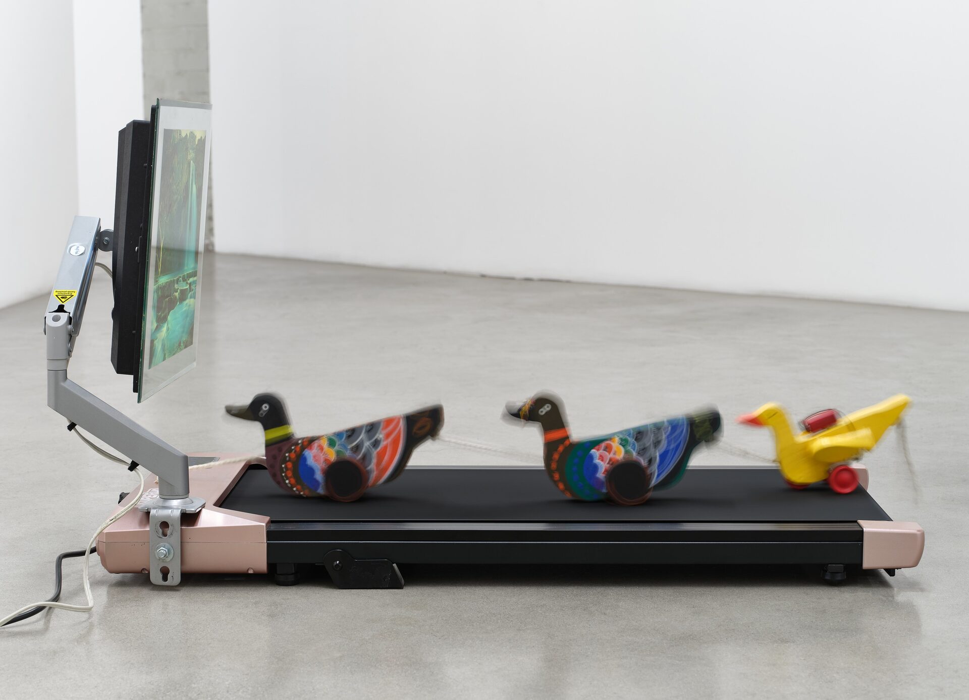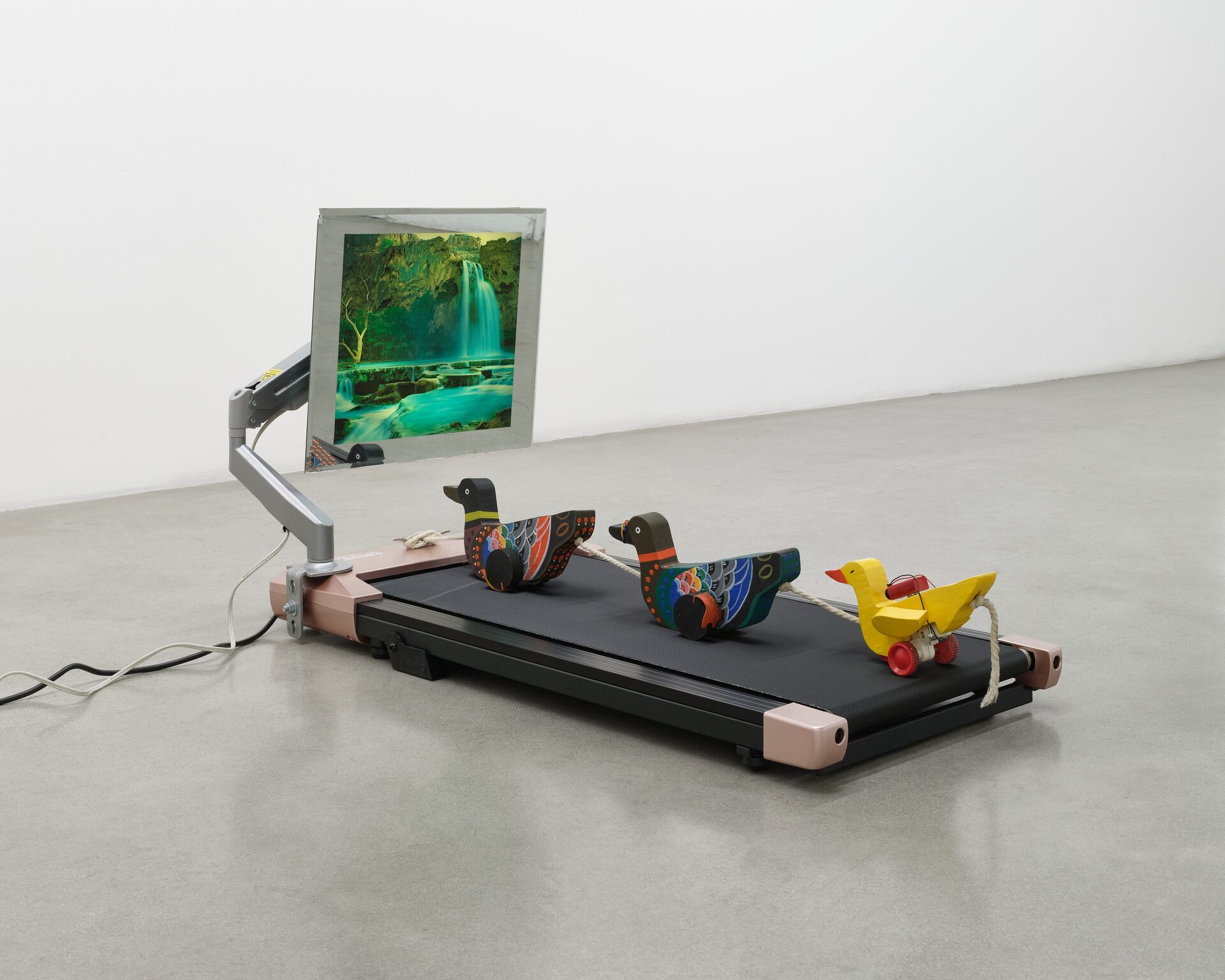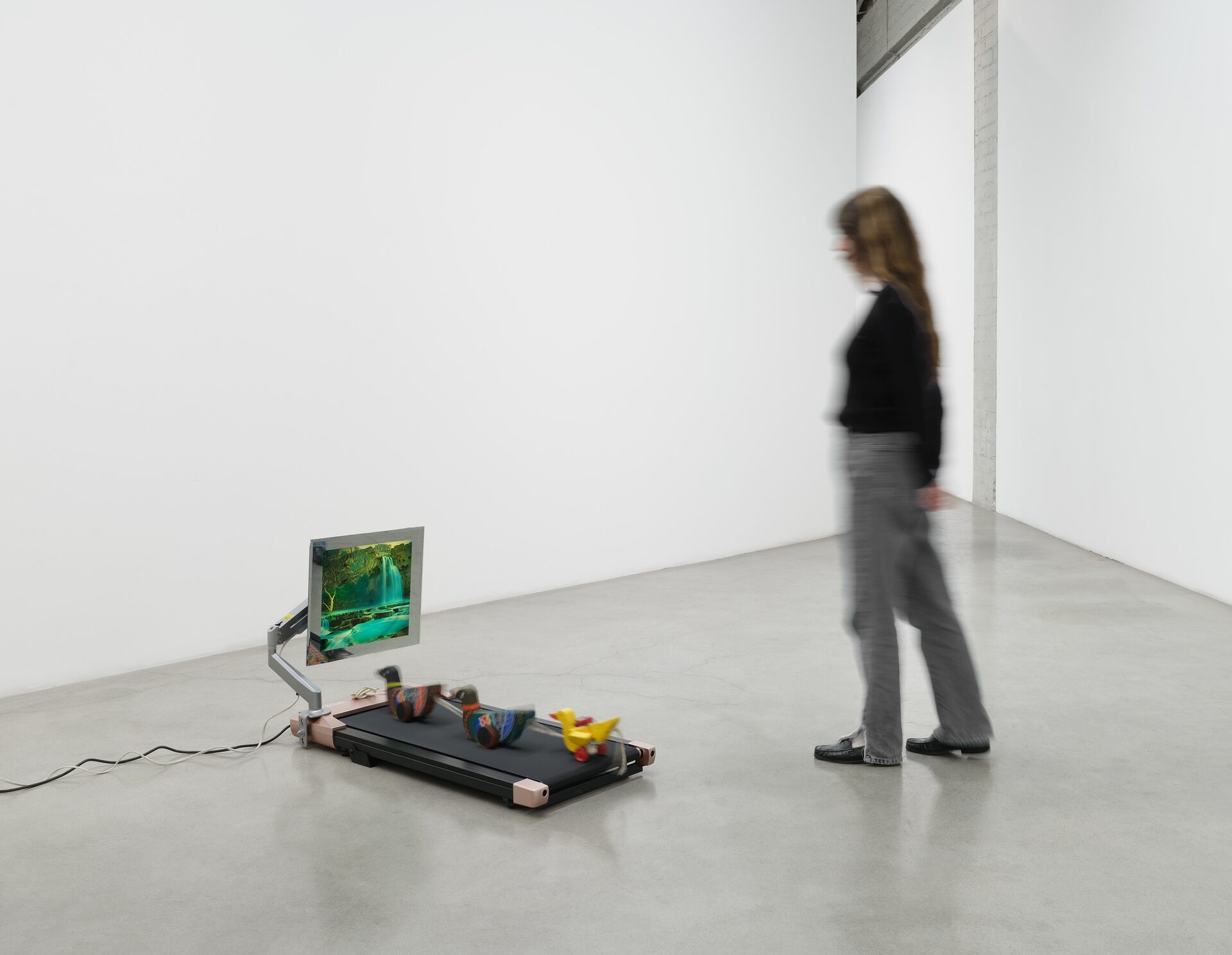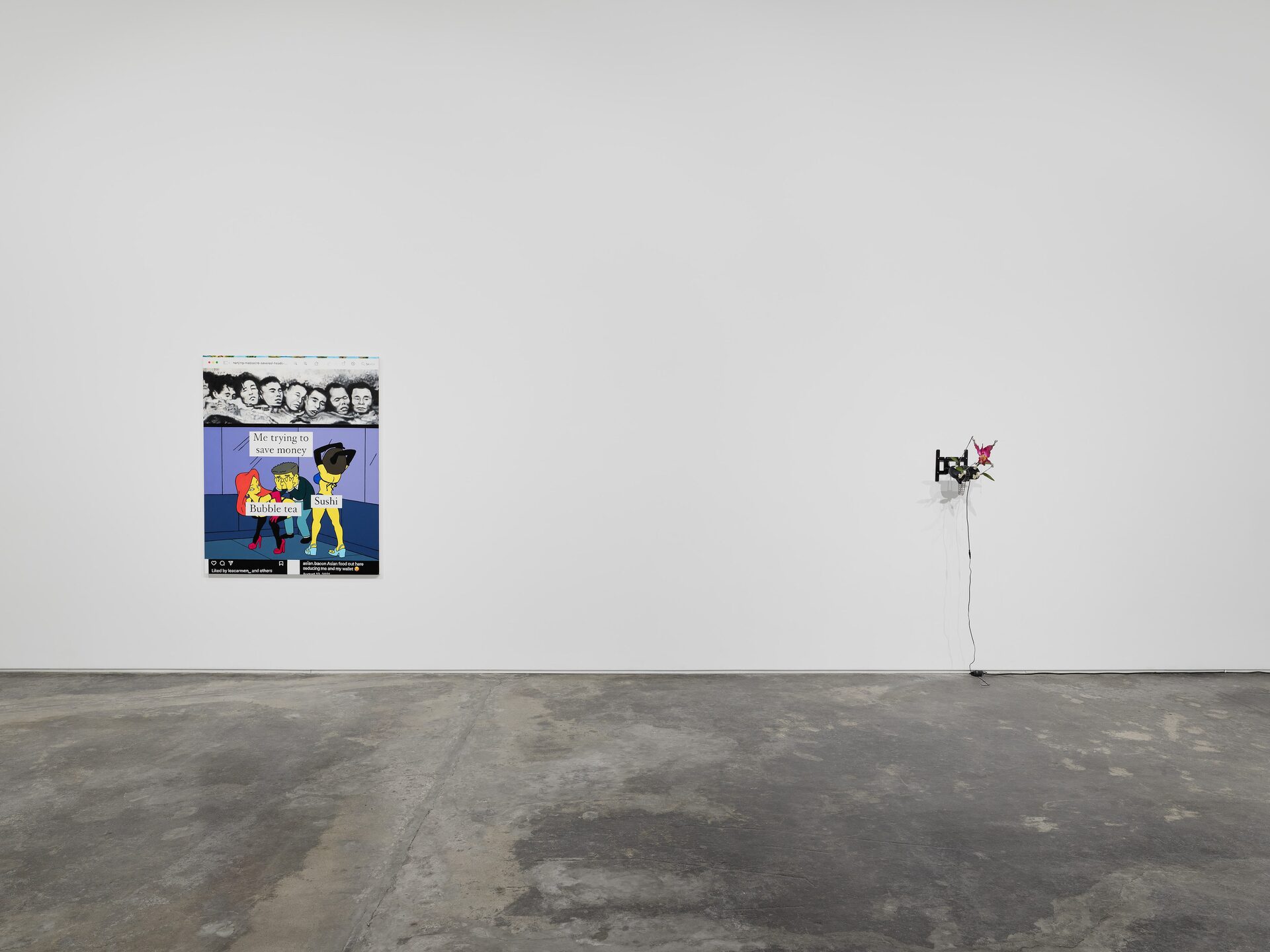 Both artists revel in the exhaustive gestures of contemporary life—the perpetual motion that leads nowhere. Youn's sculptures animate the artifacts of self-care culture, transforming massage devices and baby rockers into tireless performers locked in cycles of jiggling, turning, and pleasure-seeking labor. Wang paints photorealistic internet memes, elevating digital detritus into something worthy of sustained attention. Both artists take objects designed for instant gratification—whether physical comfort or viral dopamine hits—and trap them in a kind of amber, forcing us to reckon with…