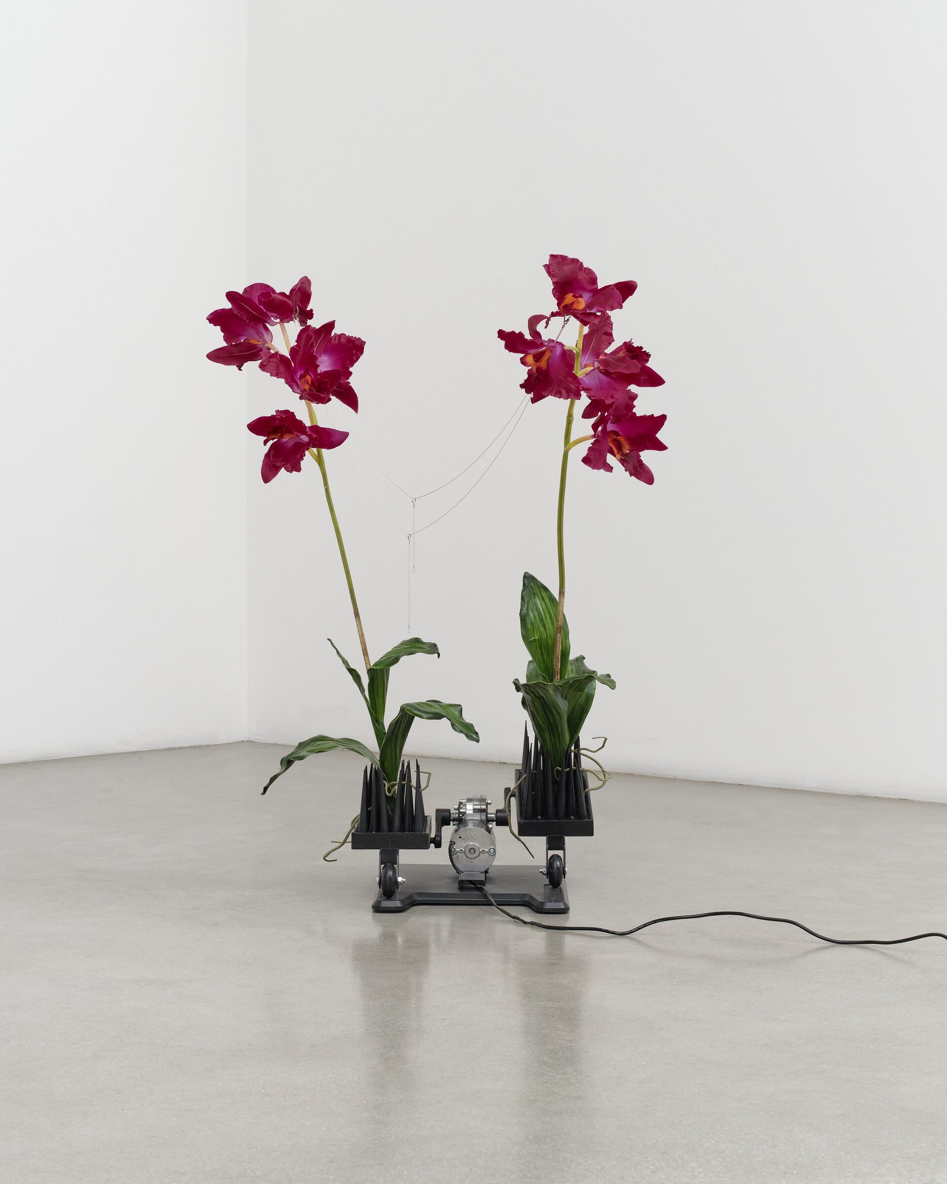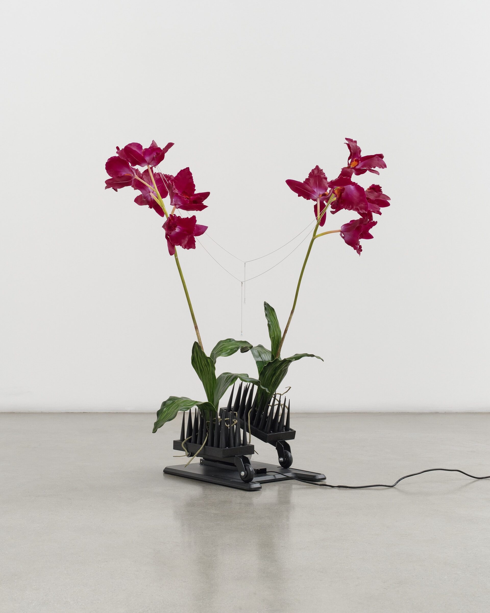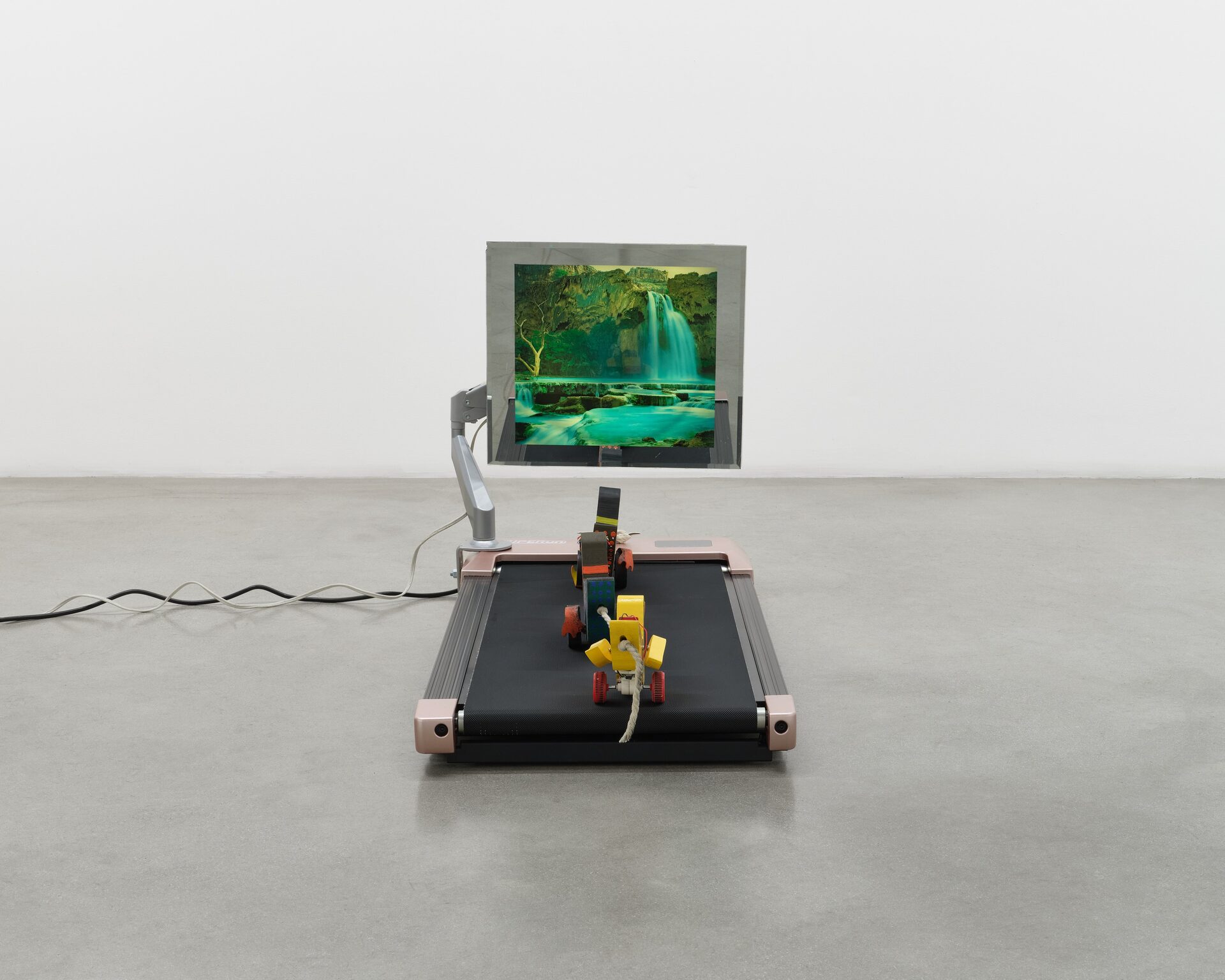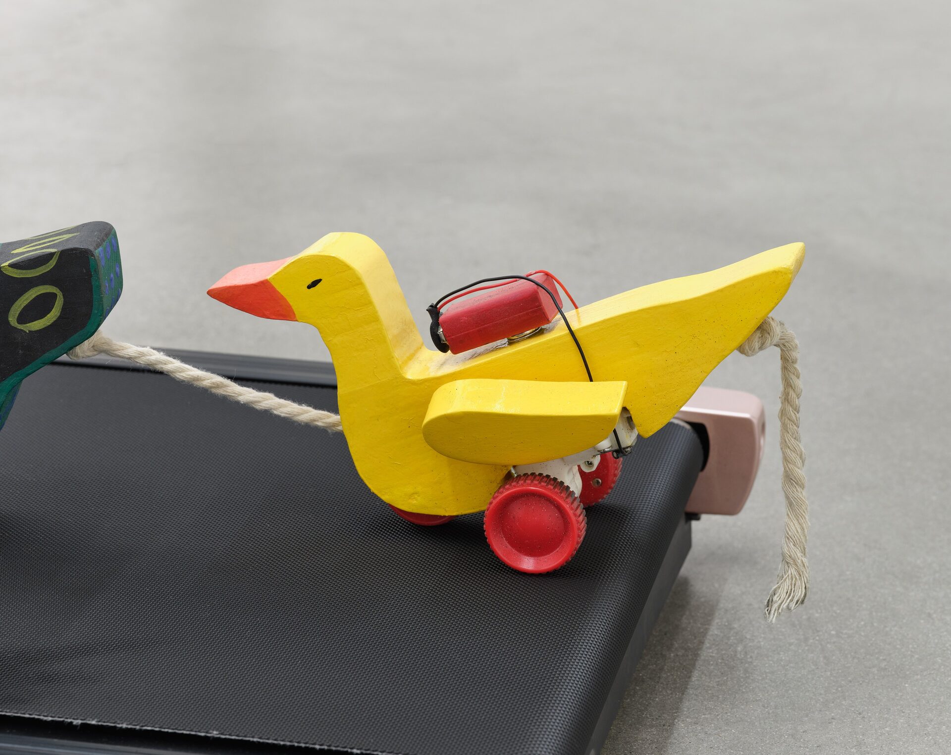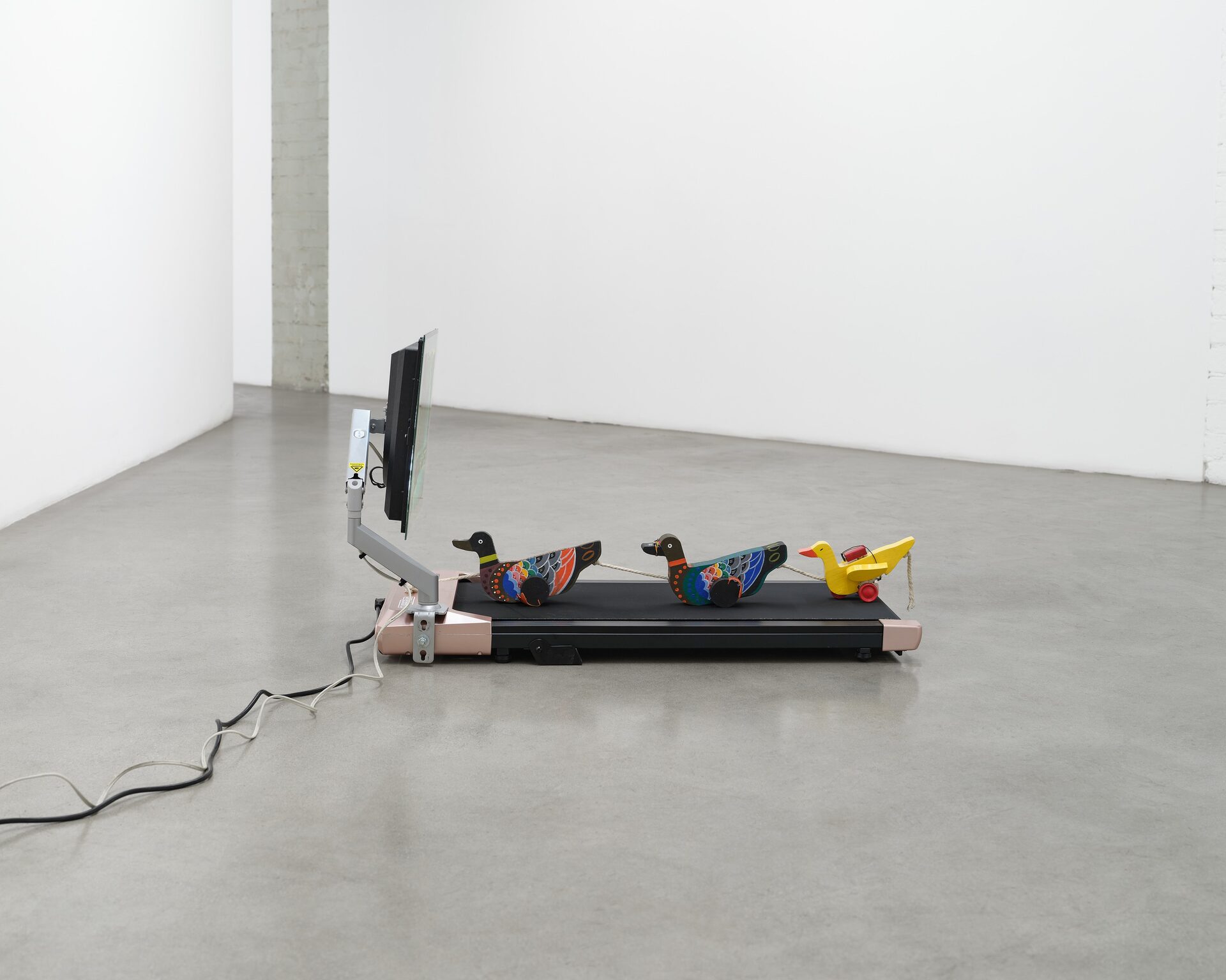 Both artists revel in the exhaustive gestures of contemporary life—the perpetual motion that leads nowhere. Youn's sculptures animate the artifacts of self-care culture, transforming massage devices and baby rockers into tireless performers locked in cycles of jiggling, turning, and pleasure-seeking labor. Wang paints photorealistic internet memes, elevating digital detritus into something worthy of sustained attention. Both artists take objects designed for instant gratification—whether physical comfort or viral dopamine hits—and trap them in a kind of amber, forcing us to reckon with…