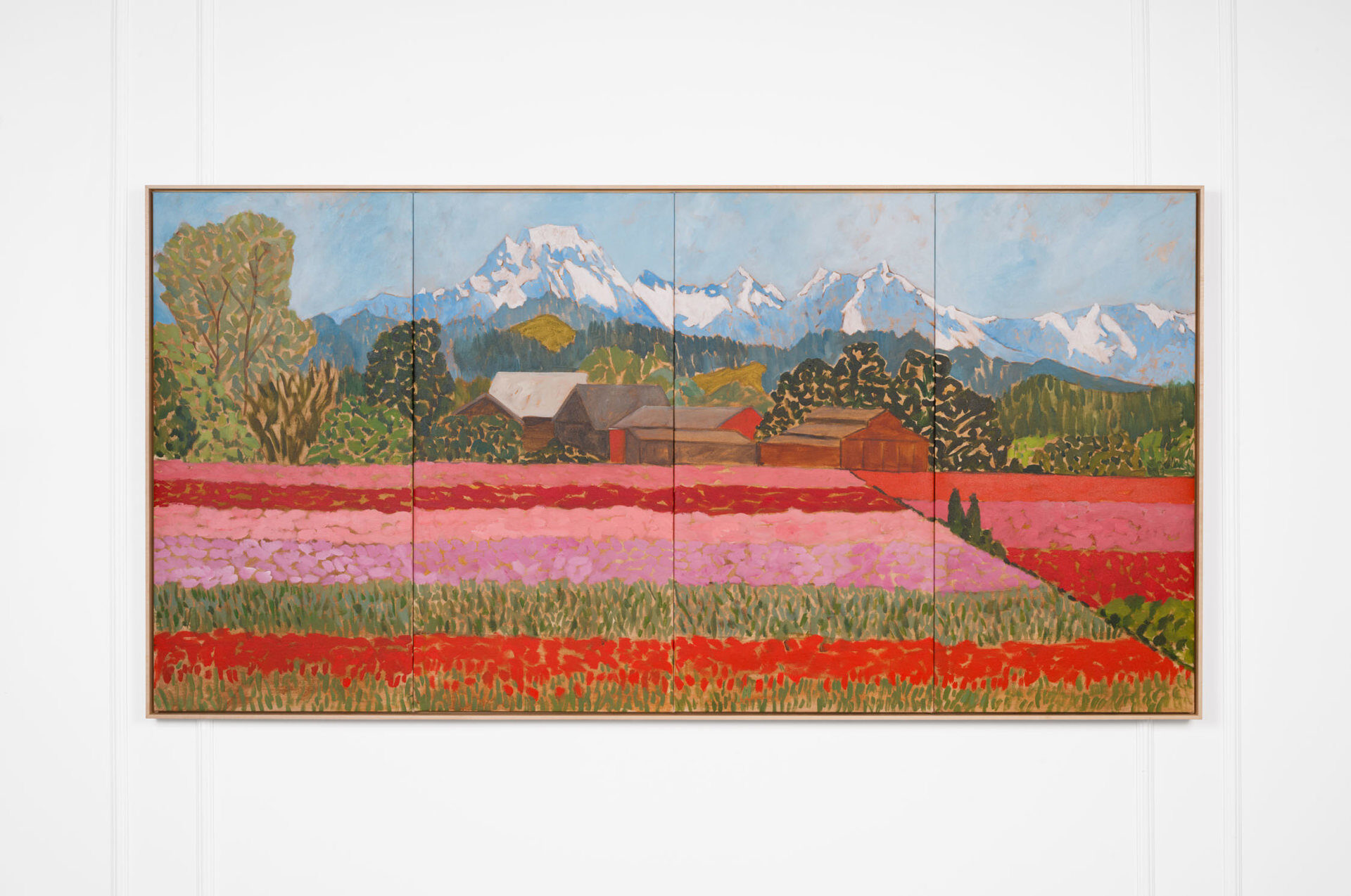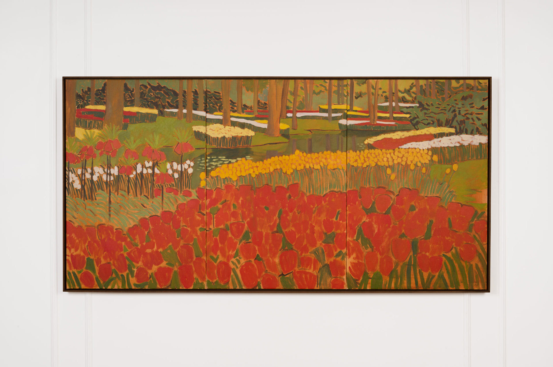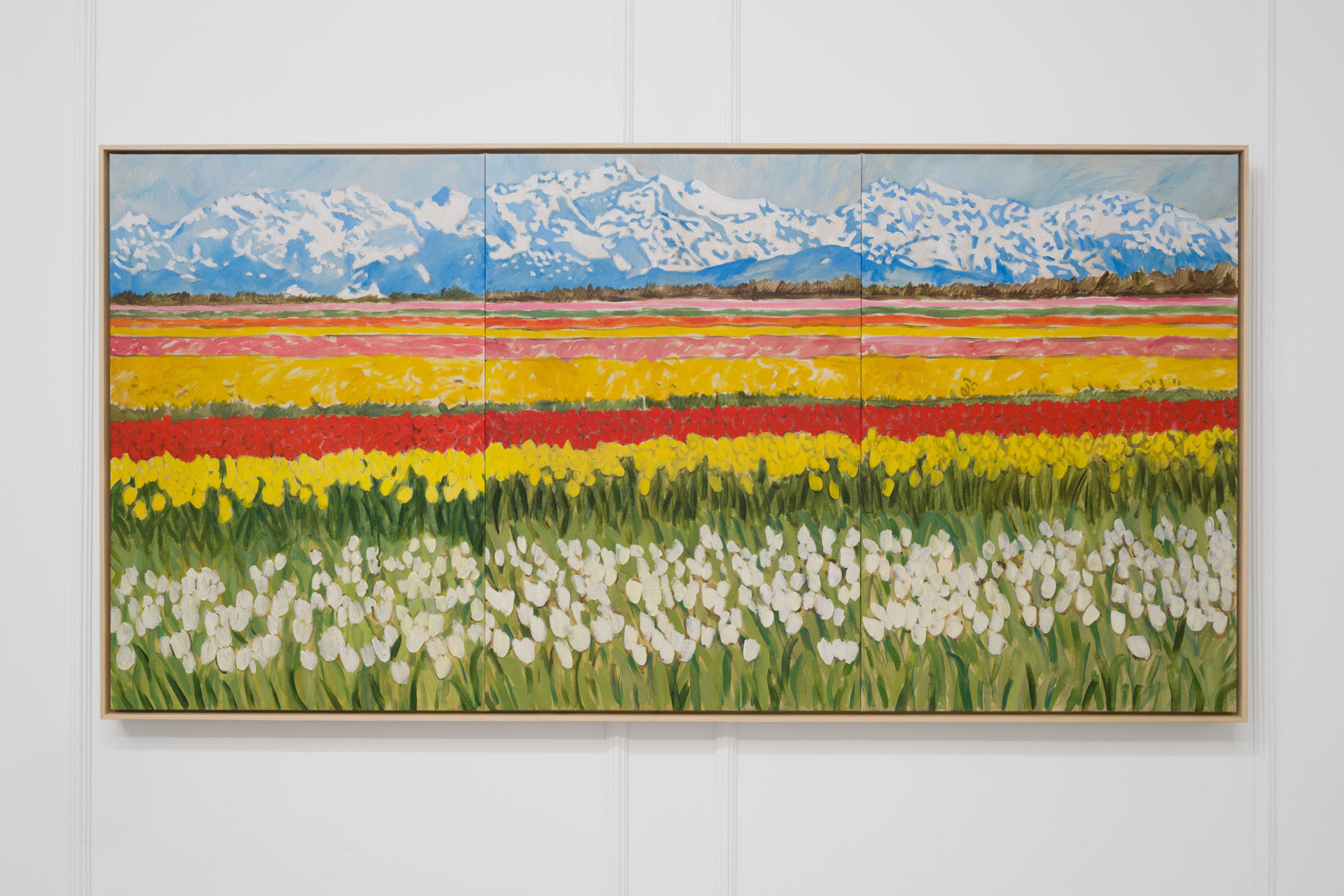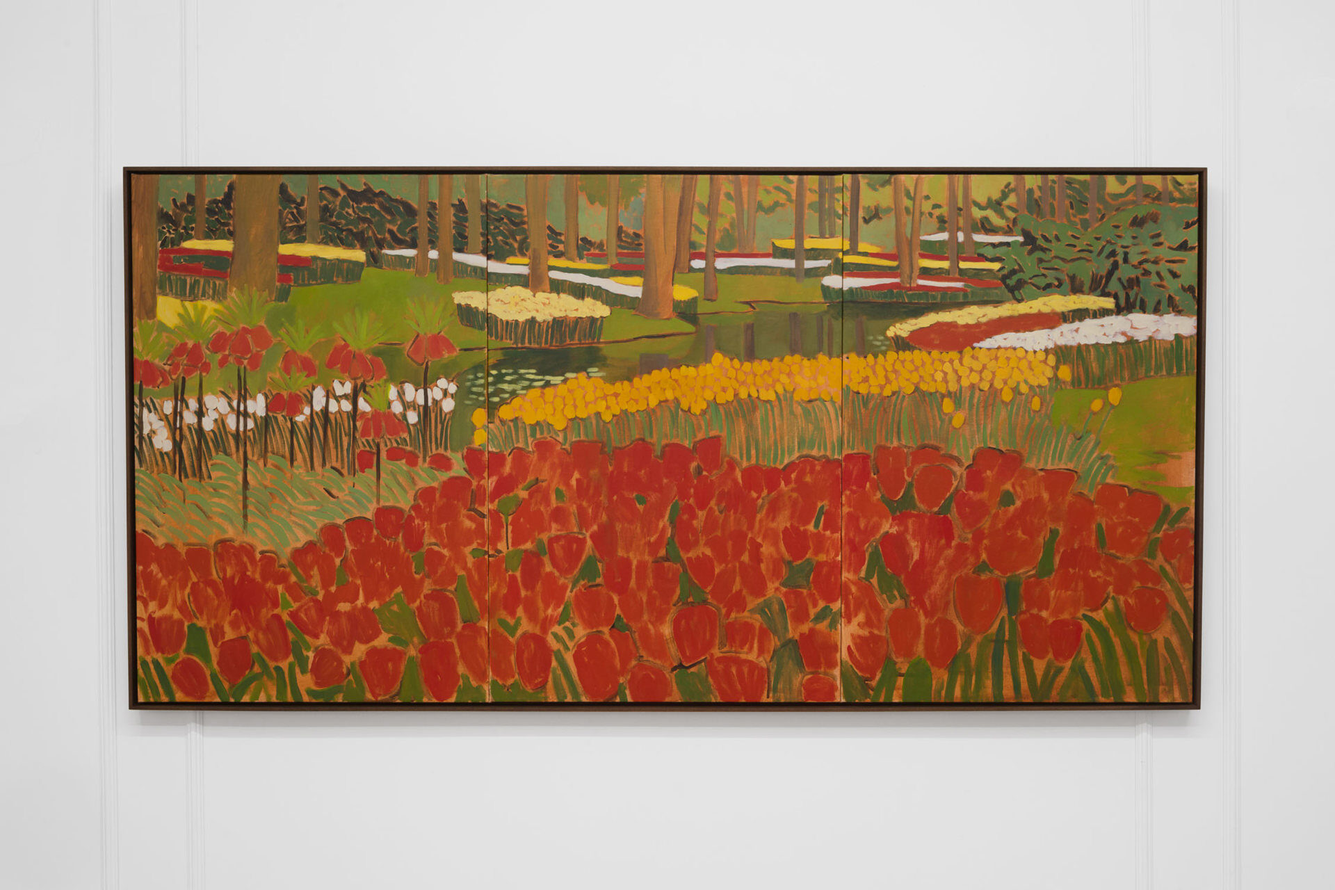 Such was Claire Milbrath’s experience when first arriving to Keukenhof gardens in Lisse, Netherlands in 2023. A pilgrimage to 79 acres of land where about seven million tulip bulbs are planted each year. In these deliberately organized colour blocks of flowers, Milbrath recognized devotion, obsession, and an extreme beauty that simultaneously felt boundless and like it was contained within an artwork, recalling Maurice Denis’s statement “that a painting […] is essentially a flat surface covered with colours, put together in a certain order.”[2] It was a feeling of rapture. It was a spectacle to behold, to move toward, approaching closer and closer, until the long strips of colour became a single flower. A flower that…