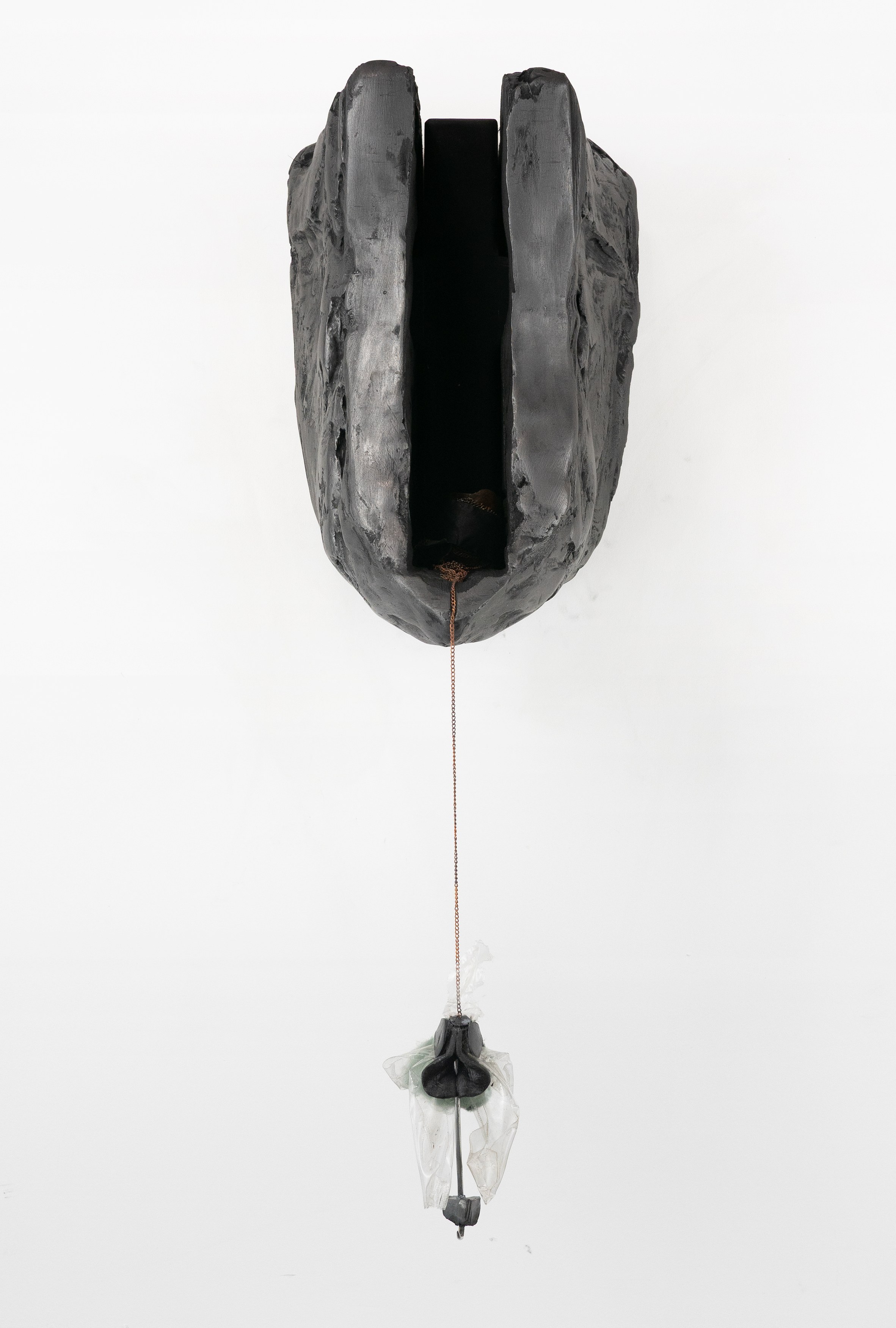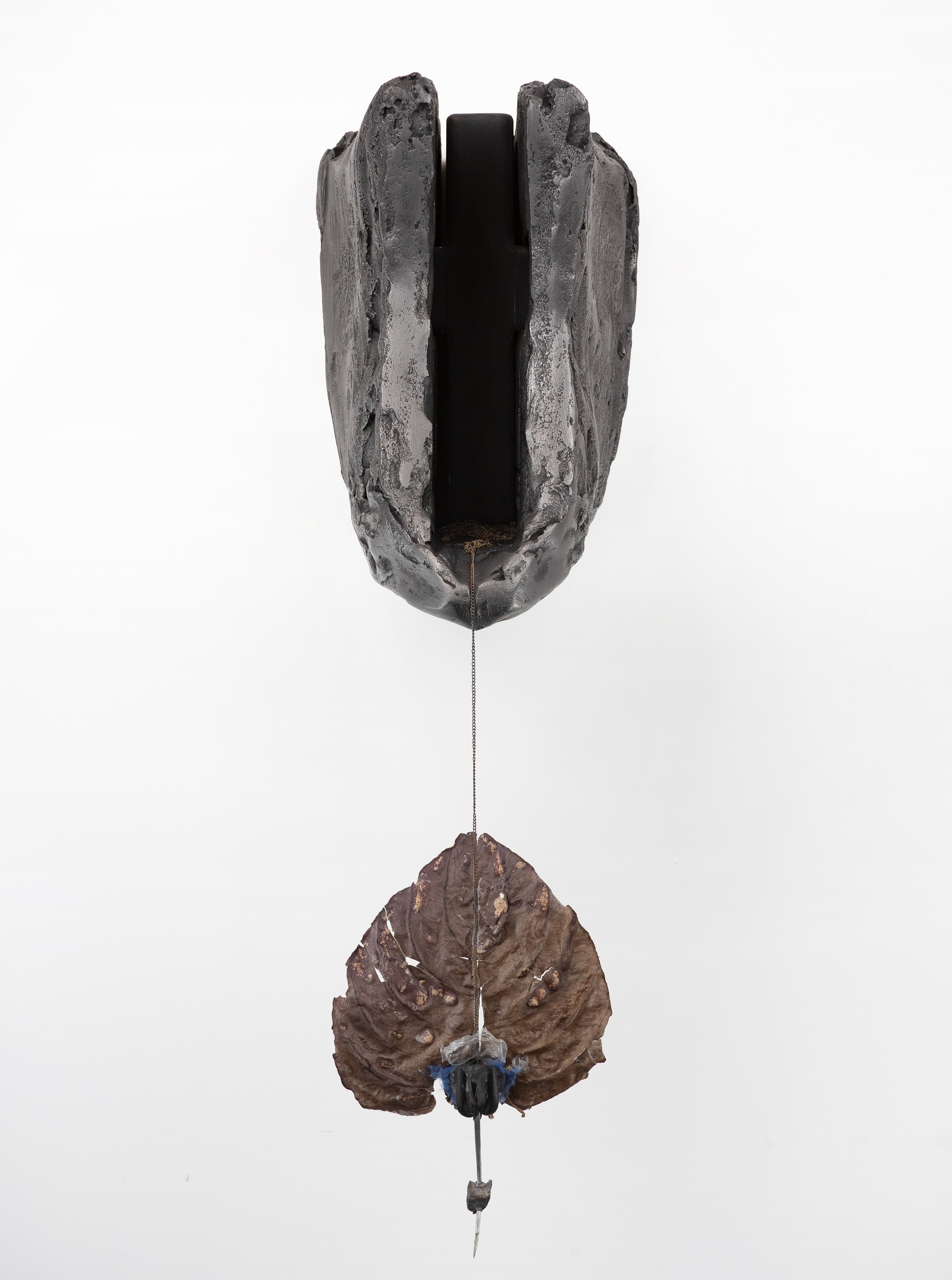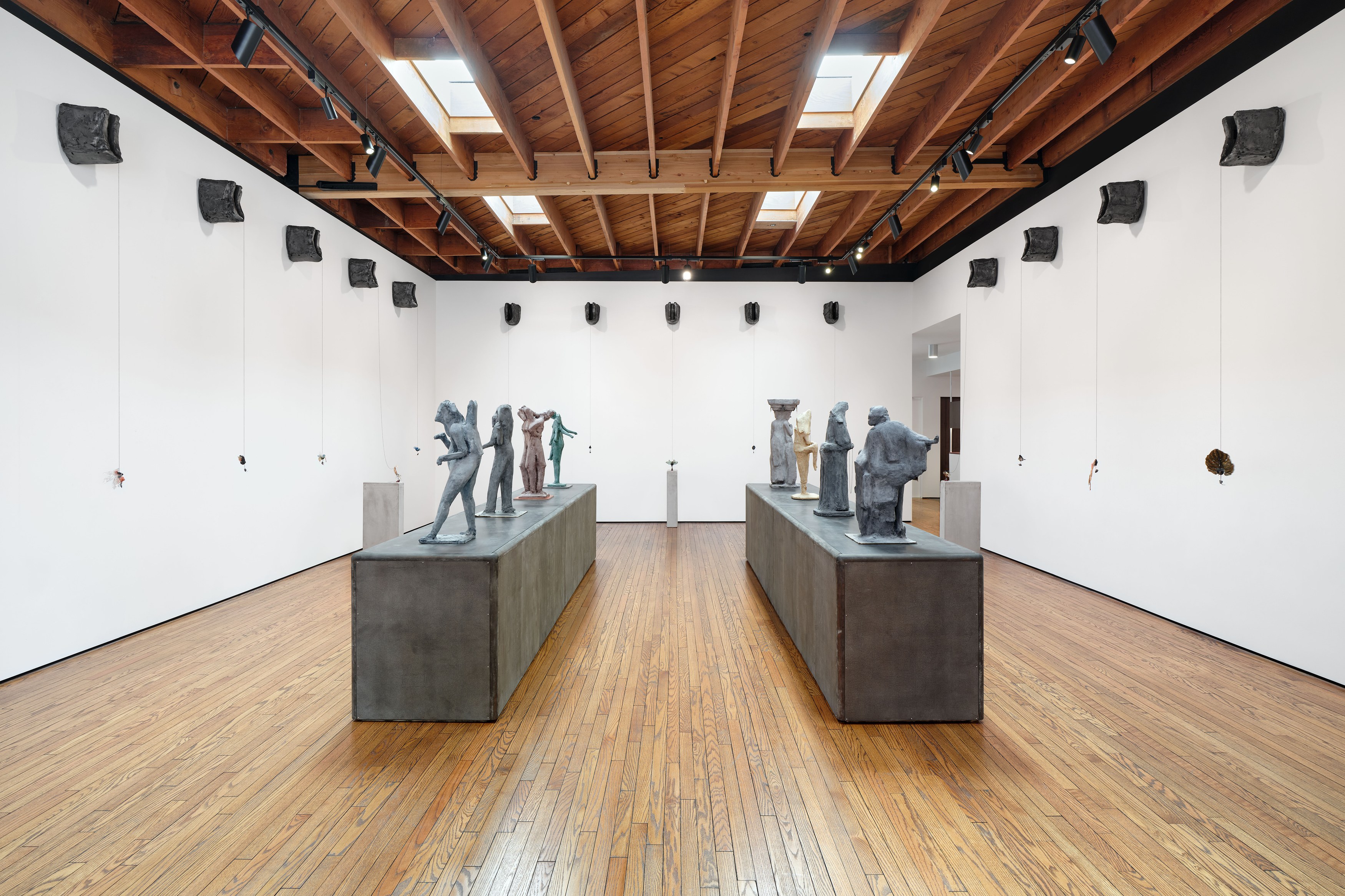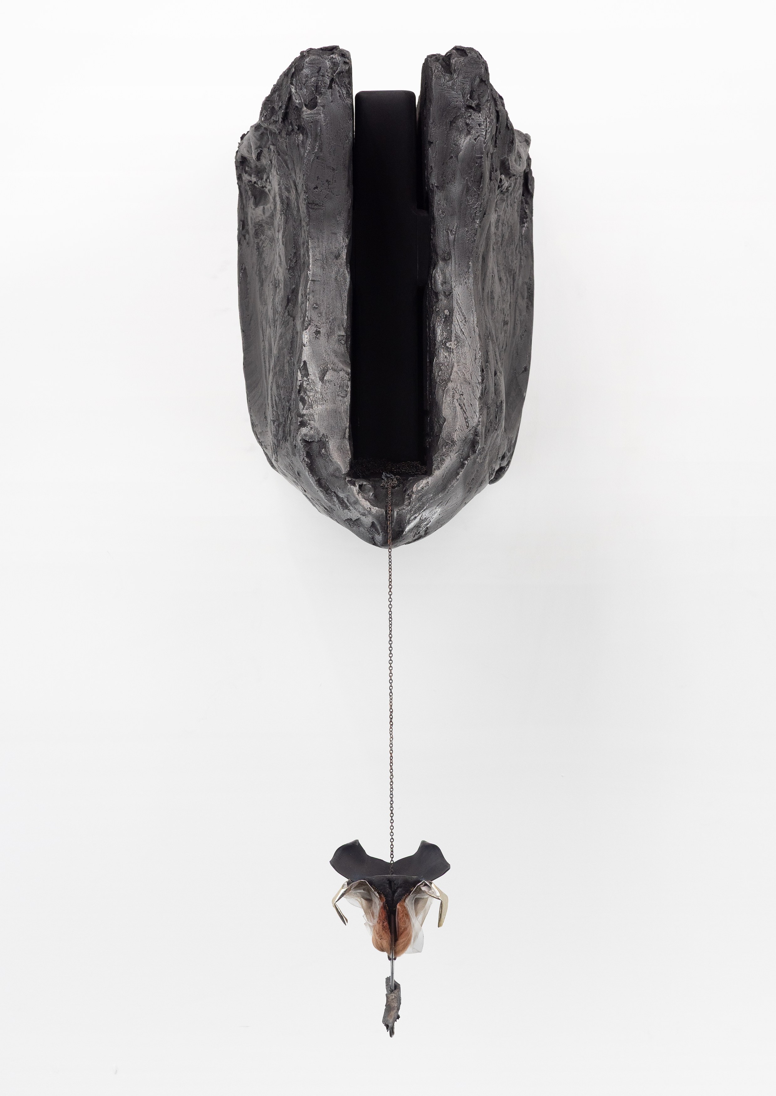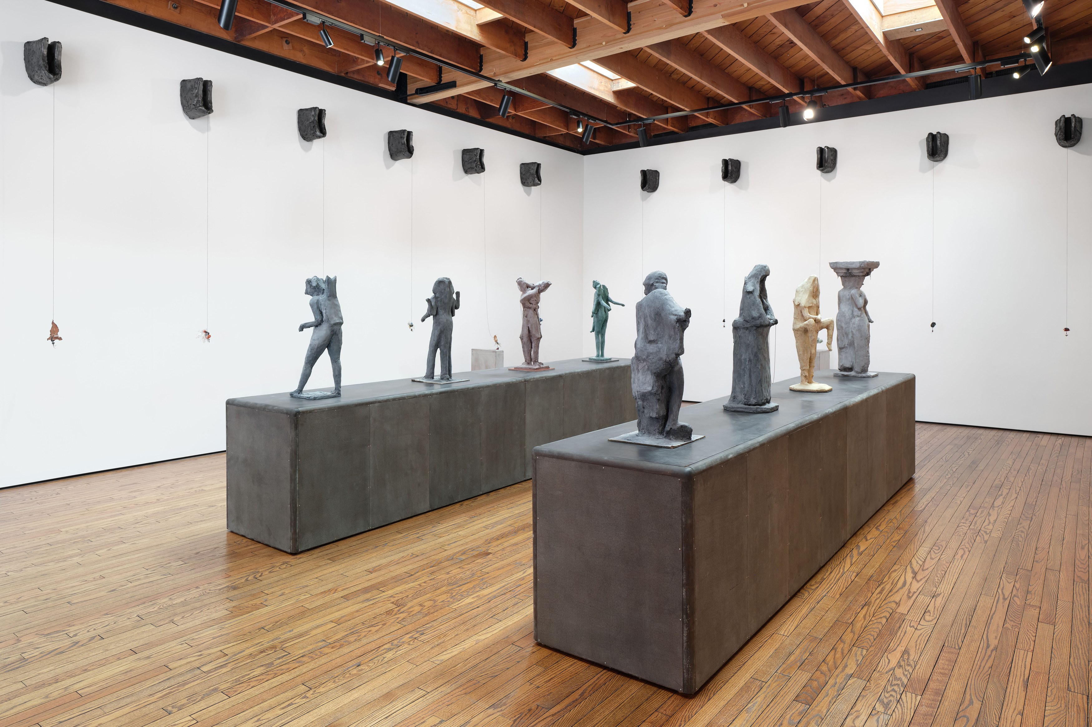 At the entrance to the gallery, visitors are greeted with a takeaway card that reads: “That we are capable only of being what we are remains our unforgivable sin.” The text is from The Claw of the Conciliator, the second volume in American writer Gene Wolfe’s four-part science fiction series, The Book of the New Sun. With this phrase in mind, the works in the exhibition begin to take shape, creating an aura of foreboding, mystery, and intrigue. Within the gallery, Geronimas has installed nineteen wall mounted sculptures around the perimeter of the room, surrounding the exposed ceiling beams and adjoining joists original to the gallery’s 1947 building. Conceived in response to the architectural hardware, his new series of Custom Joist Hanger Cover and Lures are detailed in their ornamentation and decidedly handmade, belying traditional function and mass utility. Each sculpture is composed…