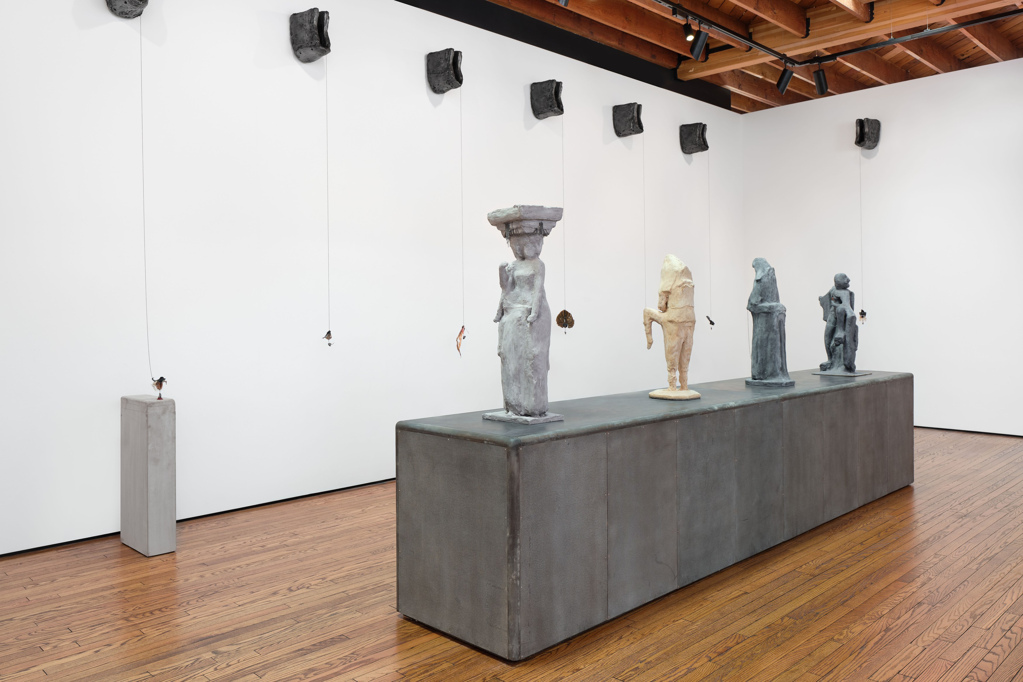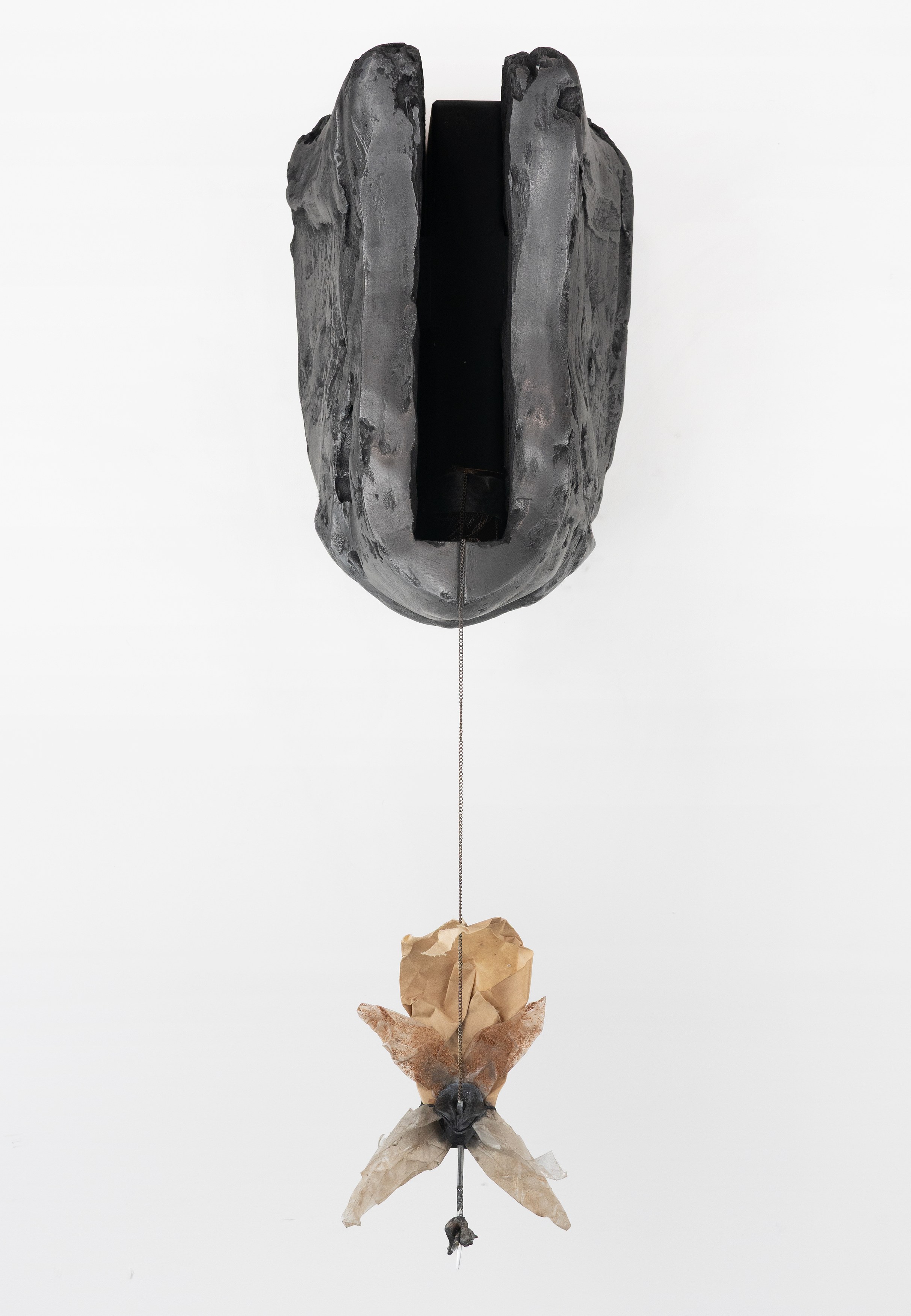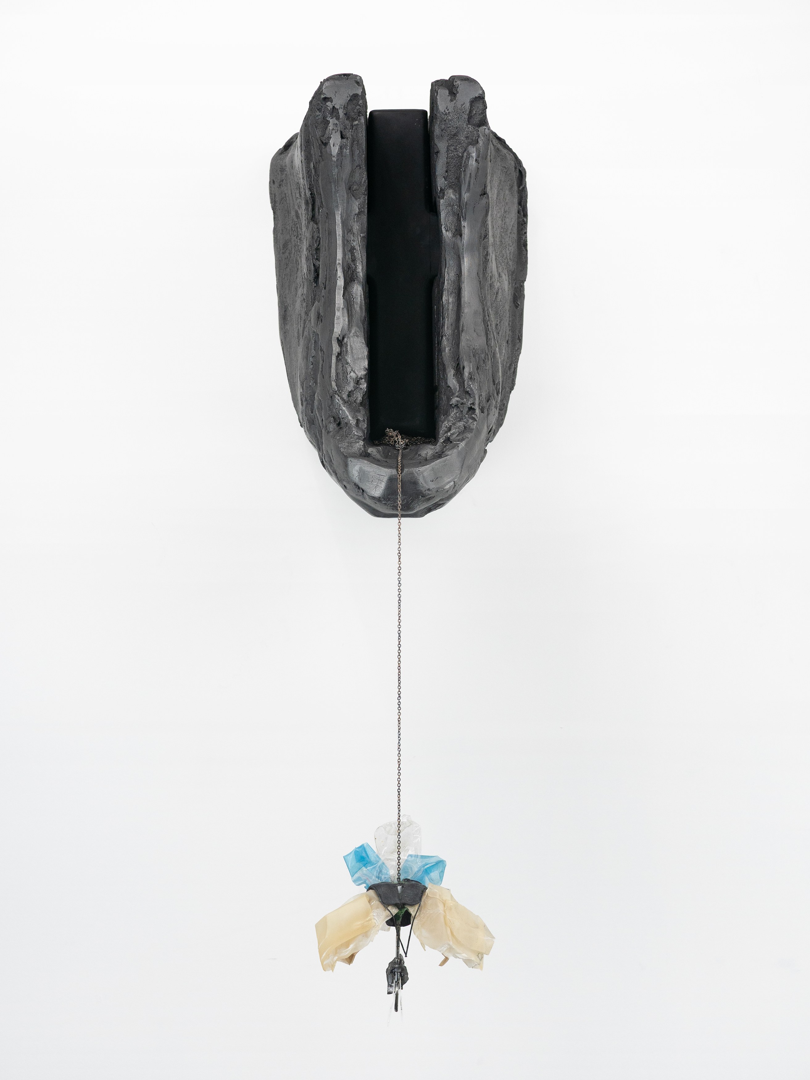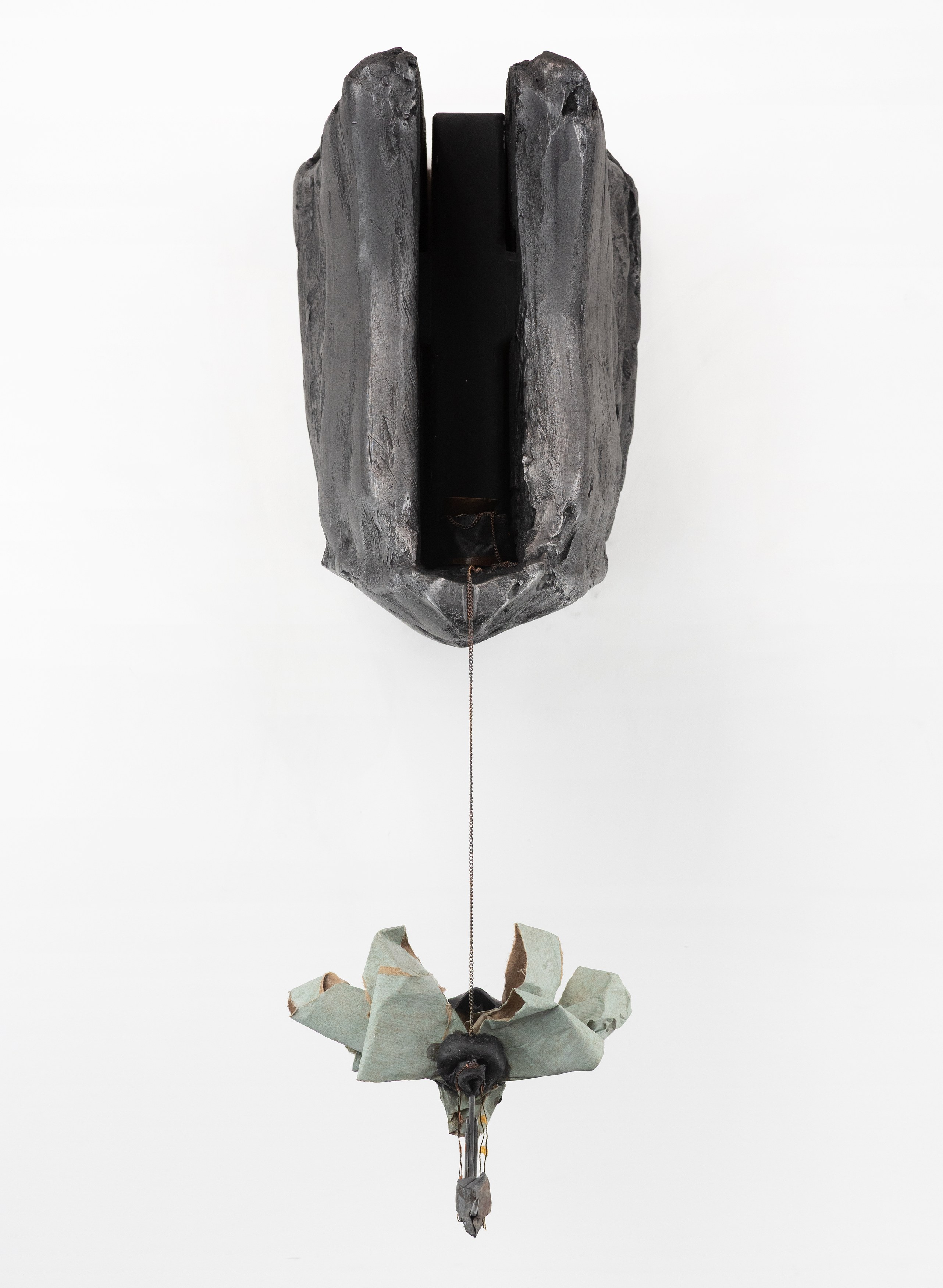 At the entrance to the gallery, visitors are greeted with a takeaway card that reads: “That we are capable only of being what we are remains our unforgivable sin.” The text is from The Claw of the Conciliator, the second volume in American writer Gene Wolfe’s four-part science fiction series, The Book of the New Sun. With this phrase in mind, the works in the exhibition begin to take shape, creating an aura of foreboding, mystery, and intrigue. Within the gallery, Geronimas has installed nineteen wall mounted sculptures around the perimeter of the room, surrounding the exposed ceiling beams and adjoining joists original to the gallery’s 1947 building. Conceived in response to the architectural hardware, his new series of Custom Joist Hanger Cover and Lures are detailed in their ornamentation and decidedly handmade, belying traditional function and mass utility. Each sculpture is composed…