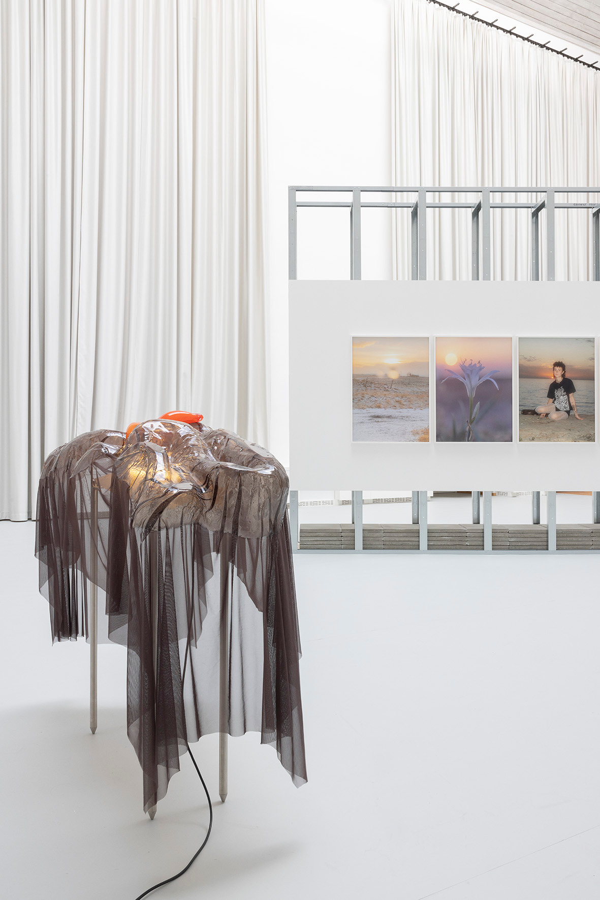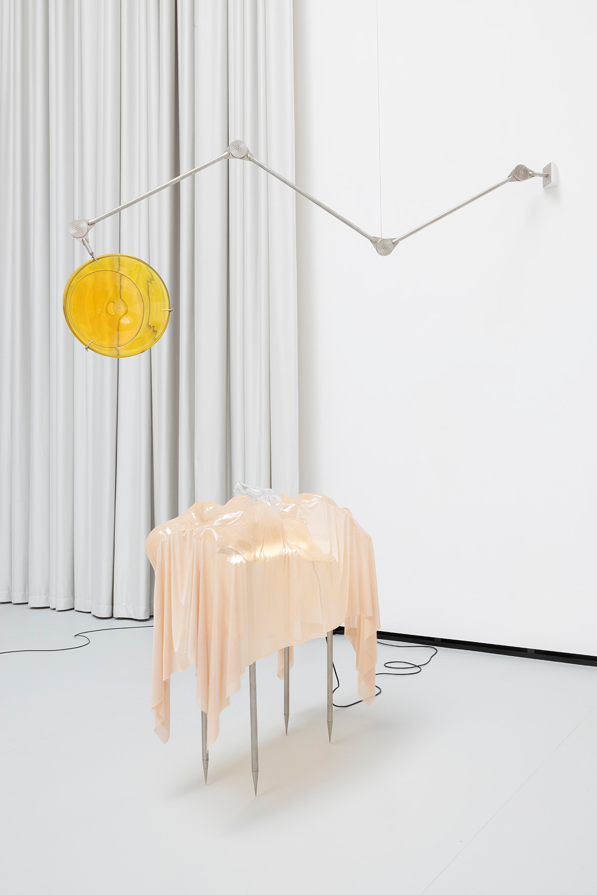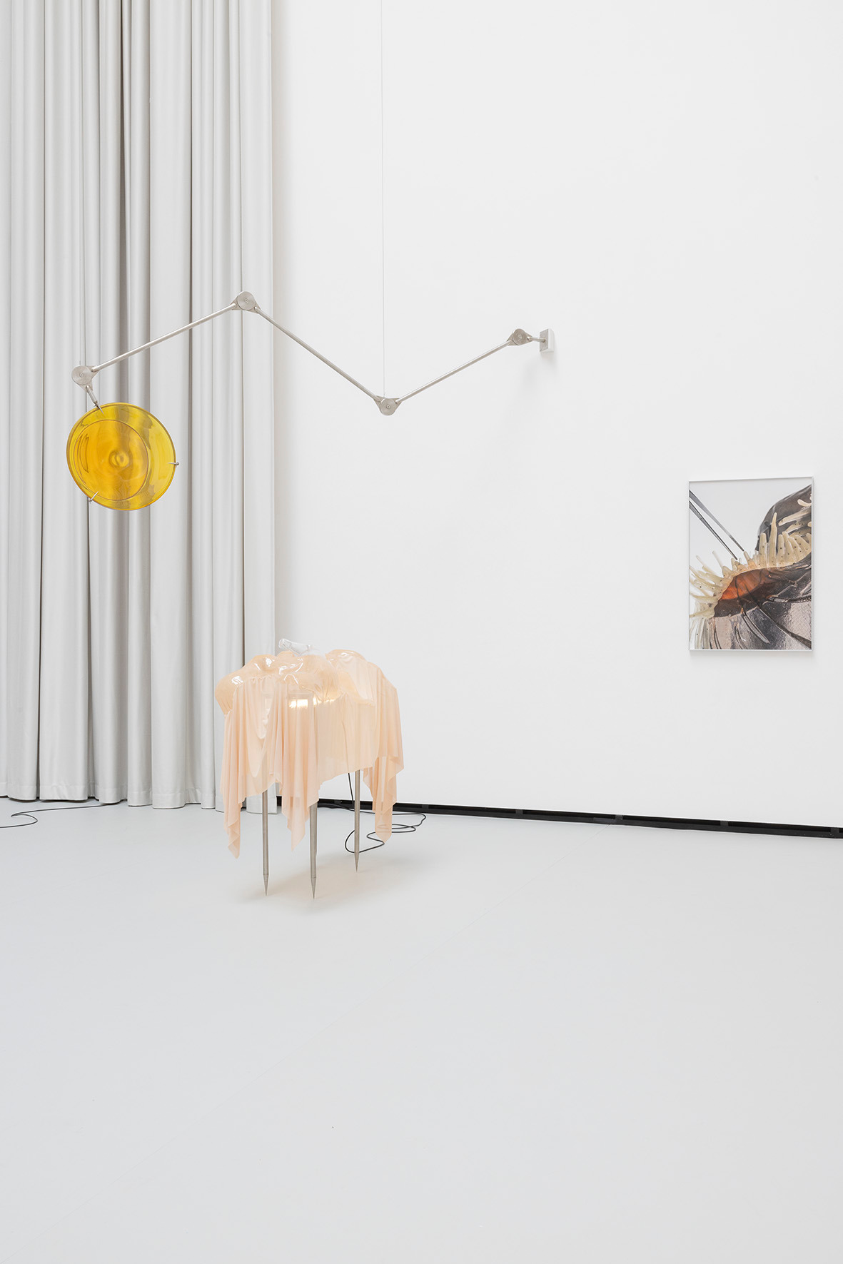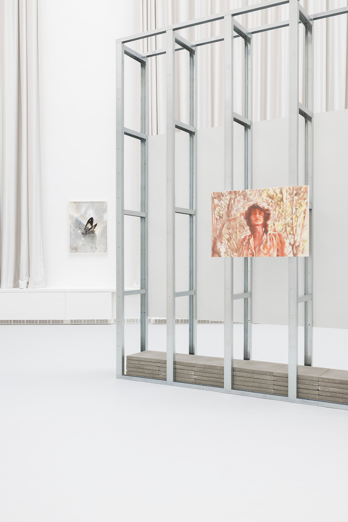 The ceiling of THE HALL, far above, leaves space for a light in which there is permanence – a light evenly diffused, entering the space from above and settling softly across walls and objects. There is a grey linoleum floor, quite hostile, amplifying the feeling of not lingering too long. This is the room in which you are standing.