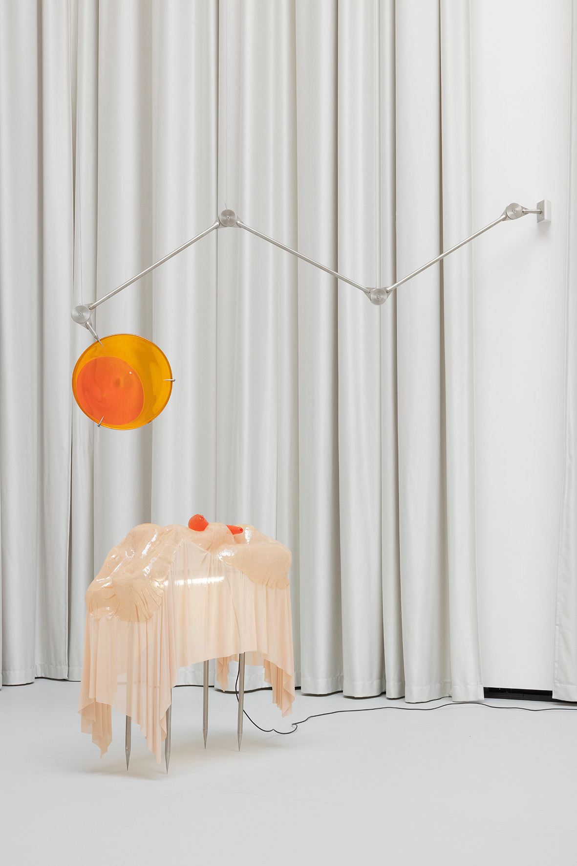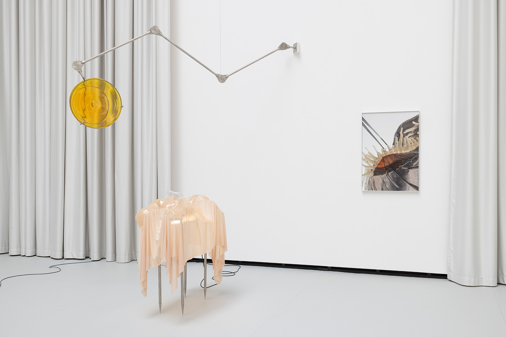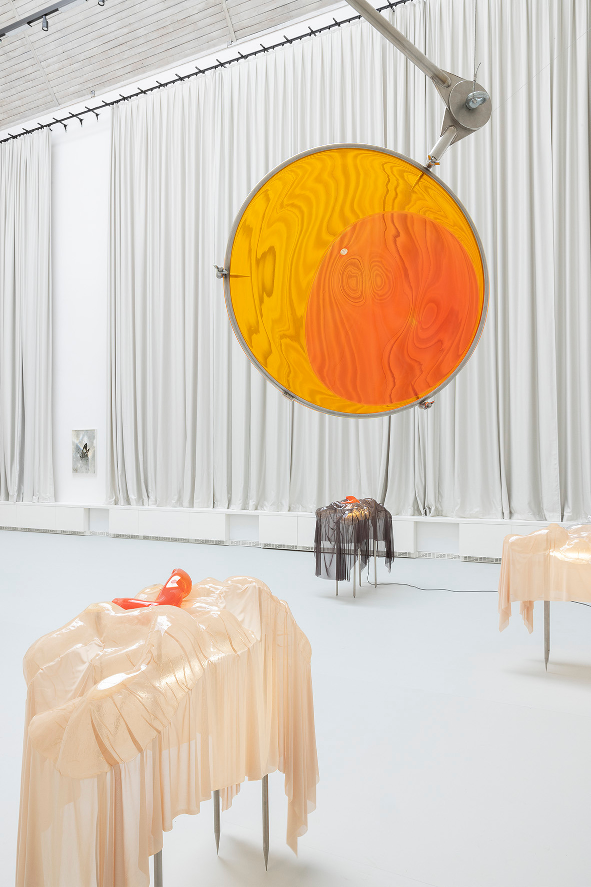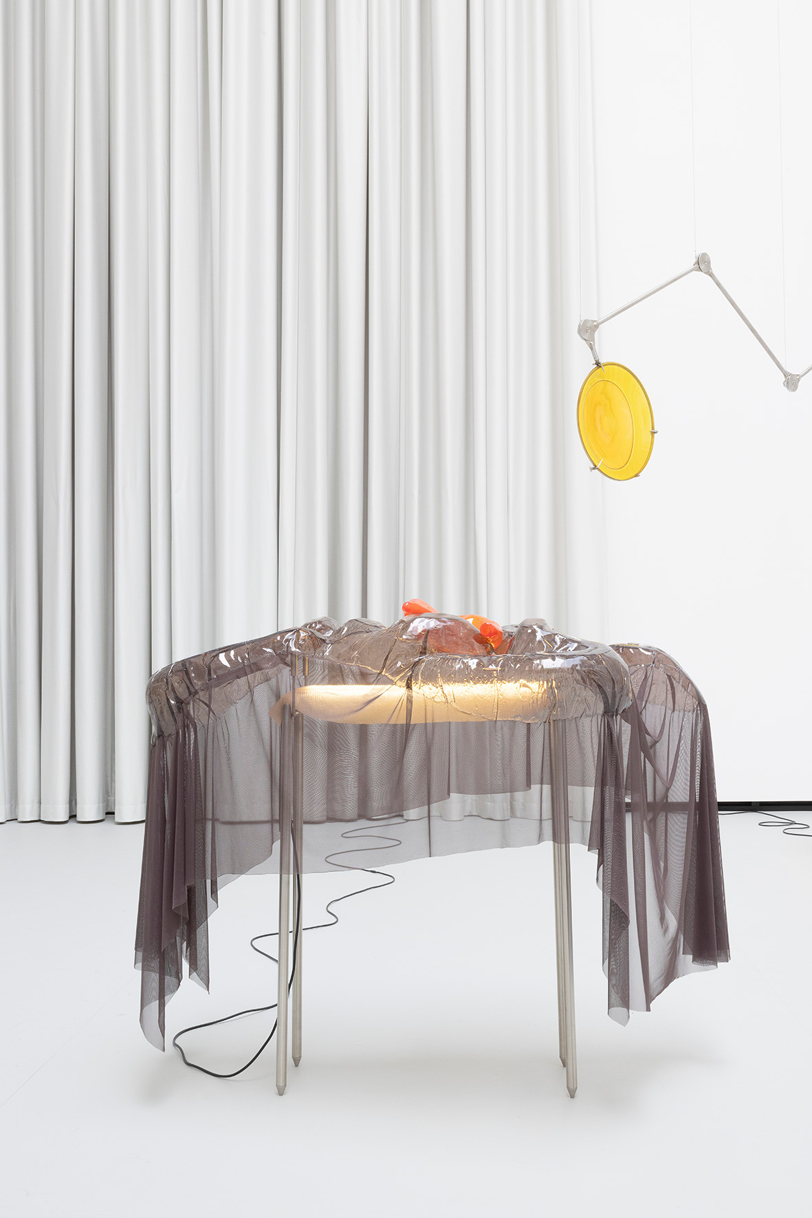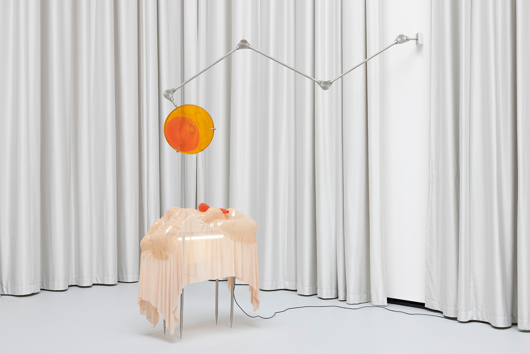 The ceiling of THE HALL, far above, leaves space for a light in which there is permanence – a light evenly diffused, entering the space from above and settling softly across walls and objects. There is a grey linoleum floor, quite hostile, amplifying the feeling of not lingering too long. This is the room in which you are standing.
