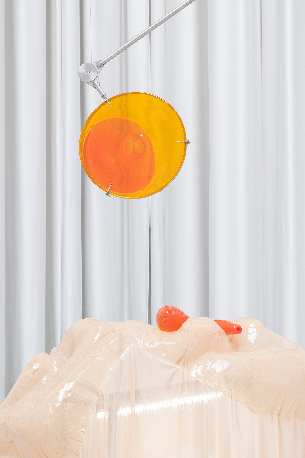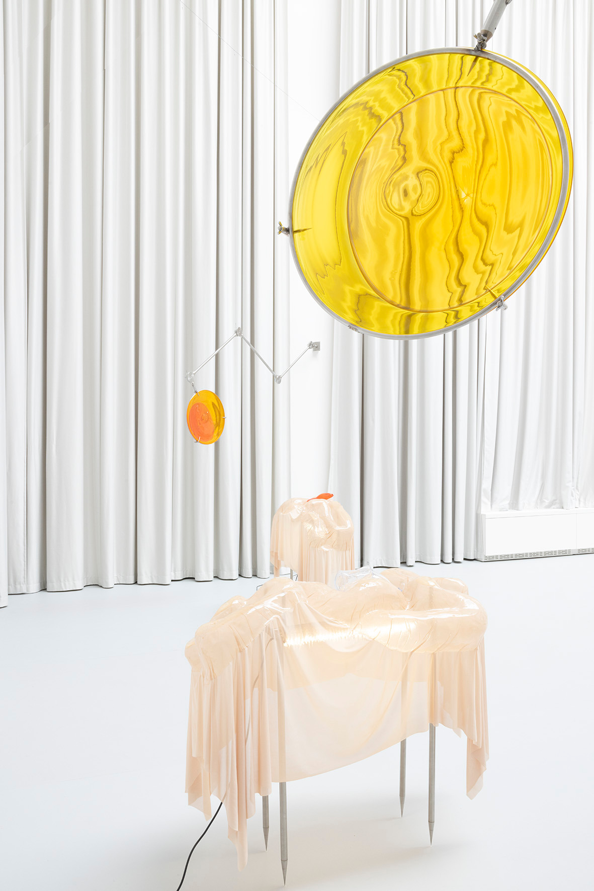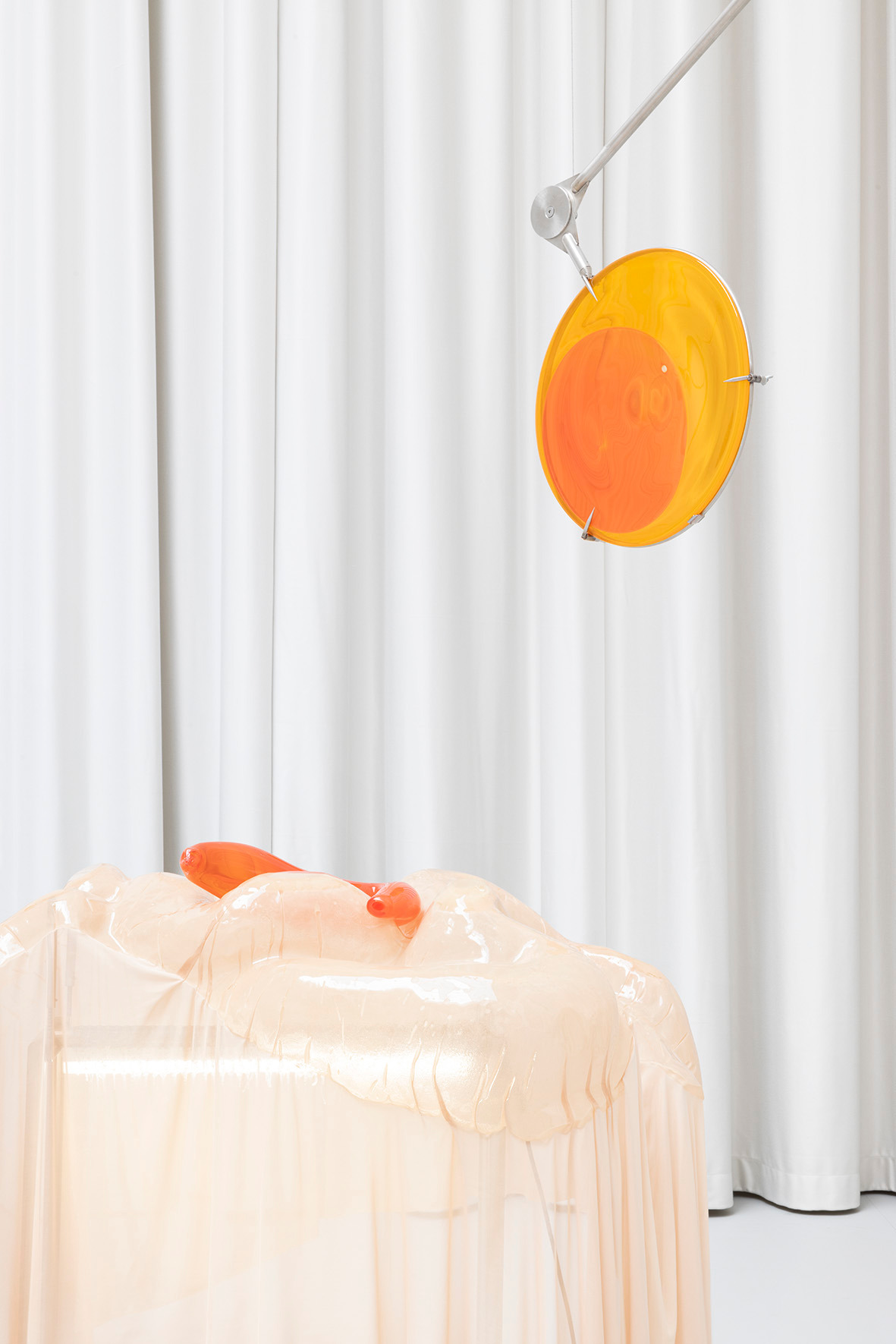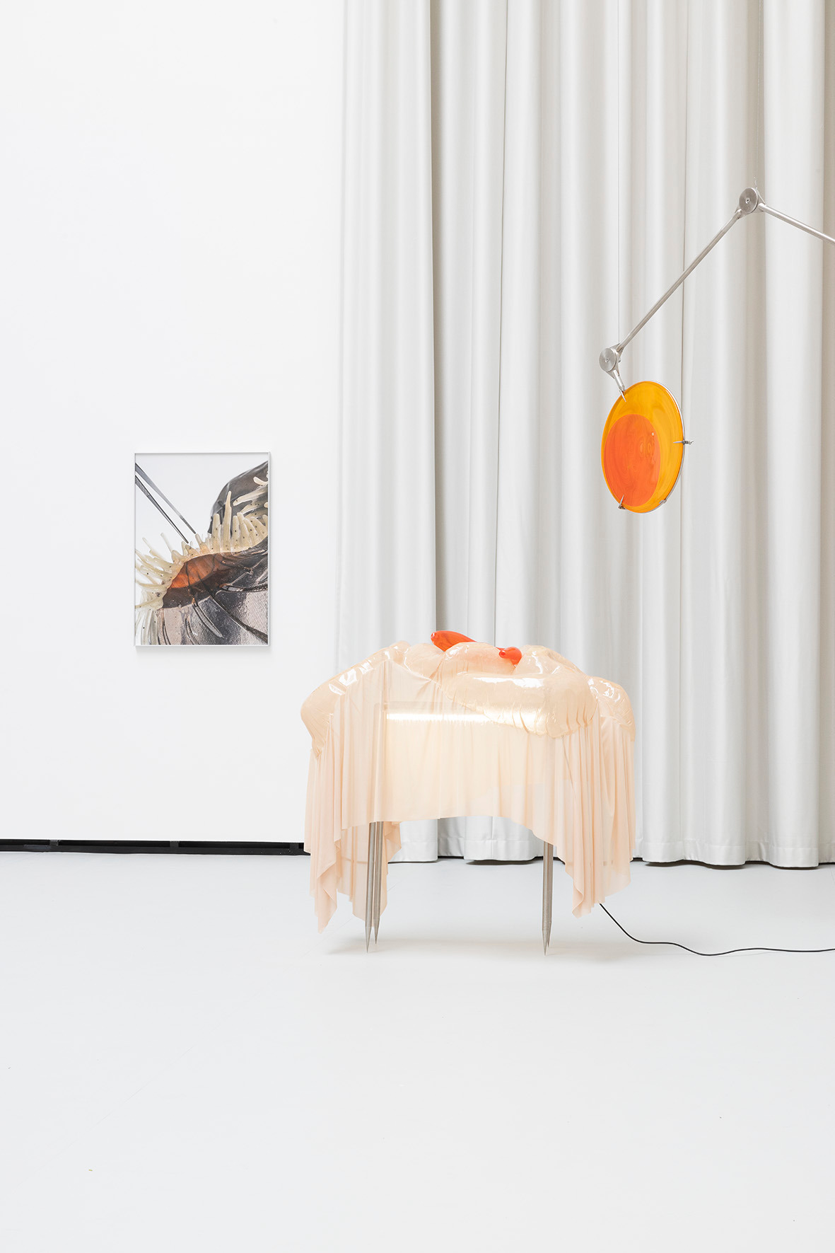 The ceiling of THE HALL, far above, leaves space for a light in which there is permanence – a light evenly diffused, entering the space from above and settling softly across walls and objects. There is a grey linoleum floor, quite hostile, amplifying the feeling of not lingering too long. This is the room in which you are standing.