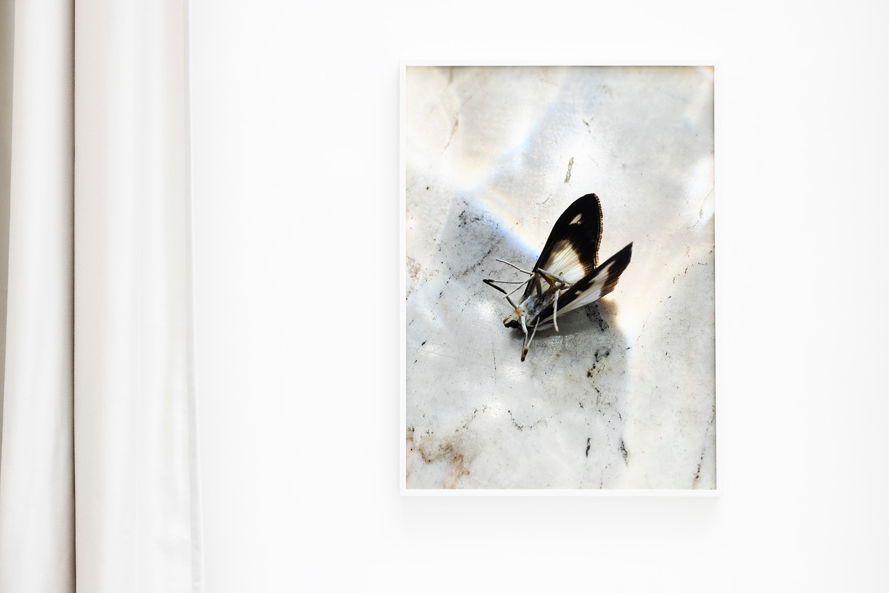 Late in the afternoon, the sun was attempting to set, a moth flew in, circled the space, realized its error, and flew out through a hole in the skylight, where a thin beam of light makes countless dust particles dance.
