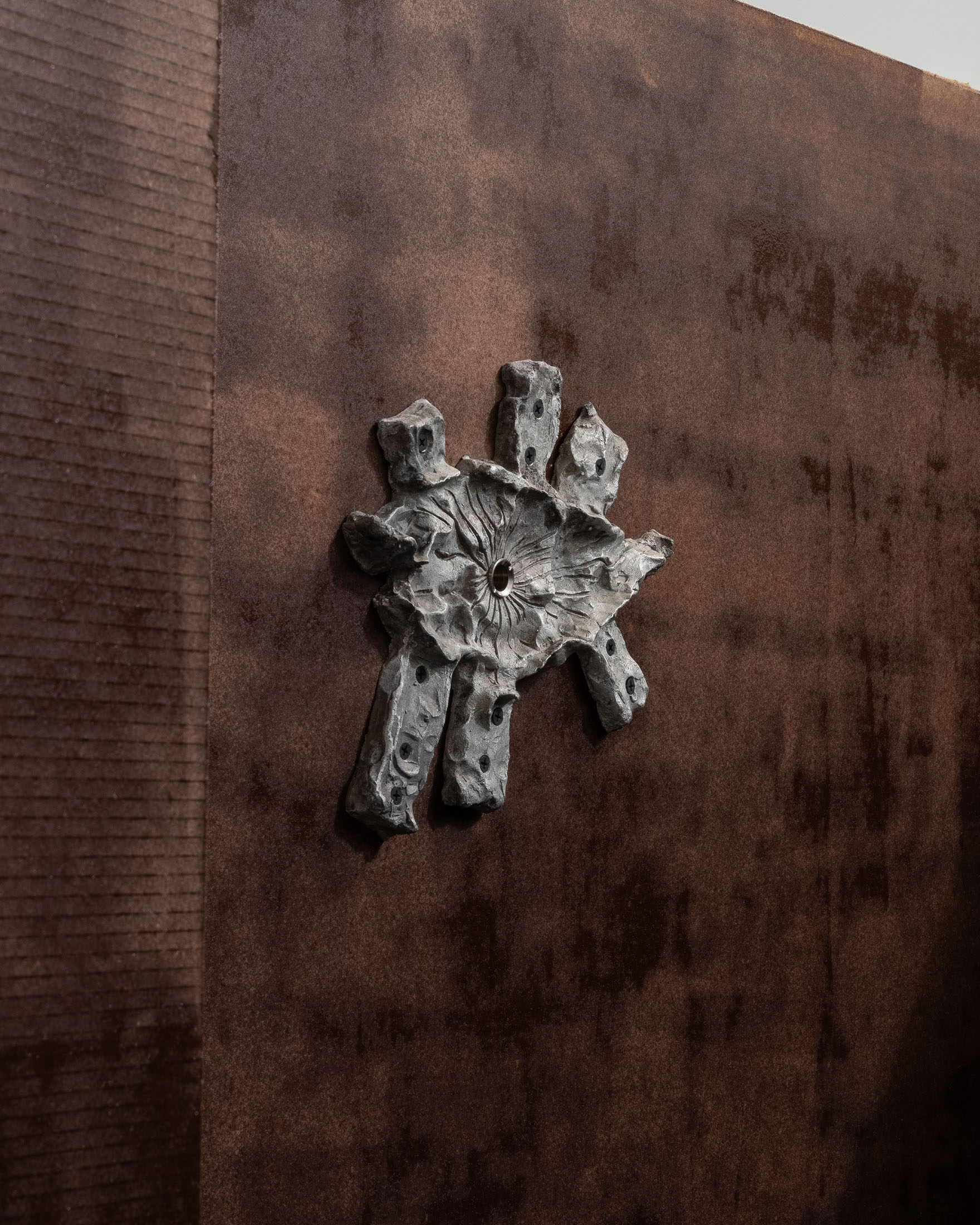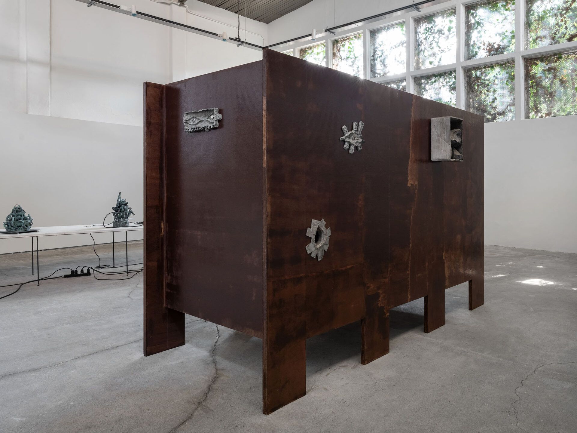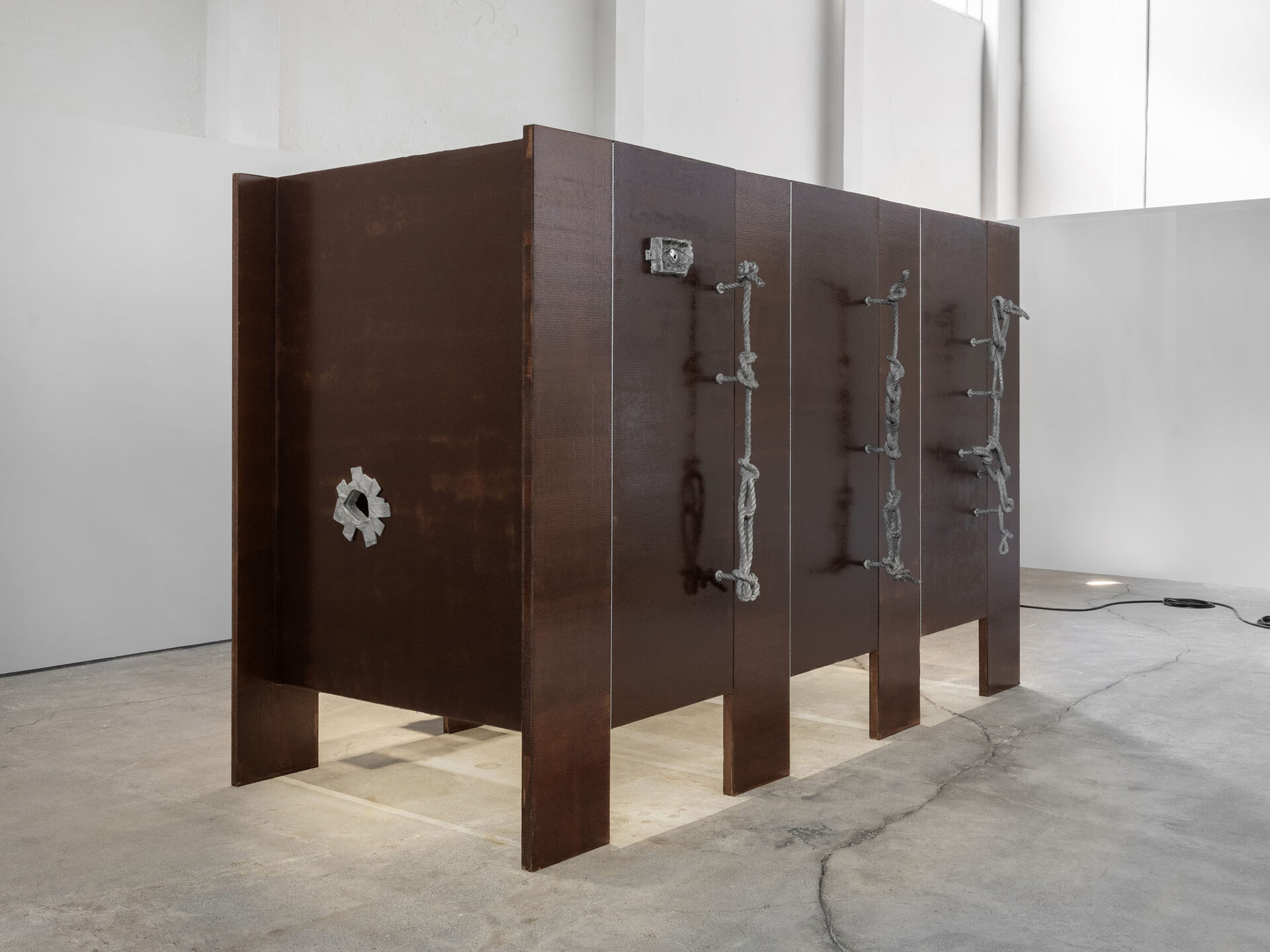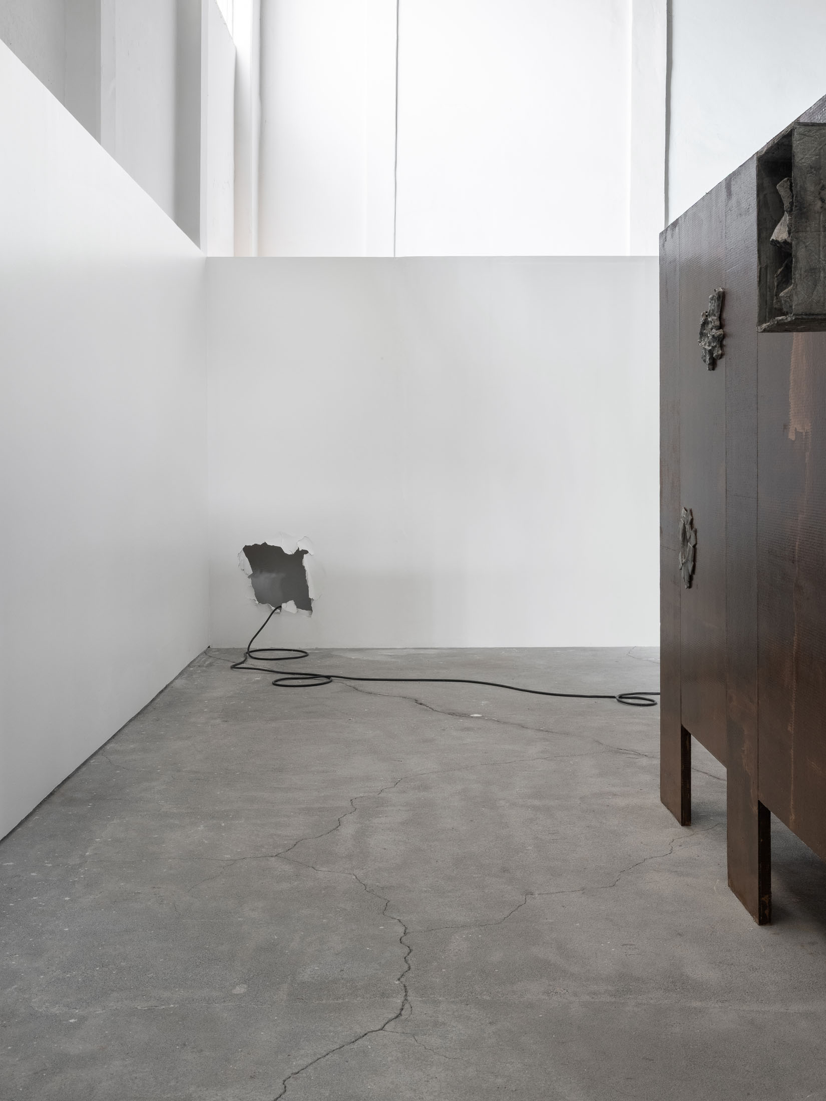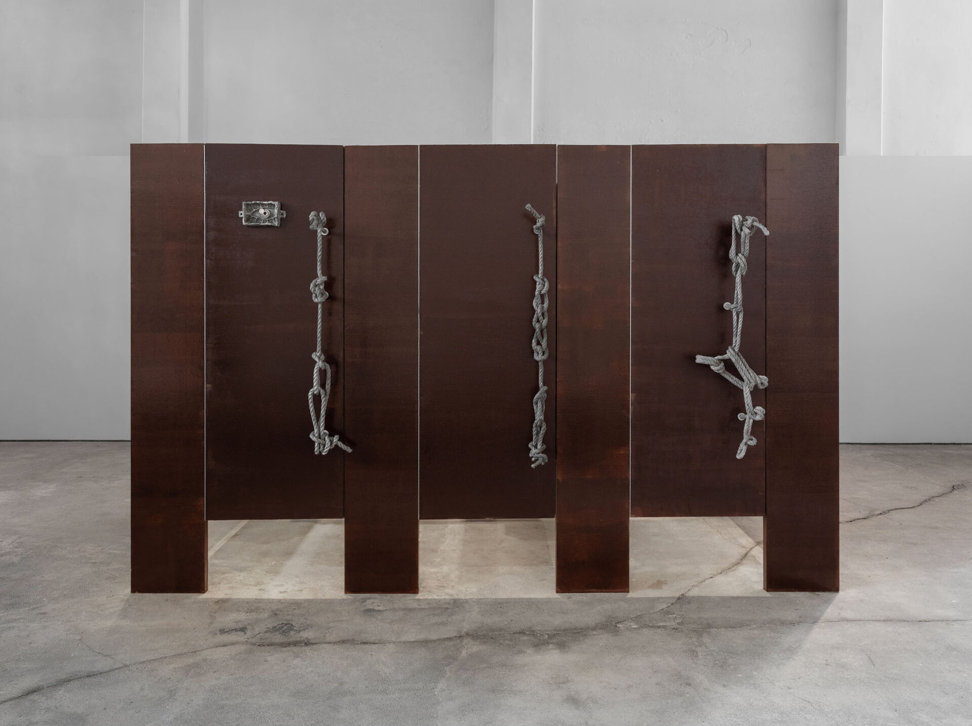 The more cursed everything appears, the more we look at the persistence of myth, ritual and superstition, the manifold human practices of grasping at agency through rites and customs even in our technologically deterministic present: why do we still throw coins into fountains? Our superstitious spirit ebbs as we grow ever more distant from the temperamental rain that could suffocate the crops and engorge the rivers to disastrous width; and it flows as we crawl closer to enduring a horizon full of similarly catastrophic weather. This show is then an alloy, mixing together the deep past and the uncertain future to represent a current moment that continuously gets harder, tougher, impossible to break out of.