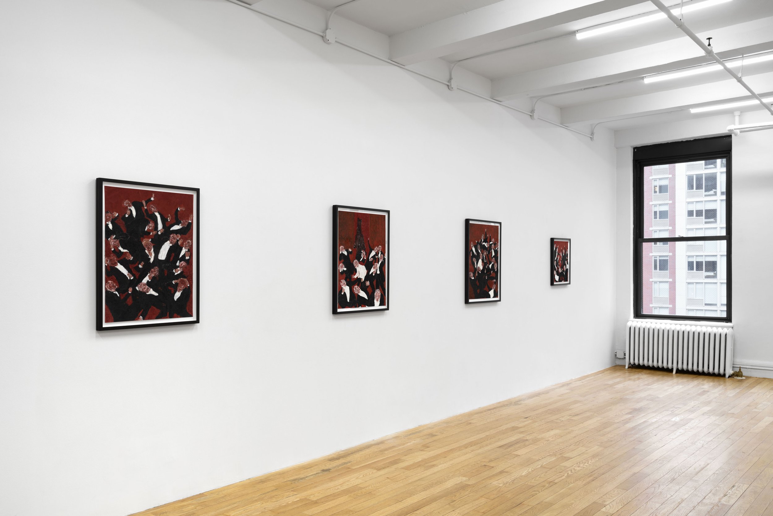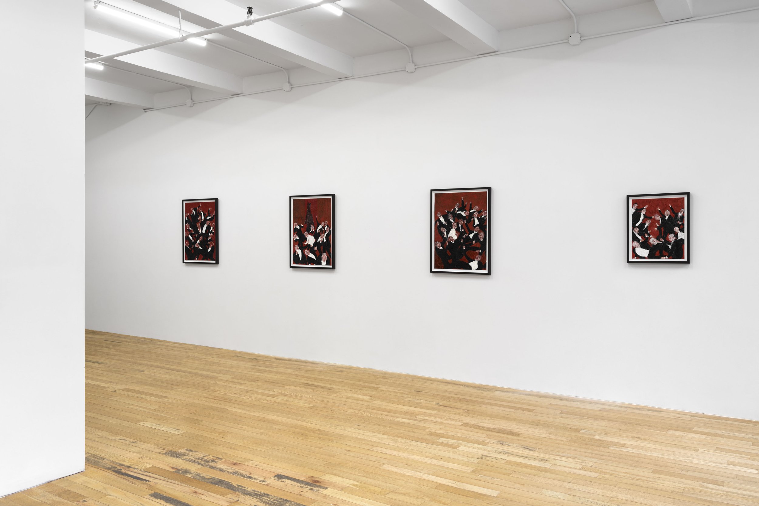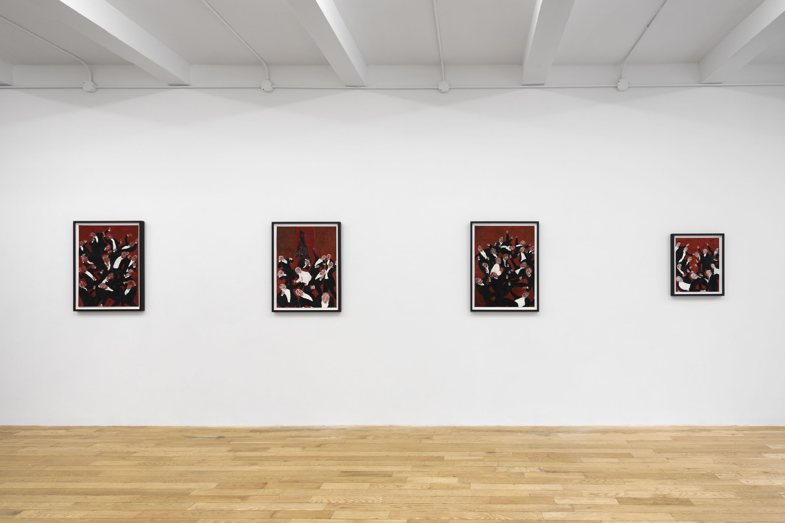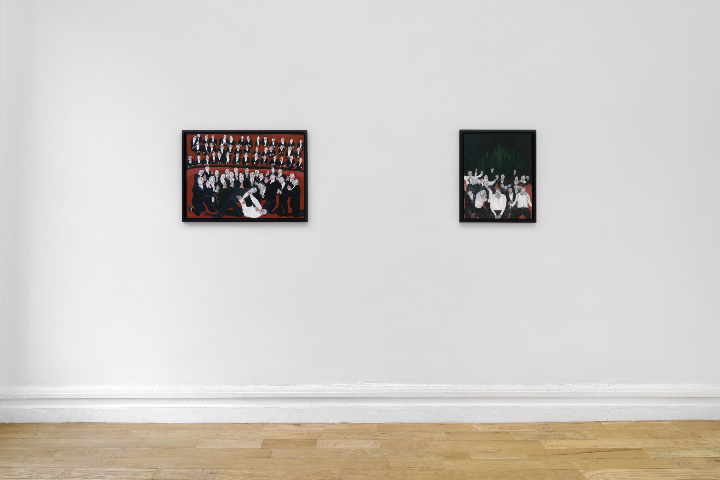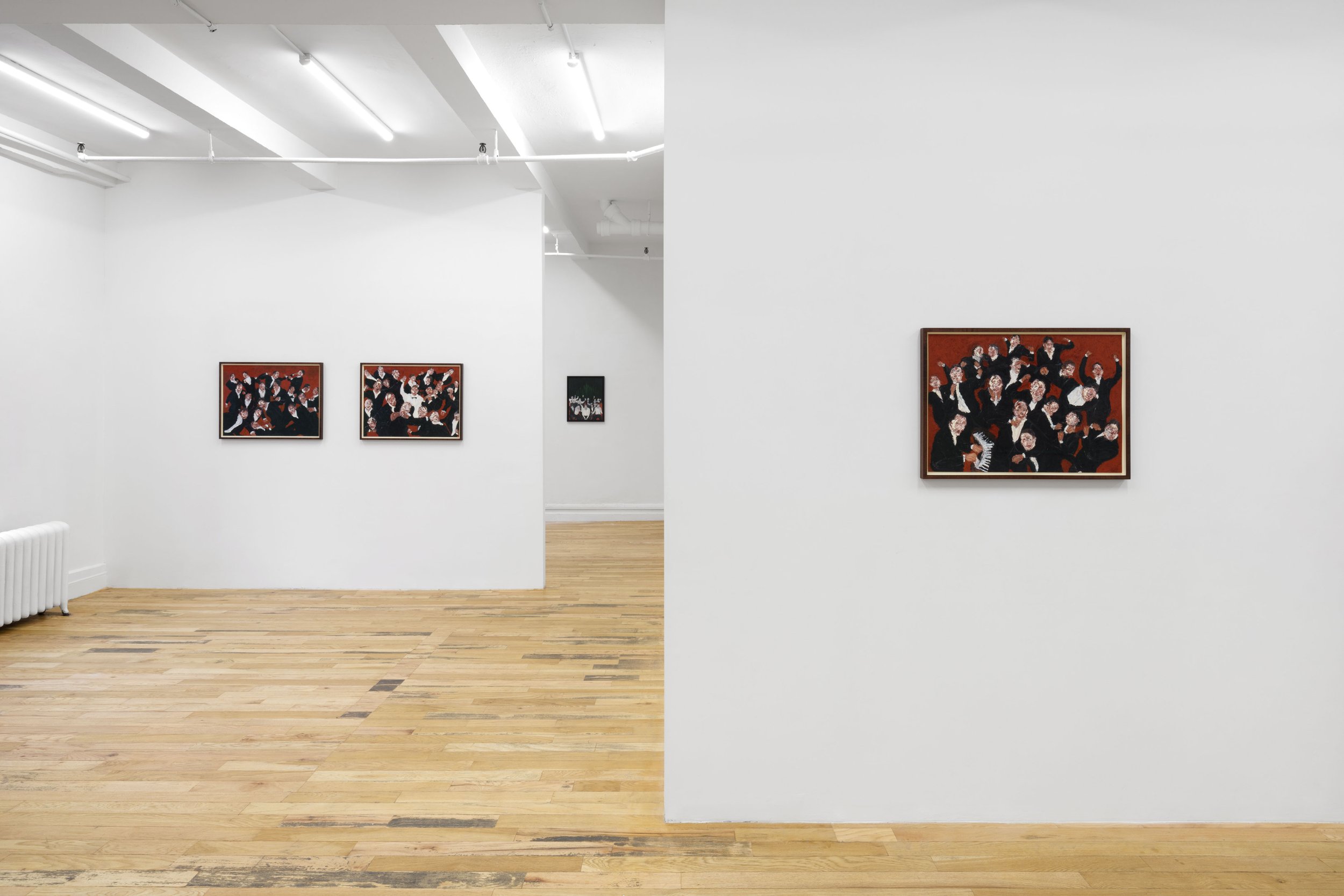 Known for his work in music composition, Raphael emerges here as an energetic painter of allegorical narratives and expressionistic gestures. Through a series of densely textured works in oil, Raphael conjures a feverish theatre of human behavior with both caustic wit and profound empathy. Indicative of the breadth of Raphael’s multidisciplinary practice, this body of paintings is accompanied by a recording of a poem written by the artist’s brother and frequent collaborator Ronnel Raphael, recited by the actress and musician Charlotte Gainsbourg.