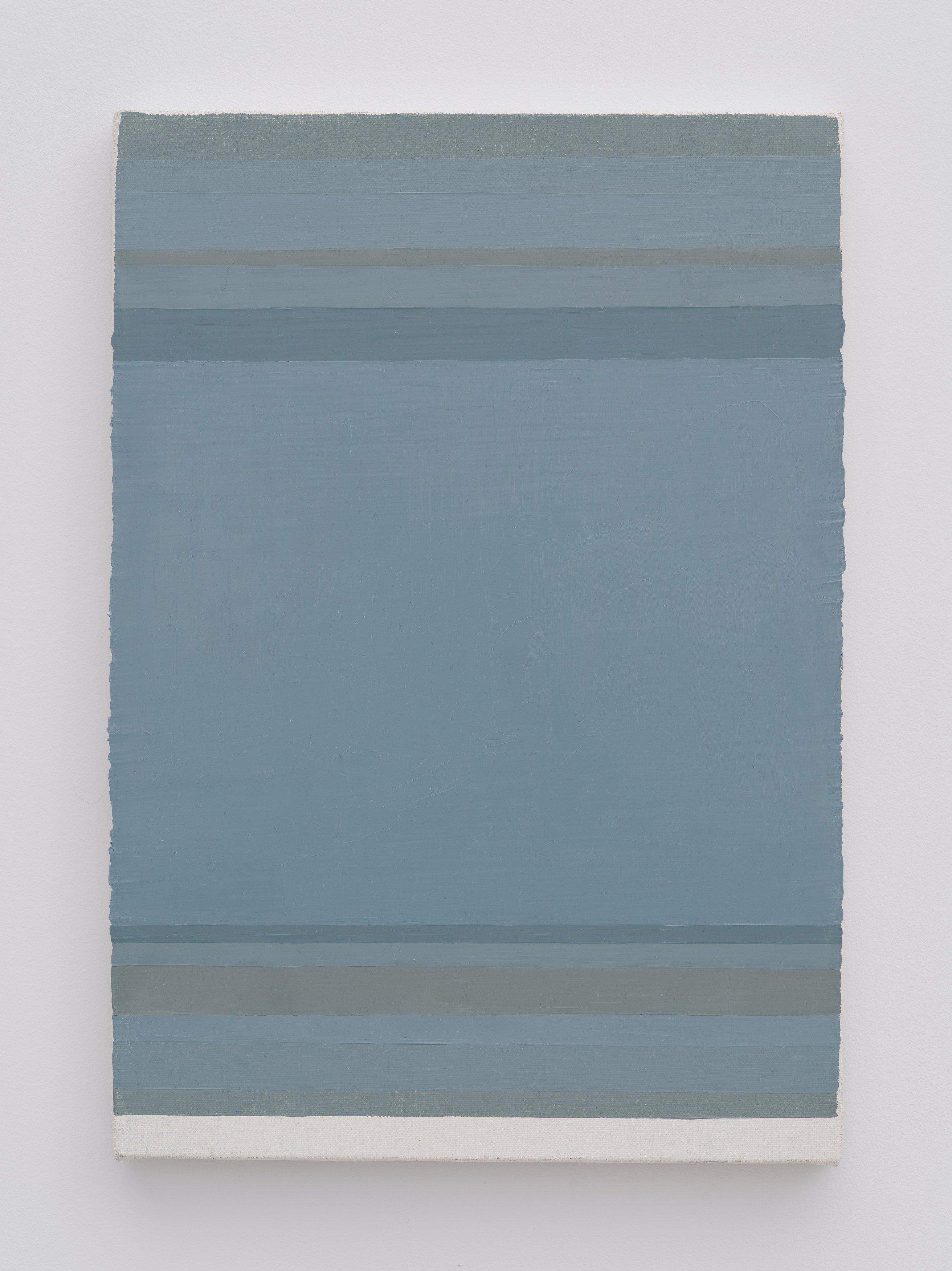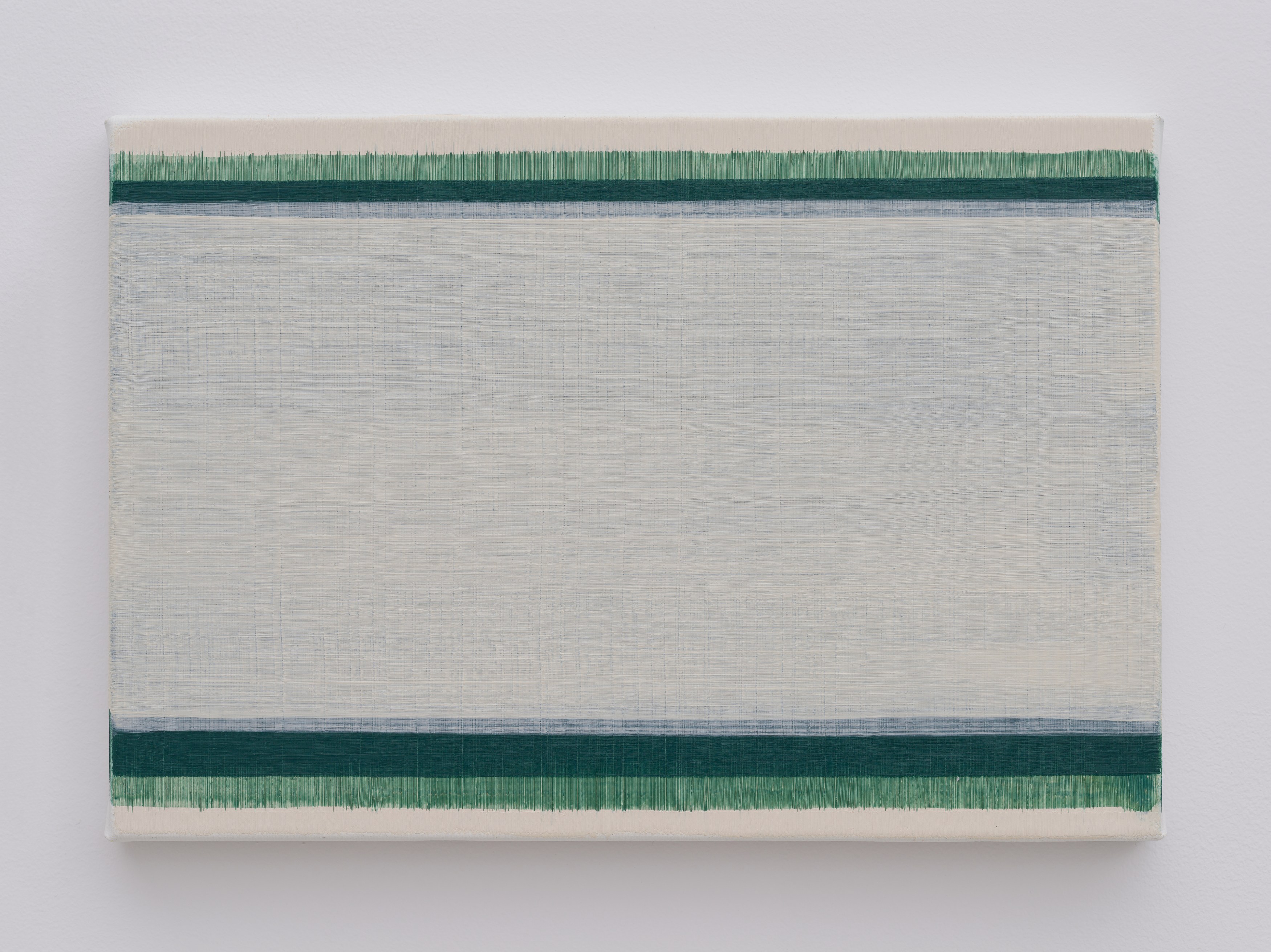 Often characterized by a restrained colour palette, Yaegashi’s paintings are typically executed in cold tones, which create an atmosphere of stillness and introspection. Despite the apparent precision, small irregularities often interrupt the otherwise calculated nature of her work. These subtle disruptions act as an invitation for the viewer to engage with the underlying tension between control and spontaneity, highlighting the nuances of each piece.