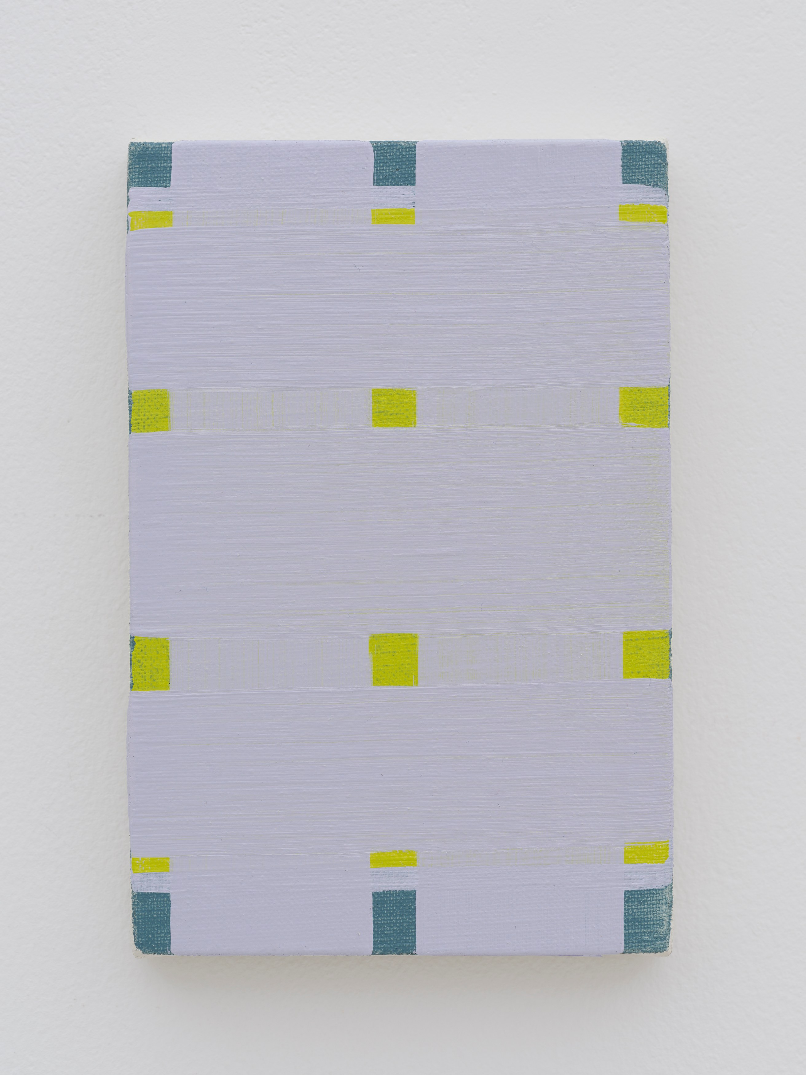 The exhibition brings together a collection of small, abstract paintings, both existing and new works, composed entirely of rectangles and lines, reflecting Yaegashi’s ongoing exploration of the infinite possibilities within minimalist abstraction.