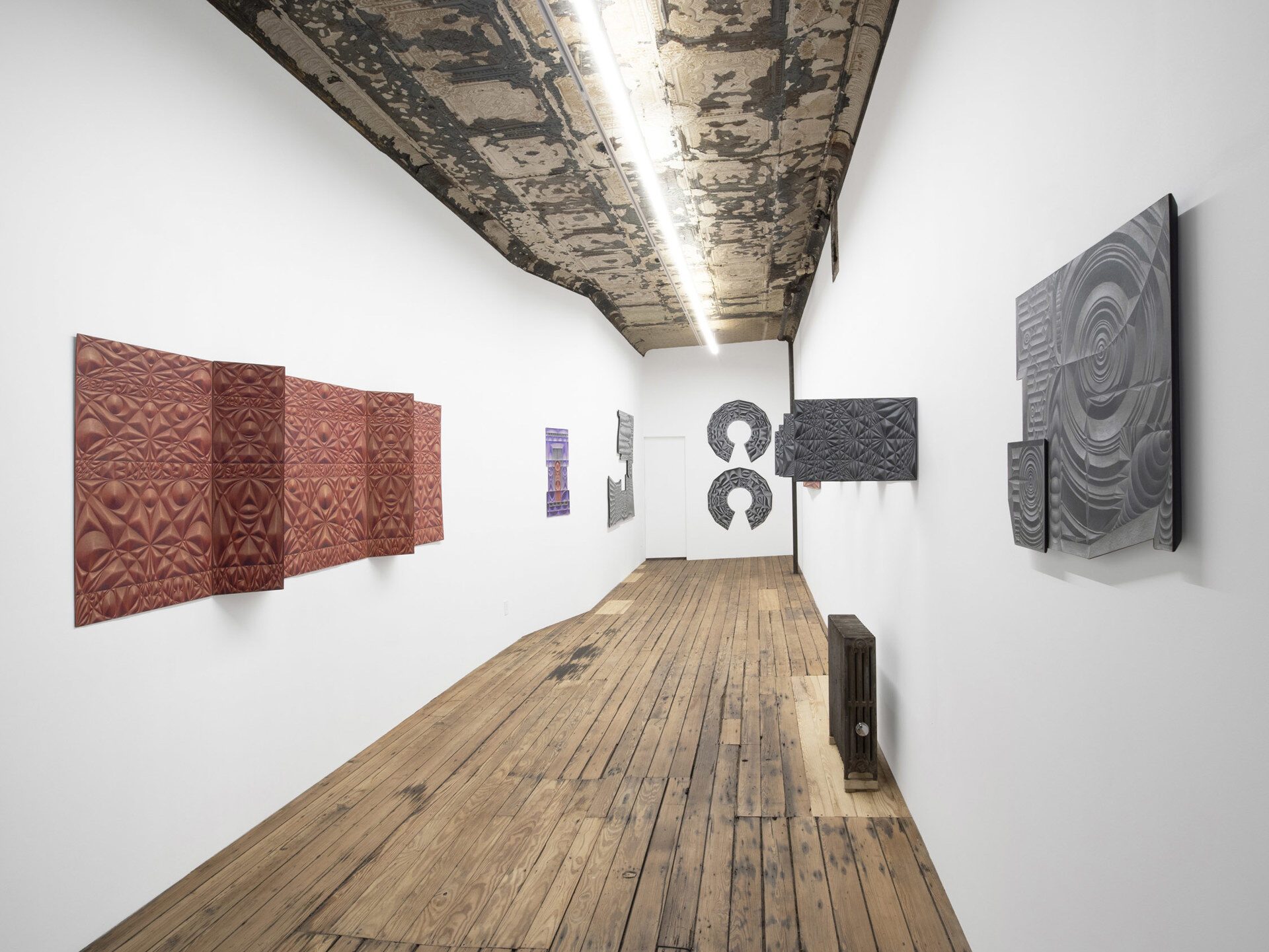 Nate Flagg’s interdisciplinary practice is grounded in a deep study of language in all its forms. His work may first appear as intricately rendered abstract geometric drawings, but the complex patterns are structured by letters and words derived from a language invented by the artist. The writing systems Flagg uses are phonetic and ideogrammatic scripts that he developed and honed over the last several years. The process is also influenced by Flagg’s study of seal carving and Chinese calligraphy, spending a year in China with master calligraphers to learn the craft.