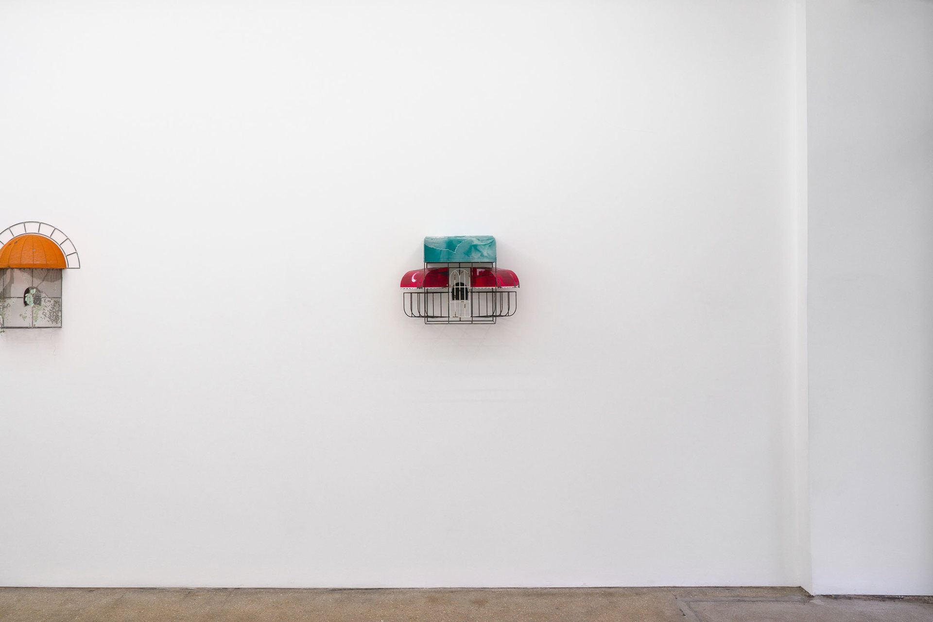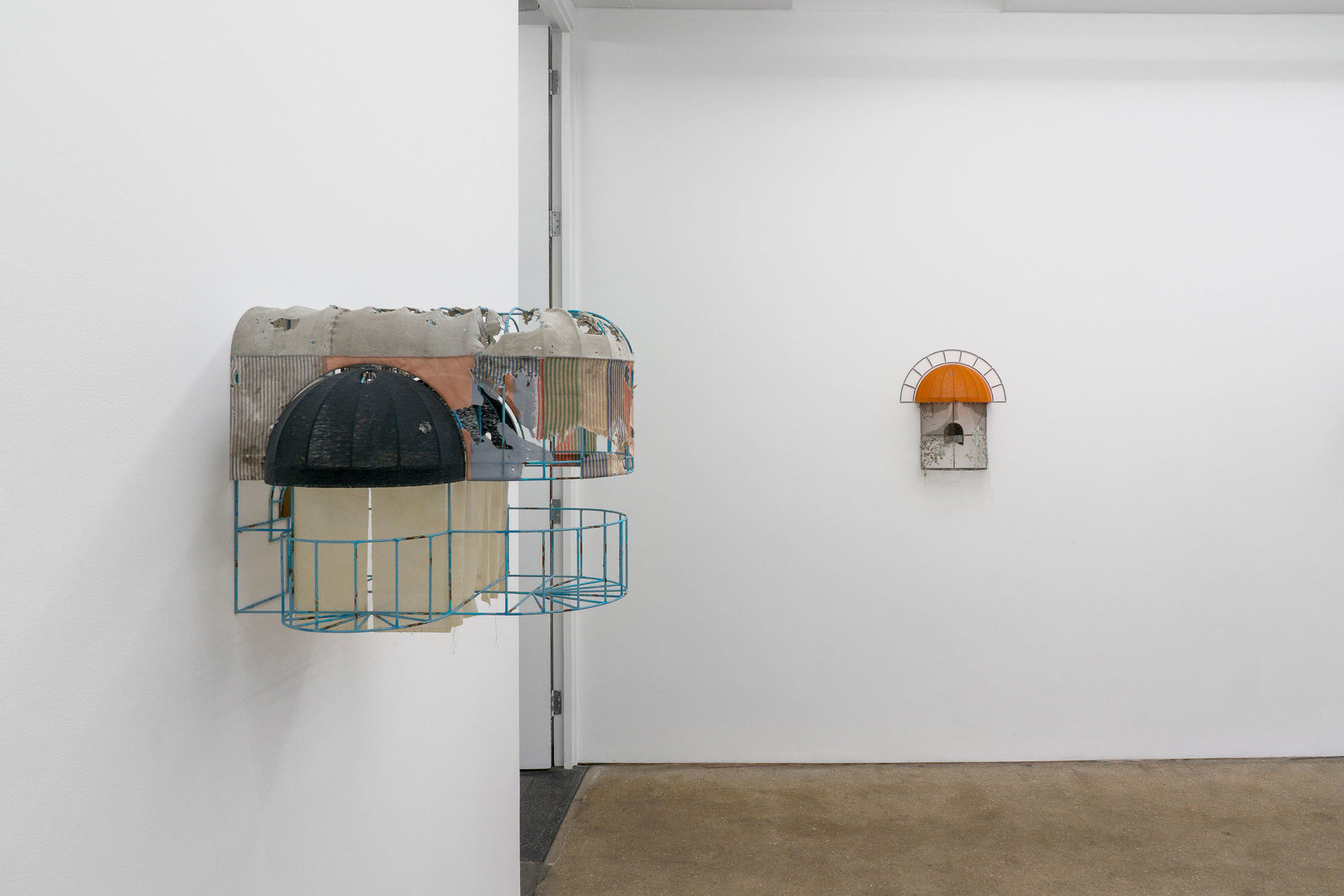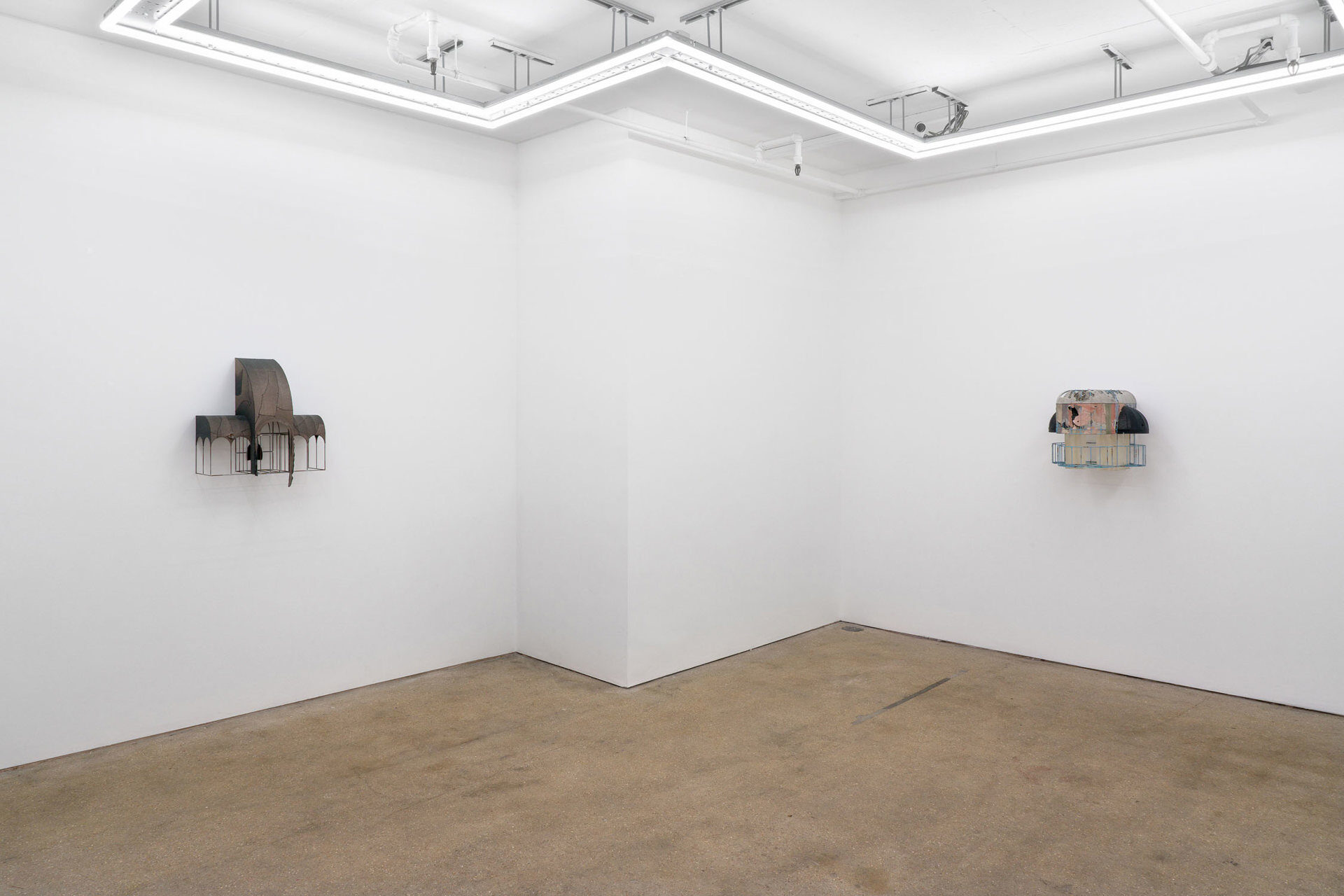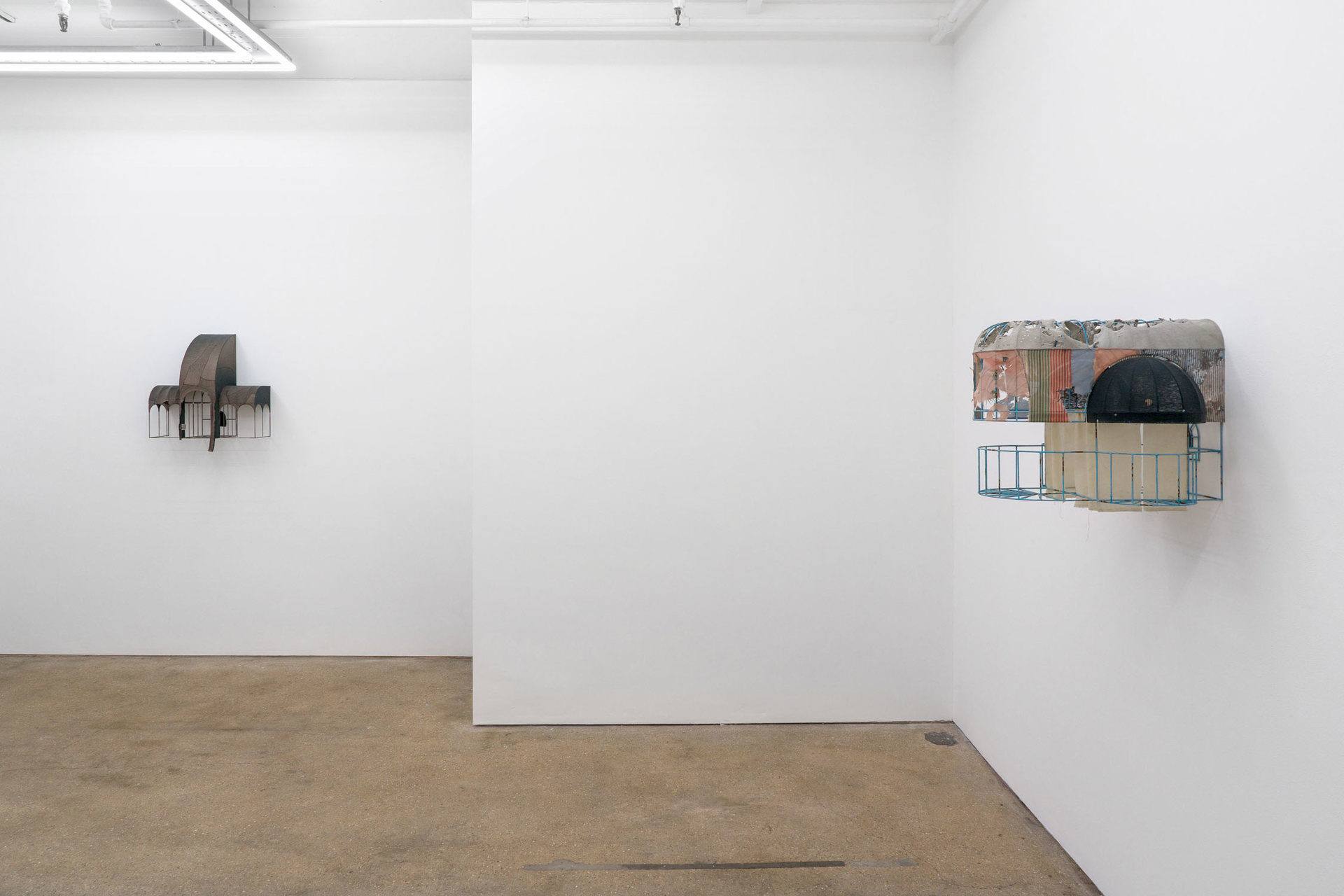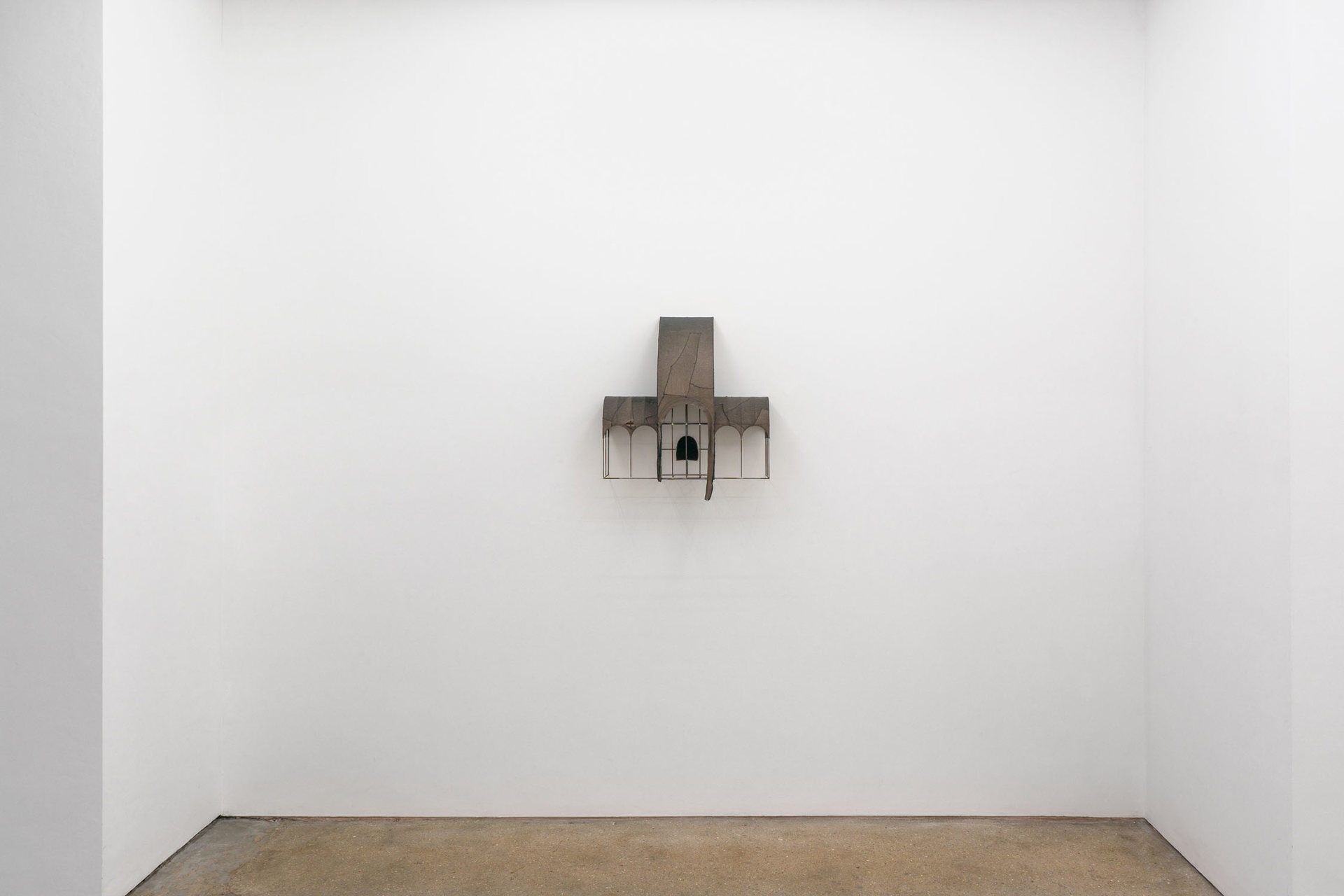 For Condo London 2025, Public Gallery is pleased to present groundwork, a solo exhibition of new works by New York based artist Greg Carideo, whose practice references the architectural language of awnings, building facades, doorways, and thresholds. Using found fabrics, shoe heels, and other lost or discarded items, Carideo’s intimate wall-based sculptures – silver-brazed steel armatures threaded through delicate fabric canopies – call to mind social spaces of shelter, encounter and exchange.