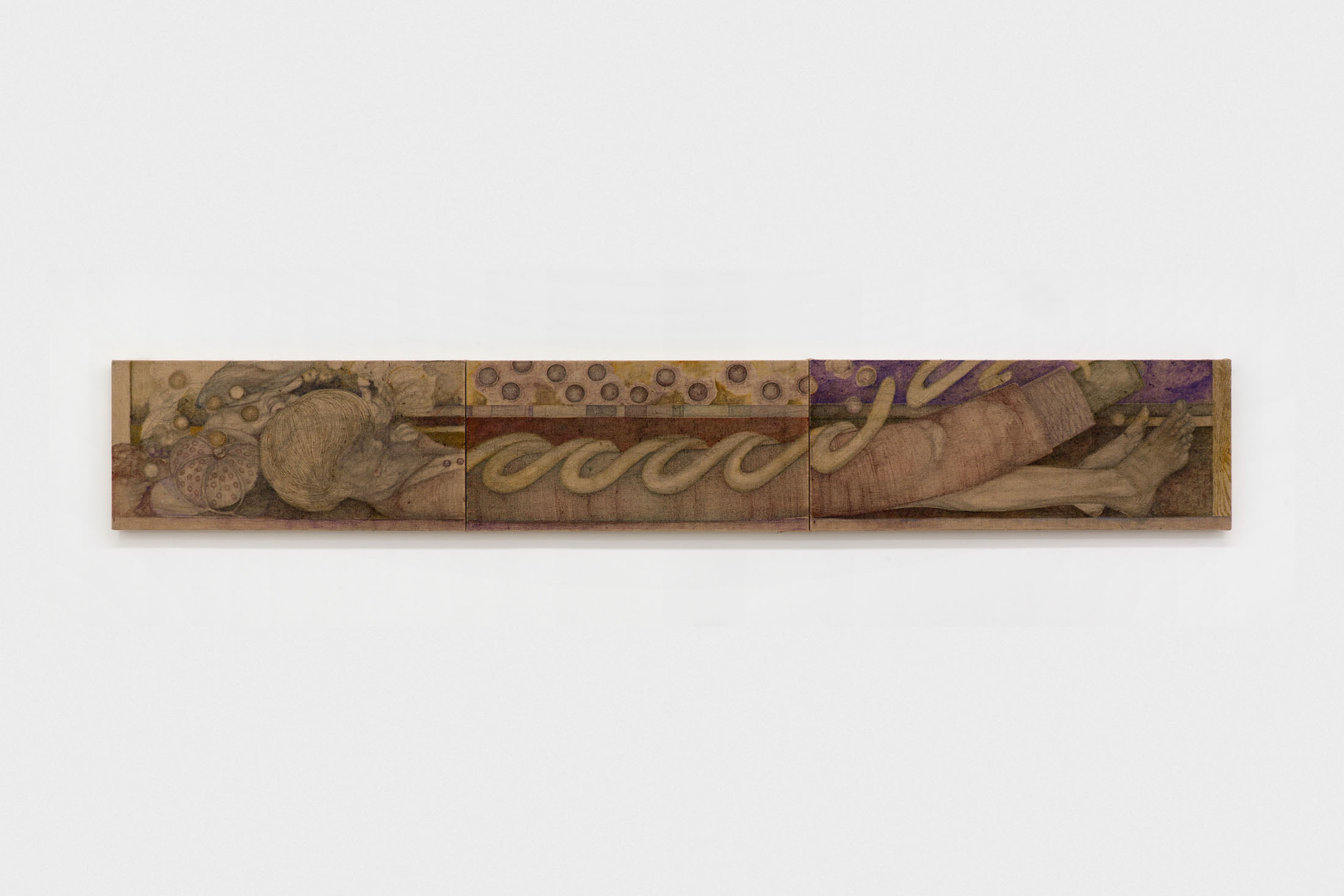 Public Gallery is pleased to present Gut Friendly, a duo exhibition of painting and sculpture by artists Victor Bengtsson and Umico Niwa, whose individual practices uniquely trace cycles of decay and renewal, together meditating on digestion as a poetic framework for processes of transformation. From this dialogue emerges a meditation on friendship – a porous exchange through which individual forms are metabolized into hybridized wholes, conjured through mythical acts of excavation and preservation.