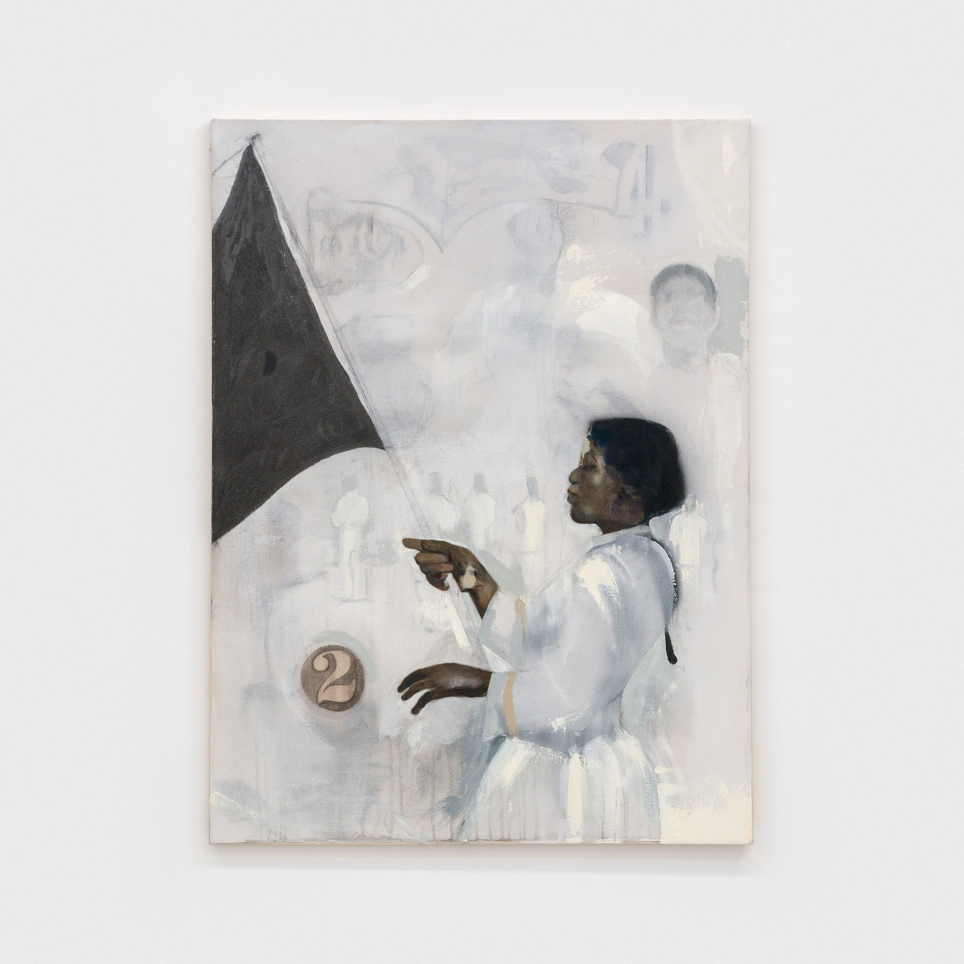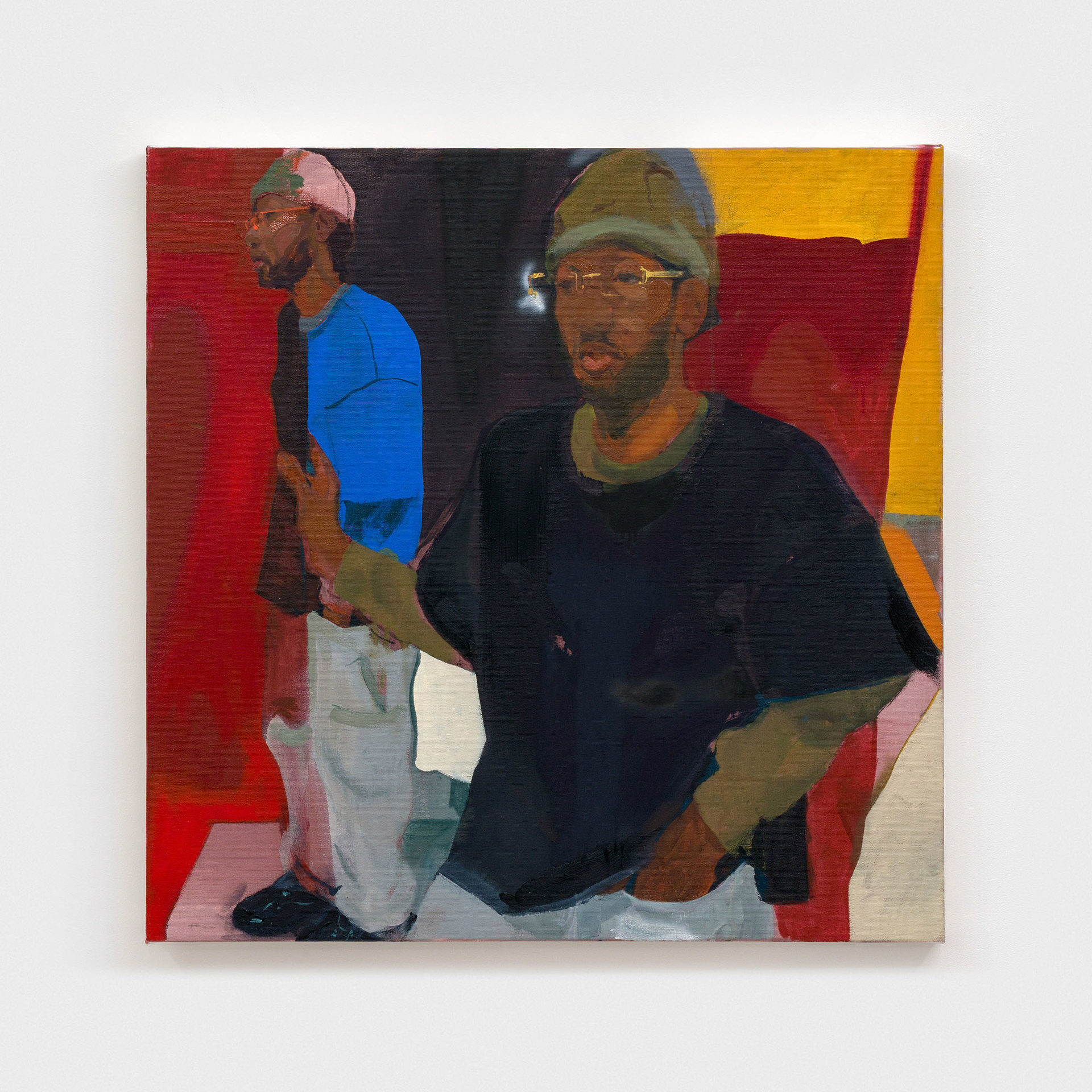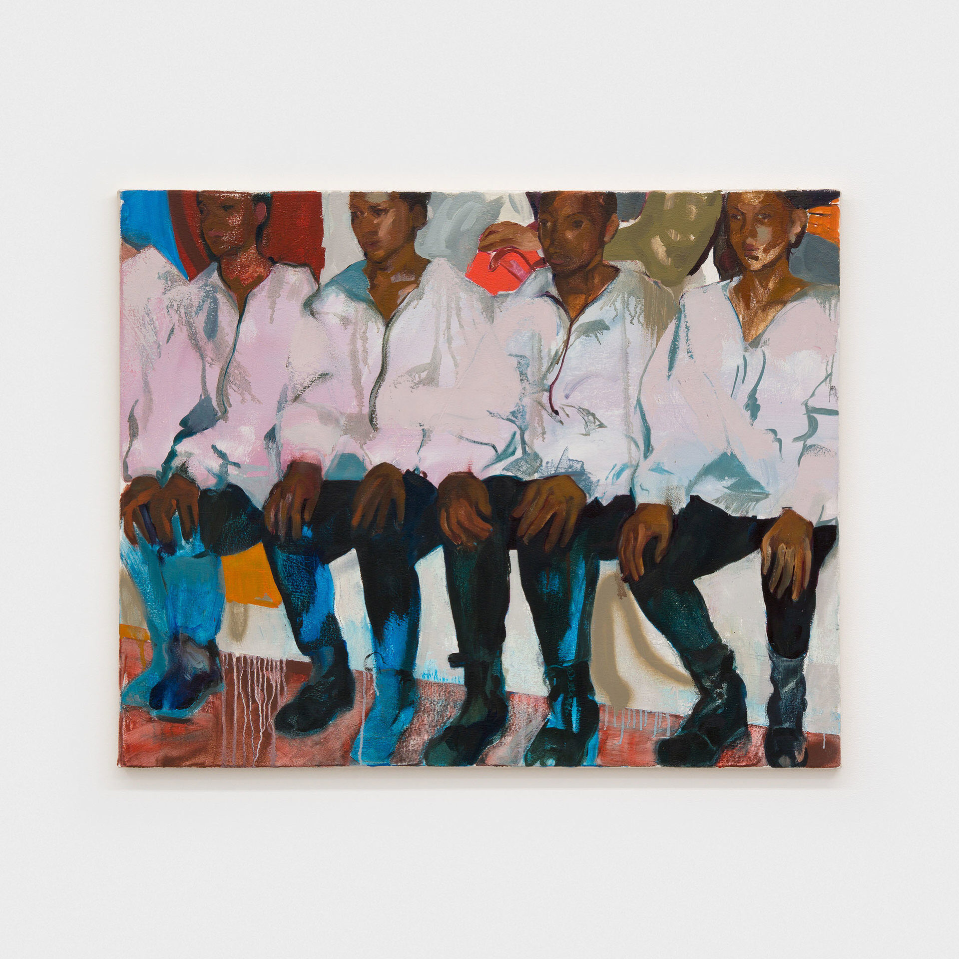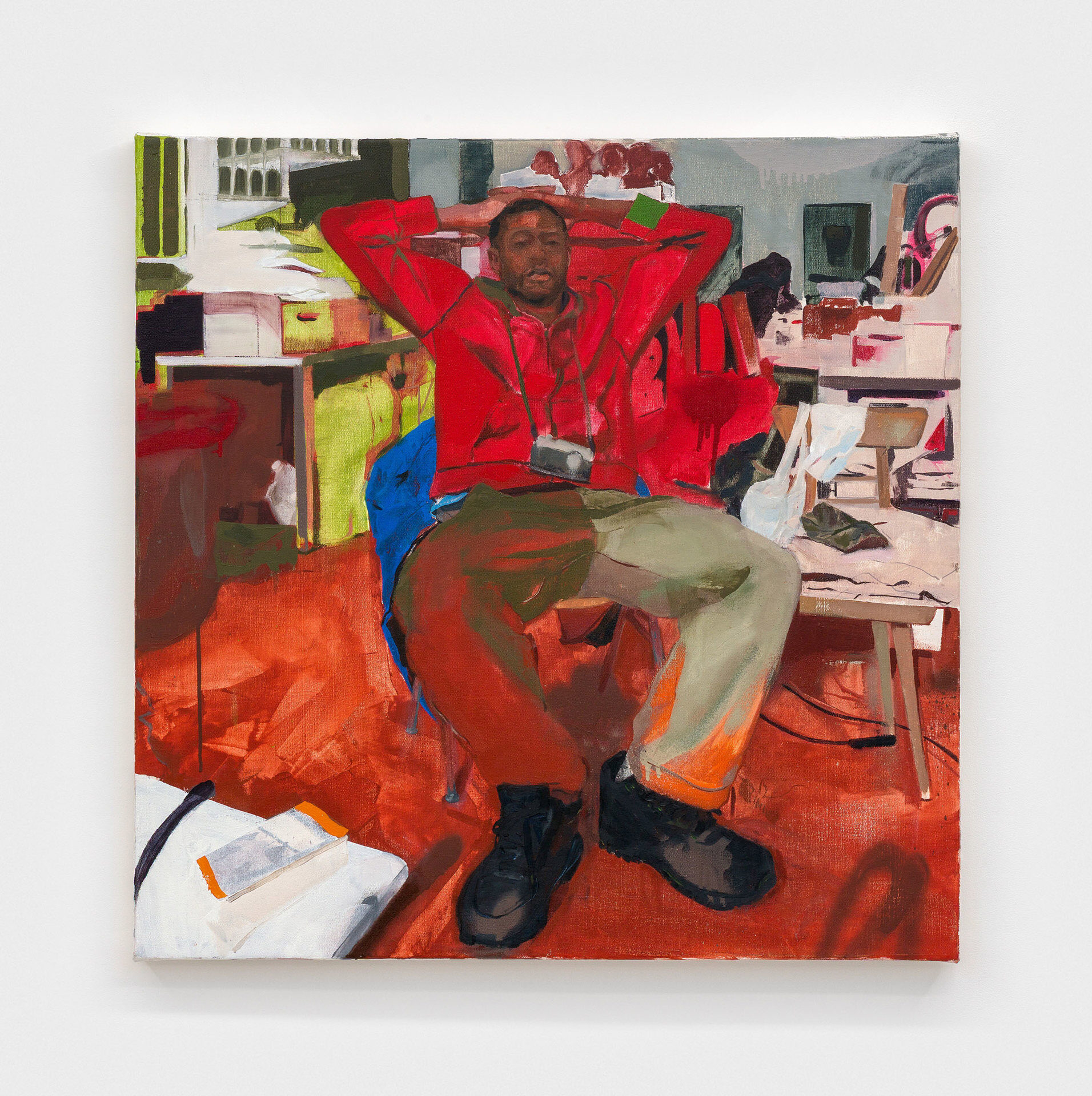 Simmons’ work has been previously characterized as solidifying Black cultural history; he often paints from reference images, citing music, photographs on eBay, and video clips as inspiration, ‘turning Black reality into Black…