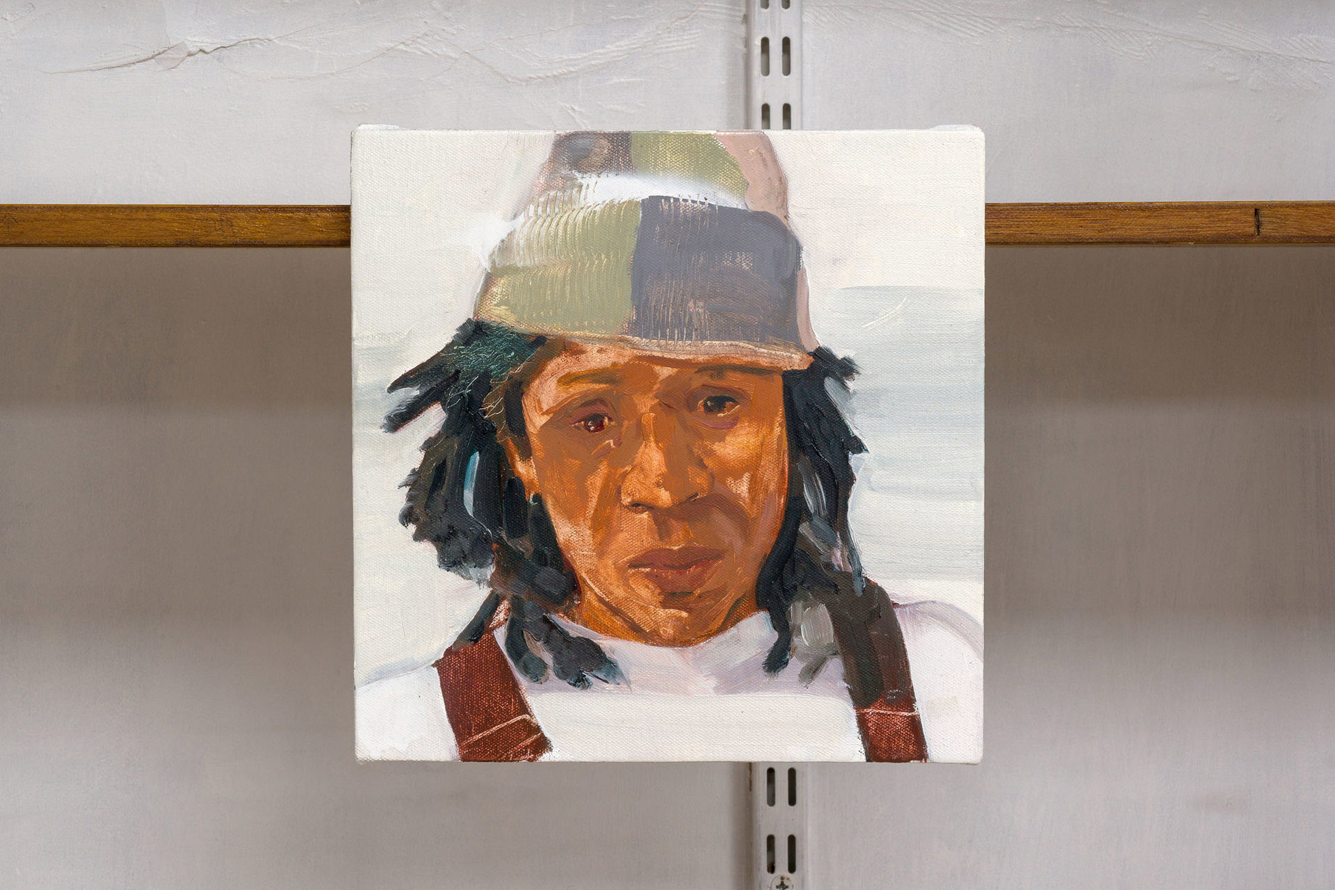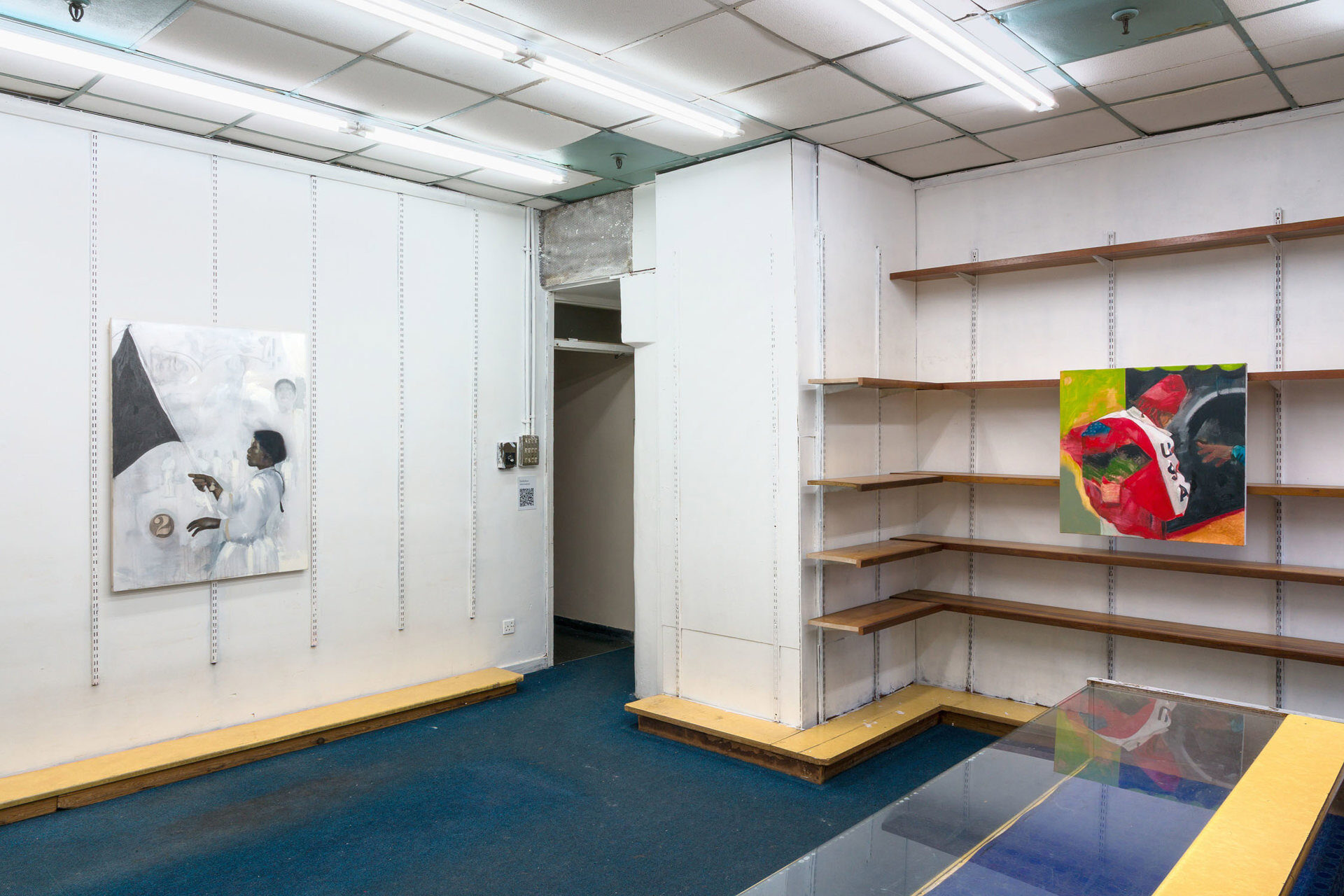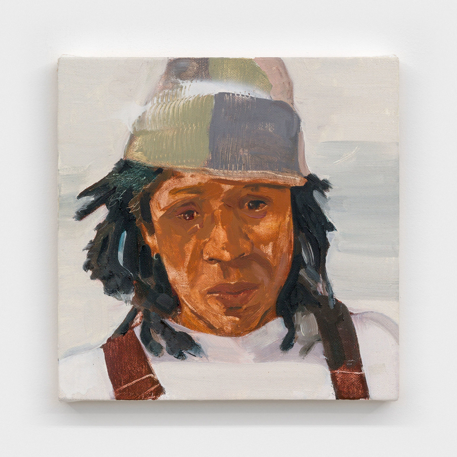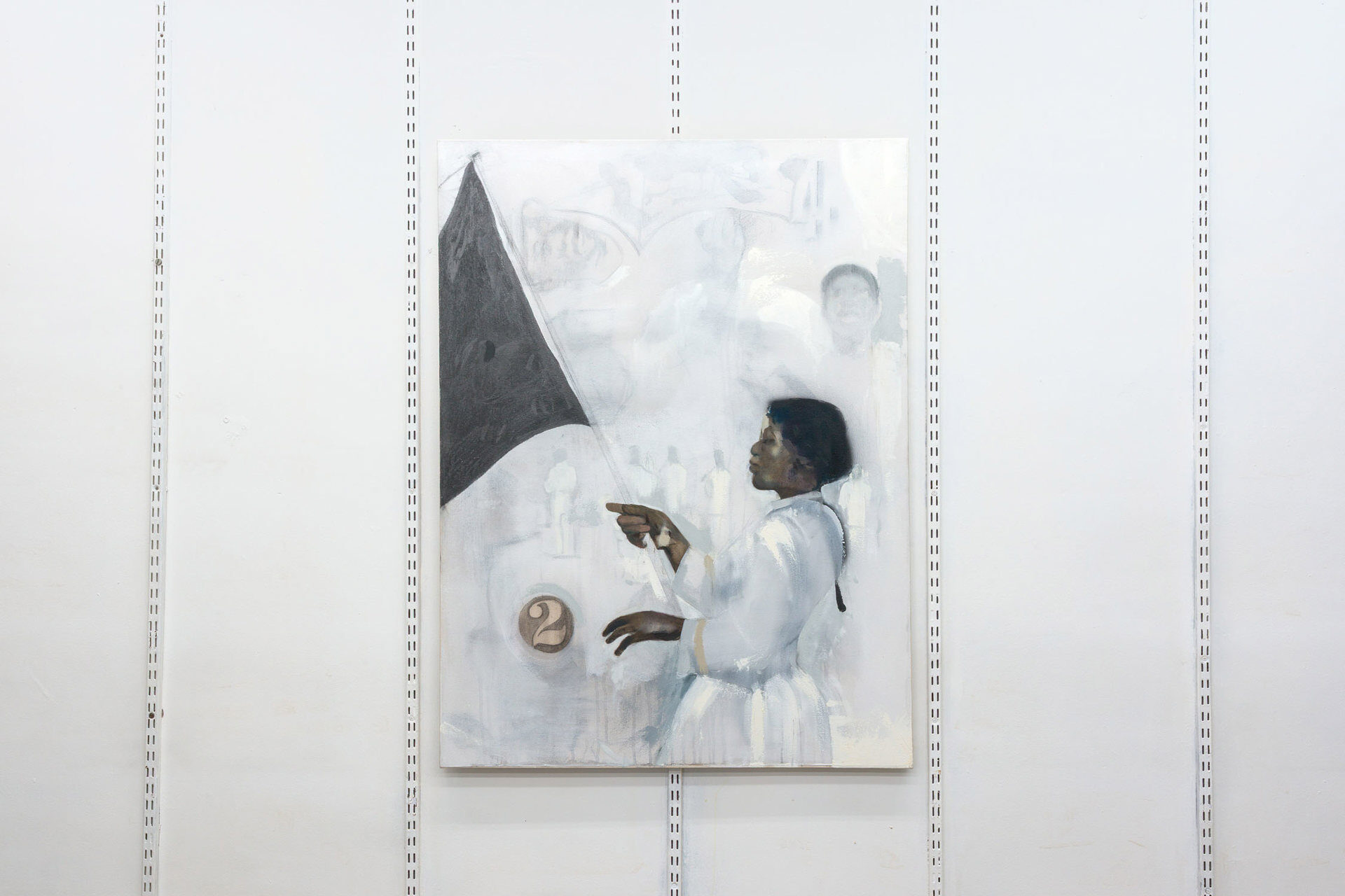 Simmons’ work has been previously characterized as solidifying Black cultural history; he often paints from reference images, citing music, photographs on eBay, and video clips as inspiration, ‘turning Black reality into Black…