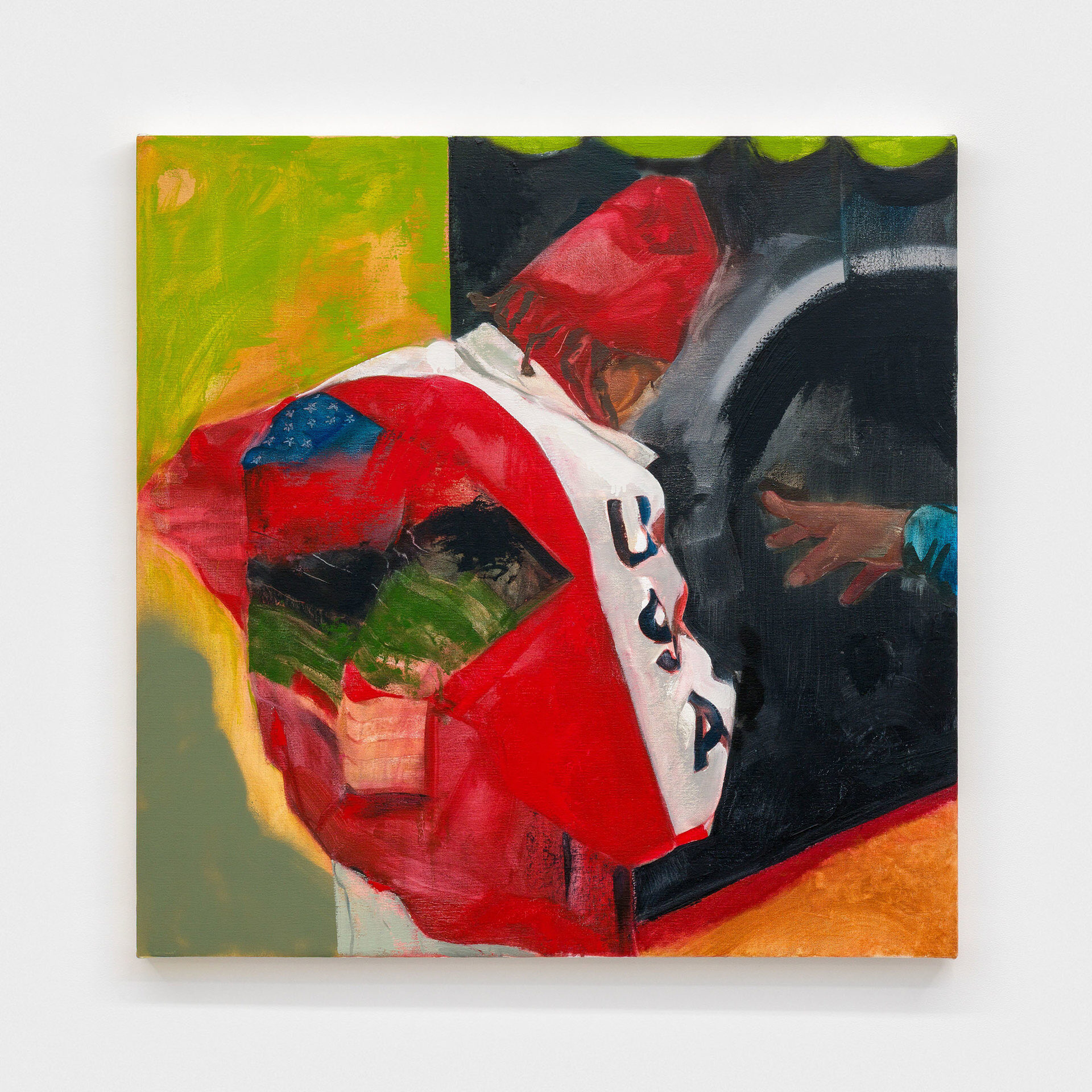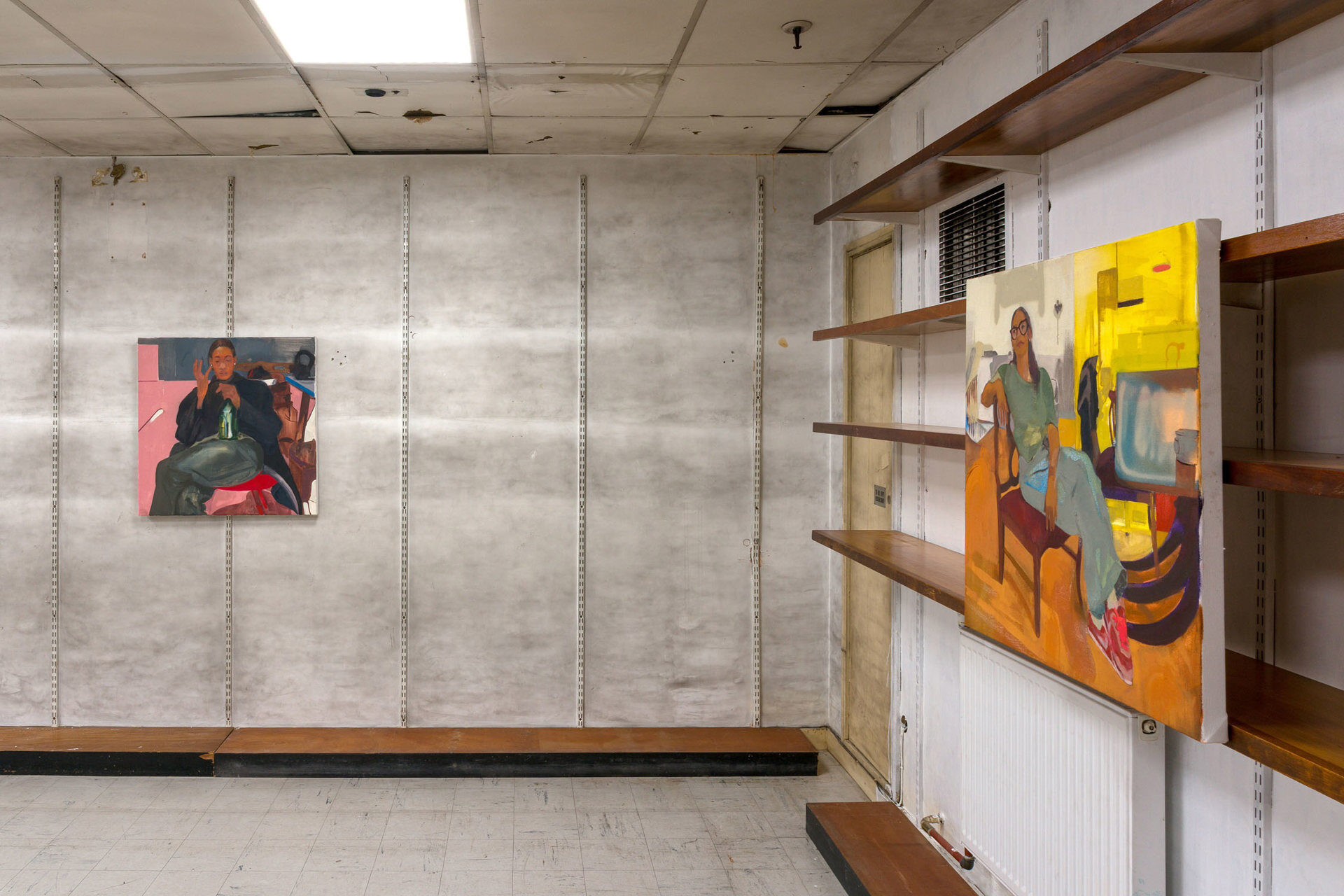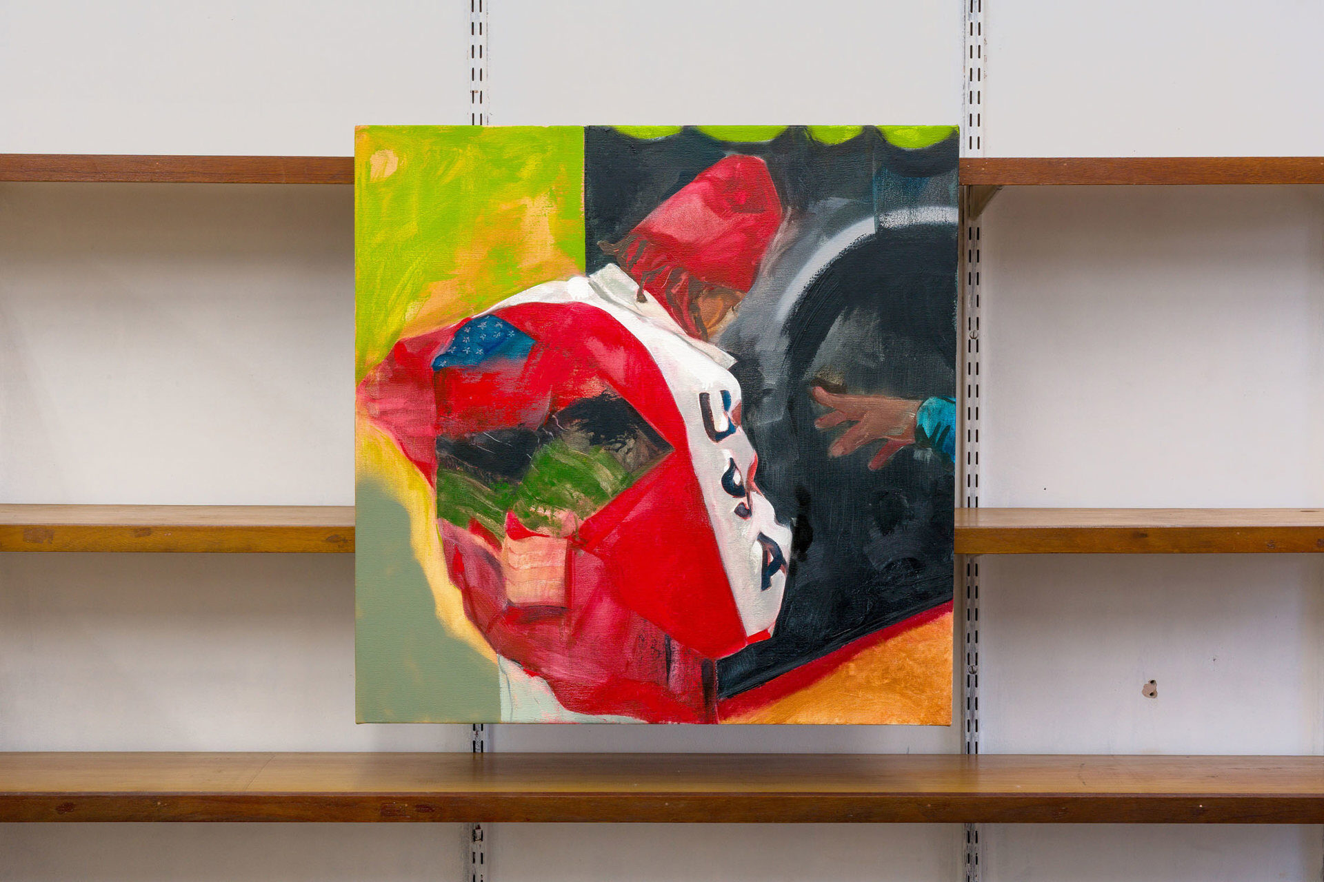 Public Gallery is pleased to present HangTime, a solo exhibition of new works by Taylor Simmons, and the artist’s second presentation with the gallery. Across two floors of the gallery’s expanded space, Simmons’ tightly framed and heavily layered compositions shift from referencing sourced imagery, often found photographs and viral video clips, to a series of familial portraits, conveying the artist’s personal specificity and domestic space. His depictions of everyday life, distinct for their vibrant tones and balance of acrylic, oil and spray paint, demonstrate a newfound immediacy and casual intimacy that welcome the viewer into his perspective — the most direct, detailed and explicit series of works that speak without prevarication from the artist’s home.