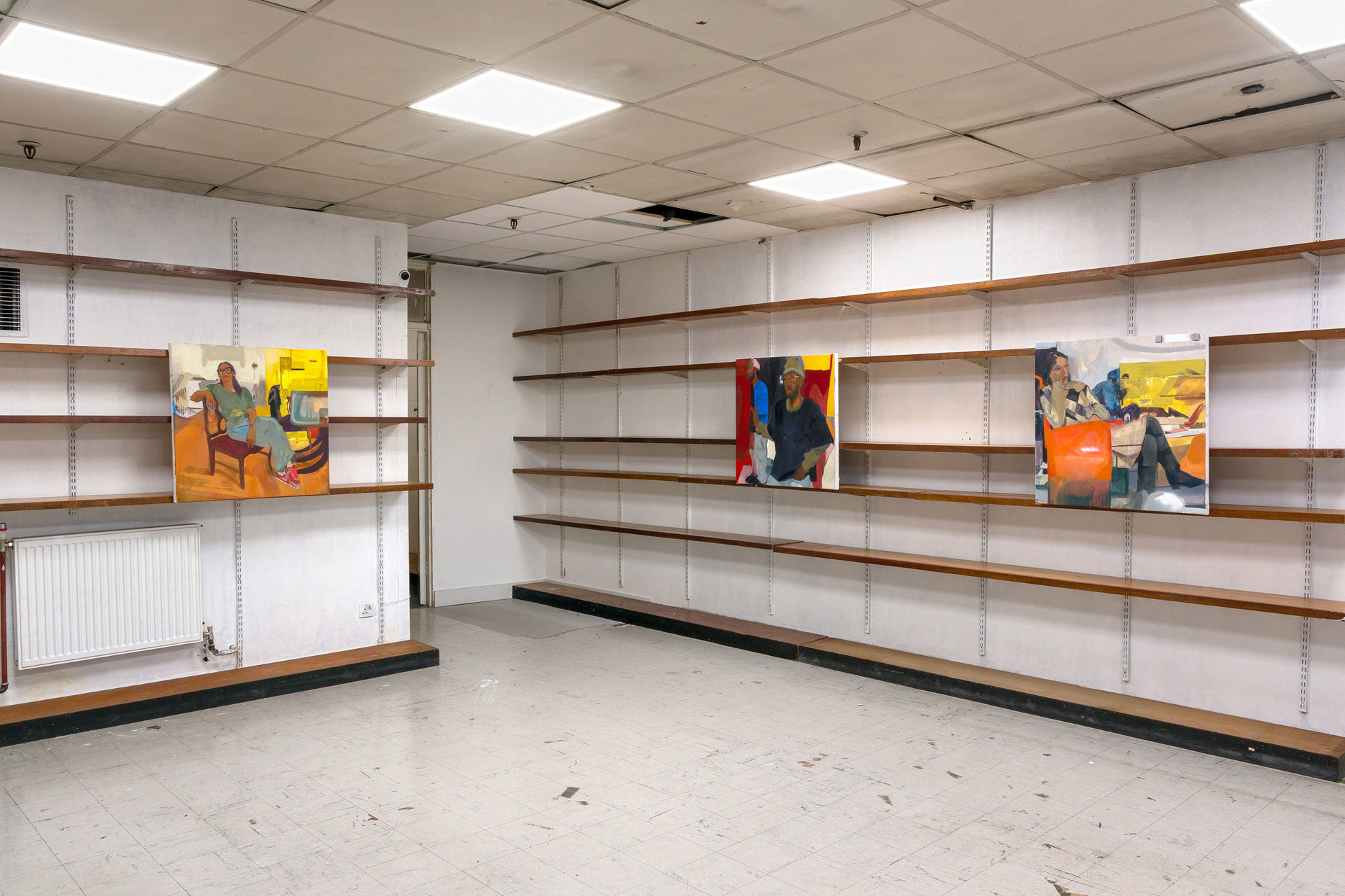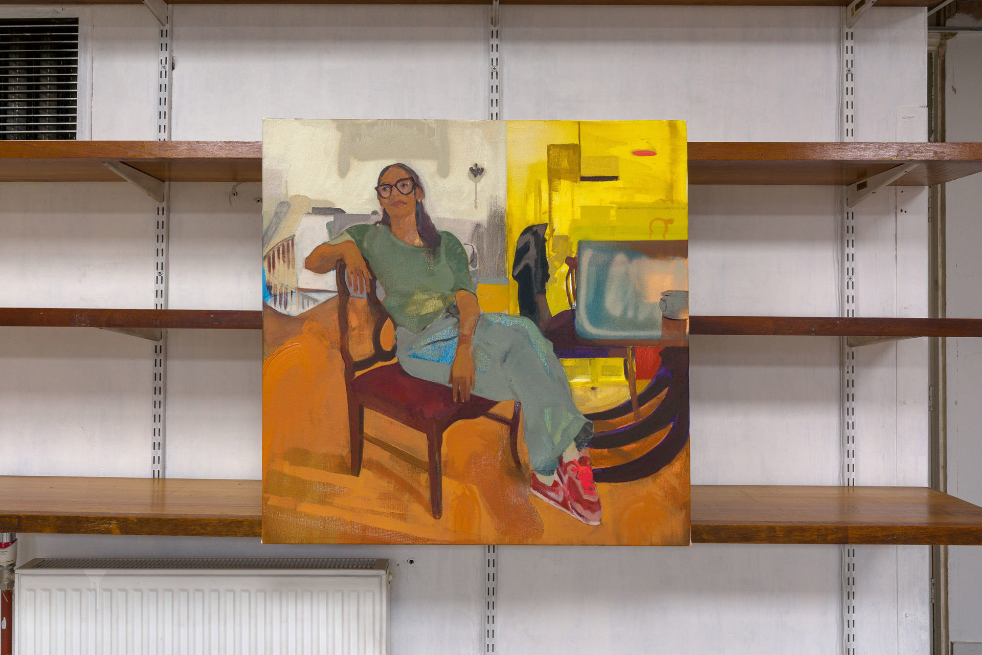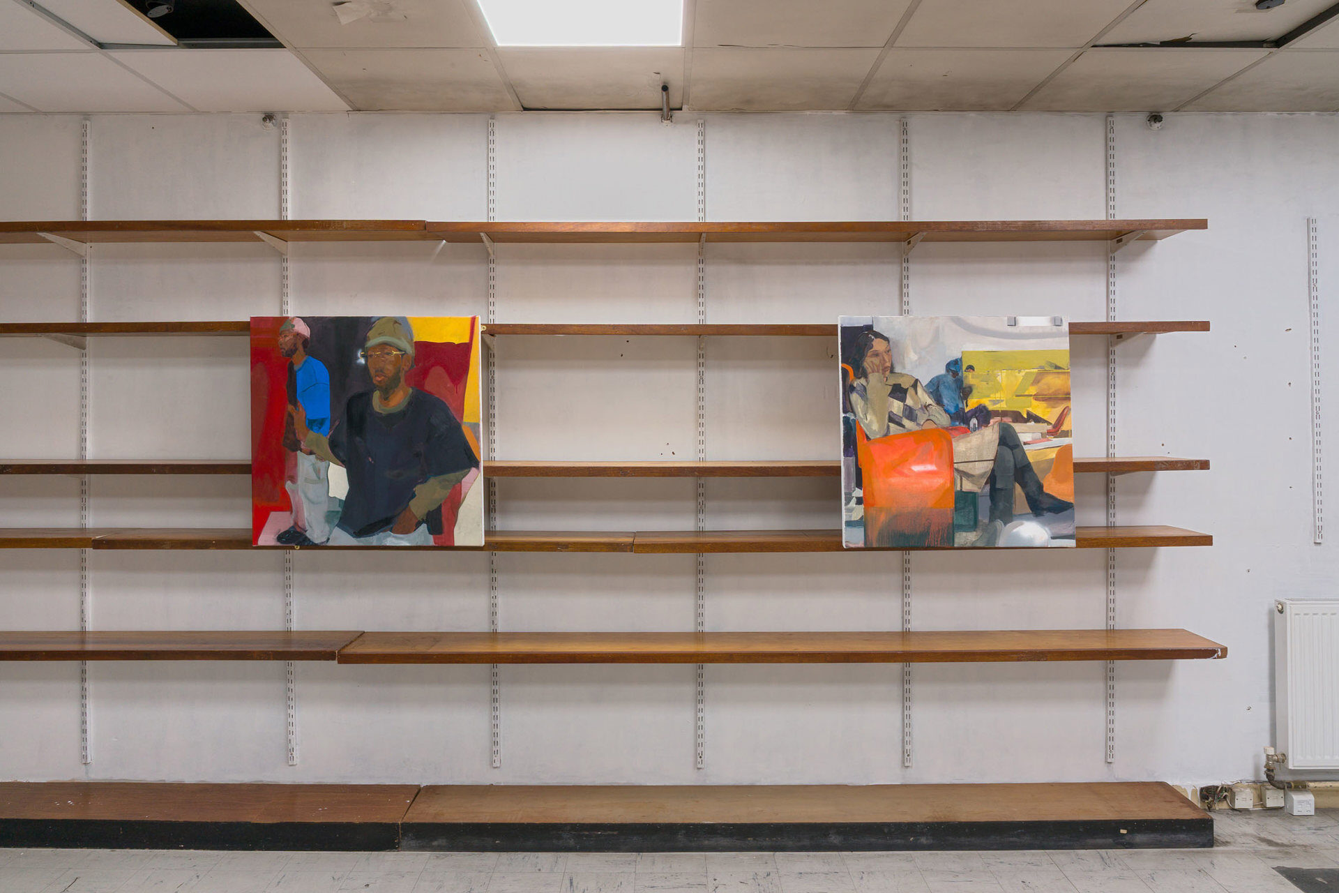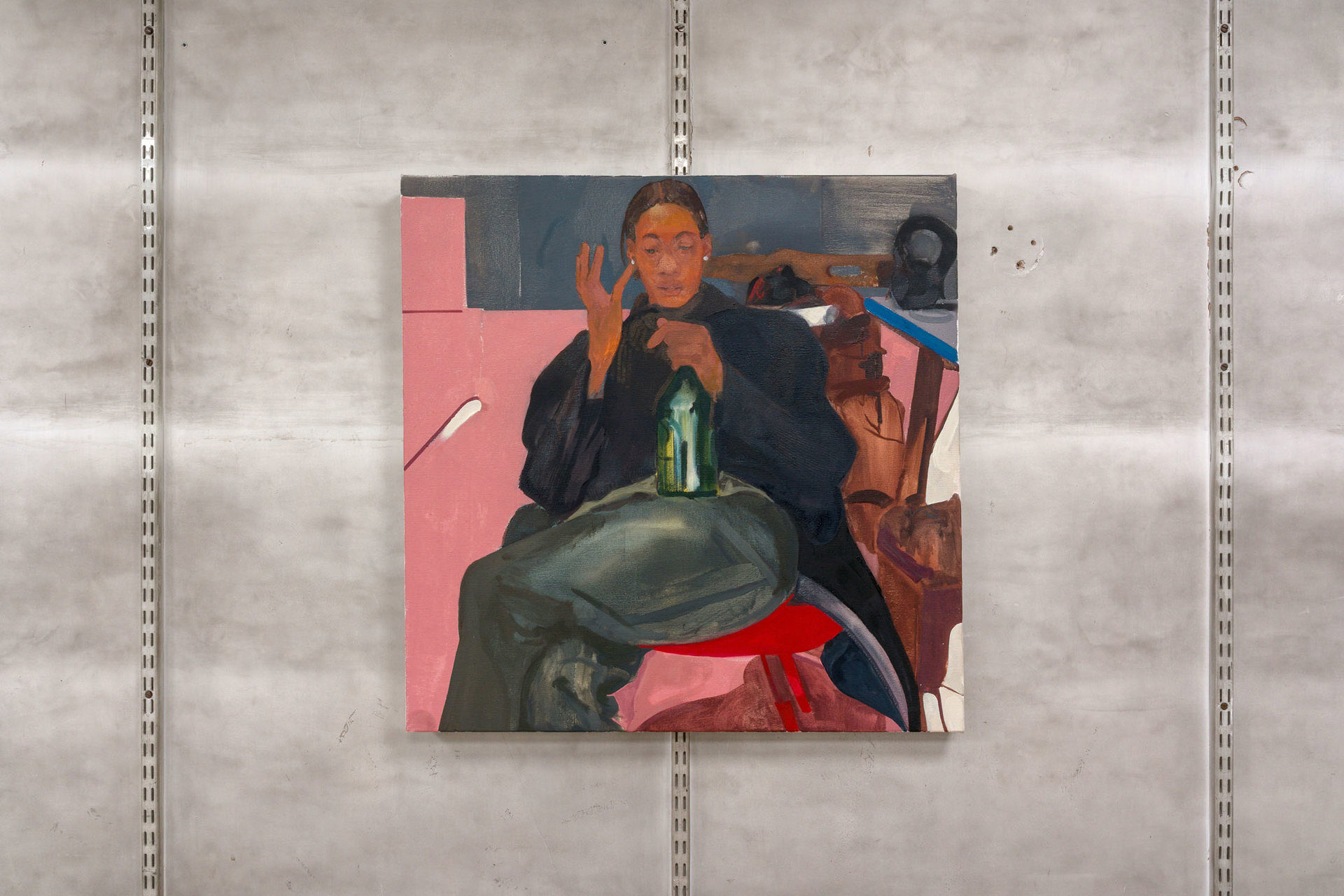 Public Gallery is pleased to present HangTime, a solo exhibition of new works by Taylor Simmons, and the artist’s second presentation with the gallery. Across two floors of the gallery’s expanded space, Simmons’ tightly framed and heavily layered compositions shift from referencing sourced imagery, often found photographs and viral video clips, to a series of familial portraits, conveying the artist’s personal specificity and domestic space. His depictions of everyday life, distinct for their vibrant tones and balance of acrylic, oil and spray paint, demonstrate a newfound immediacy and casual intimacy that welcome the viewer into his perspective — the most direct, detailed and explicit series of works that speak without prevarication from the artist’s home.