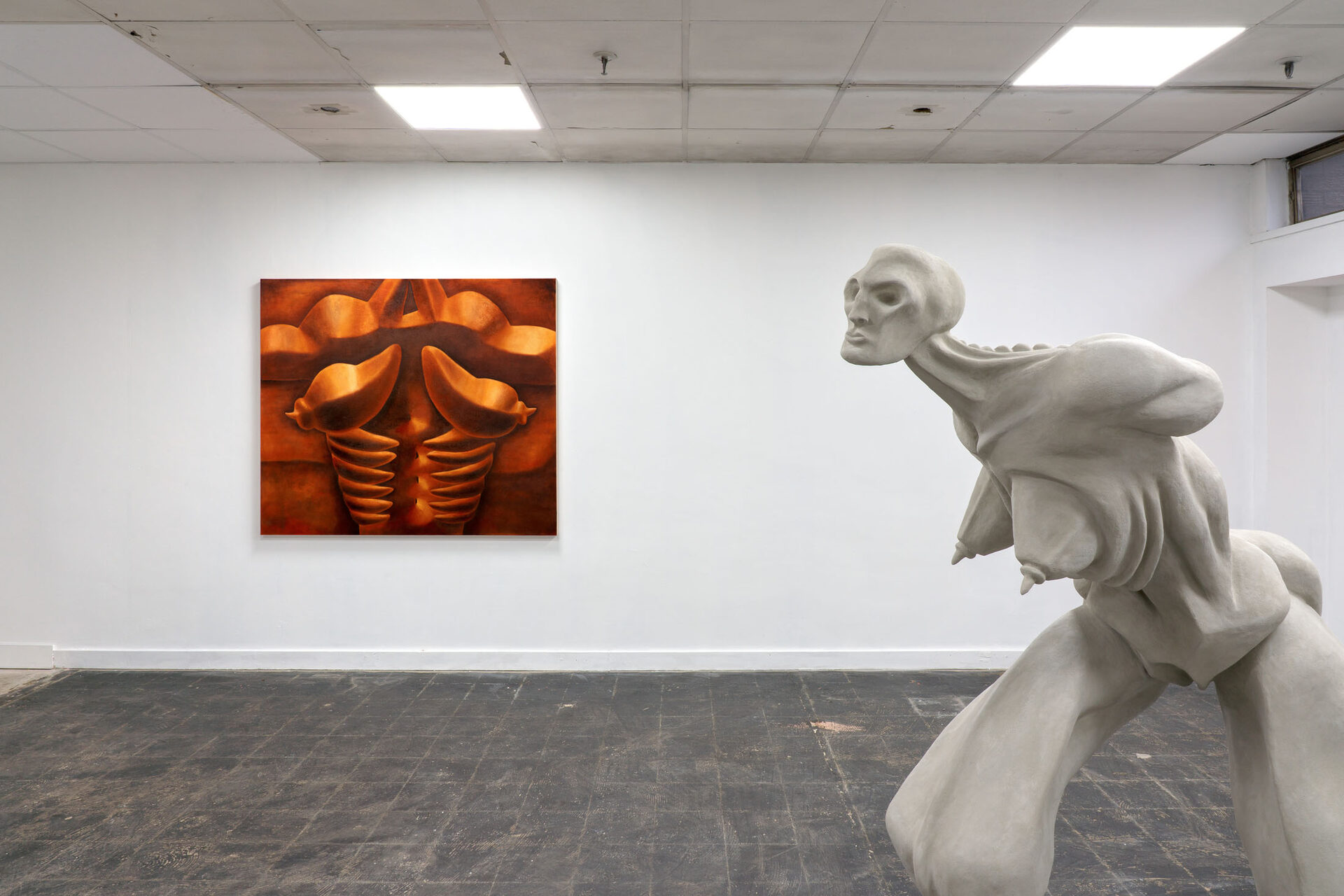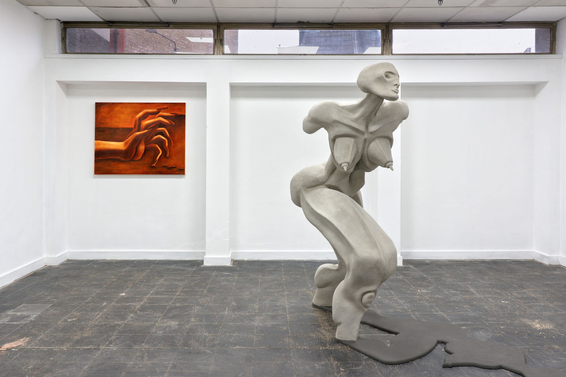 Public Gallery is pleased to present Sill, a solo exhibition of new painting and sculpture by Berlin-based artist Cathrin Hoffmann, whose subjects embody the physical intensity and psychological fatigue engendered by an age of information overload. No longer performing exaggerated gestures of desire or grotesque theatricality, Hoffmann’s figures inhabit states of sustained tension and accumulating pressure, sedimented in the threshold between endurance and action.