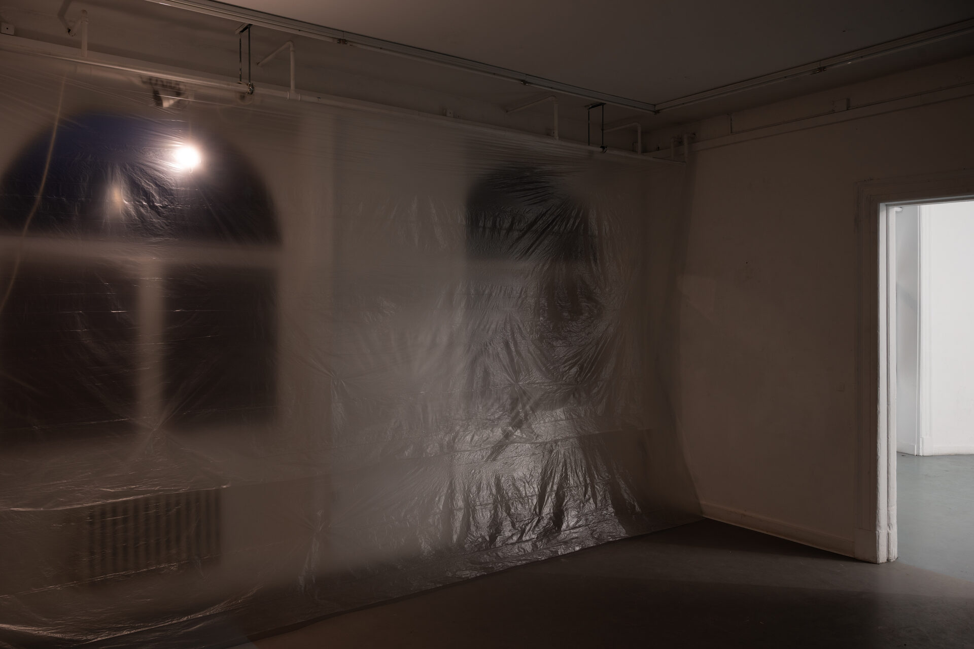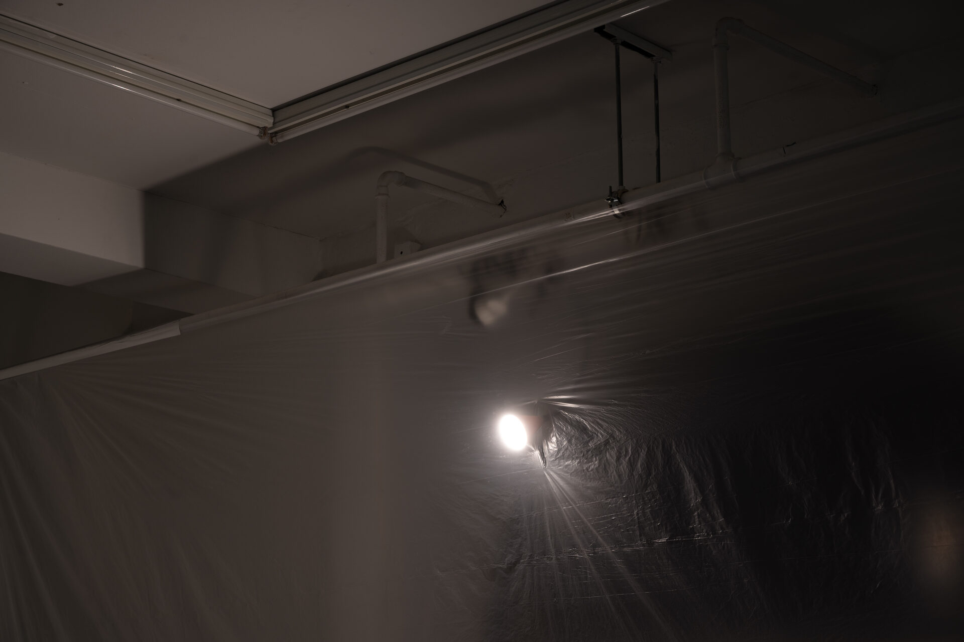 darkness before its presence can be fully grasped. The intermittent flashes in the exhi-