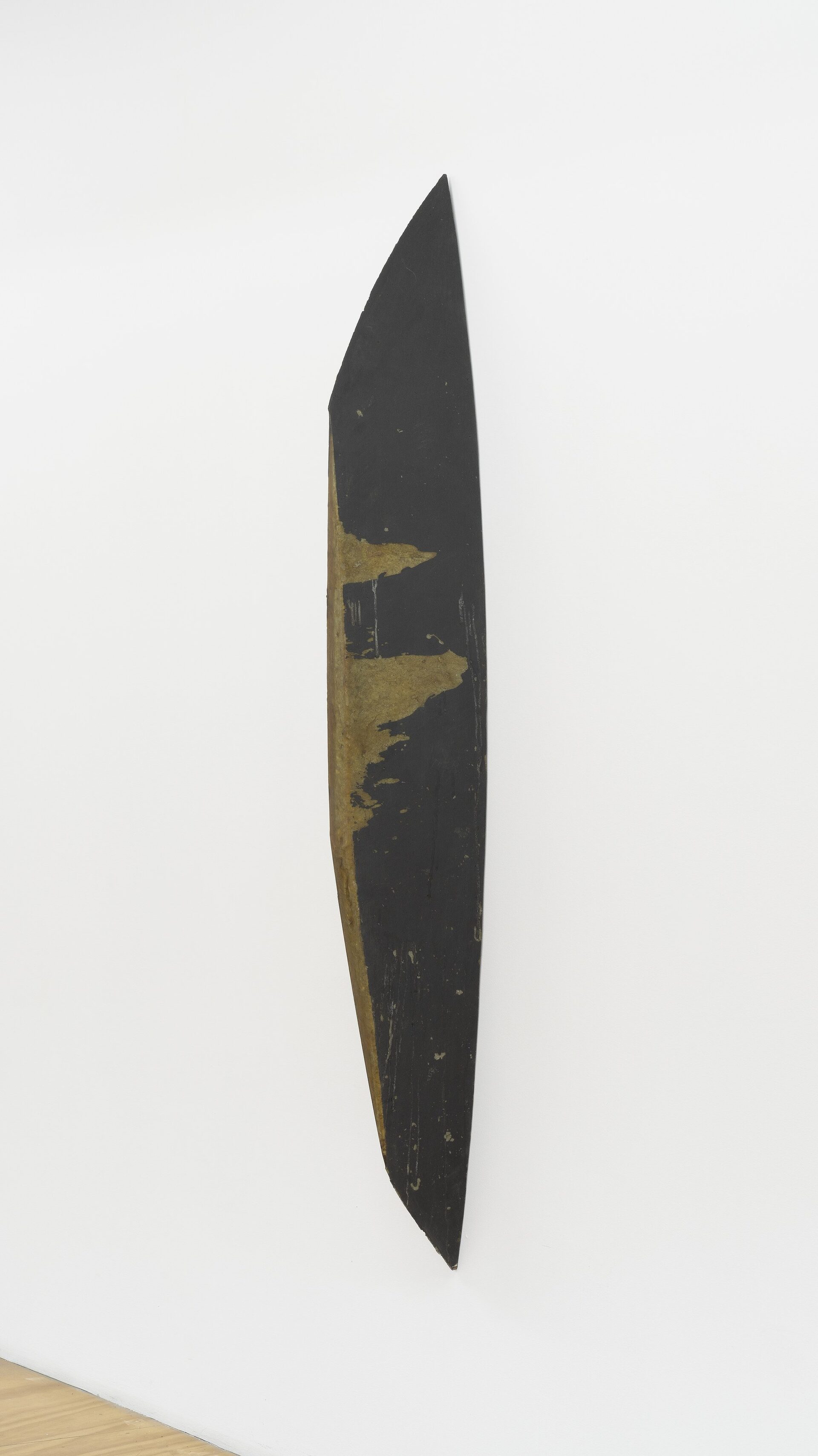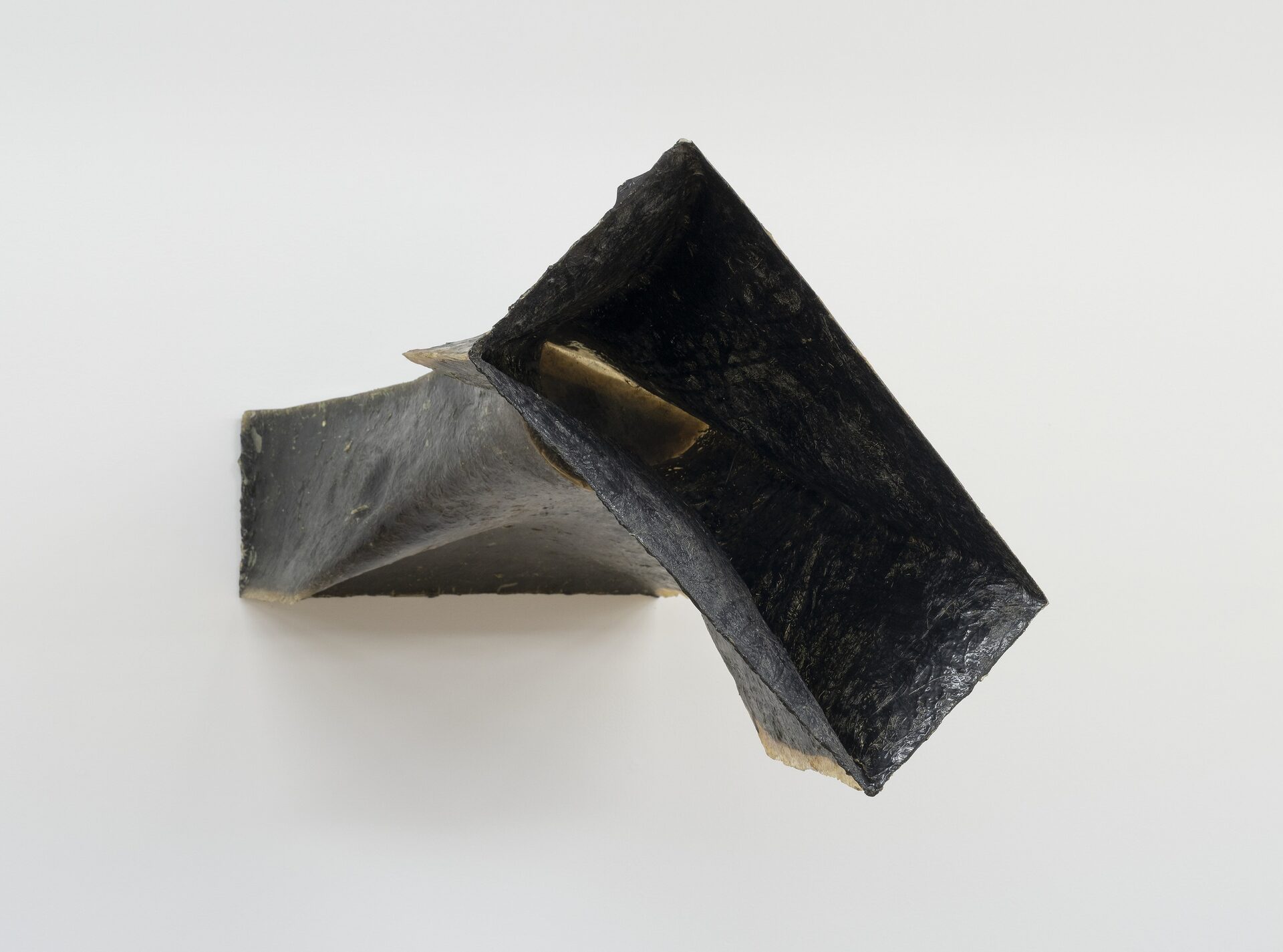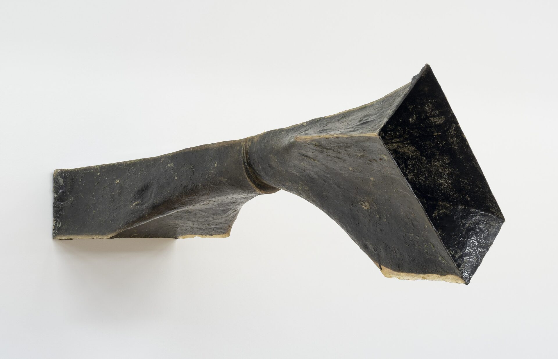 A fiberglass “wedge” and other works from the mid-1980s have a more integral or totemic presence. These lightweight forms explore a tension between the wall and the object, jutting out or arcing through space while at the same time withholding inner hollows and voids. Duff’s fiberglass objects are often painted on their insides, introducing further…