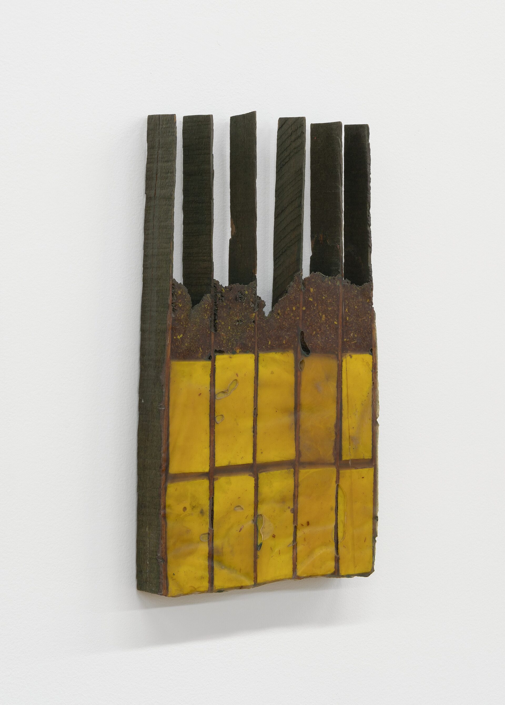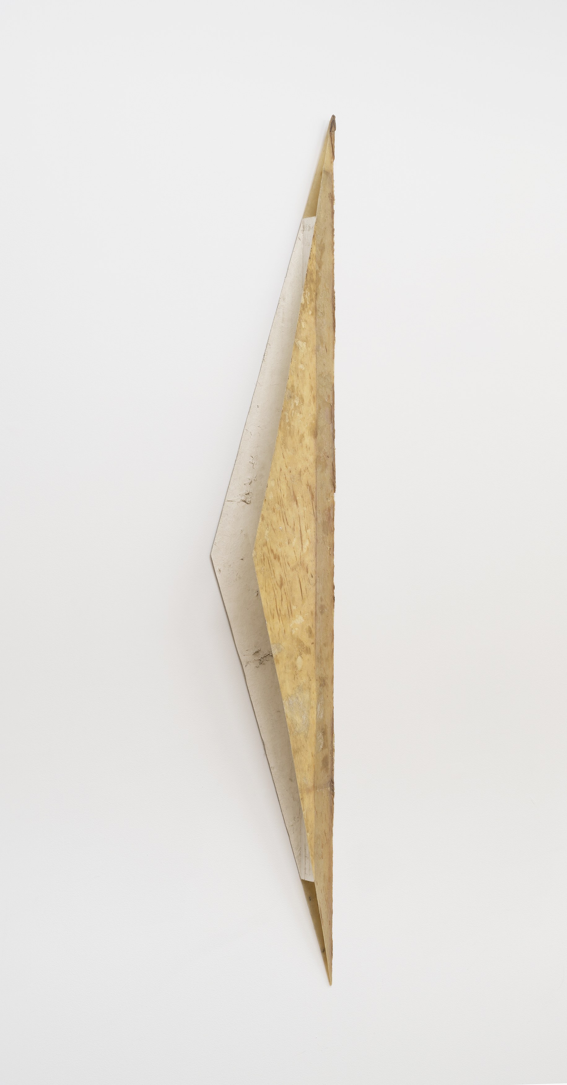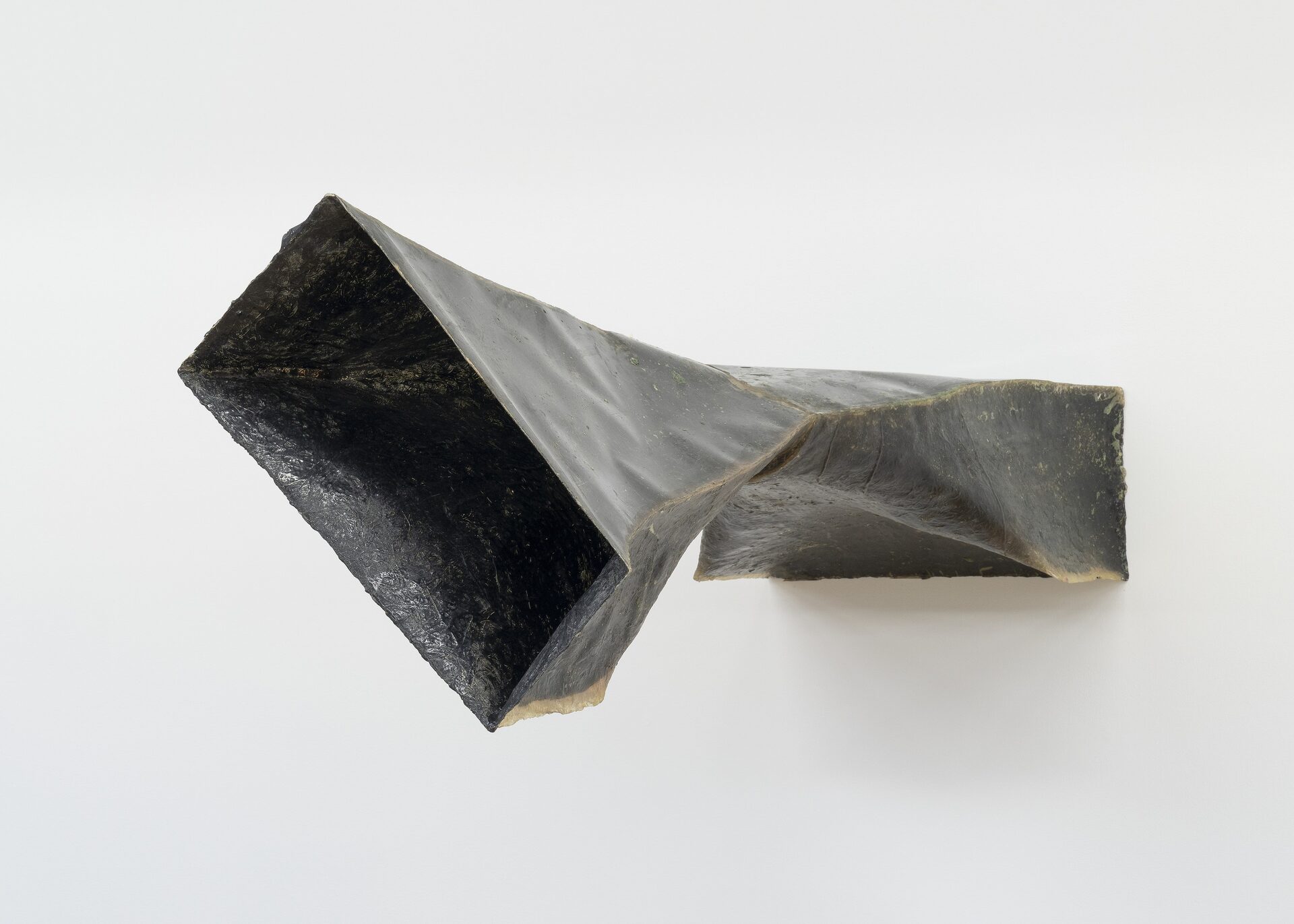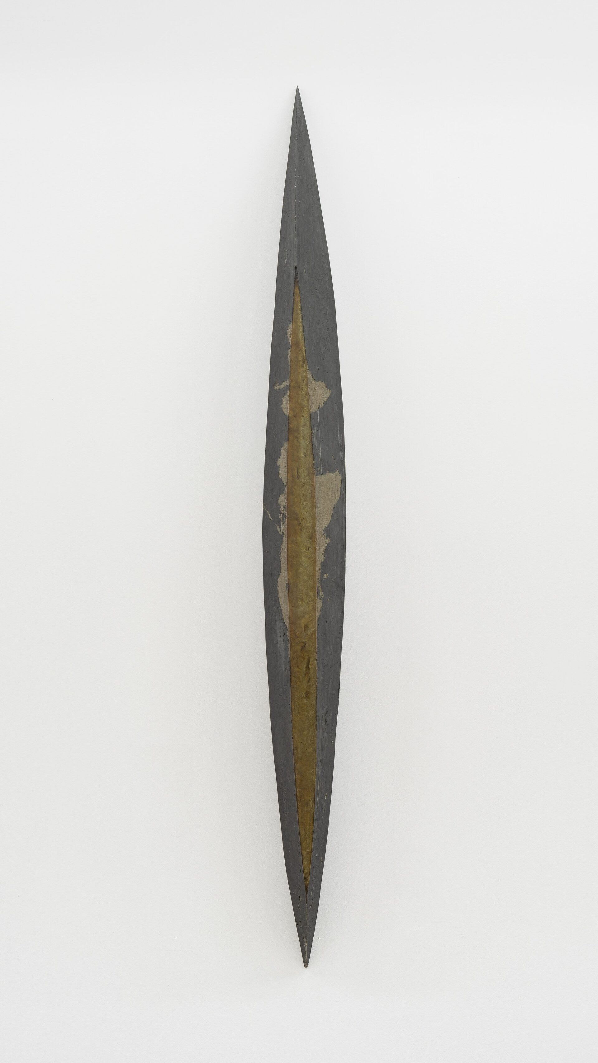 A fiberglass “wedge” and other works from the mid-1980s have a more integral or totemic presence. These lightweight forms explore a tension between the wall and the object, jutting out or arcing through space while at the same time withholding inner hollows and voids. Duff’s fiberglass objects are often painted on their insides, introducing further…