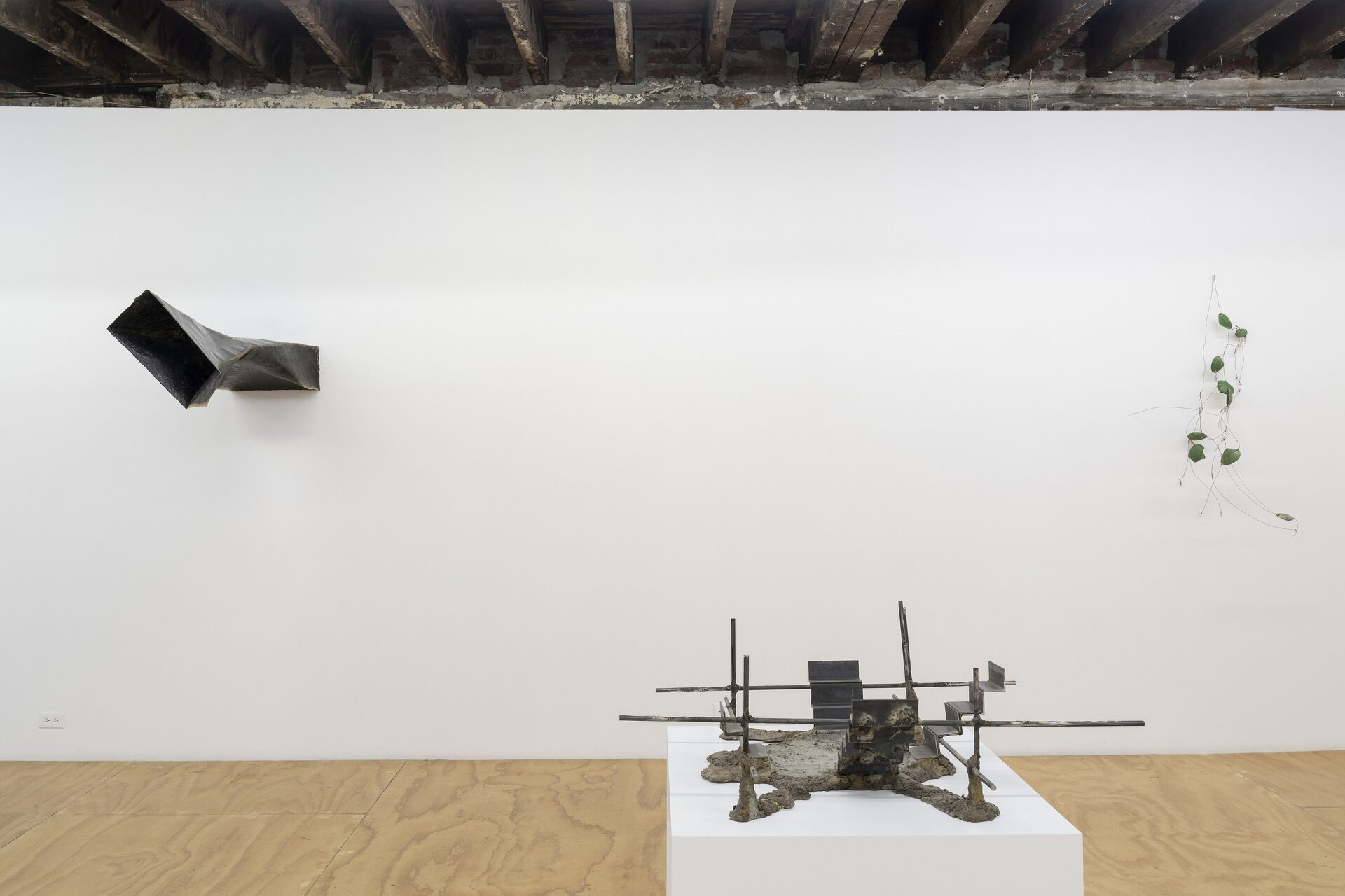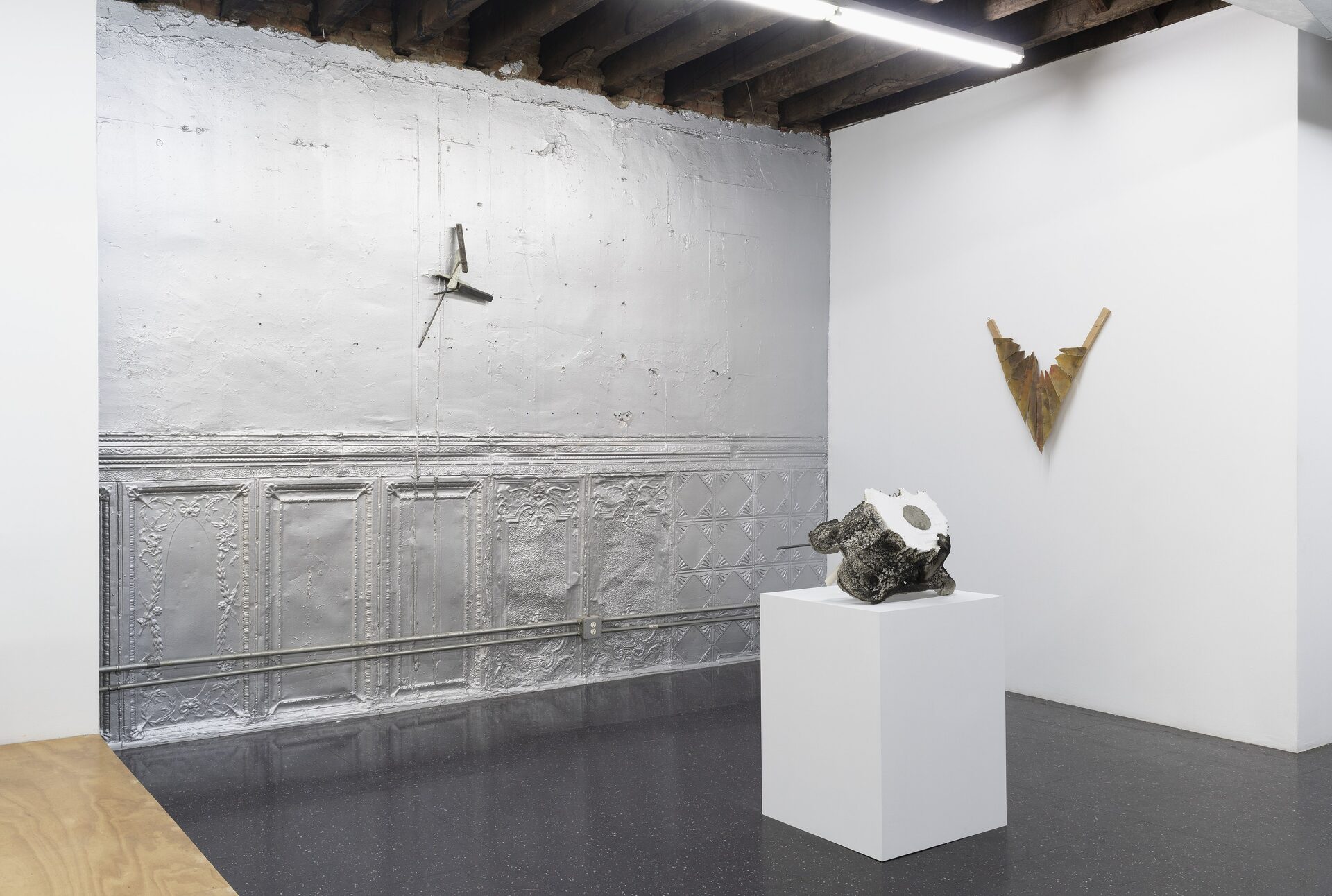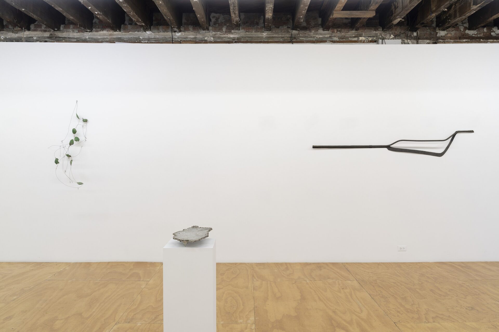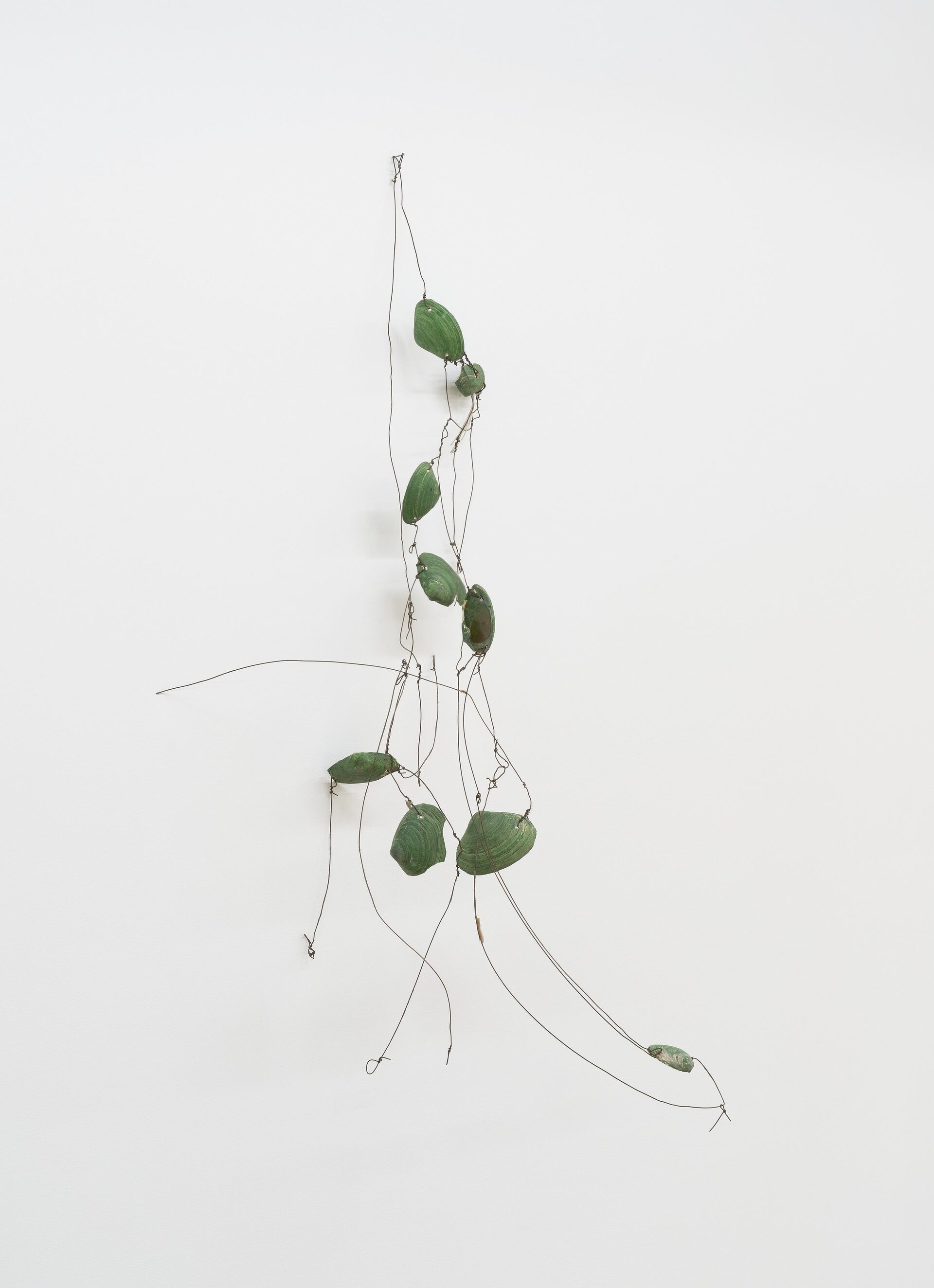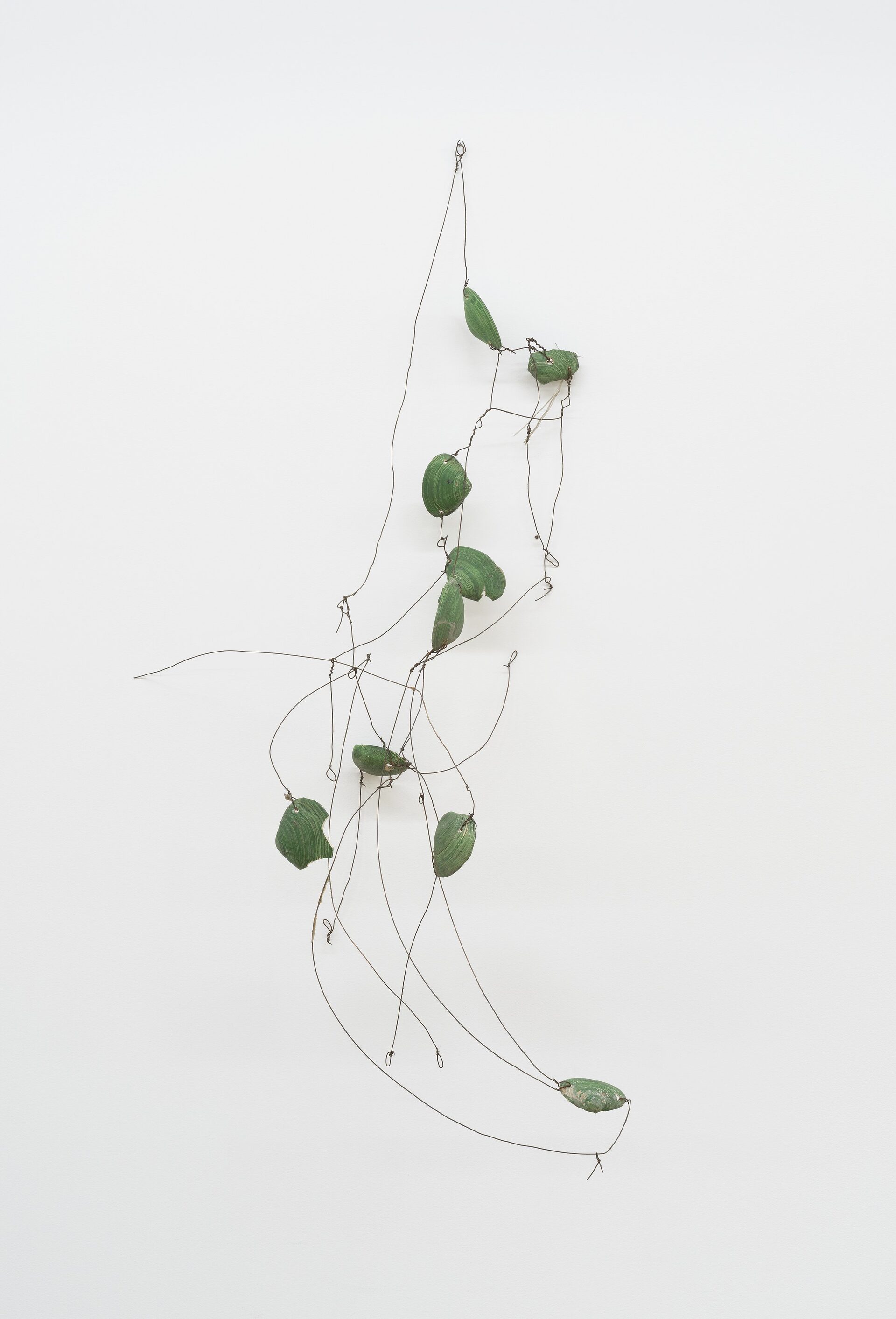 In 1968–9, an assemblage of green-painted clamshells and steel wire announced a constructivist or accretive trajectory in John Duff’s practice. Here, sculpture doesn’t arrive at a set goal but adventures semi-blindly toward form while leaving all the steps of its process exposed, because whatever it might become is mainly a question of how it gets here. Such works seem to tap natural forces of growth and change while mobilizing whatever materials are at hand, and conceal nothing. Made in Duff’s former Suffolk Street studio shortly after he arrived here from California, this early sculpture is shown now for the first time at Reena Spaulings.