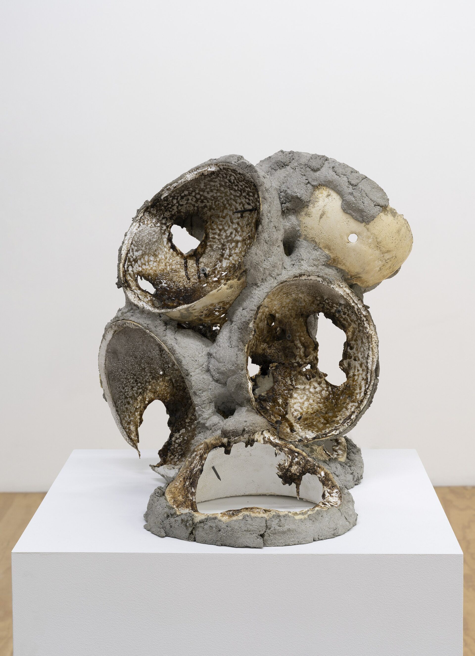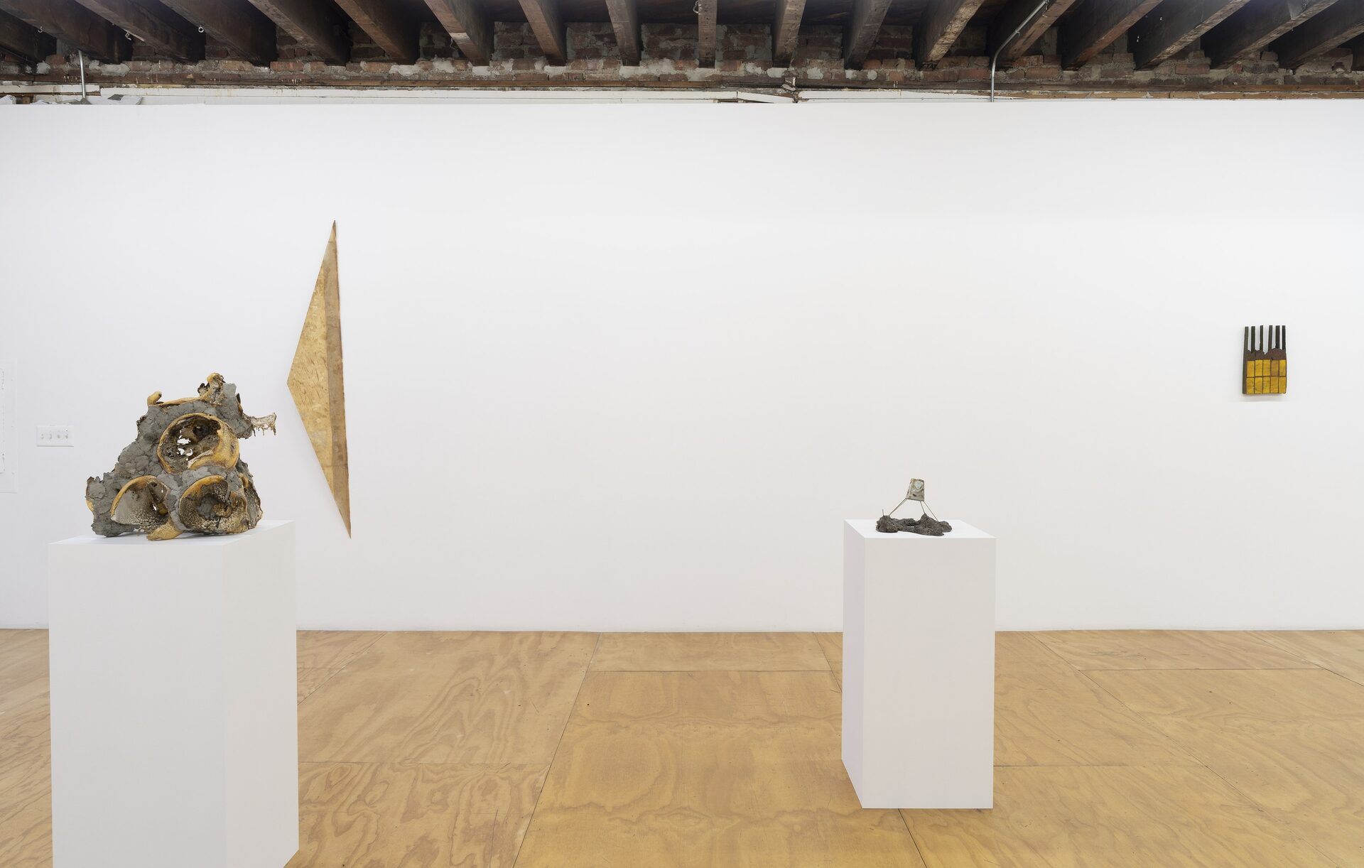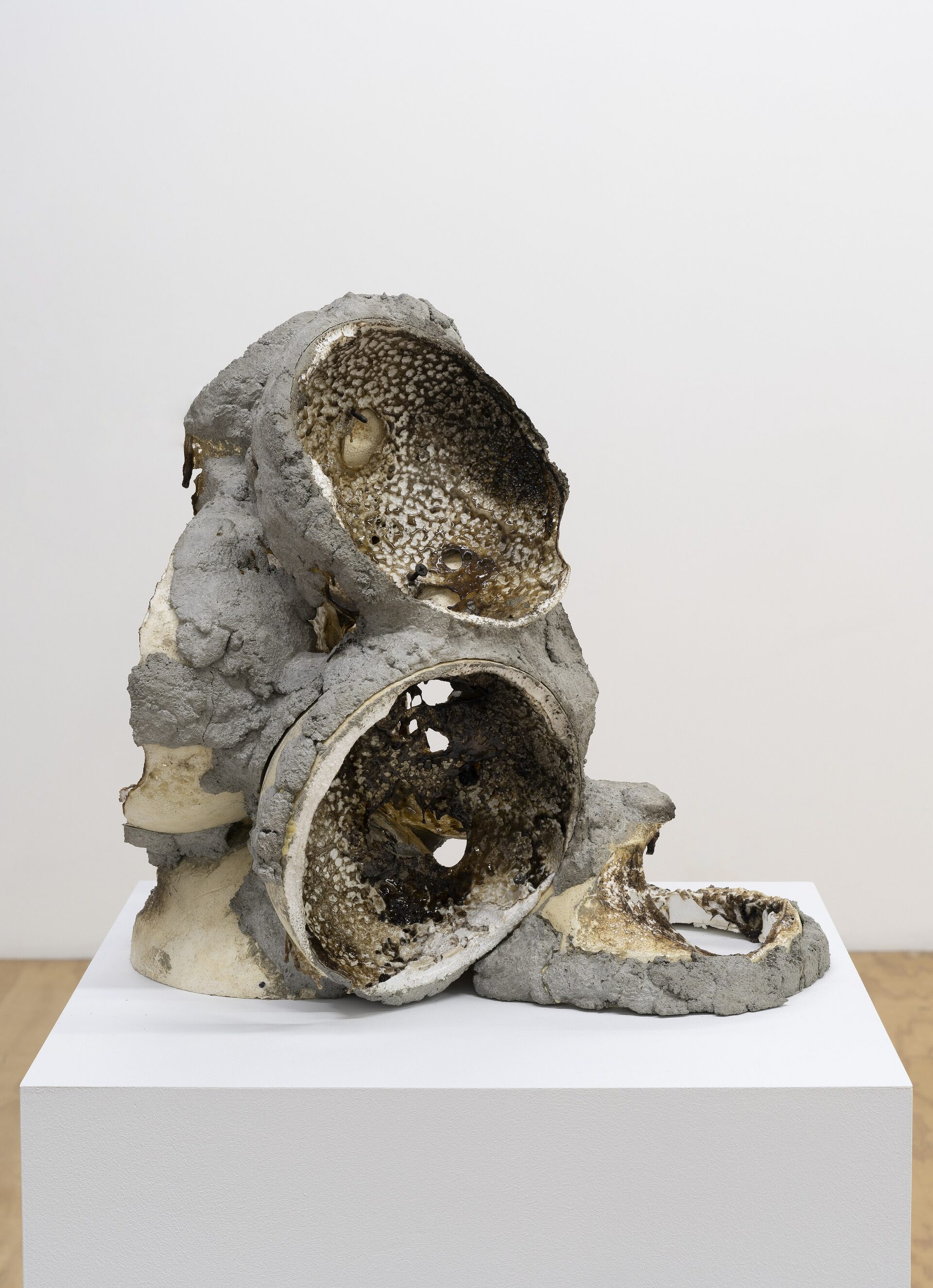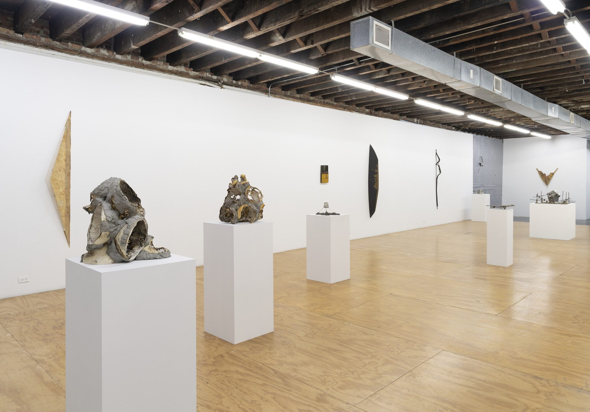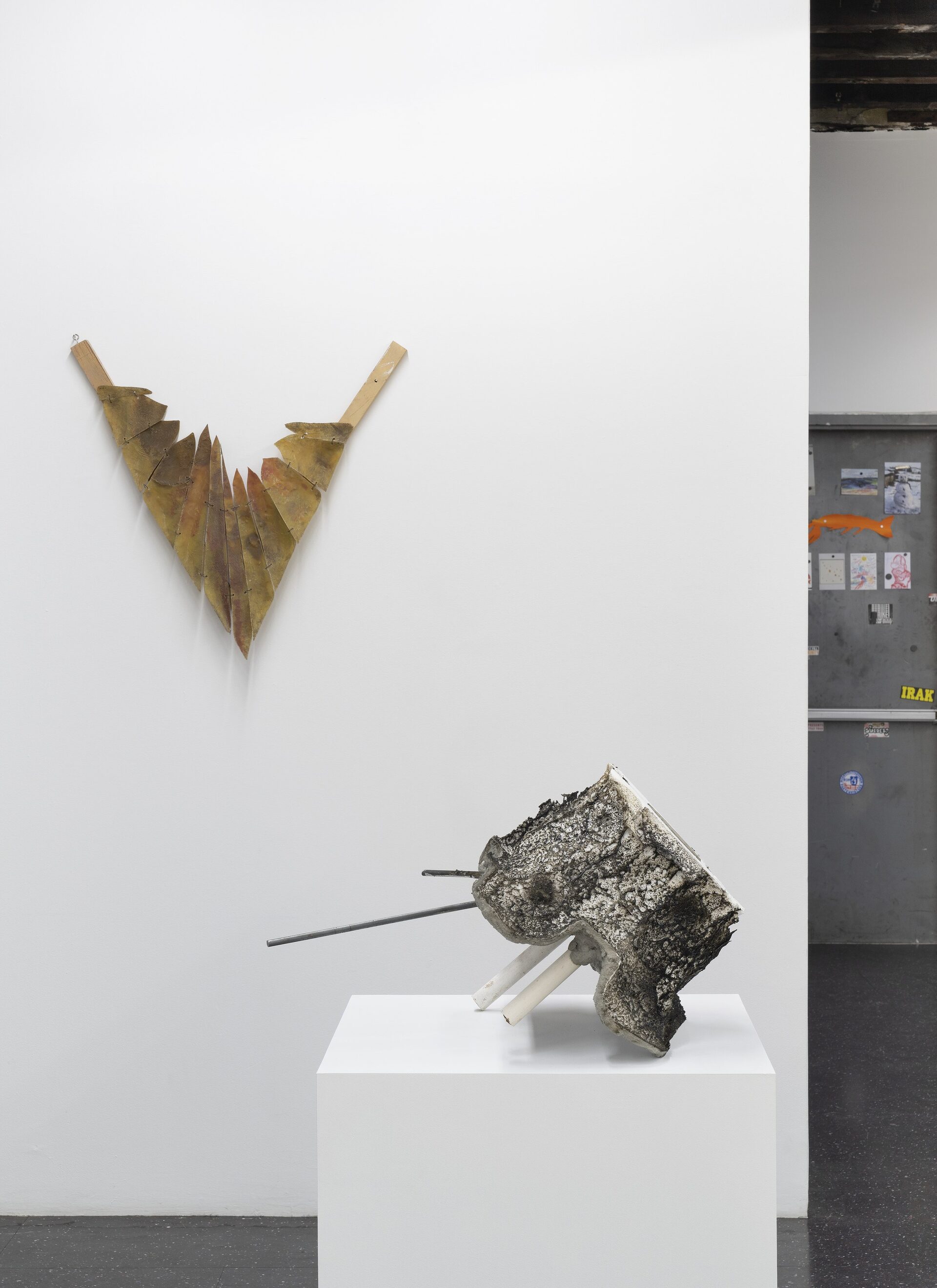 In 1968–9, an assemblage of green-painted clamshells and steel wire announced a constructivist or accretive trajectory in John Duff’s practice. Here, sculpture doesn’t arrive at a set goal but adventures semi-blindly toward form while leaving all the steps of its process exposed, because whatever it might become is mainly a question of how it gets here. Such works seem to tap natural forces of growth and change while mobilizing whatever materials are at hand, and conceal nothing. Made in Duff’s former Suffolk Street studio shortly after he arrived here from California, this early sculpture is shown now for the first time at Reena Spaulings.