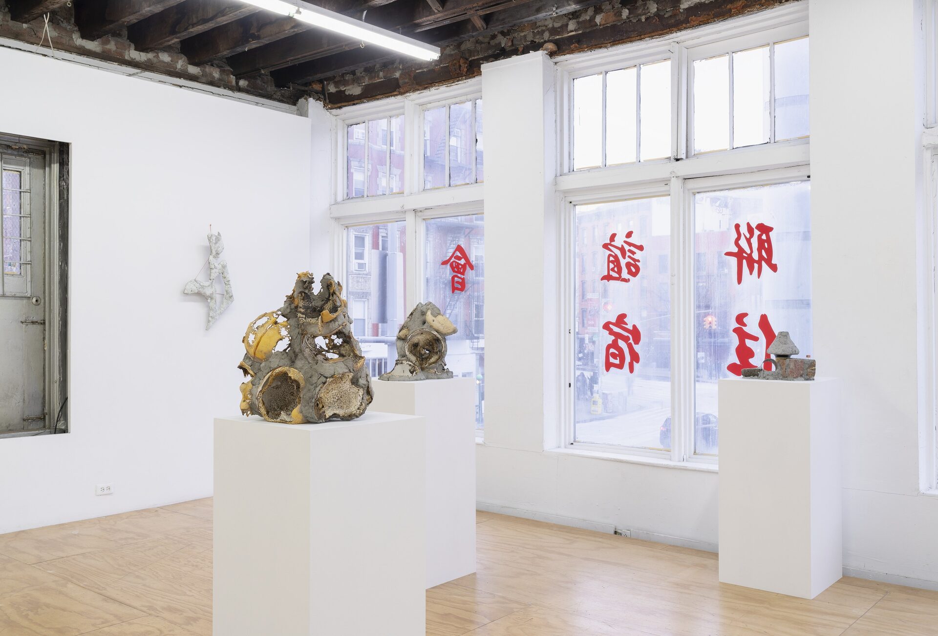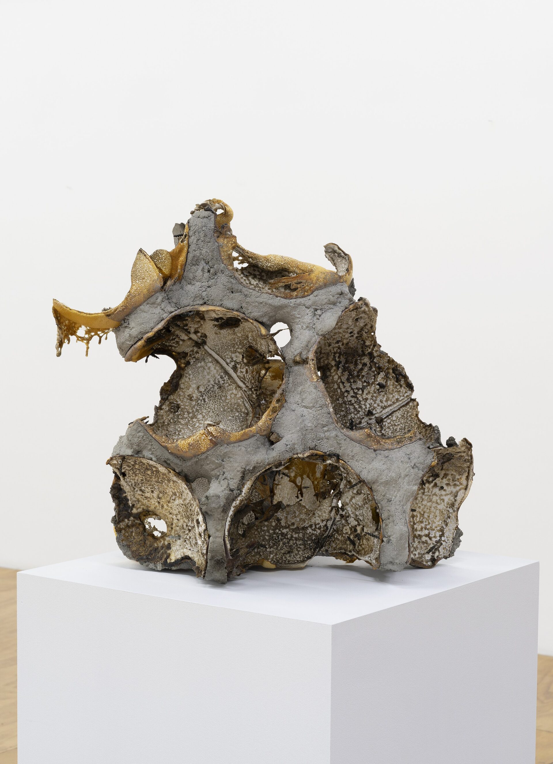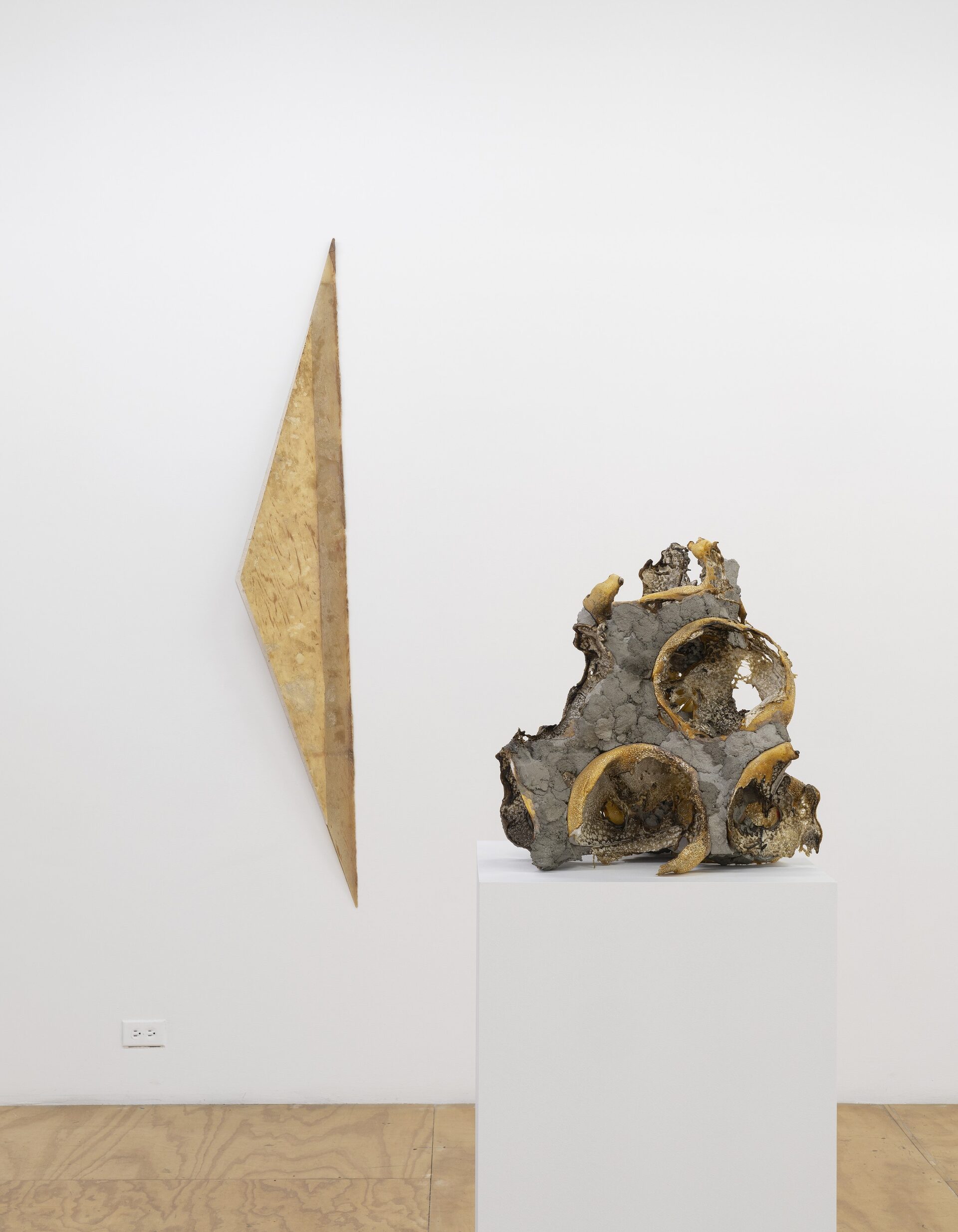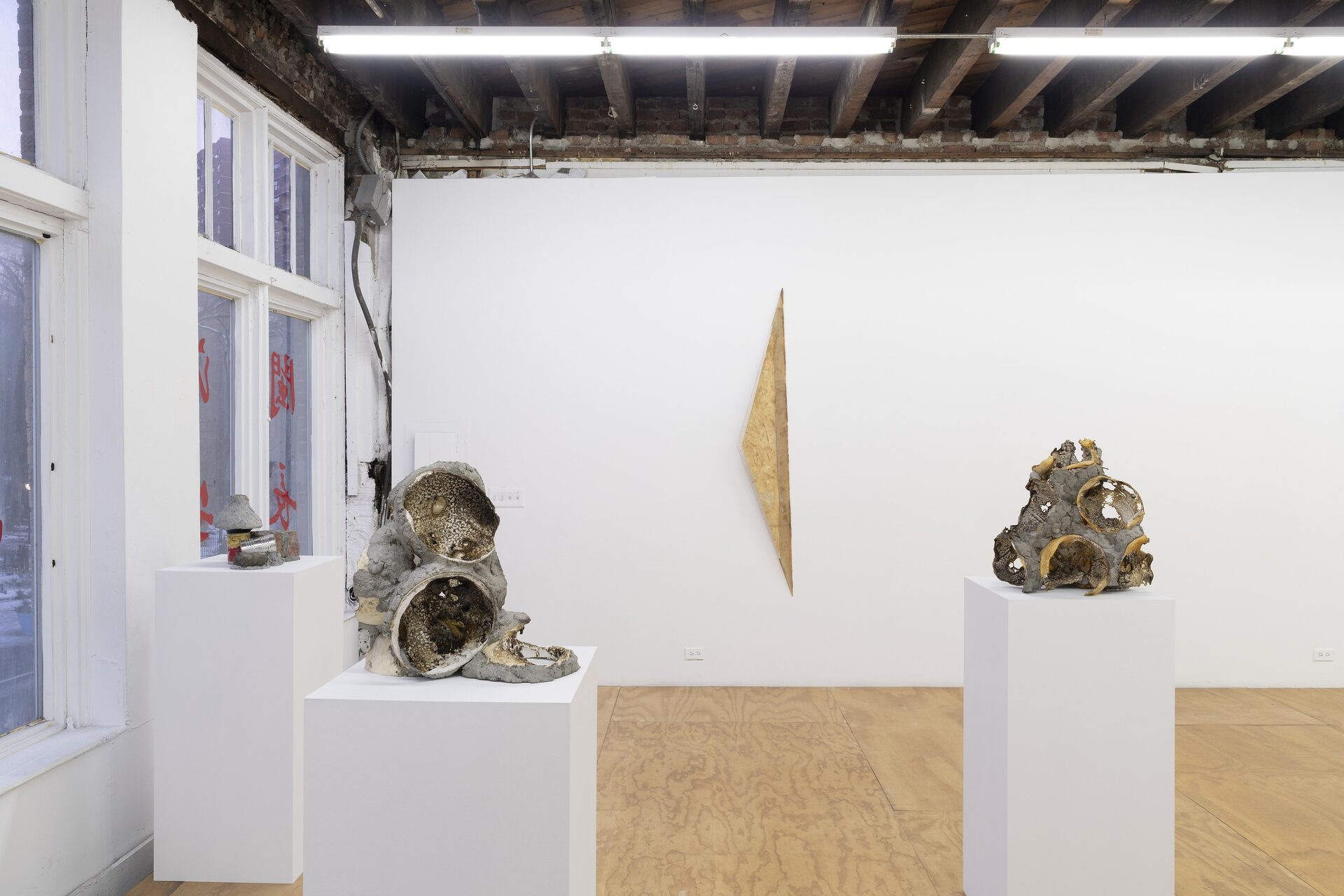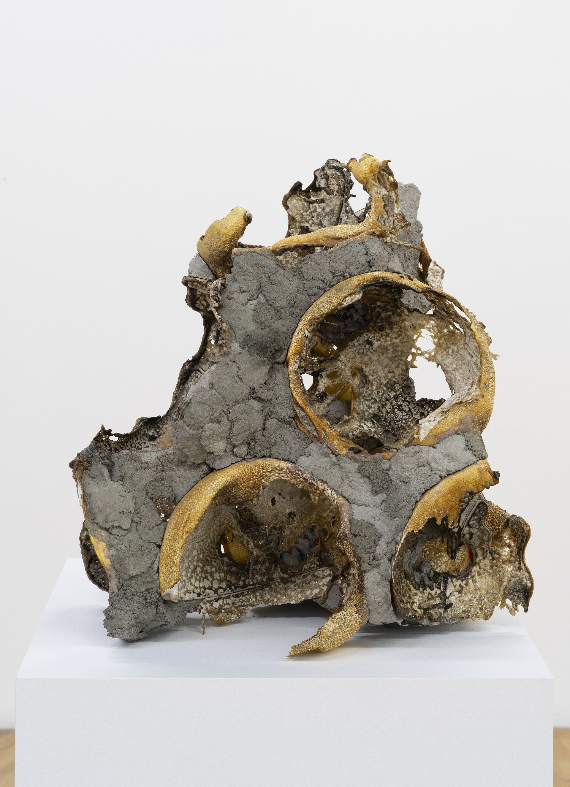 In 1968–9, an assemblage of green-painted clamshells and steel wire announced a constructivist or accretive trajectory in John Duff’s practice. Here, sculpture doesn’t arrive at a set goal but adventures semi-blindly toward form while leaving all the steps of its process exposed, because whatever it might become is mainly a question of how it gets here. Such works seem to tap natural forces of growth and change while mobilizing whatever materials are at hand, and conceal nothing. Made in Duff’s former Suffolk Street studio shortly after he arrived here from California, this early sculpture is shown now for the first time at Reena Spaulings.