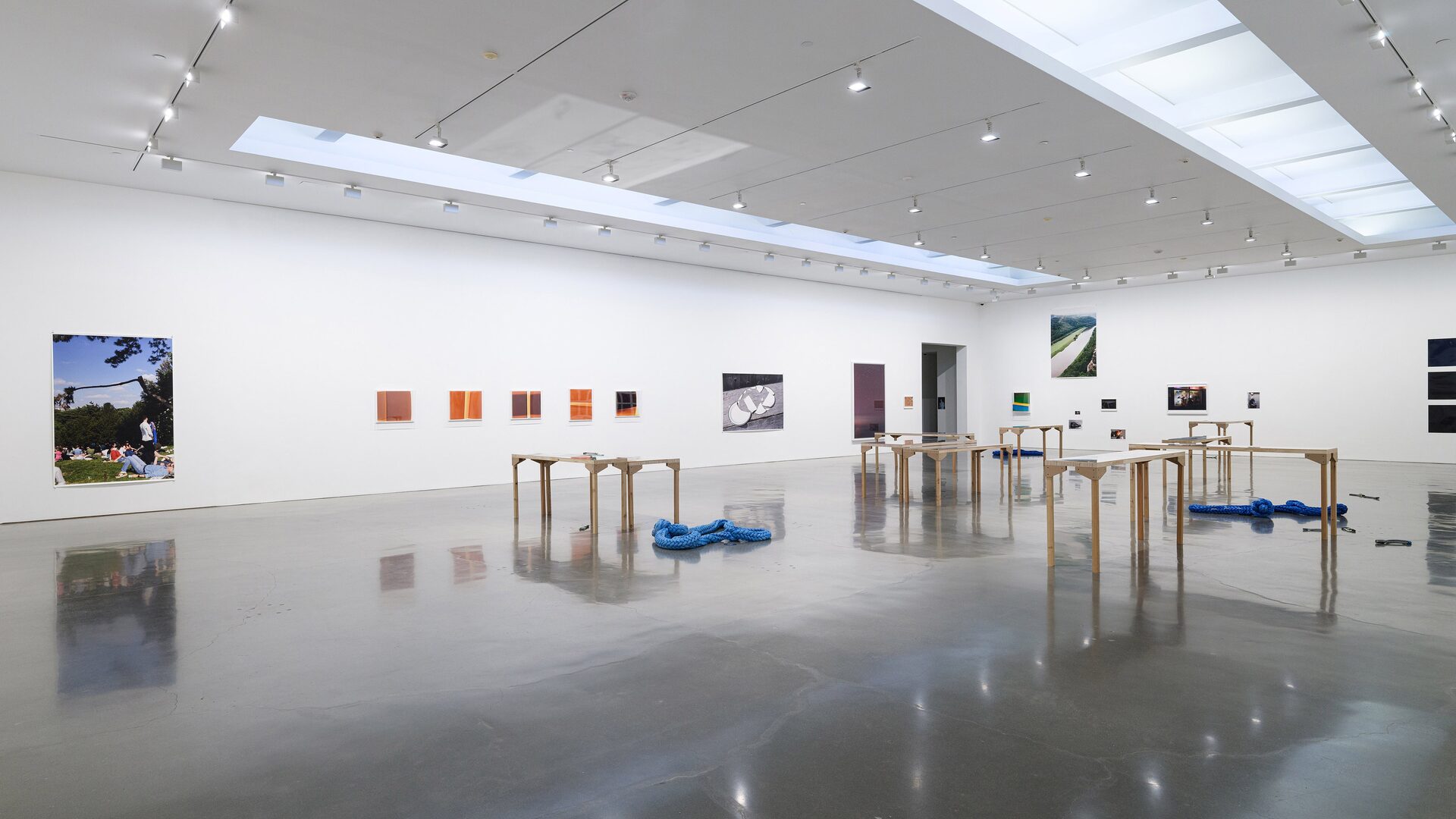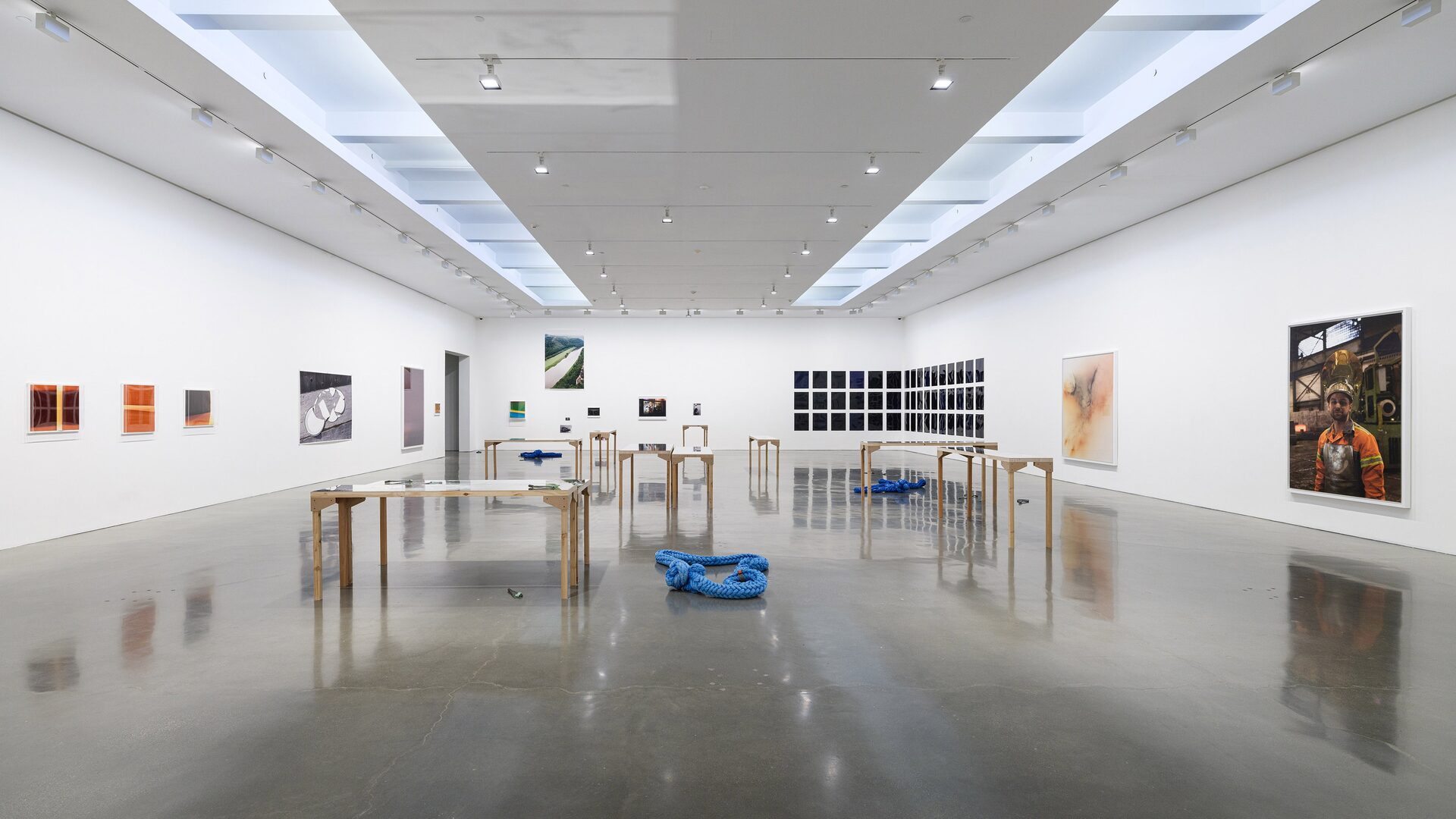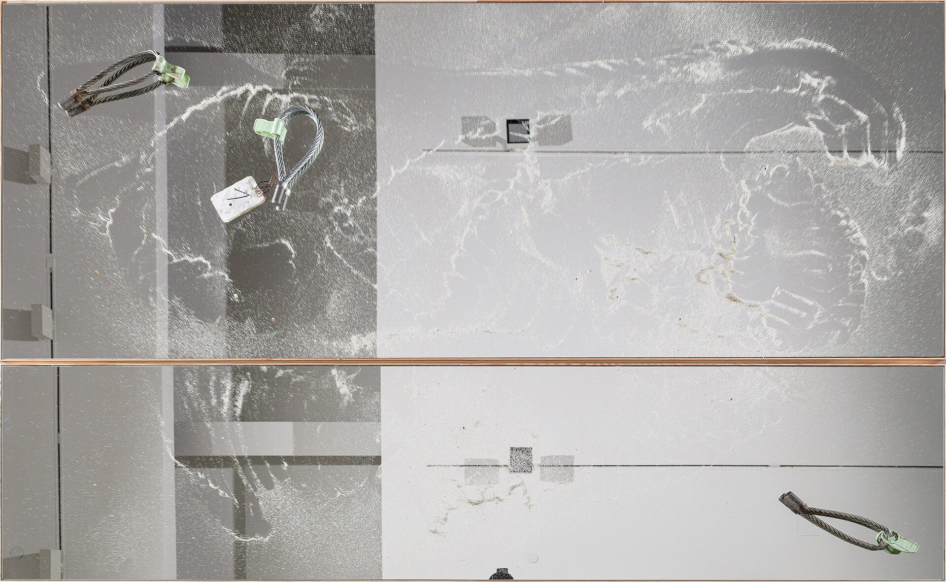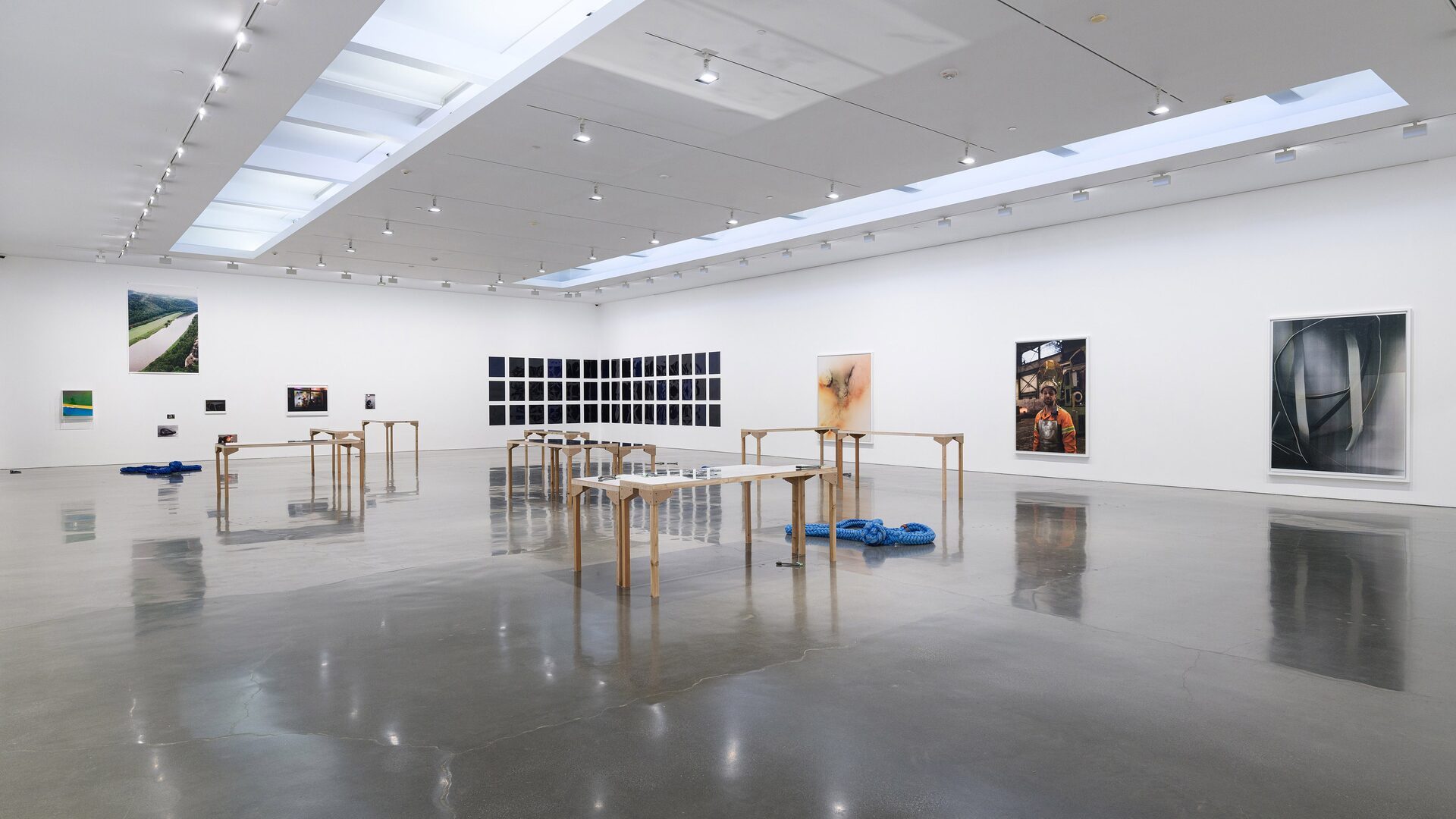 In the gallery, Tillmans presents Nautical Ropes and Concrete Lifting Loops (2025) — some coiled on the floor, others resting on tables set atop mirrored surfaces. The hawser shackles are a direct…