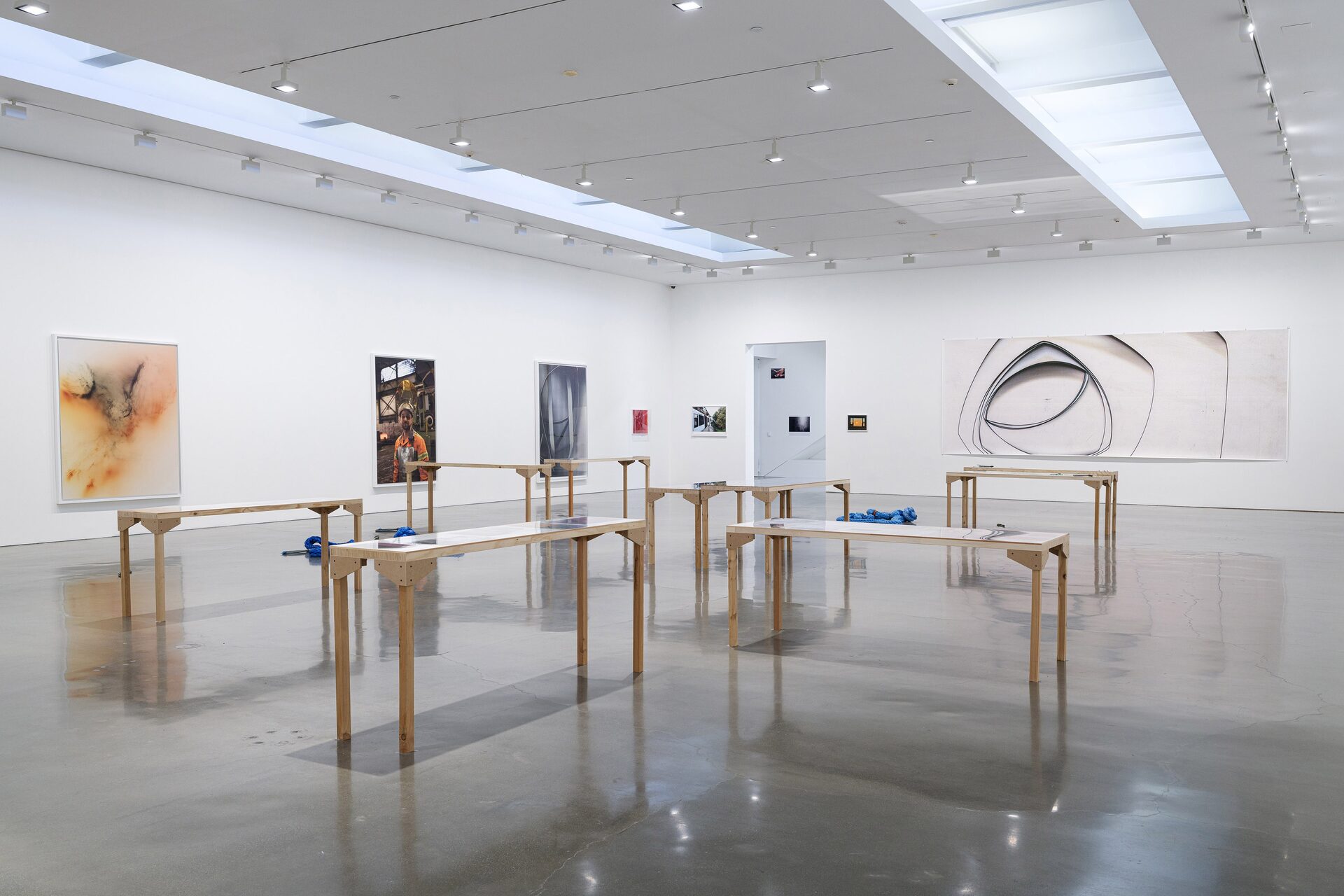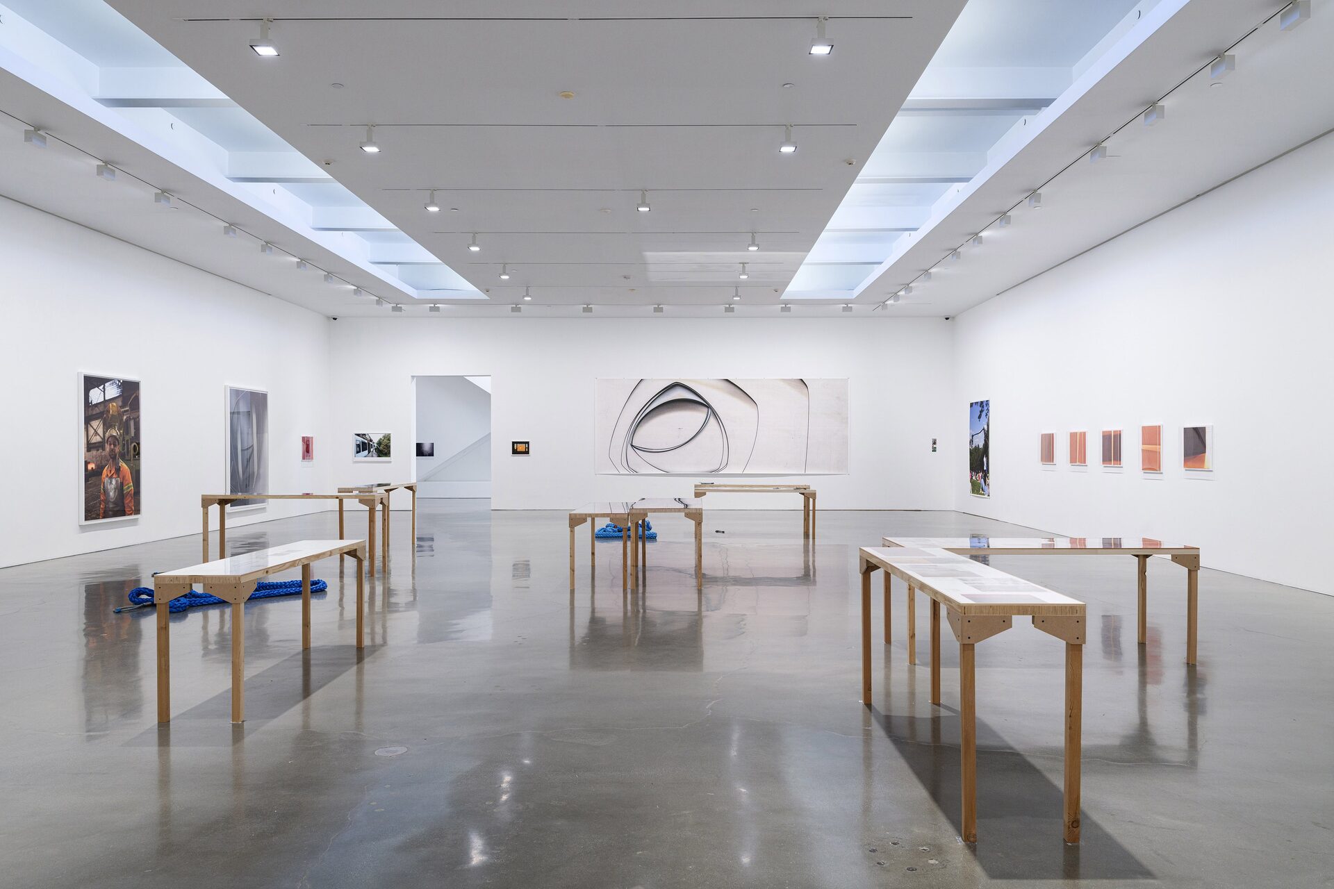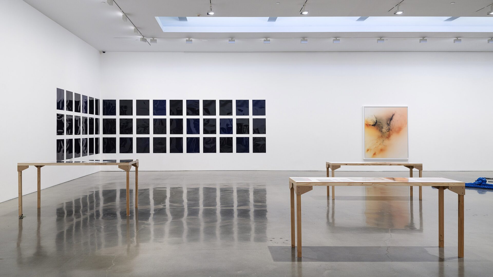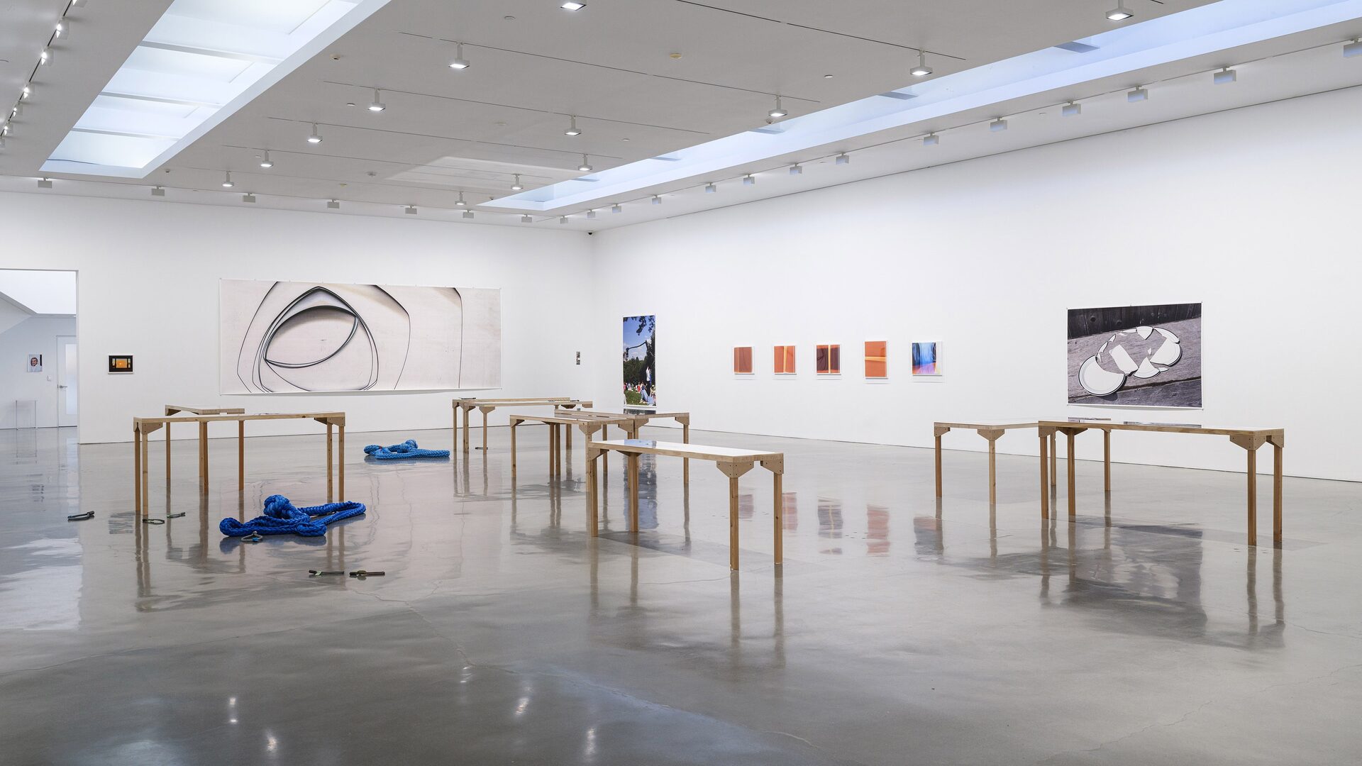 In the gallery, Tillmans presents Nautical Ropes and Concrete Lifting Loops (2025) — some coiled on the floor, others resting on tables set atop mirrored surfaces. The hawser shackles are a direct…