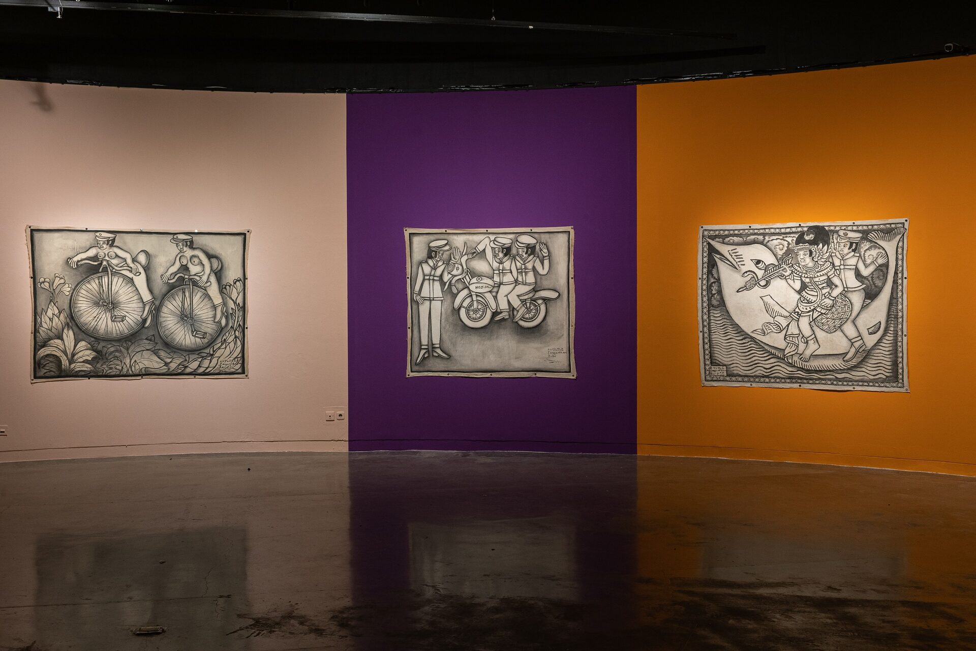 The exhibition’s title, Warna Hidup, in Indonesian meaning “the colour of life”, may not be literally traced in Oototol’s works as necessitated by the exclusively monochromatic lens of his ink. But it is rather about his creative misreadings that give colour to the everyday and transgressive, the infectious quality of his way of seeing that touches every corner of the everyday to the mythical. The military uniformed self-portrait, recurring across the…