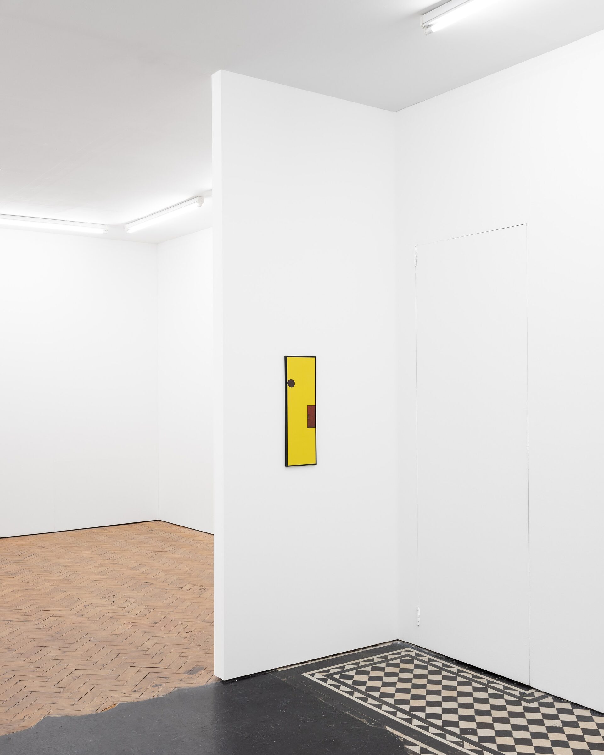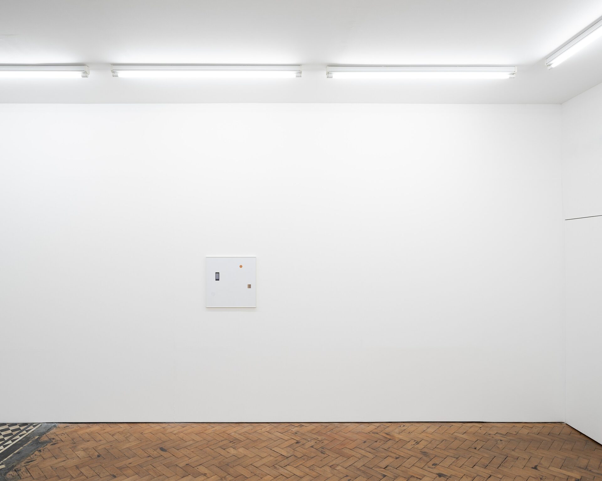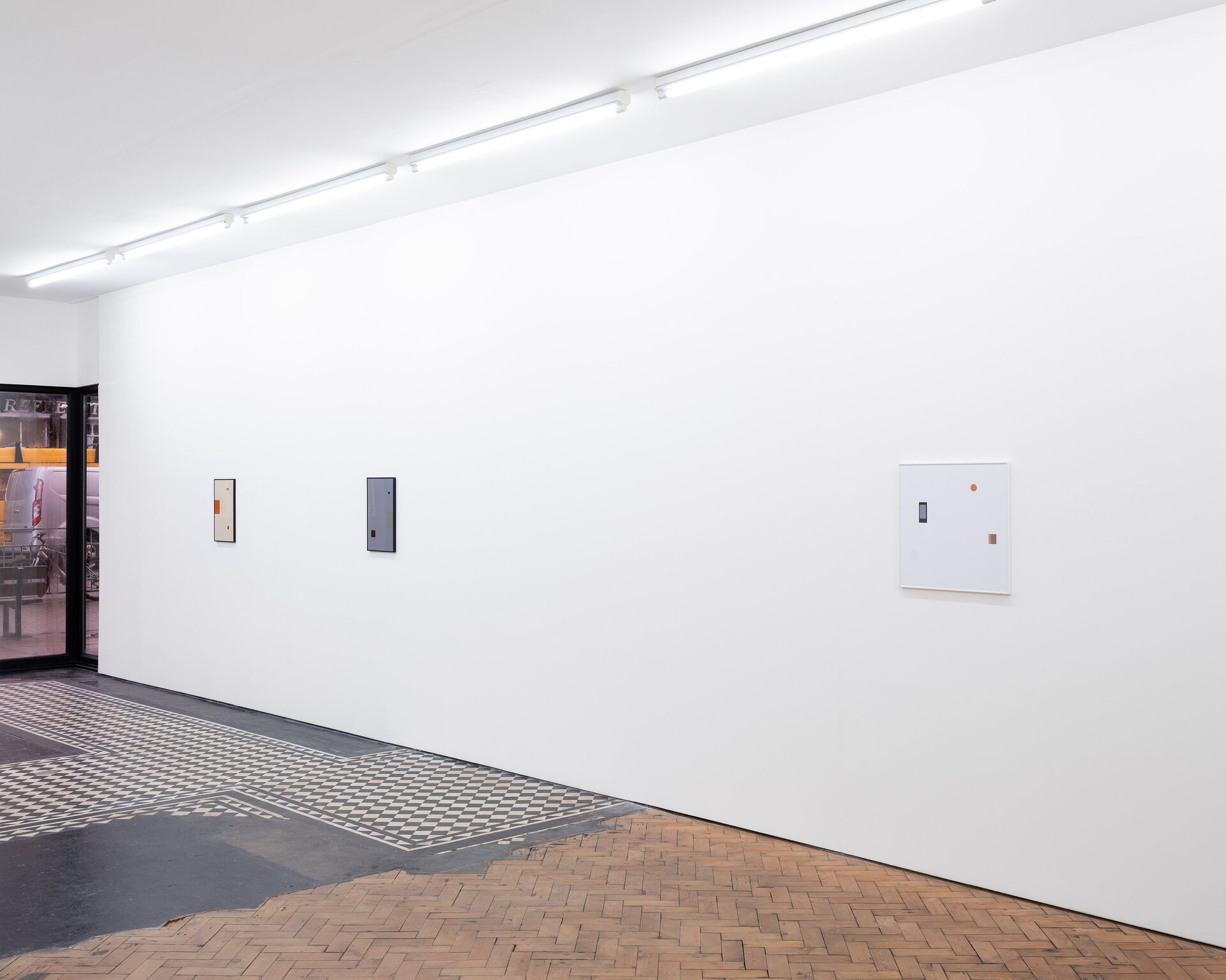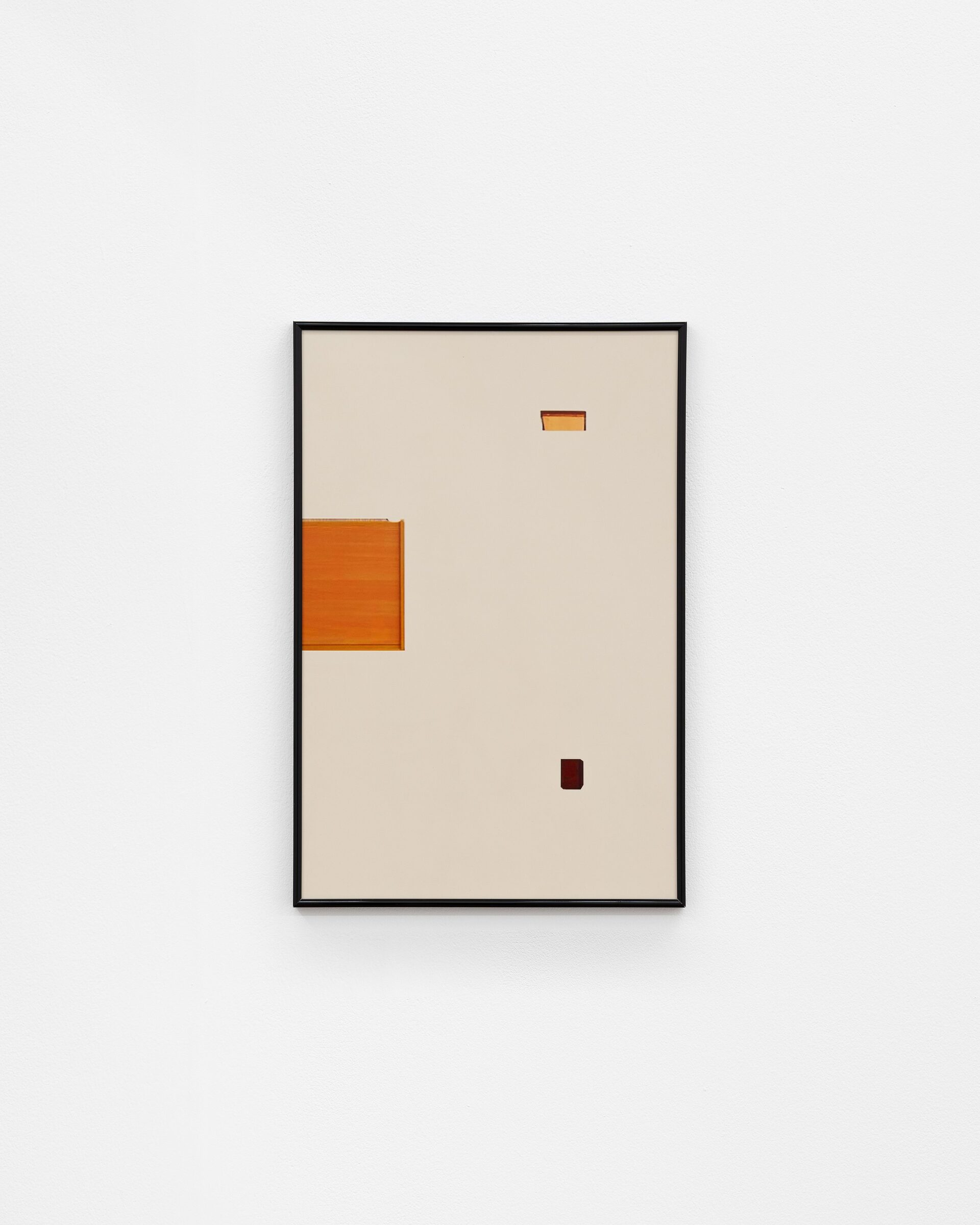 The exhibition includes a series of framed prints which have been produced using a high street chemist’s printing service. The images each contain two or three elements: circles and rectangles of digital information, cut and pasted from found photographs. Details of the source material are given in the above works list. An audio work is also installed in the gallery, with a sound effect taken from a Youtube video repeating at varied intervals.