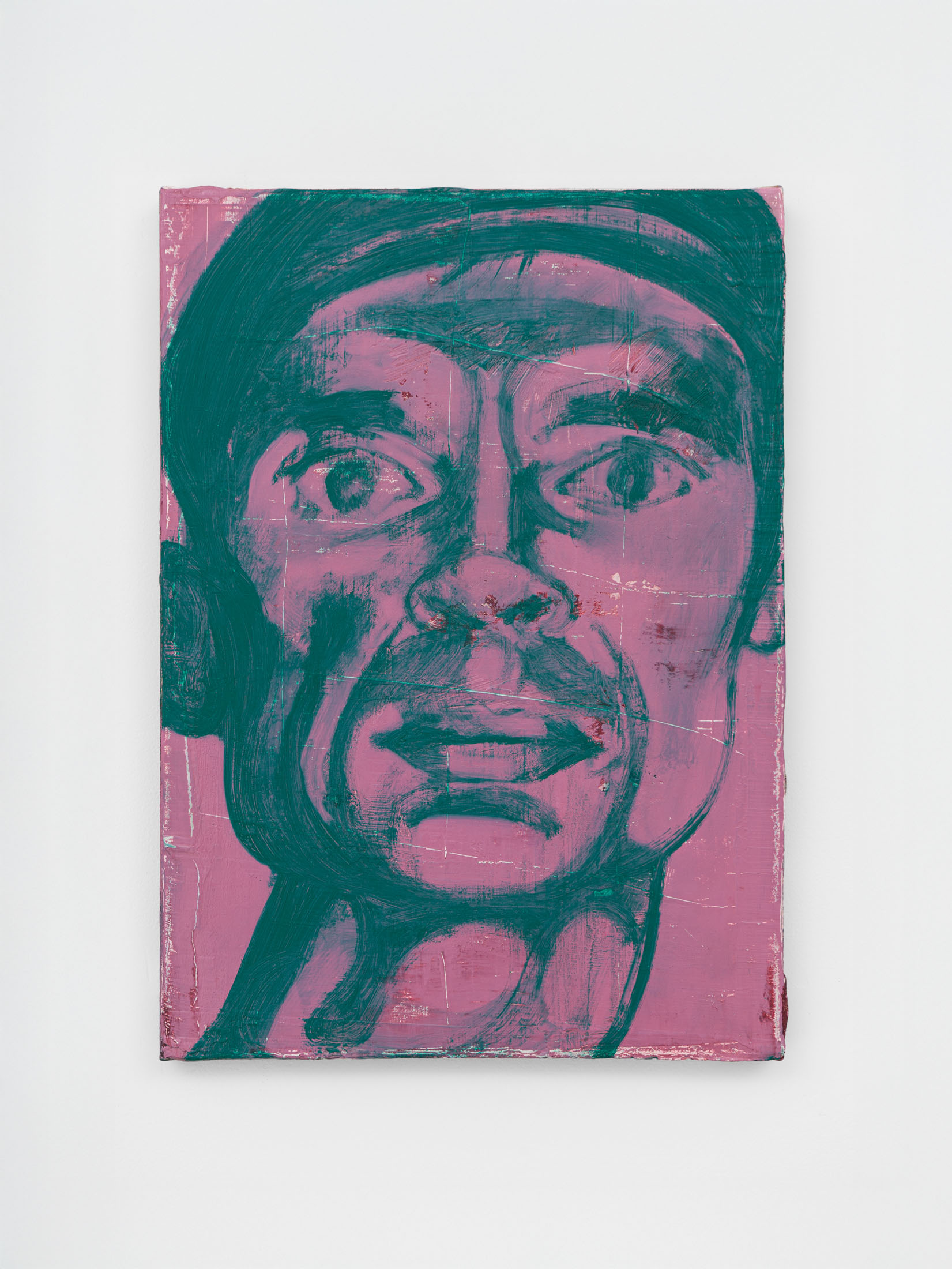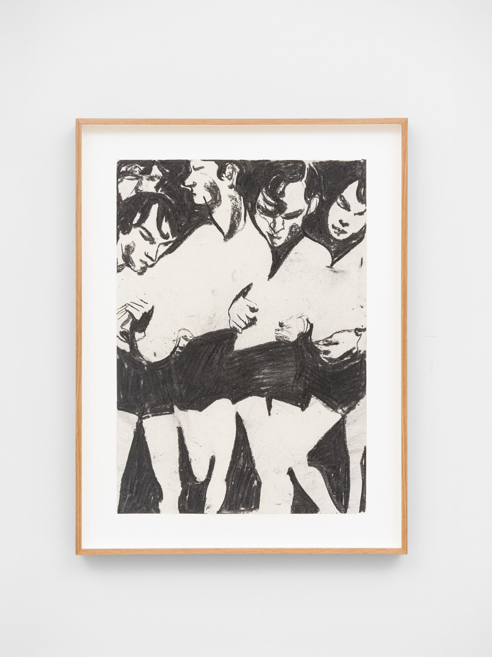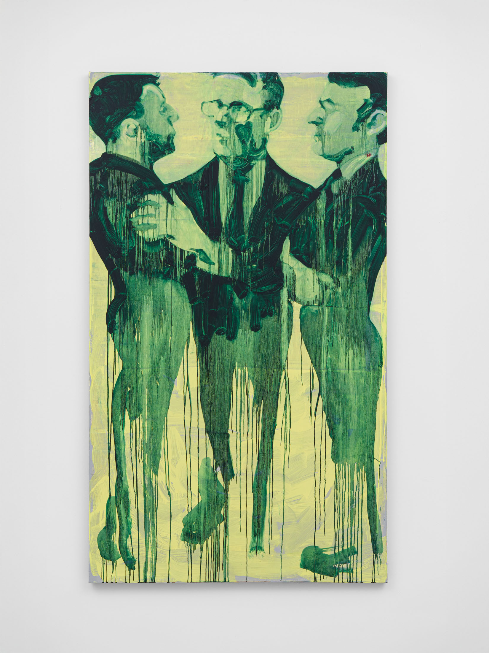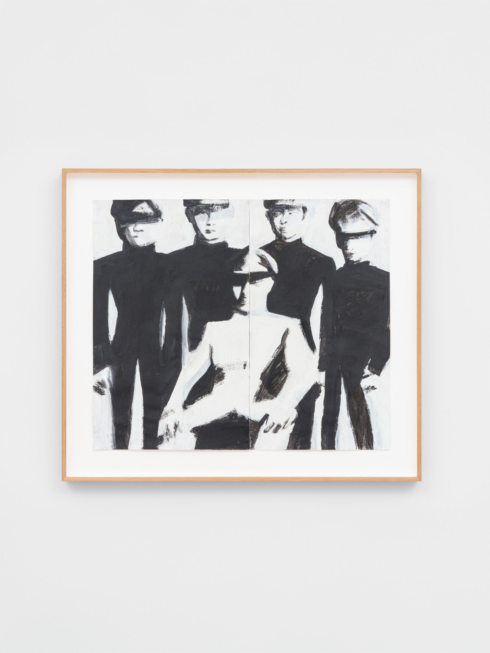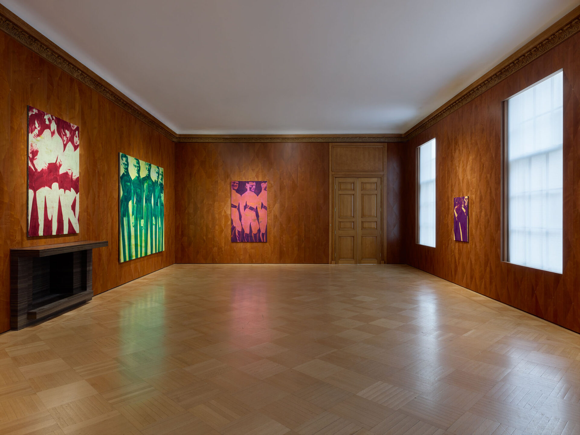 Foxton’s new body of work tackles masculinity at a time when it is being overperformed and reduced to its most classical and rigid codes. Young, controlled bodies with strict demeanors confront us in large group compositions, while portraits of authority figures follow us with their cold gaze. While the artist continues to place primary importance on the physical body, he now approaches it more in relation to the group—to the way it is shaped by various social and political influences.