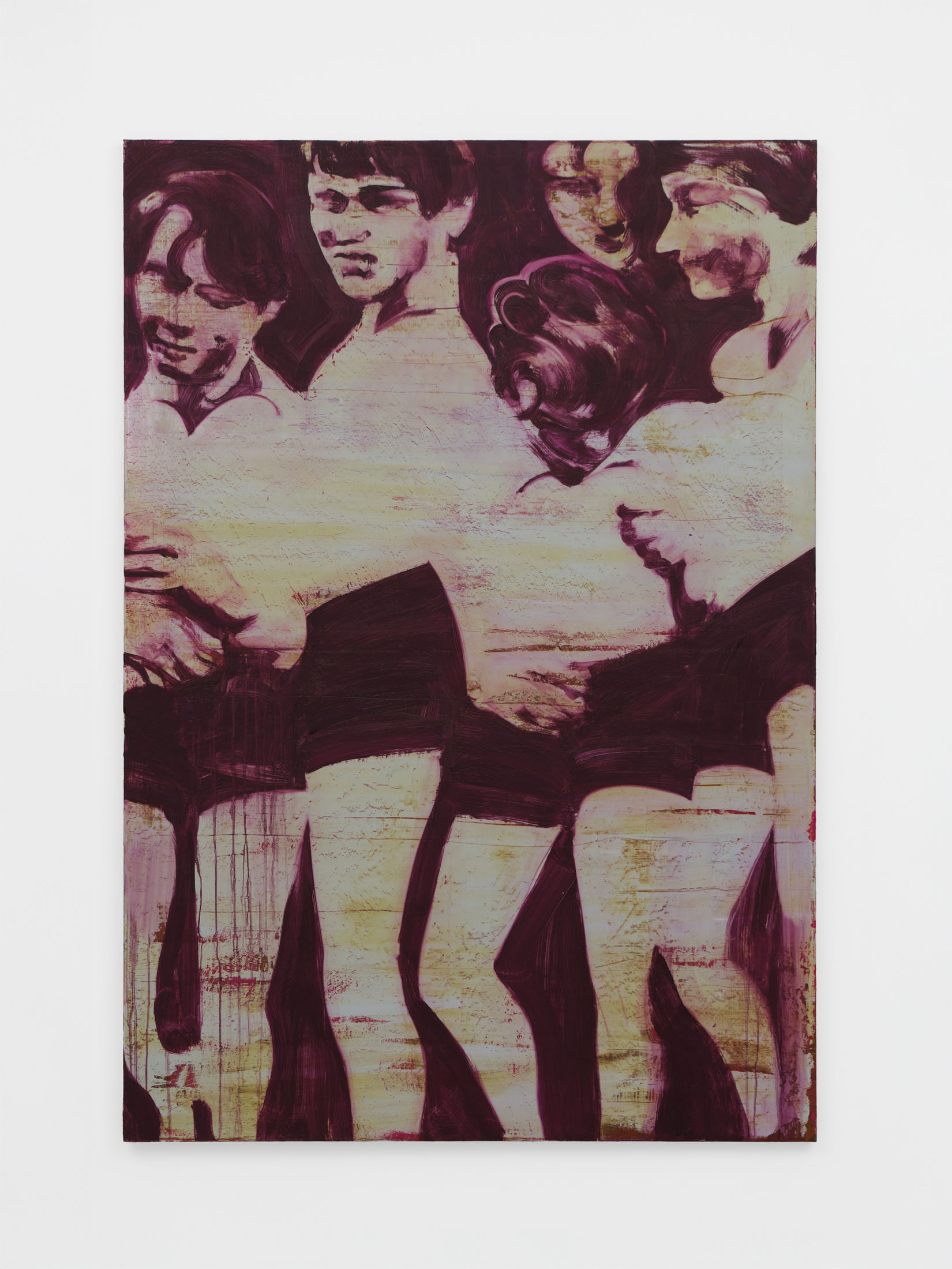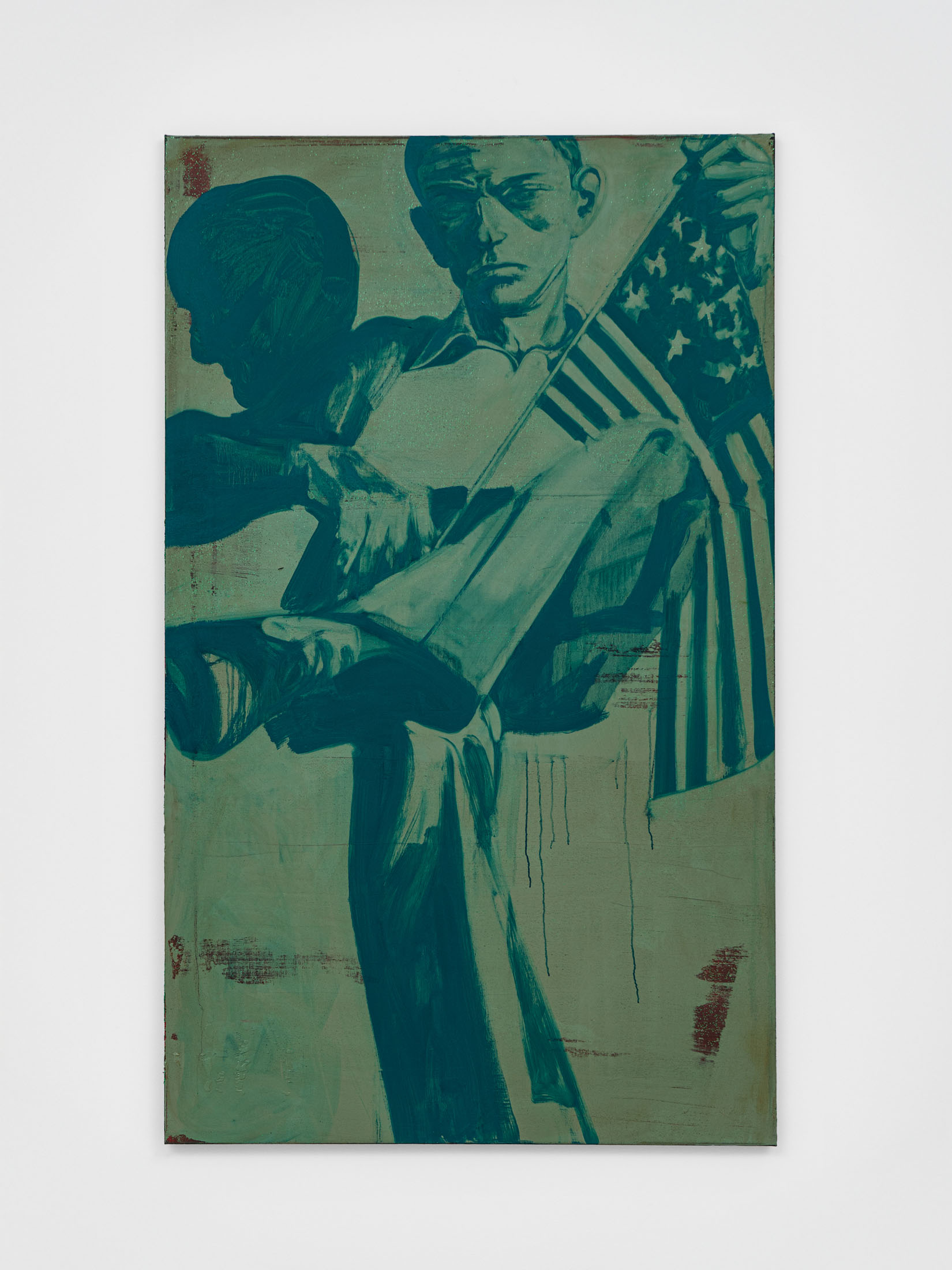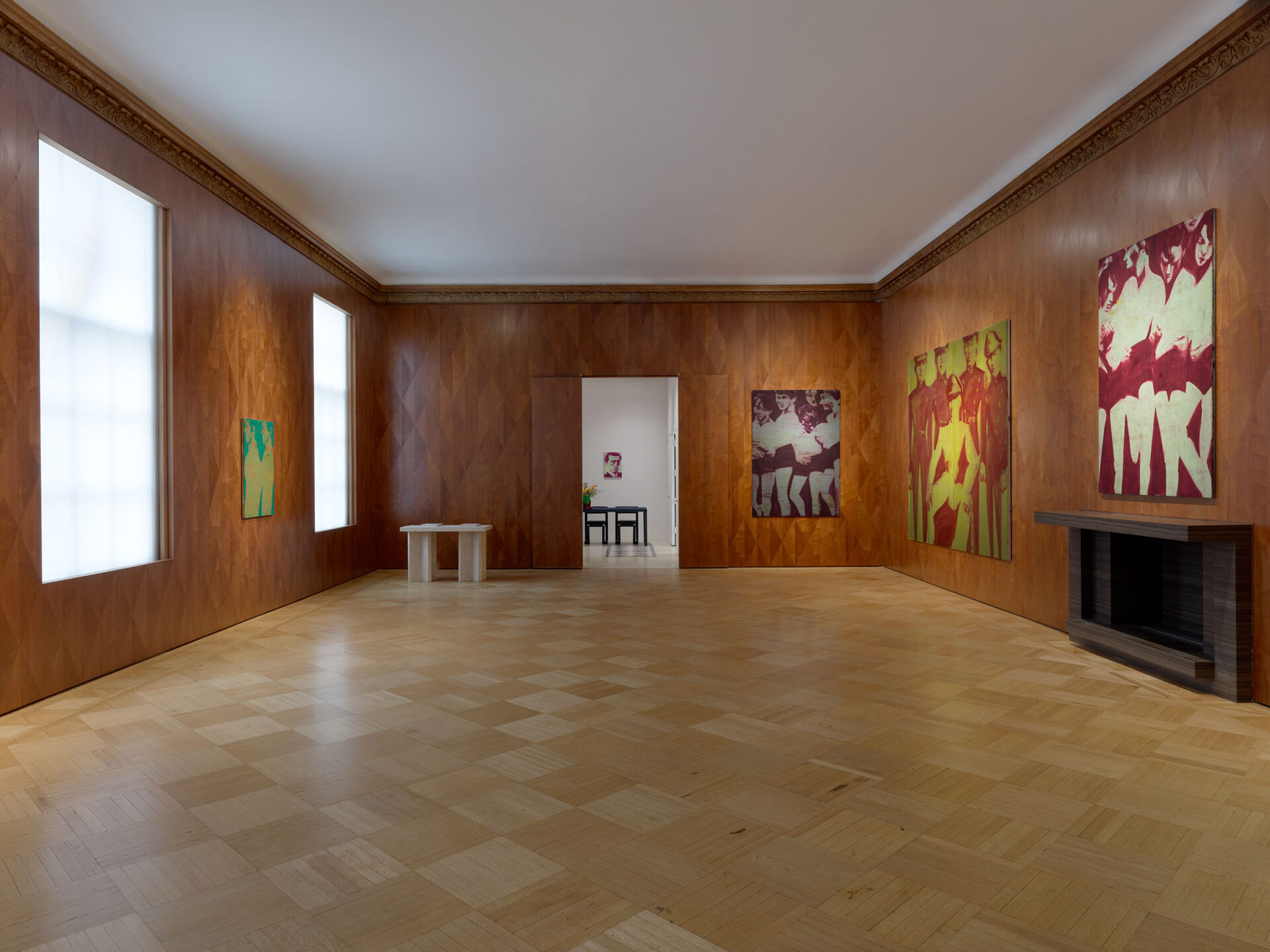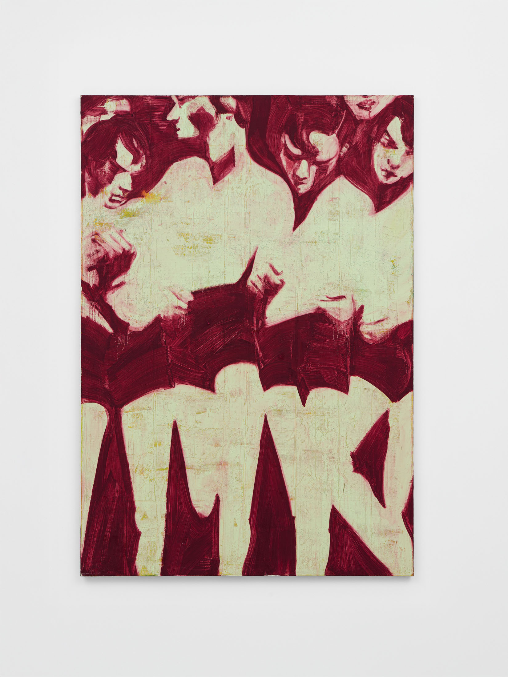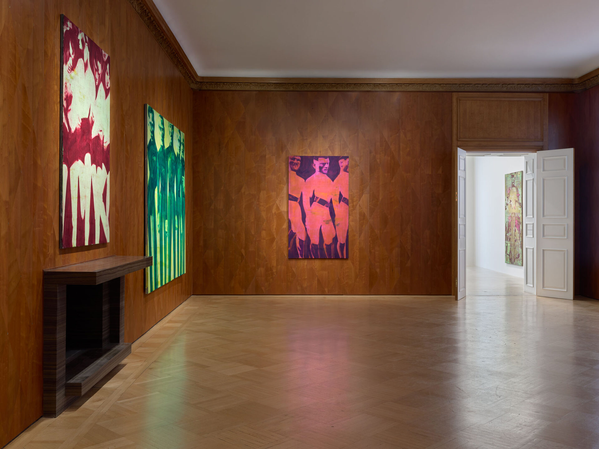 Foxton’s new body of work tackles masculinity at a time when it is being overperformed and reduced to its most classical and rigid codes. Young, controlled bodies with strict demeanors confront us in large group compositions, while portraits of authority figures follow us with their cold gaze. While the artist continues to place primary importance on the physical body, he now approaches it more in relation to the group—to the way it is shaped by various social and political influences.