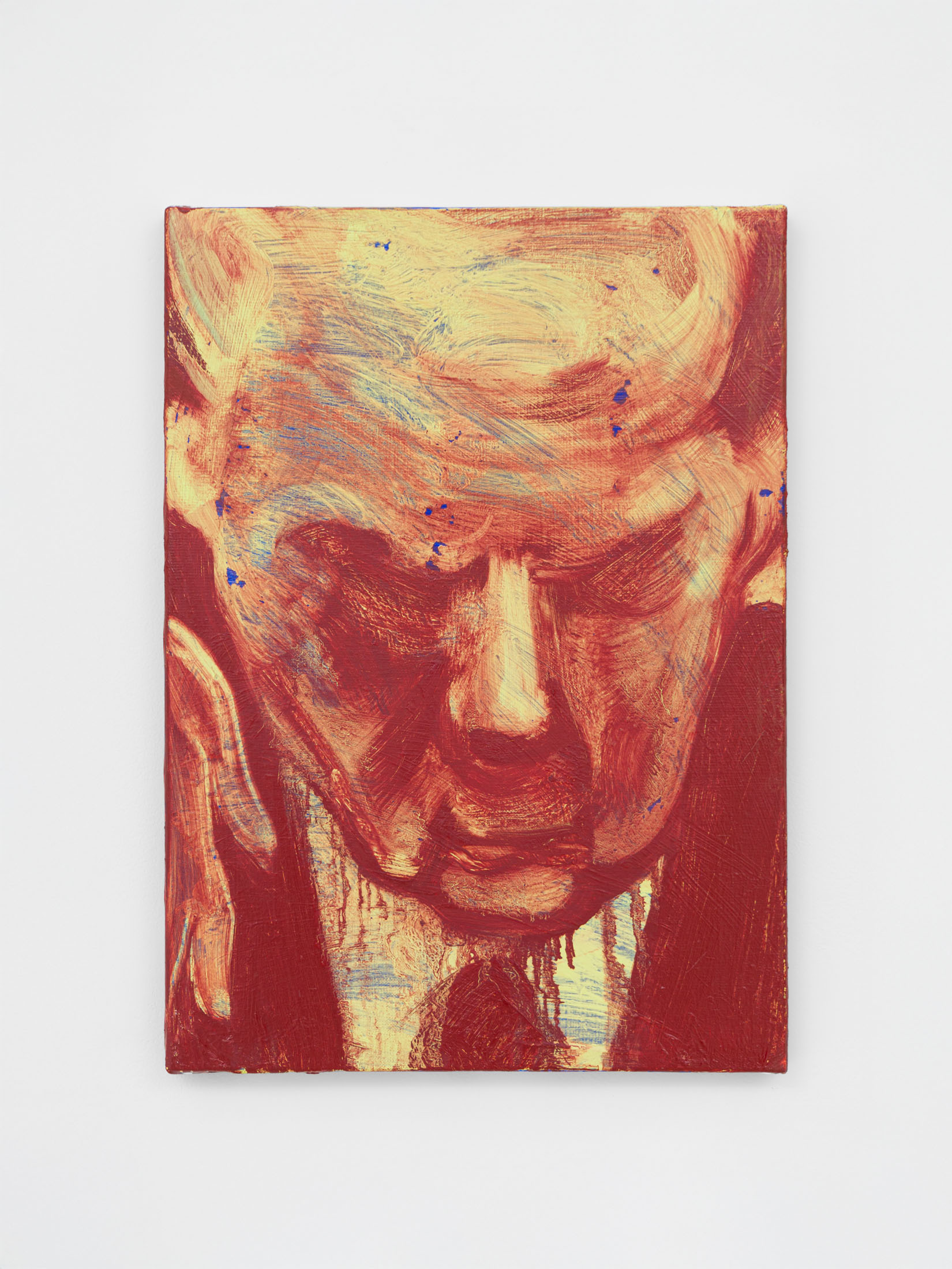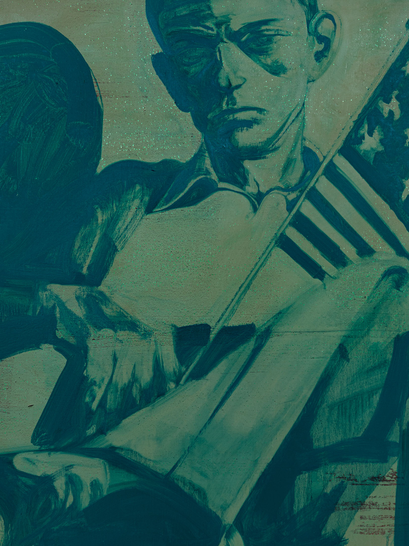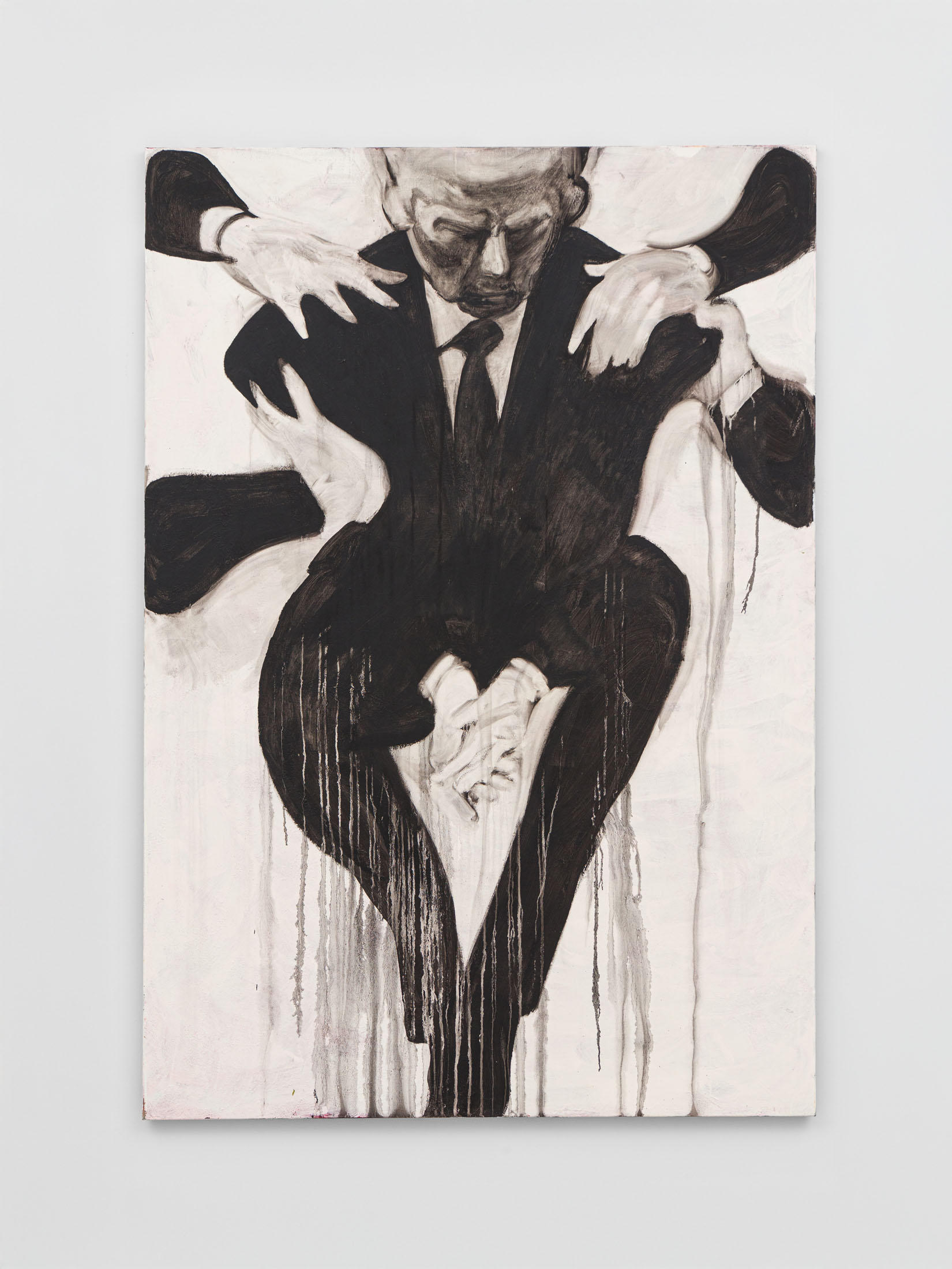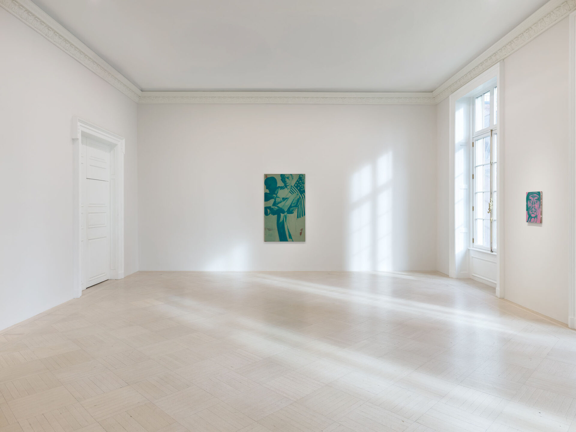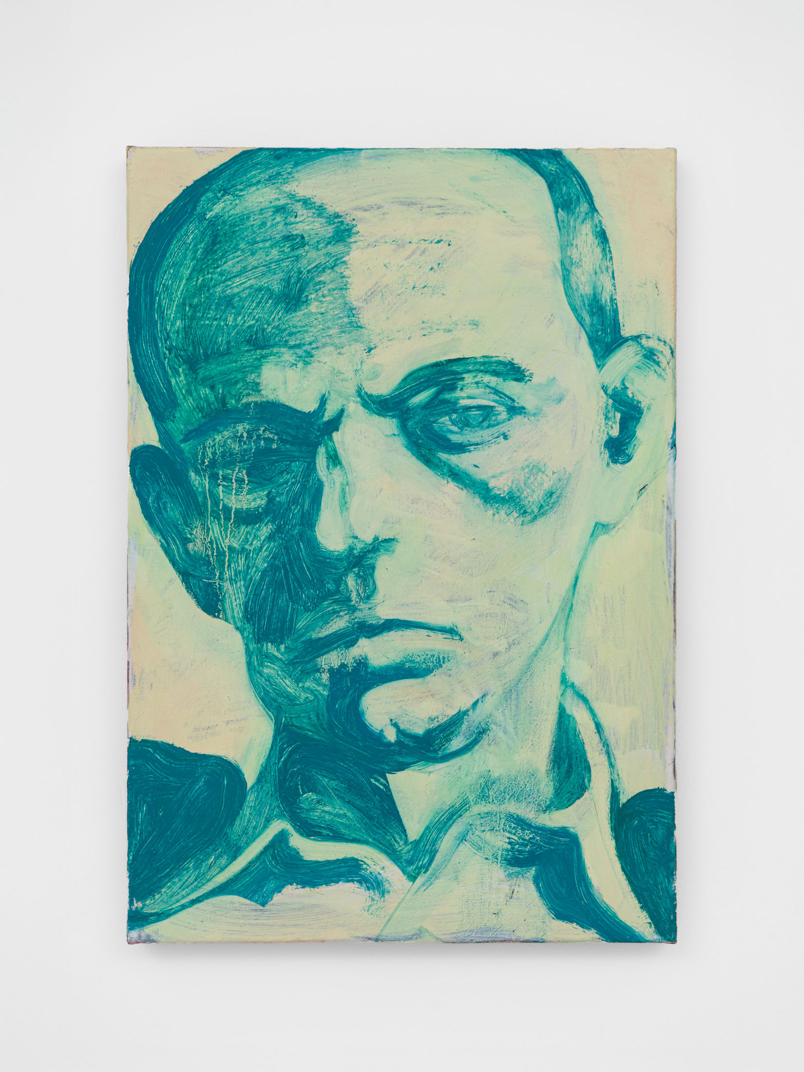 Foxton’s new body of work tackles masculinity at a time when it is being overperformed and reduced to its most classical and rigid codes. Young, controlled bodies with strict demeanors confront us in large group compositions, while portraits of authority figures follow us with their cold gaze. While the artist continues to place primary importance on the physical body, he now approaches it more in relation to the group—to the way it is shaped by various social and political influences.