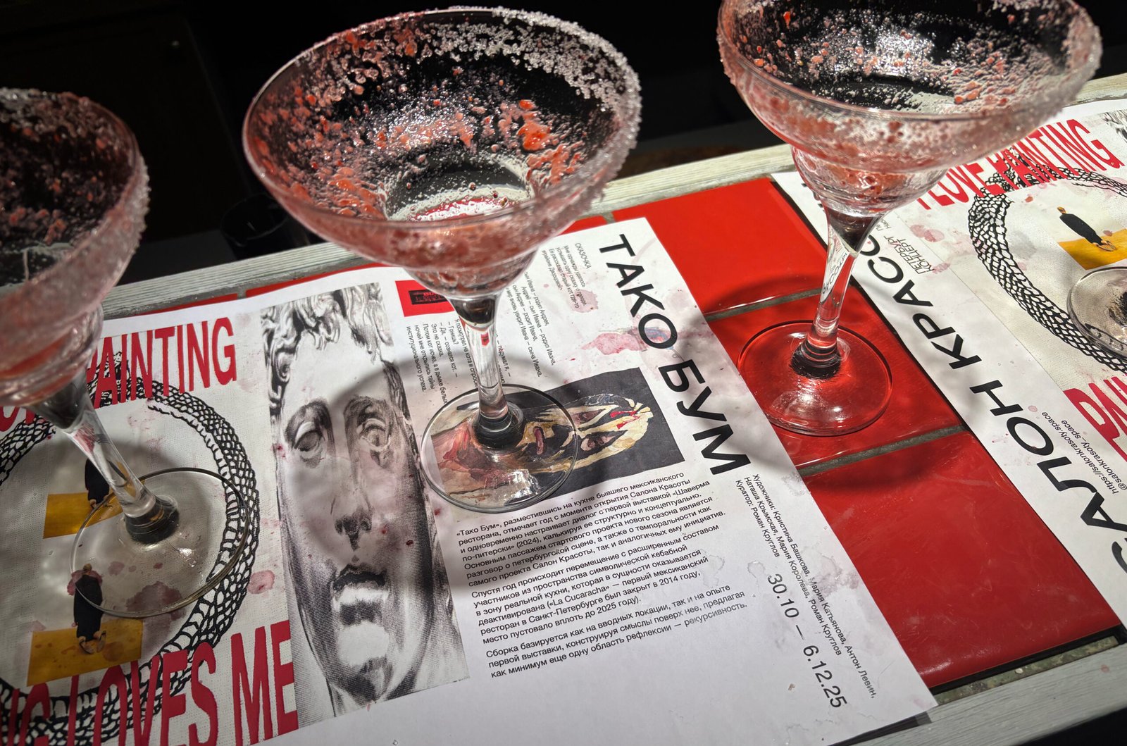‘Taco Boom’, located in the kitchen of a former Mexican restaurant, marks the one-year anniversary of the opening of the Salon Krasoty and simultaneously sets the stage for a dialogue with the first exhibition, ‘Peterburg-style shaverma’ (2024), structurally and conceptually echoing it.