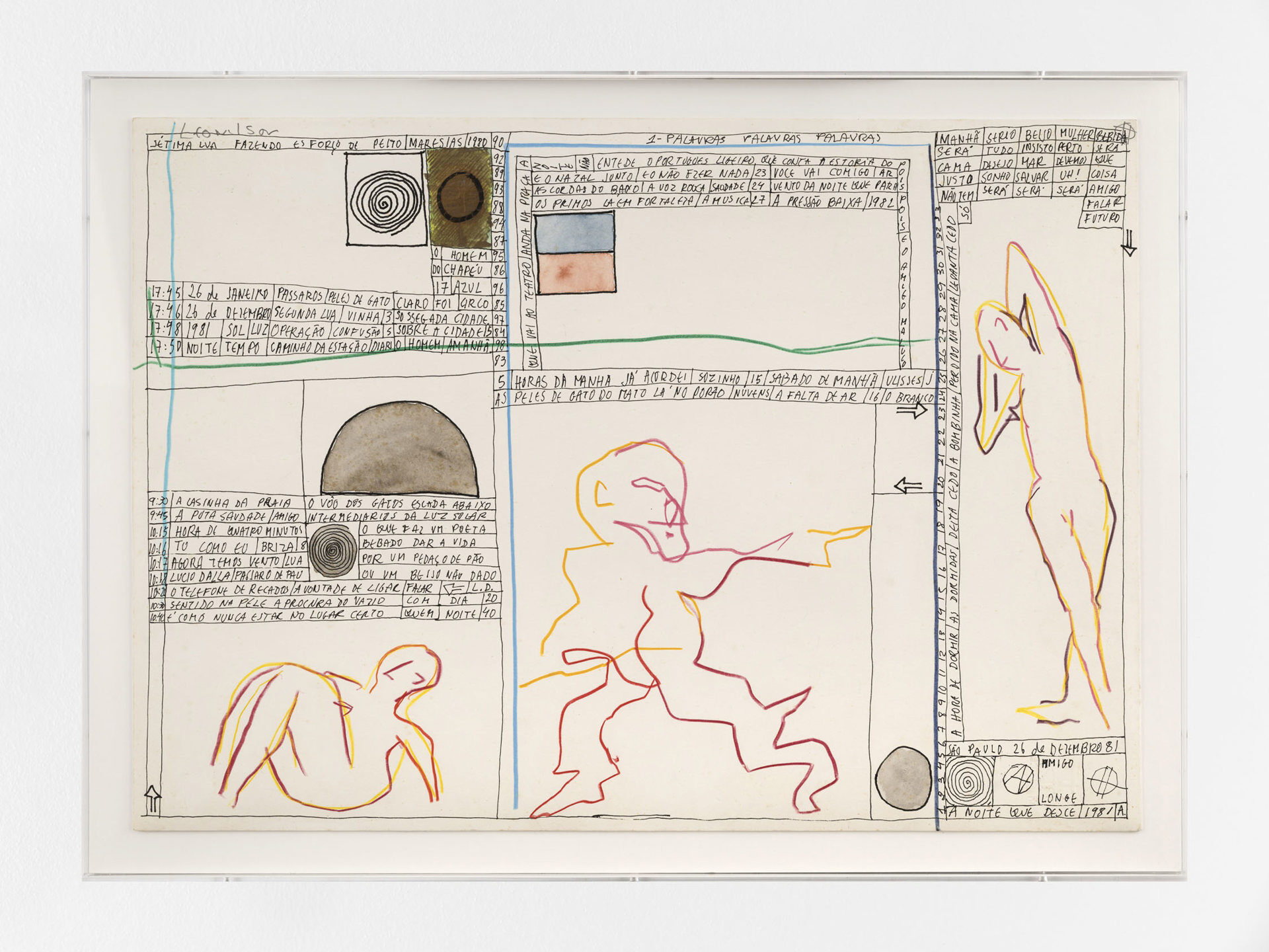 In February 2017, at 680 Park Avenue on the Upper East Side of Manhattan, I walked for the first time through an exhibition of Leonilson. Leonilson paints, embroiders, draws, and writes. He employs a narrative poetry, some very matte haiku, that is both verbal and punctuated by pictogram-like drawings. A vocabulary at once autobiographical and enigmatic, focused on raw emotions and introspective reflections shaped by intimate experiences. It is a political reading of the history of bodies converging at a moment when interpersonal relationships are being disrupted in a country emerging from dictatorship,…