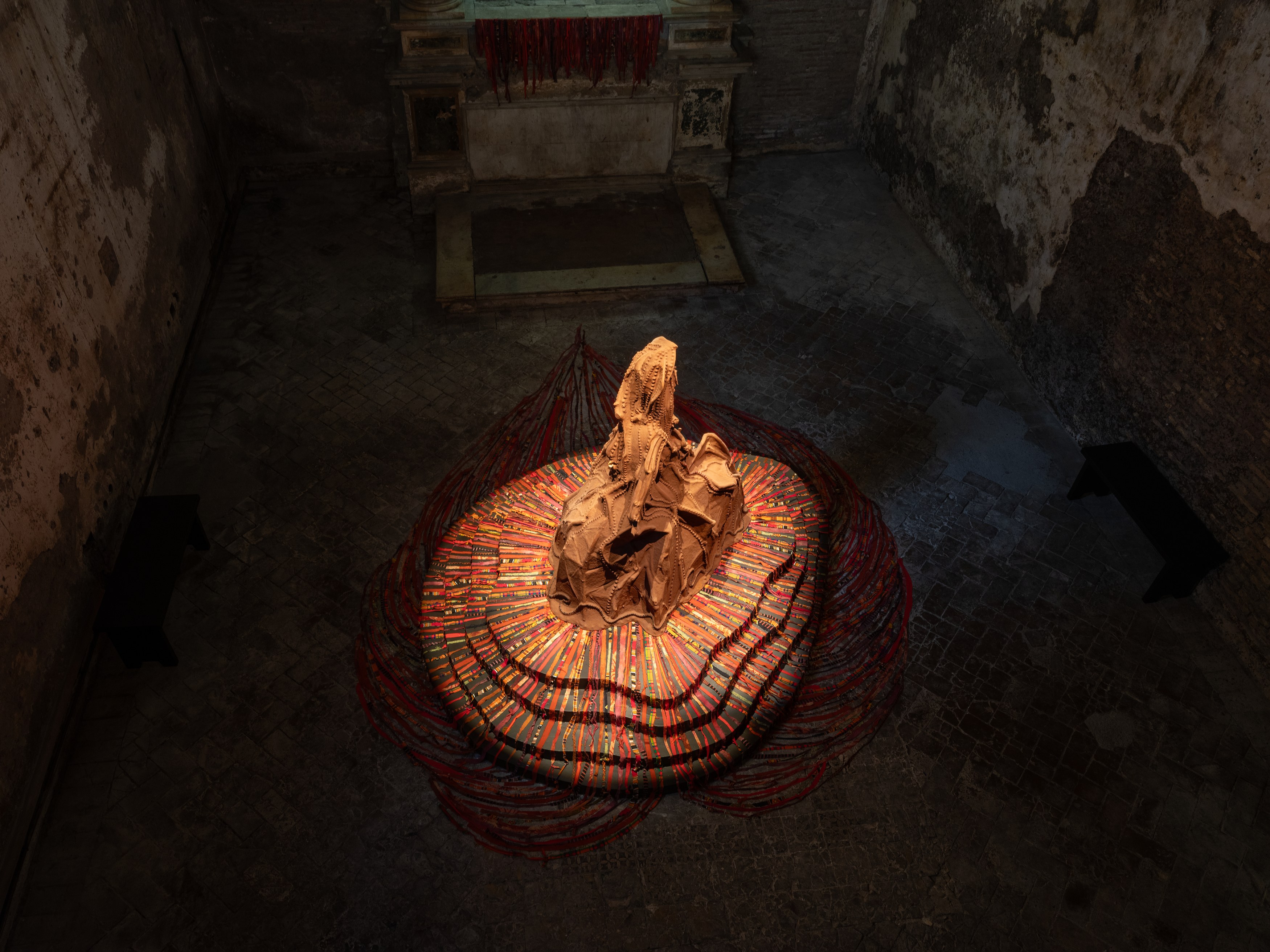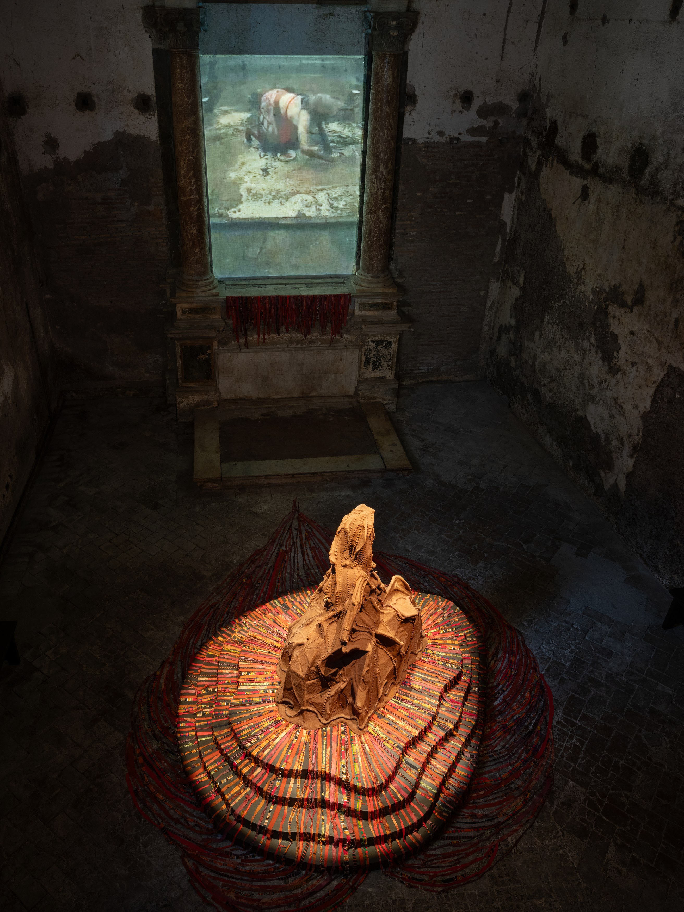 Wangechi Mutu Solo Exhibition, Cleaning EARTH, Opens September 10th, 2025 at Sant'Andrea de Scaphis in Rome. Presentation brings together works from throughout Mutu's career in a collective sense of contemplation, transformation and ritual.