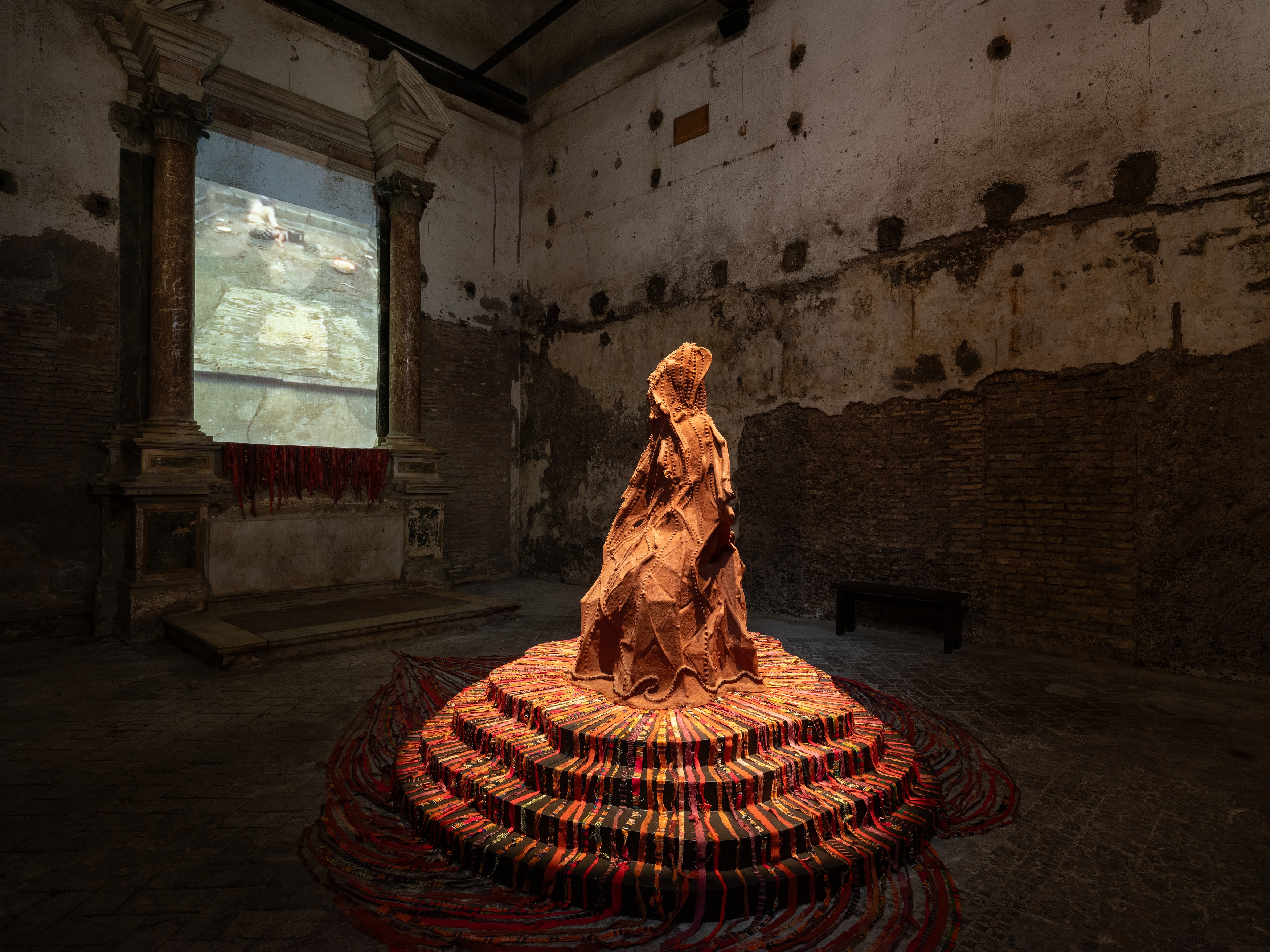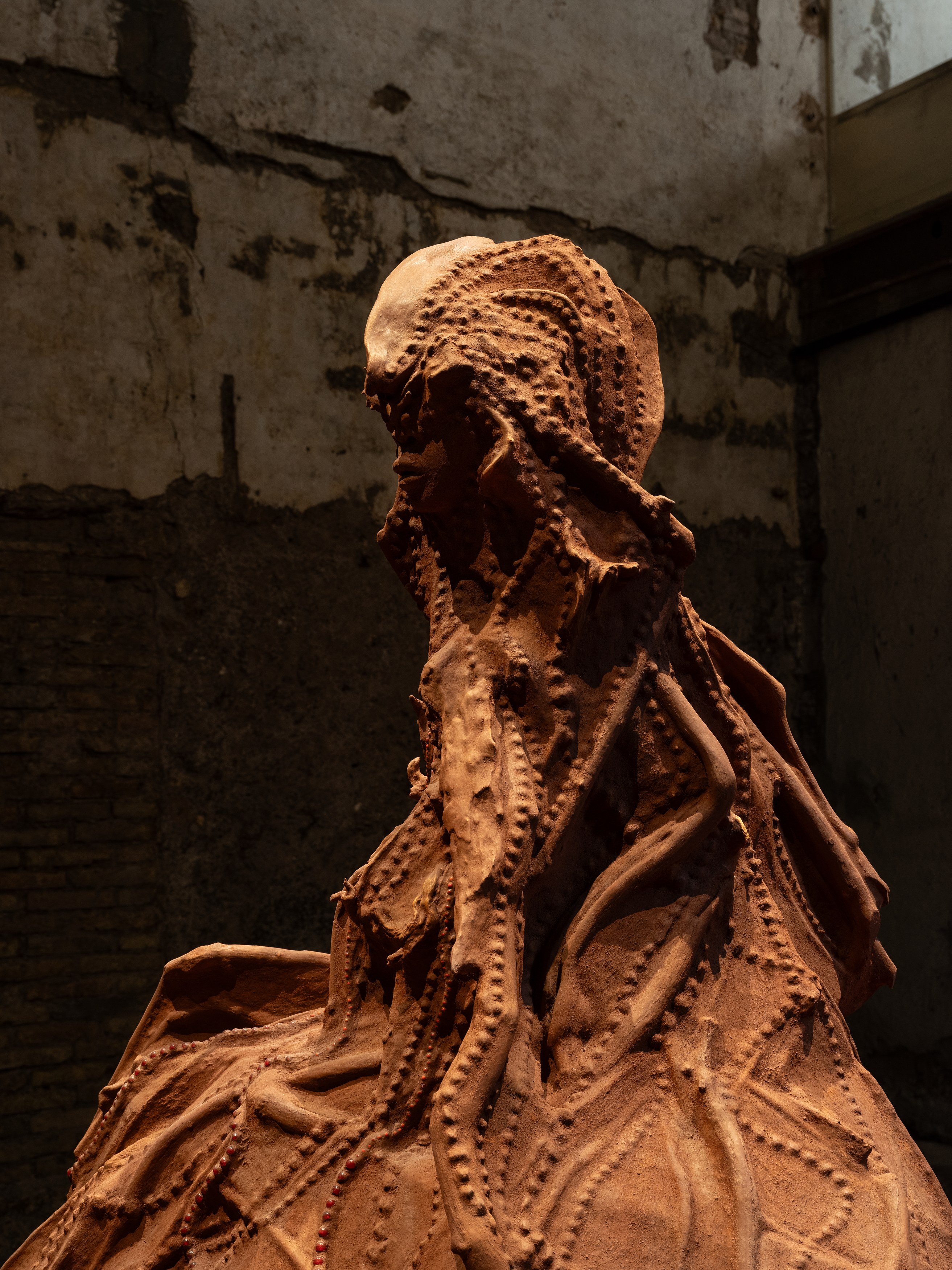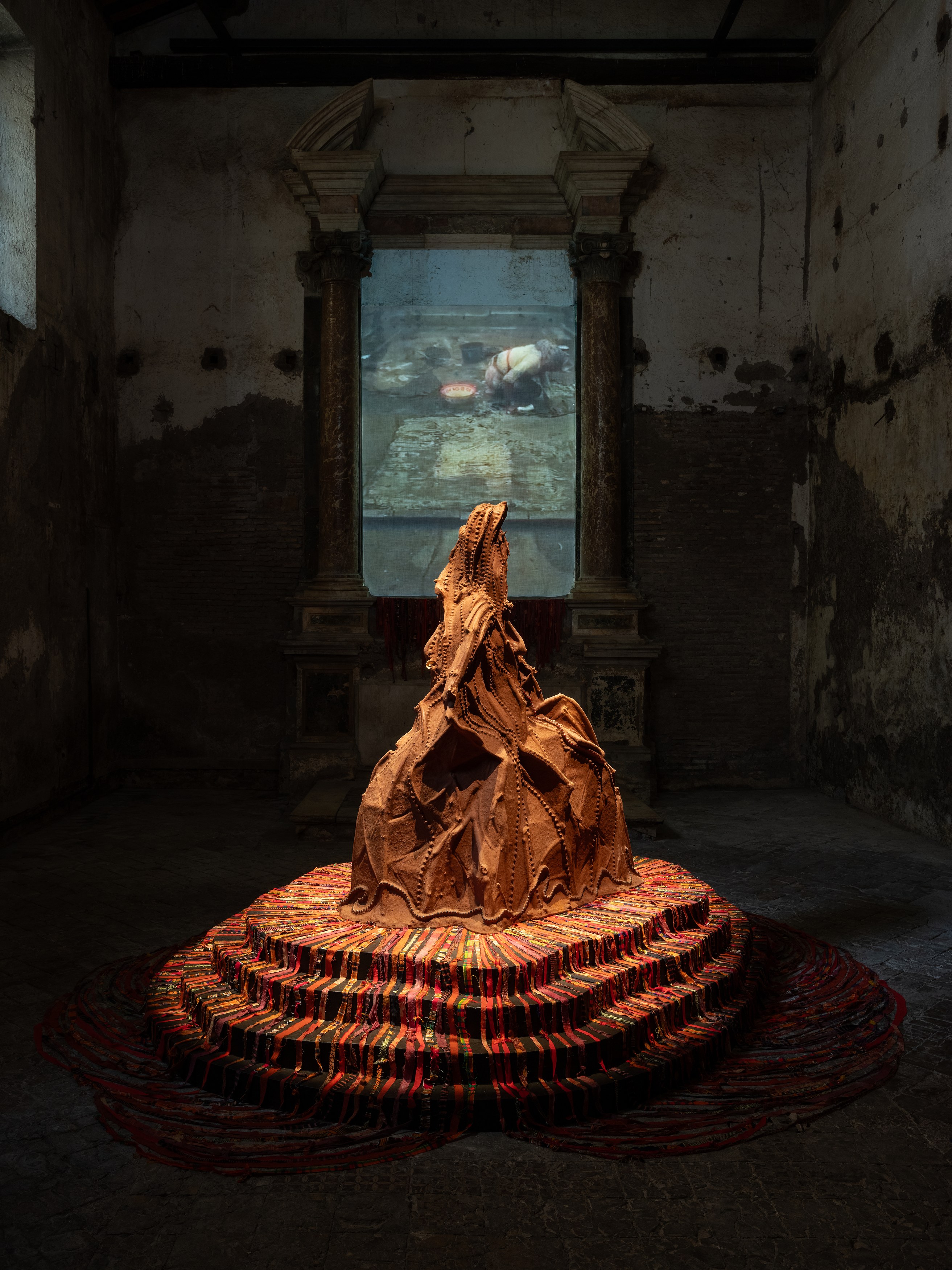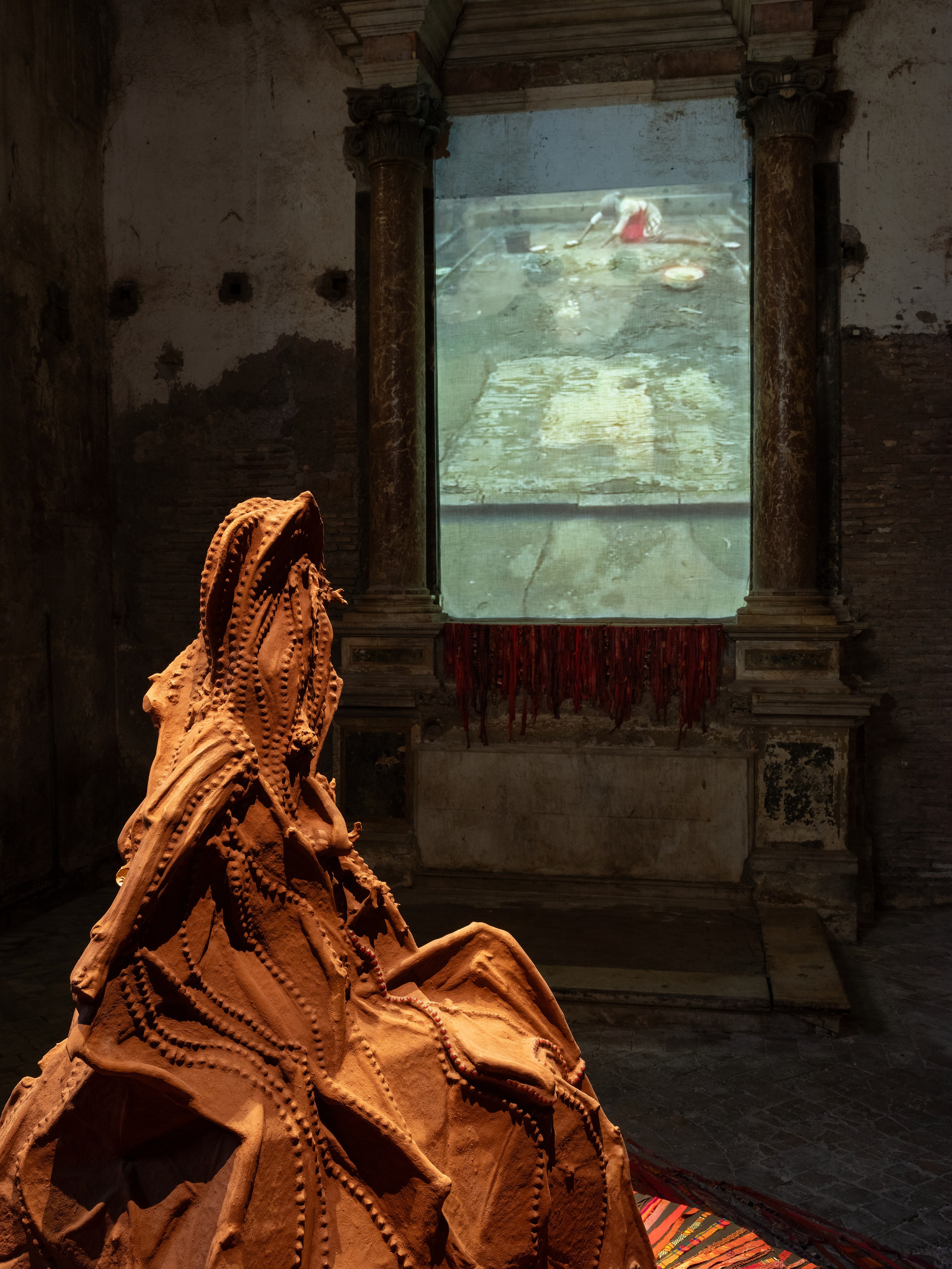 On September 10th, Sant’Andrea de Scaphis presents a solo exhibition by Kenyan-born, New York-based artist Wangechi Mutu. The presentation brings together two sculptures and one video work from a range of points in Mutu’s more than 25-year career, with the aim to instill a sense of prayer and ritual sacrifice through rhythm, chanting, and depictions of the body. This exhibition grows out of Mutu’s longstanding experimentation with themes of femininity, Afrofuturism, identity and spirituality. Cleaning EARTH is on view September 10 through October 25.