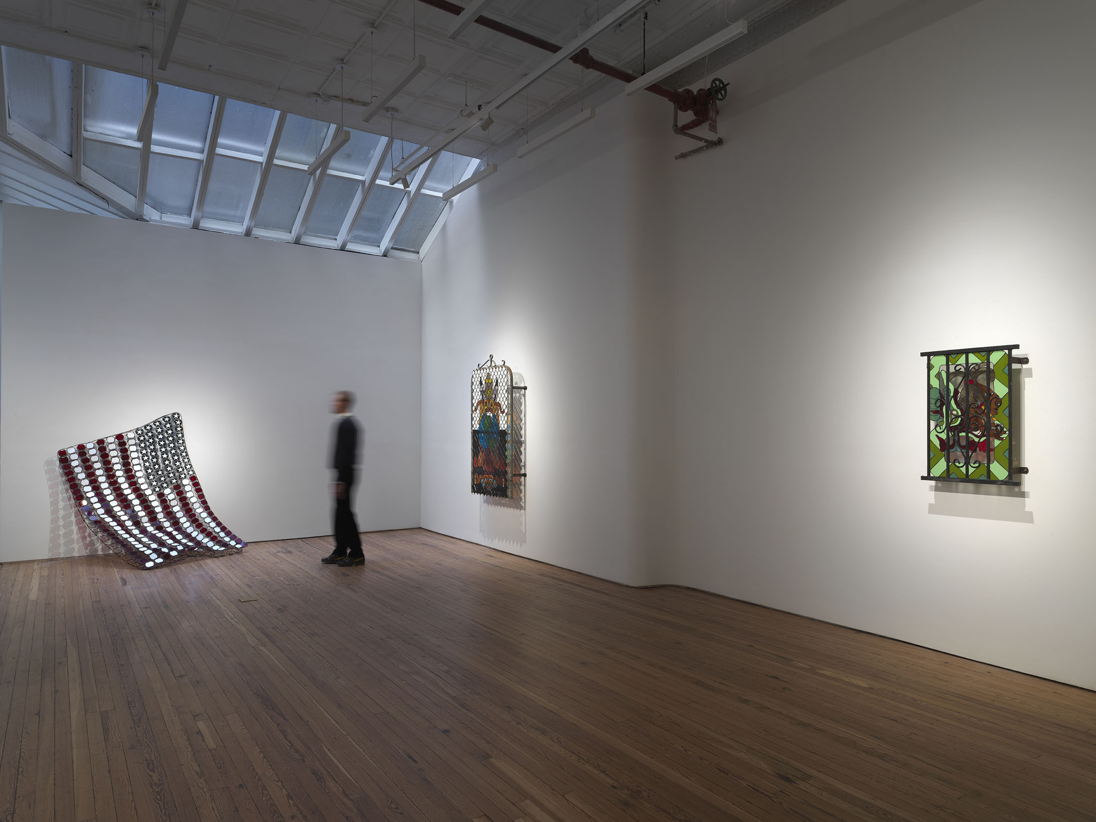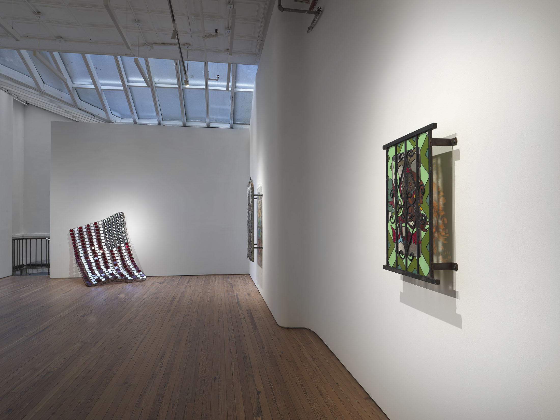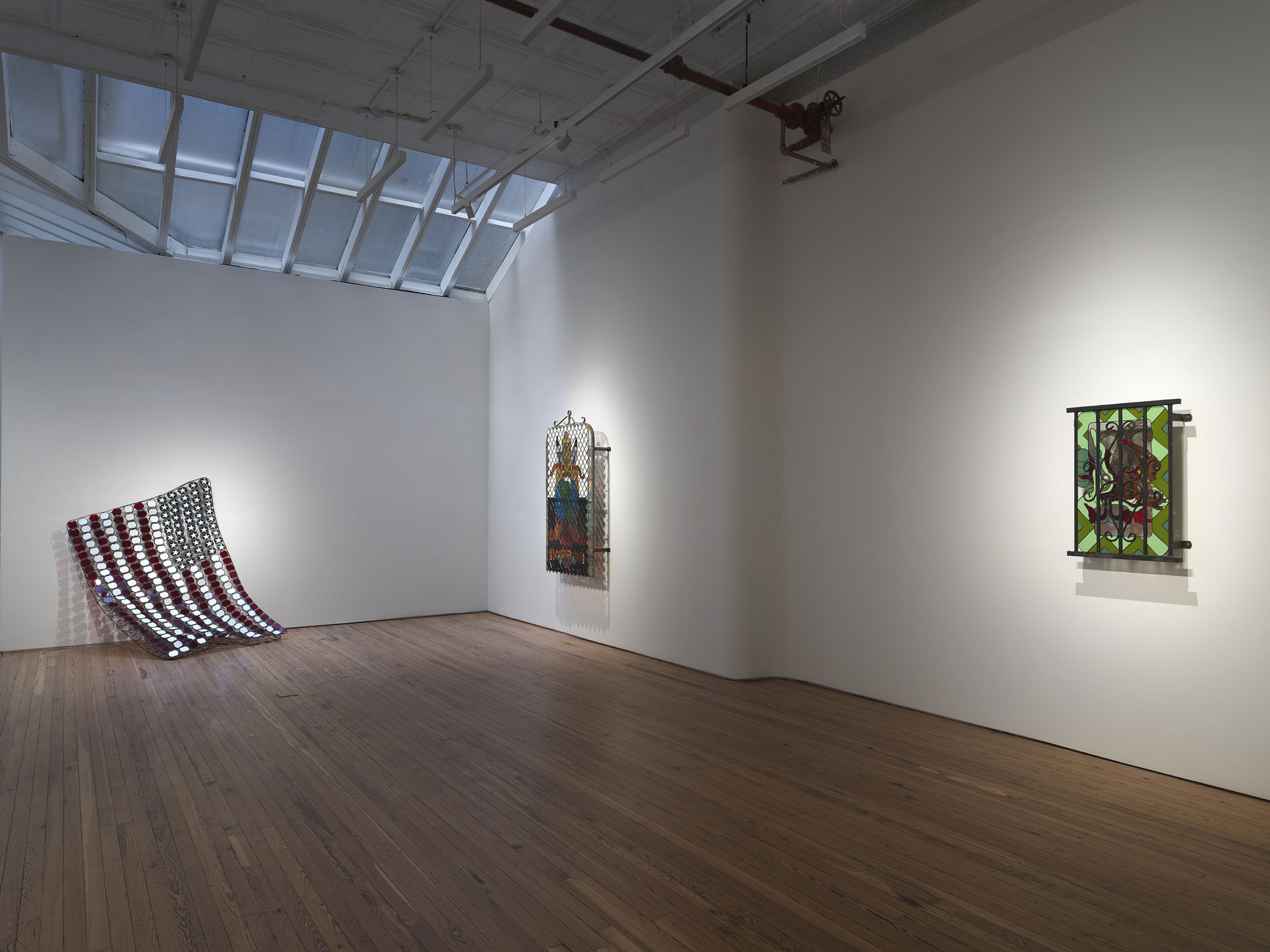 The exhibition begins with a discarded mattress bedspring found in Los Angeles in 2024. fahler came across it while running, an integral part of his studio practice. For months it leaned on a studio wall until one day it revealed itself as a flag. The thirteen rows of springs became rows of red and white stripes. That act of recognition became the first gesture in this body of work, built from what was discarded and found around Los Angeles. flag was the last piece fahler made in the U.S., a quiet artifact that marks the end of an era for him.