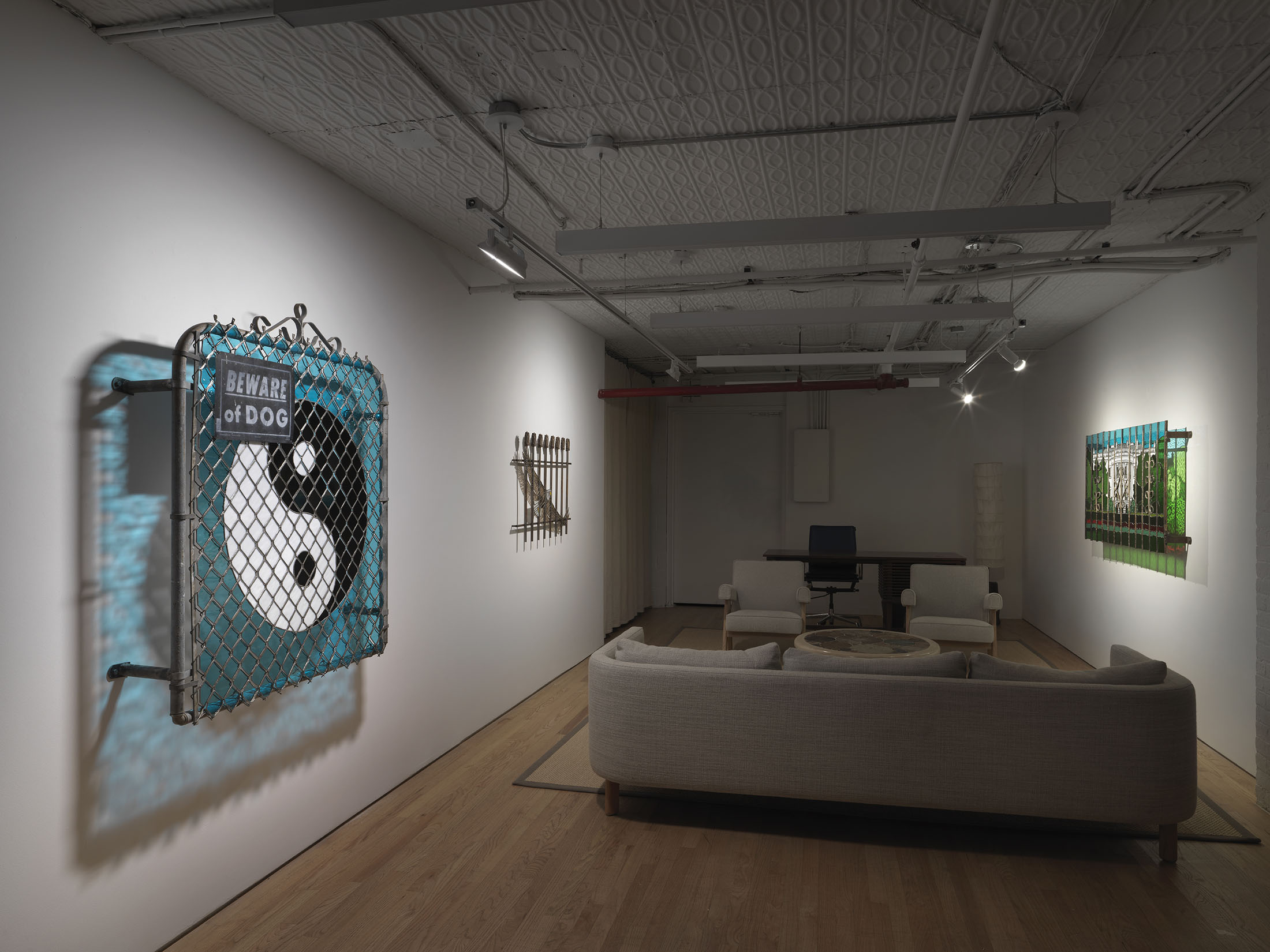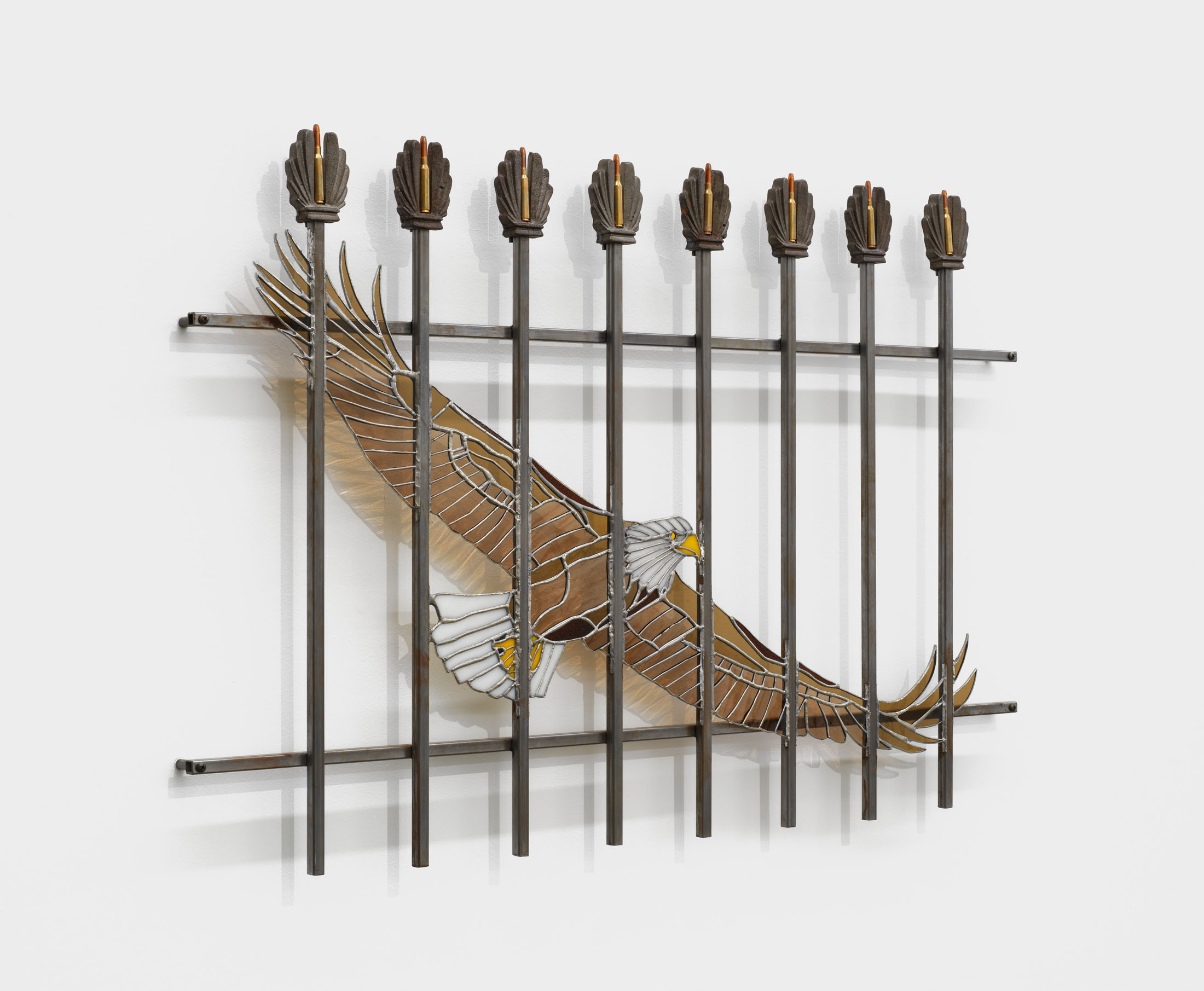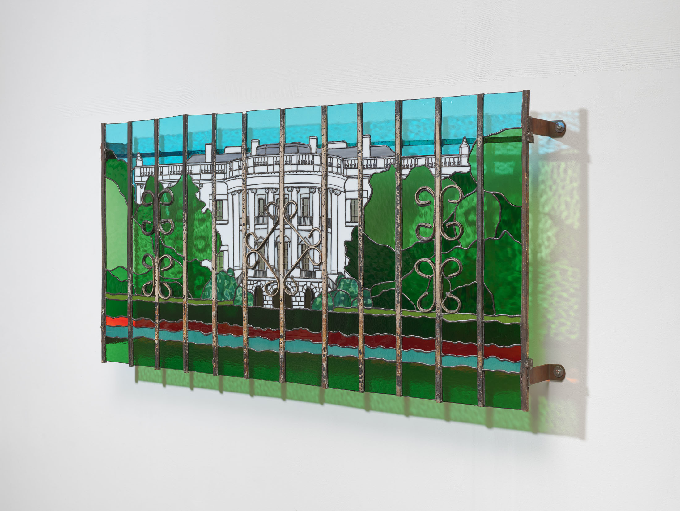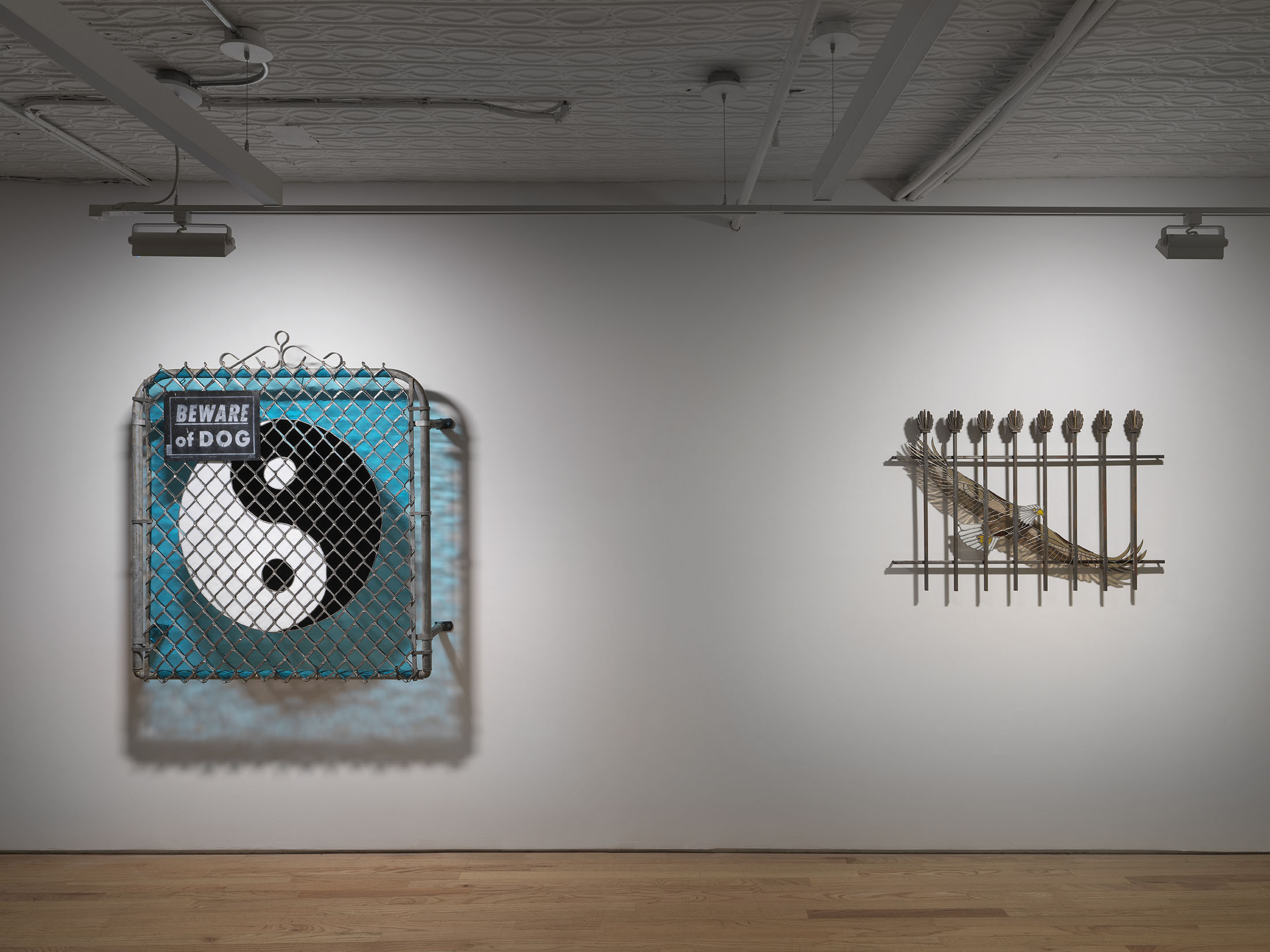 The exhibition begins with a discarded mattress bedspring found in Los Angeles in 2024. fahler came across it while running, an integral part of his studio practice. For months it leaned on a studio wall until one day it revealed itself as a flag. The thirteen rows of springs became rows of red and white stripes. That act of recognition became the first gesture in this body of work, built from what was discarded and found around Los Angeles. flag was the last piece fahler made in the U.S., a quiet artifact that marks the end of an era for him.