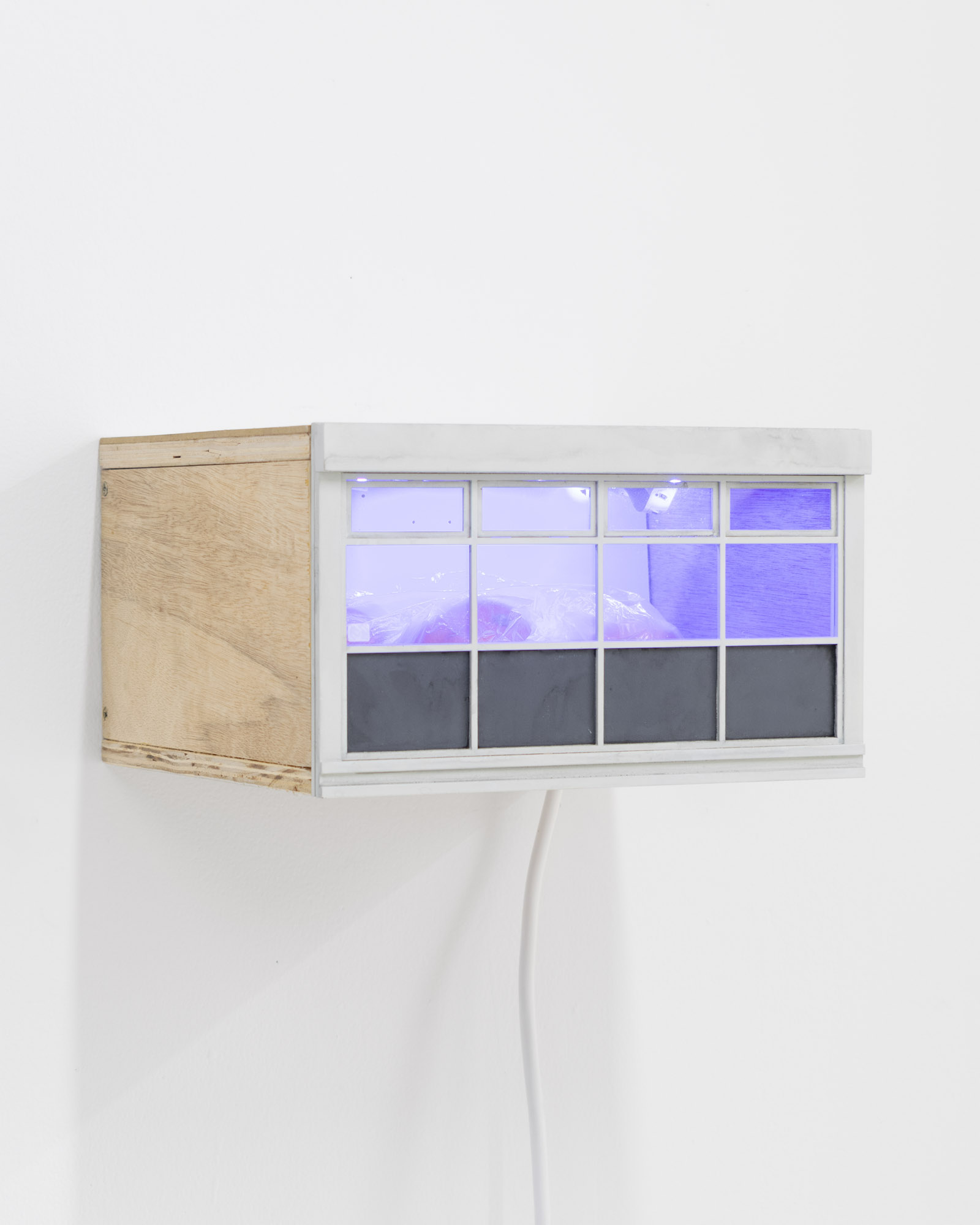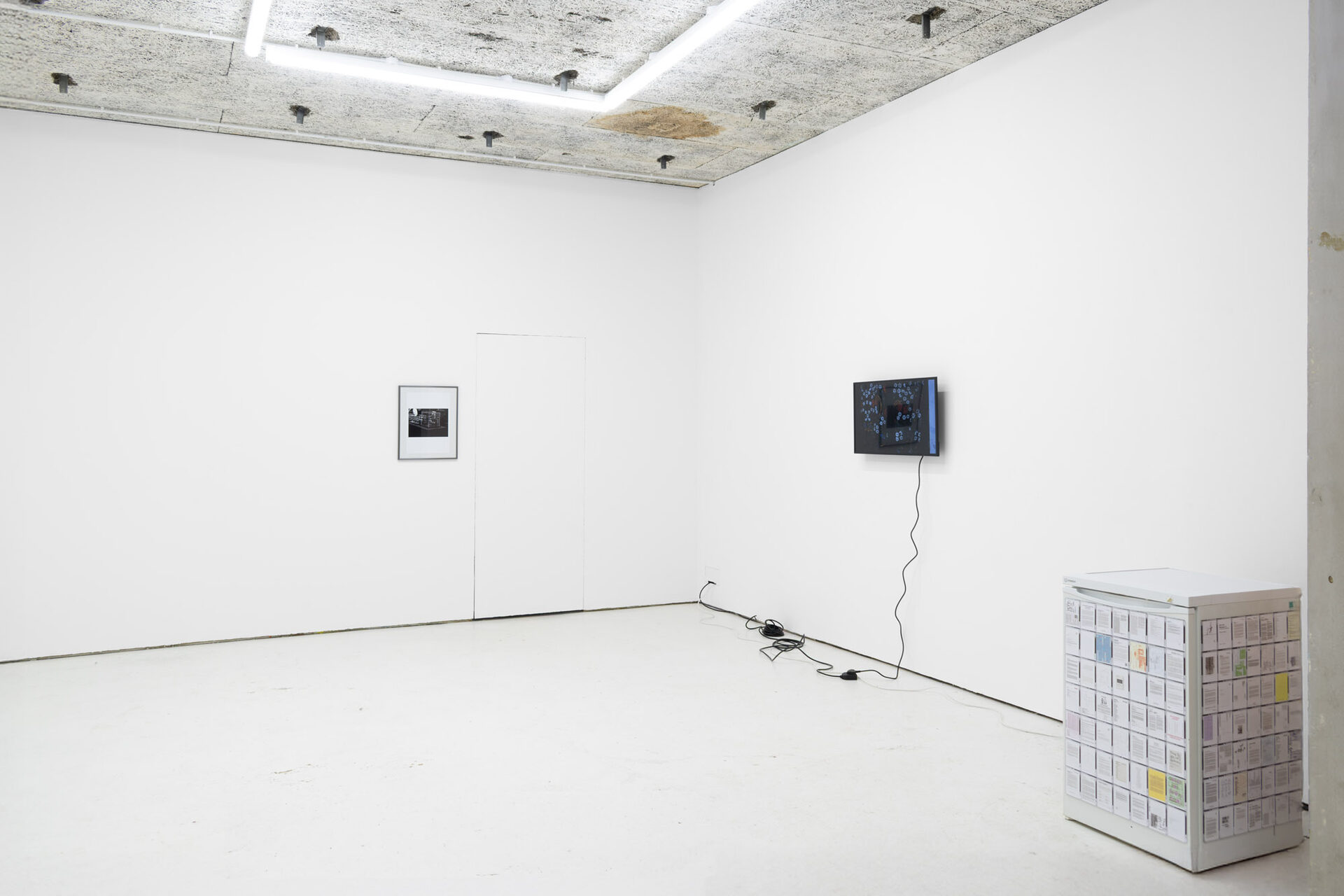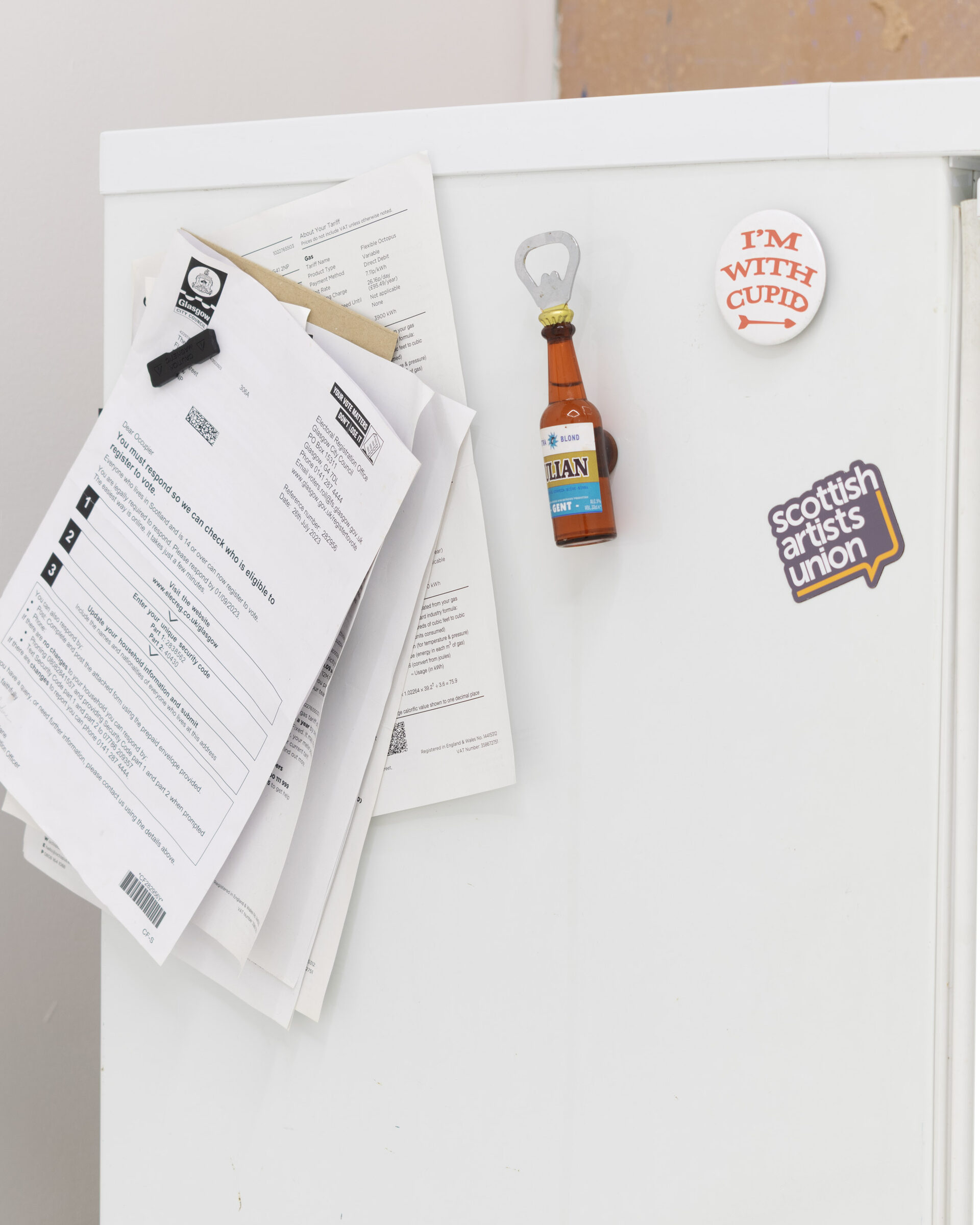 The title is borrowed from Ewan Murray’s painting of the same name. It refers to a motif shared across the works in the show, as well as the function of exhibition space itself. The artworks variously allude to entry and occupation of spaces, and the arrangement of objects within them – be those unusual, utopian or prosaic. They often refer to activities which run alongside or help maintain an art practice but are not always shared openly: family, a service industry job, commuting, living space, and travel.