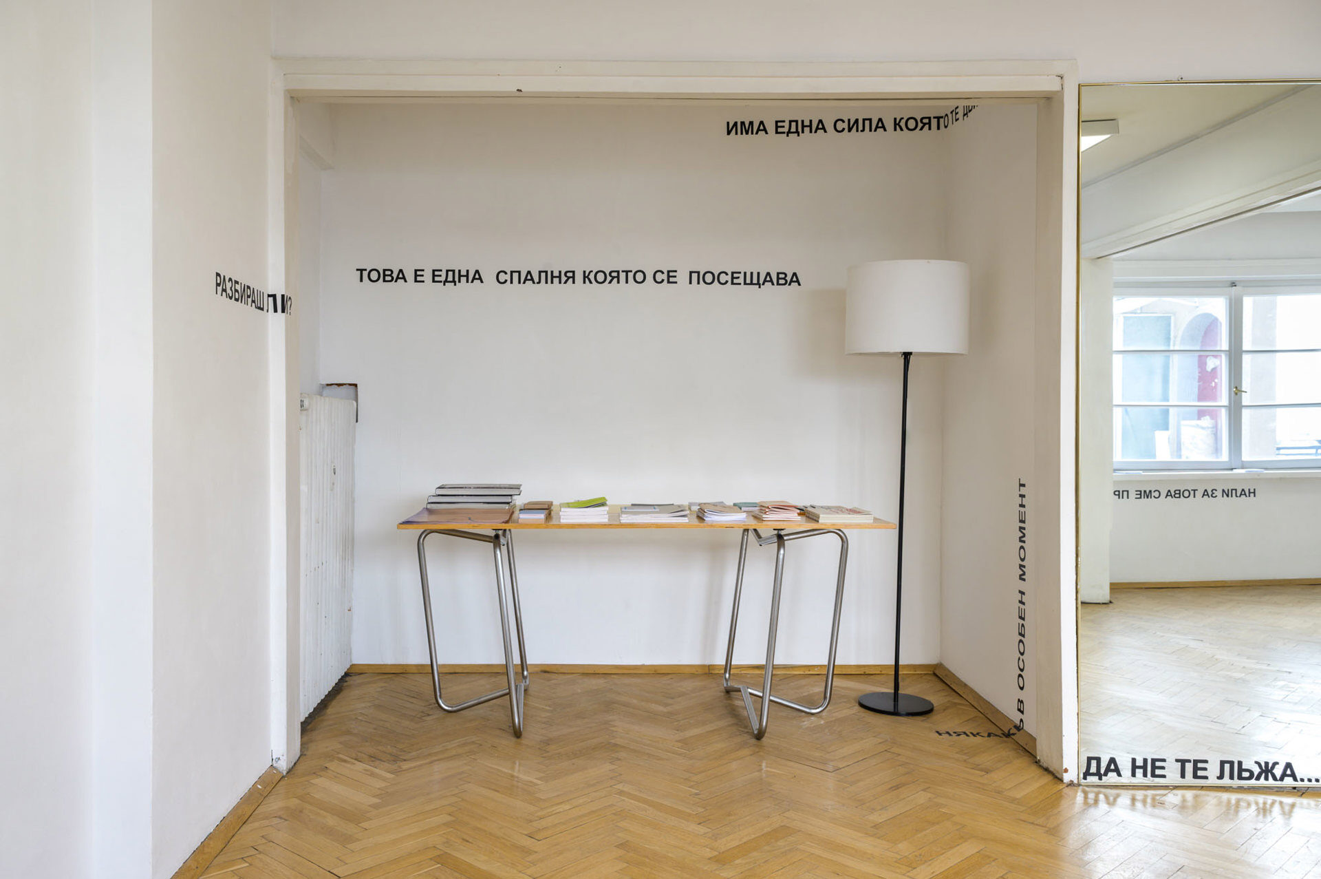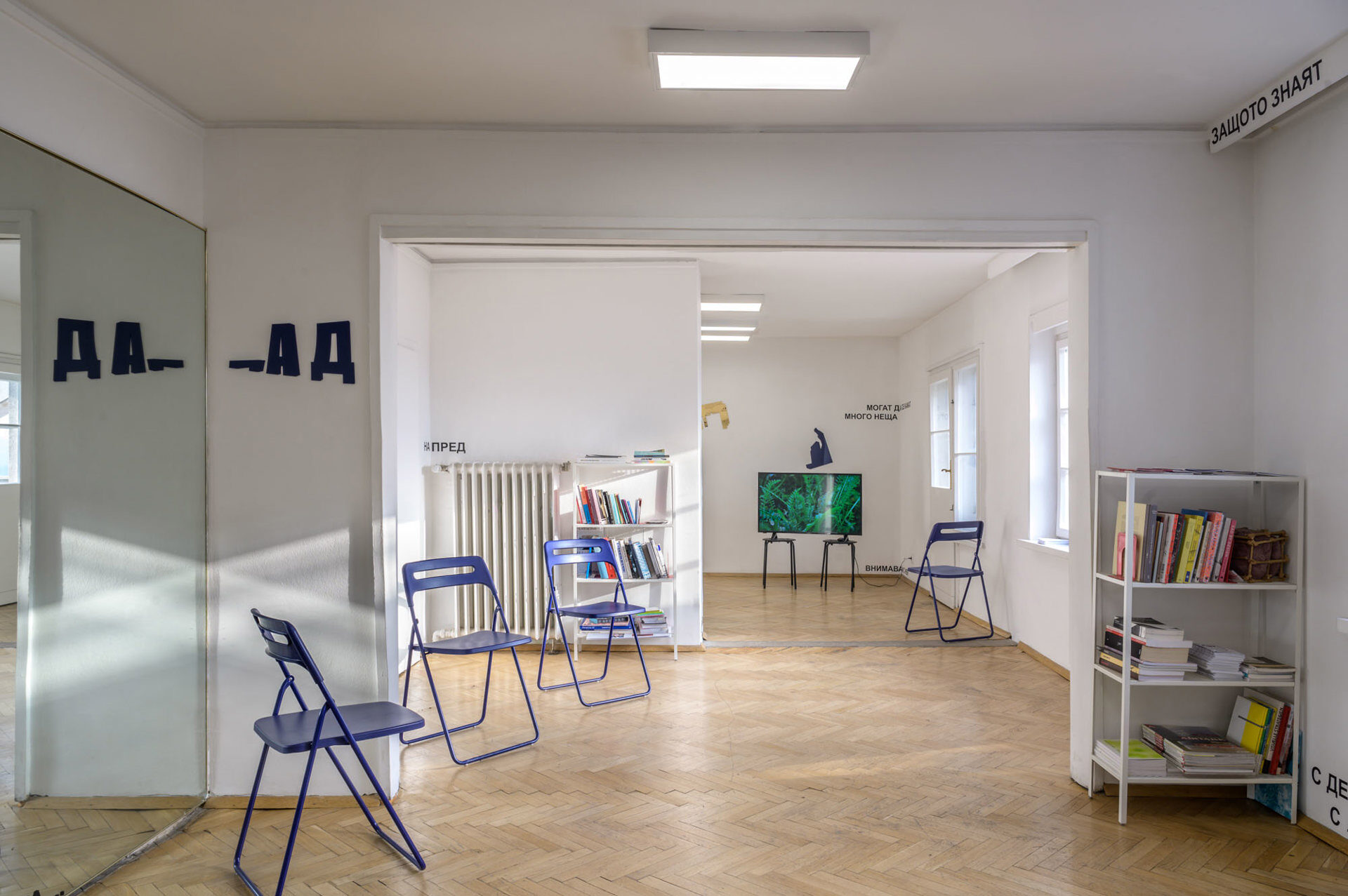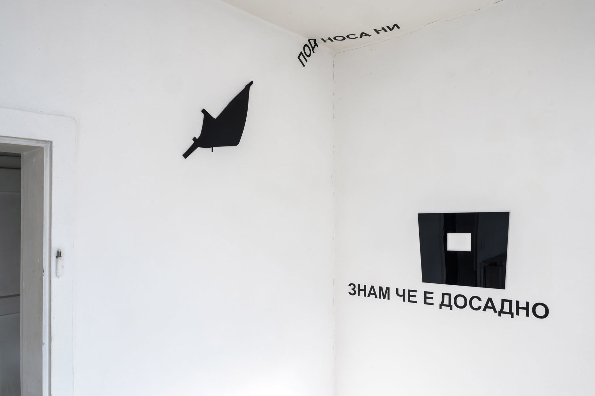 ‘So that people can be comfortable’ is an installation by artist Slavena Petkova, whose artistic practice often begins in conversations with people, communities or businesses, and then unfolds in site-specific installations that reflect both socio-cultural realities and shared spaces. The installation at Swimming Pool features text fragments spread across the space, drawn from public discussions held there, critical essays, or Petkova’s previous projects. Another visual layer is created by the Vandalized Art Series, featuring colorful silhouettes of public art—works by artists such as Valentin Starchev, Venelin Shurelov, Sevdalina Kochevska, Veronica Cekova, and Veselin Dimov—that have been destroyed or forcibly removed. For Petkova, the plexiglass forms reveal the fragmented history not only of these monuments, sculptures, and artworks but also of the periods they represent.